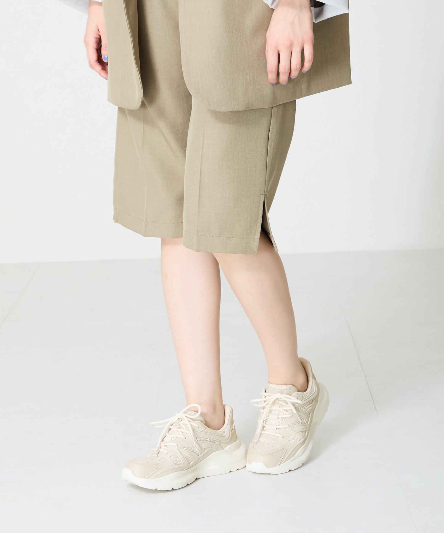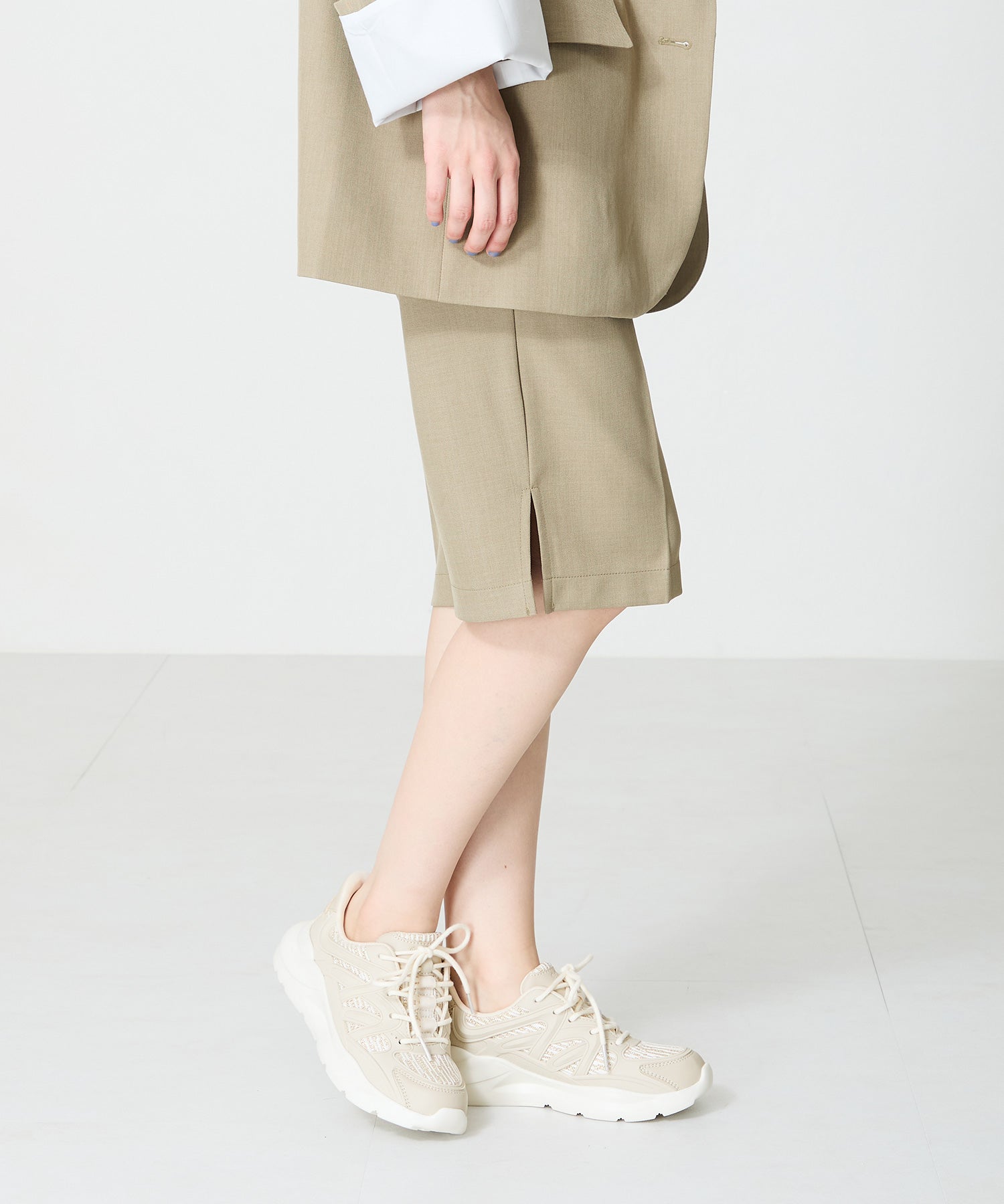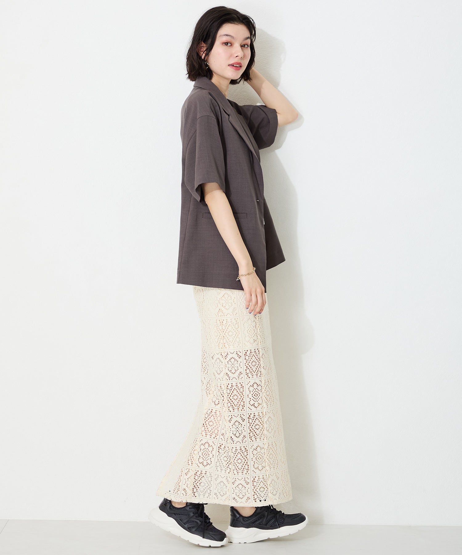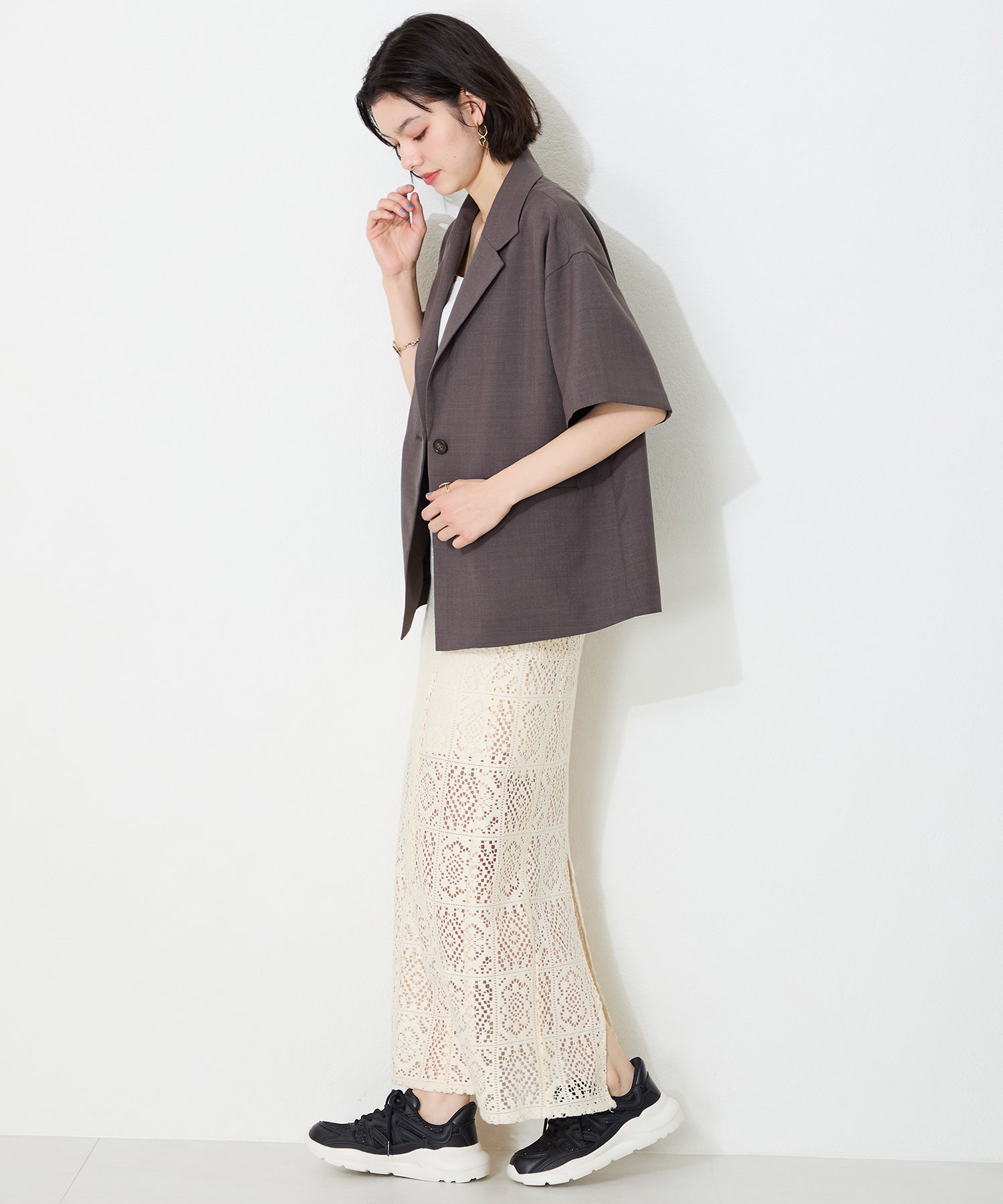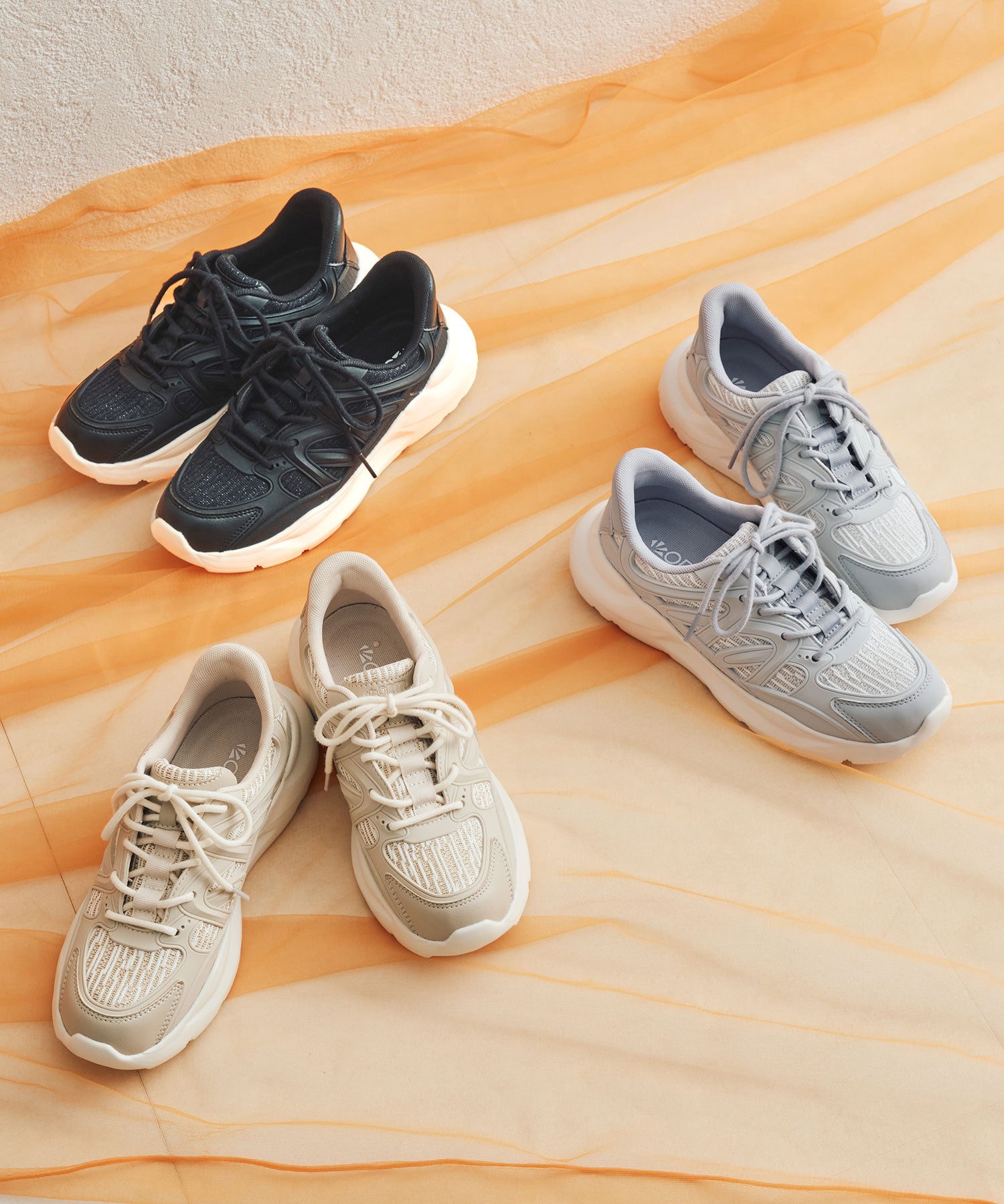 アッパーに施したラメを纏ったレースが大人可愛い足元を演出してくれるスニーカーが登場。ラバーパーツが程良いアクセントで、ボリュームを抑えたすっきりとしたシルエットと、柔らかなワントーンカラーでまとめたデザインがスポーティーすぎないので甘めのフェミニンコーデにぴったり。季節問わず使えて重たくなりすぎないデザインが重宝する1足。