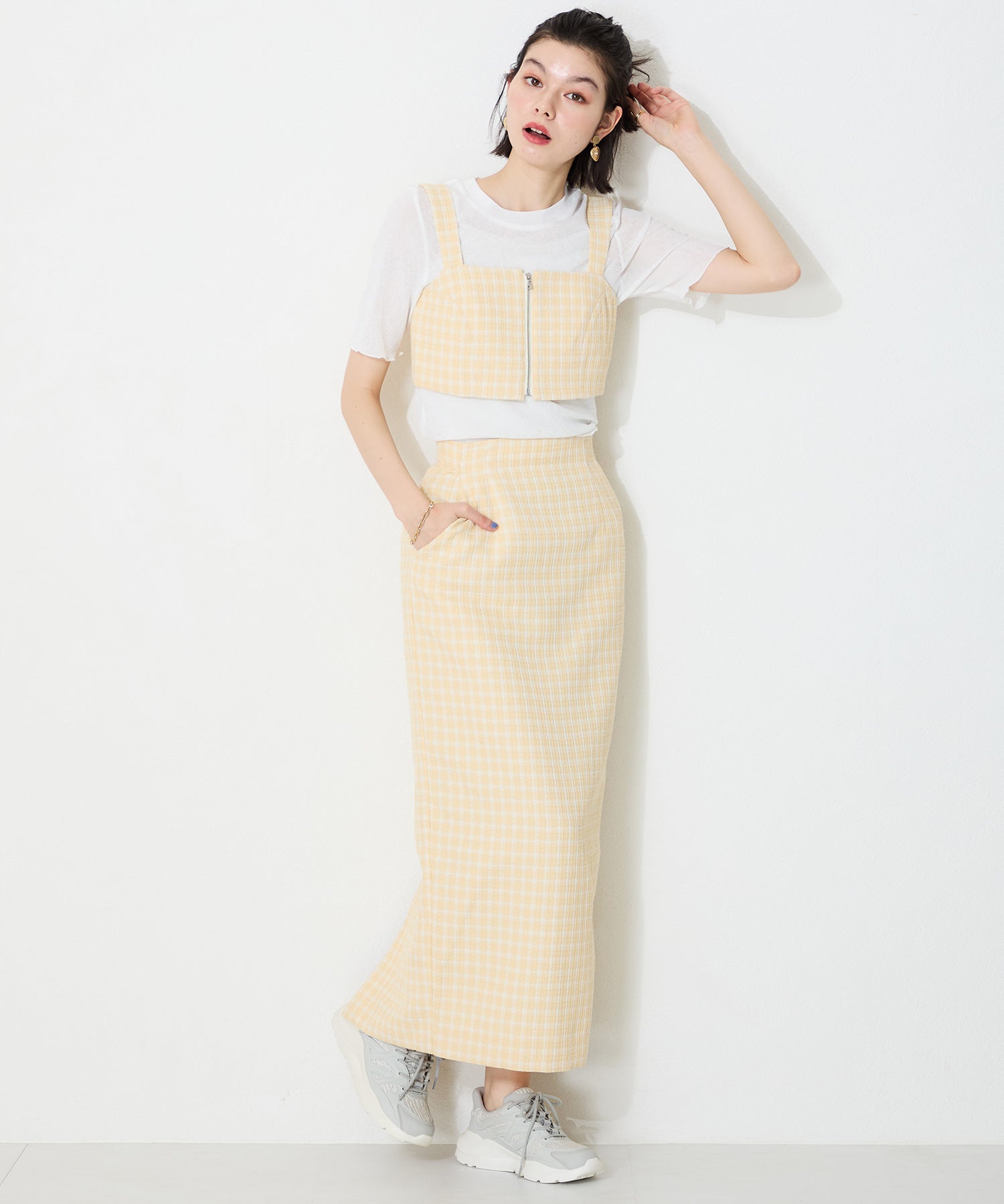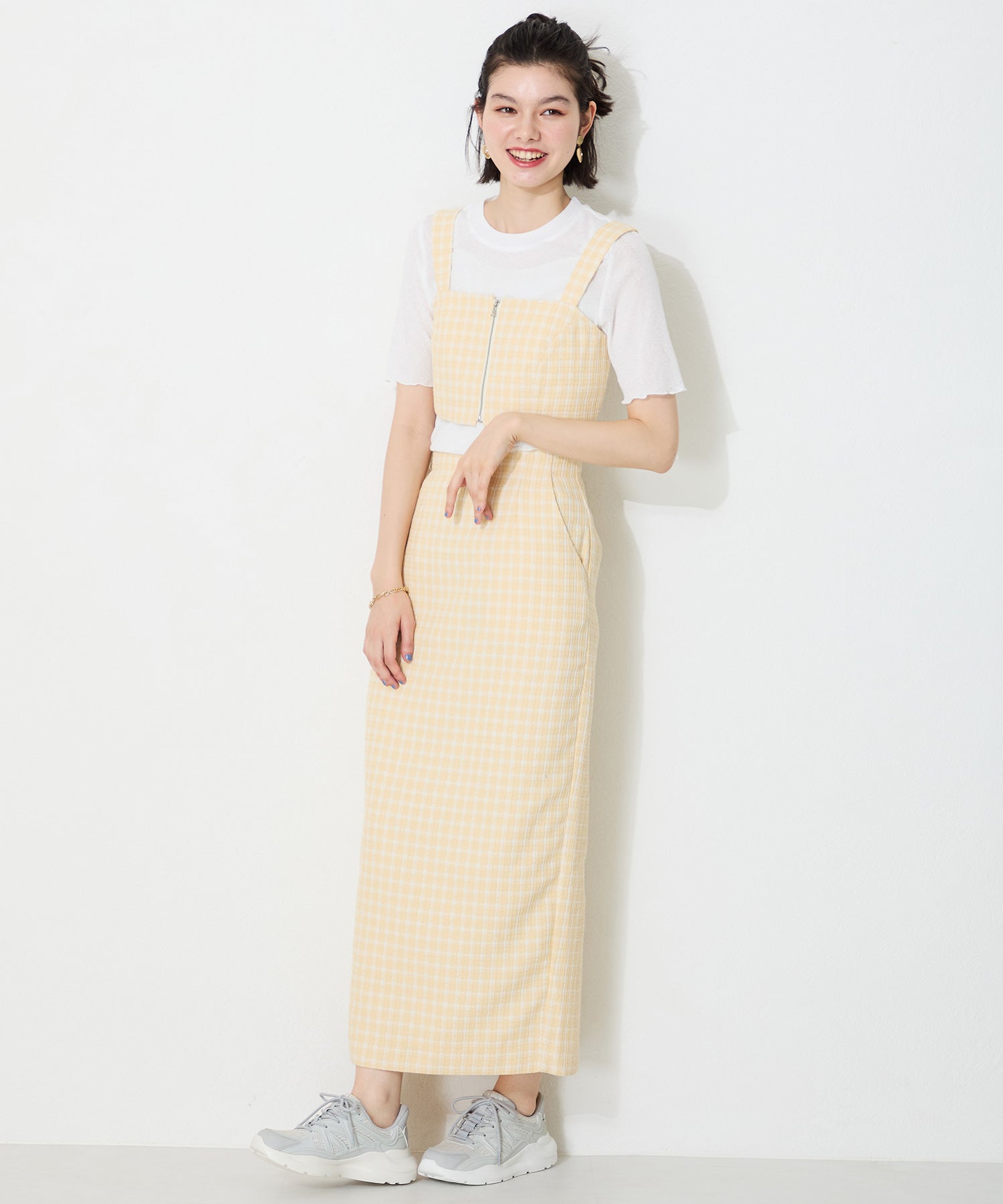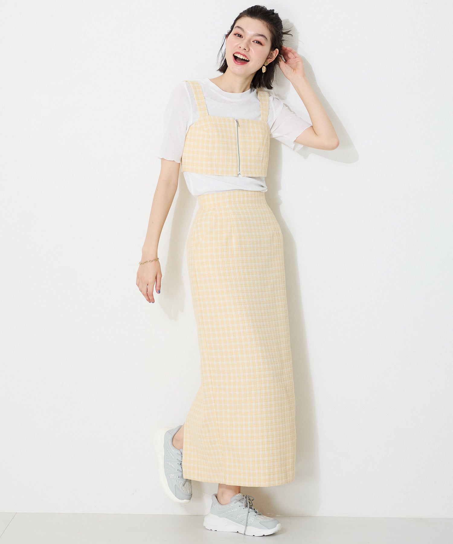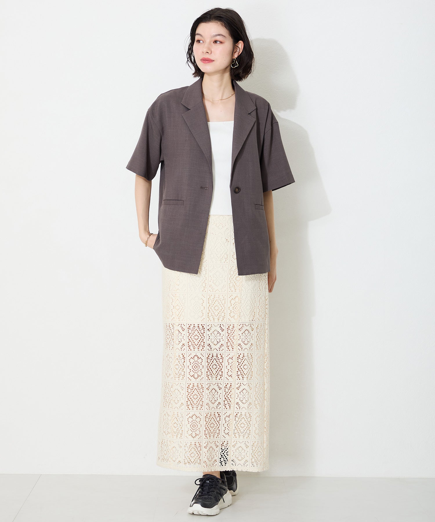 アッパーに施したラメを纏ったレースが大人可愛い足元を演出してくれるスニーカーが登場。ラバーパーツが程良いアクセントで、ボリュームを抑えたすっきりとしたシルエットと、柔らかなワントーンカラーでまとめたデザインがスポーティーすぎないので甘めのフェミニンコーデにぴったり。季節問わず使えて重たくなりすぎないデザインが重宝する1足。