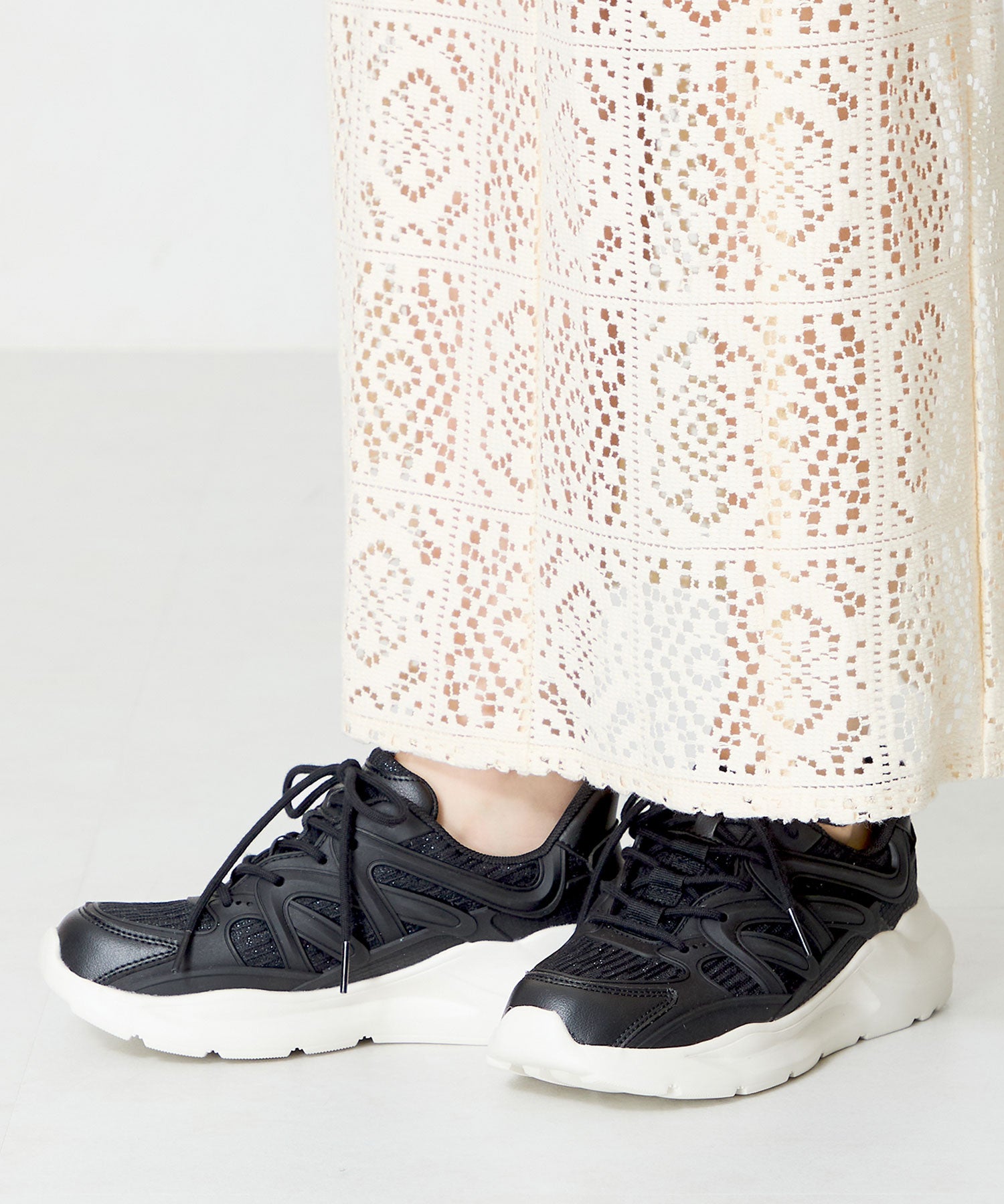 ラバーパーツ×ラメ織りレーススニーカー/OT3760