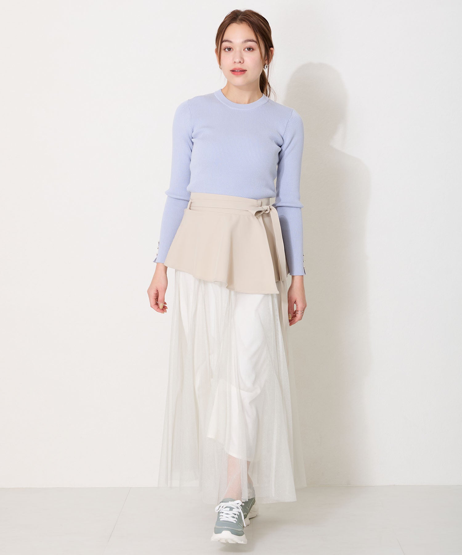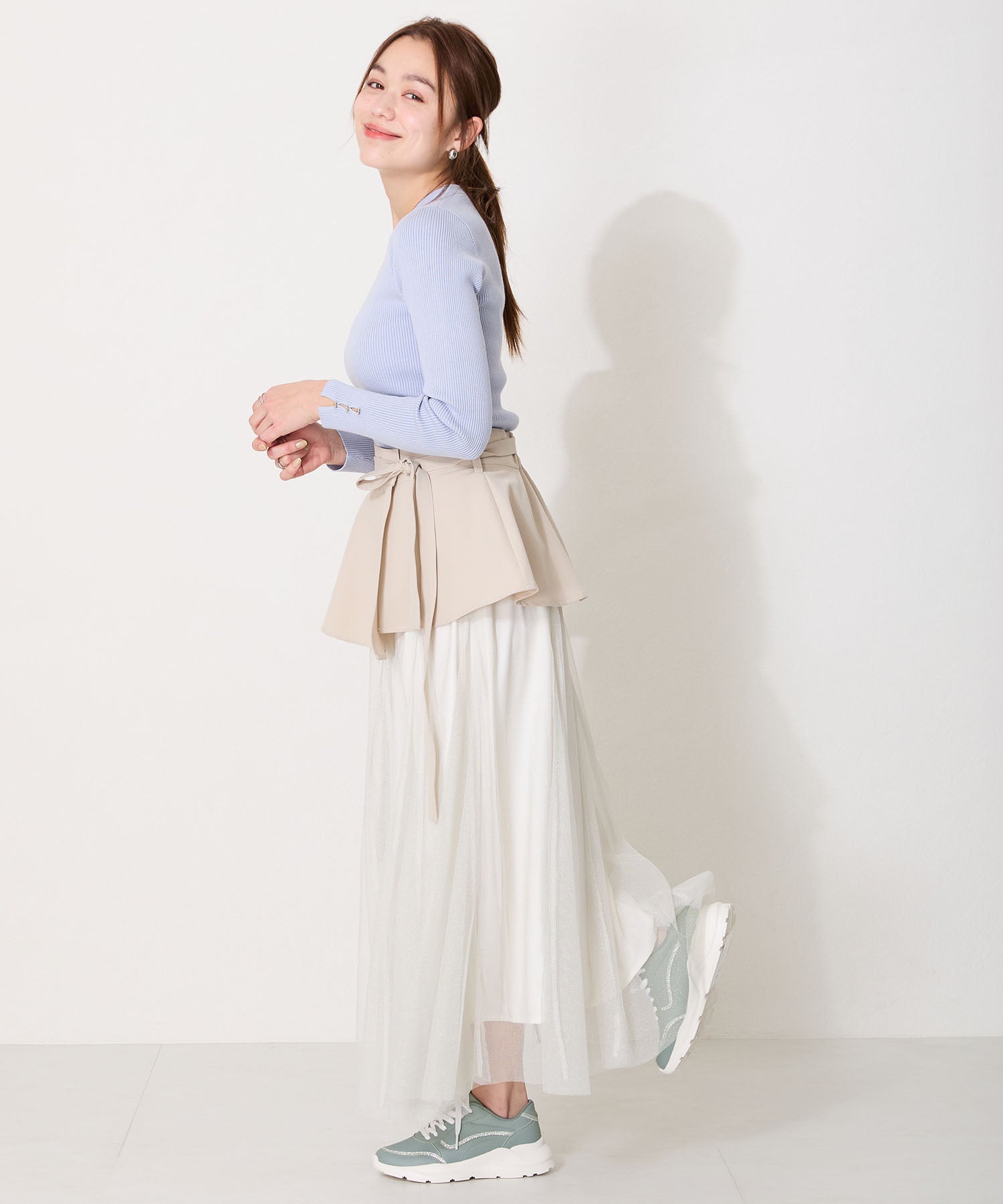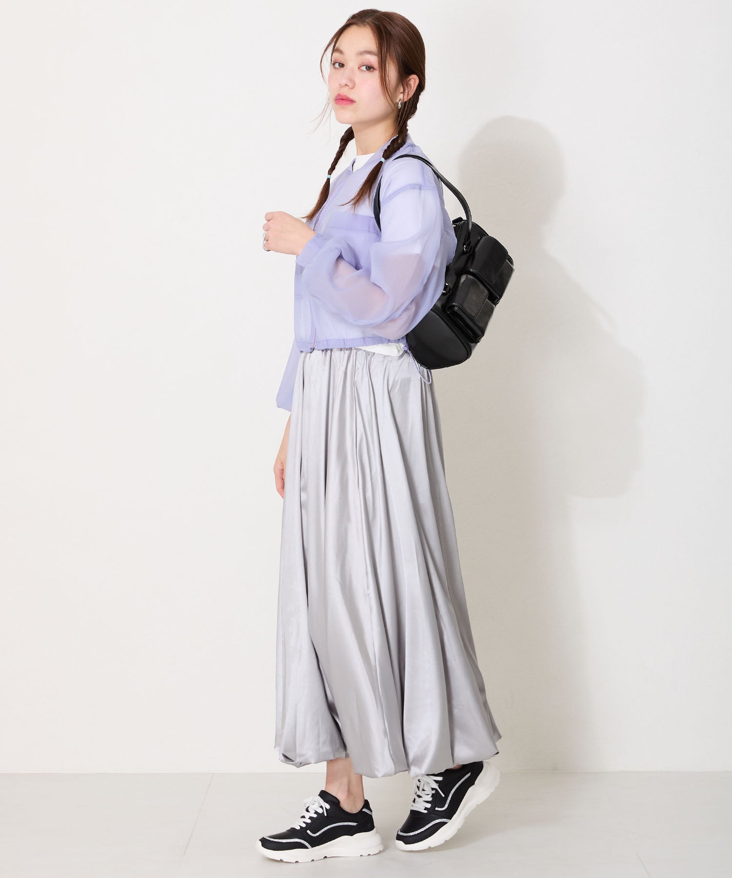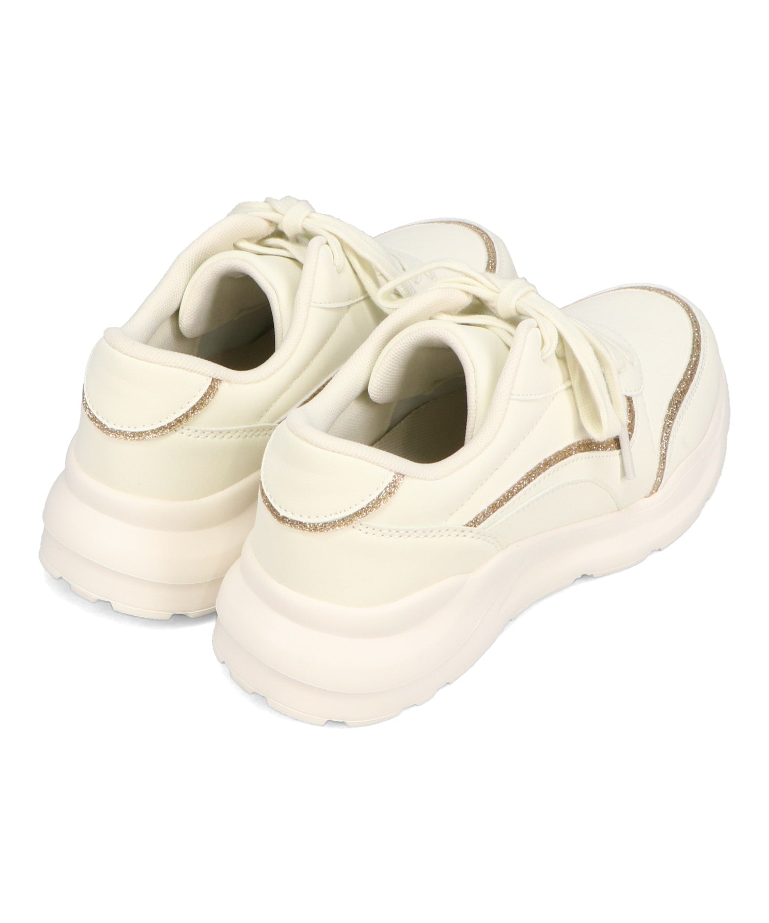 アッパーにグリッターのラインを施すことで足元を華やかにしてくれるスニーカーは、程よい厚底ソールを選んでフェミニン派の方でも取り入れやすい1足に。シンプルな切り替えデザインにすることでグリッターを引き立たせつつも派手になりすぎず、いつものコーデに馴染みやすいのも嬉しいポイント。ワンピースやスカートなどに合わせてとことん甘めなスタイルを楽しんで。