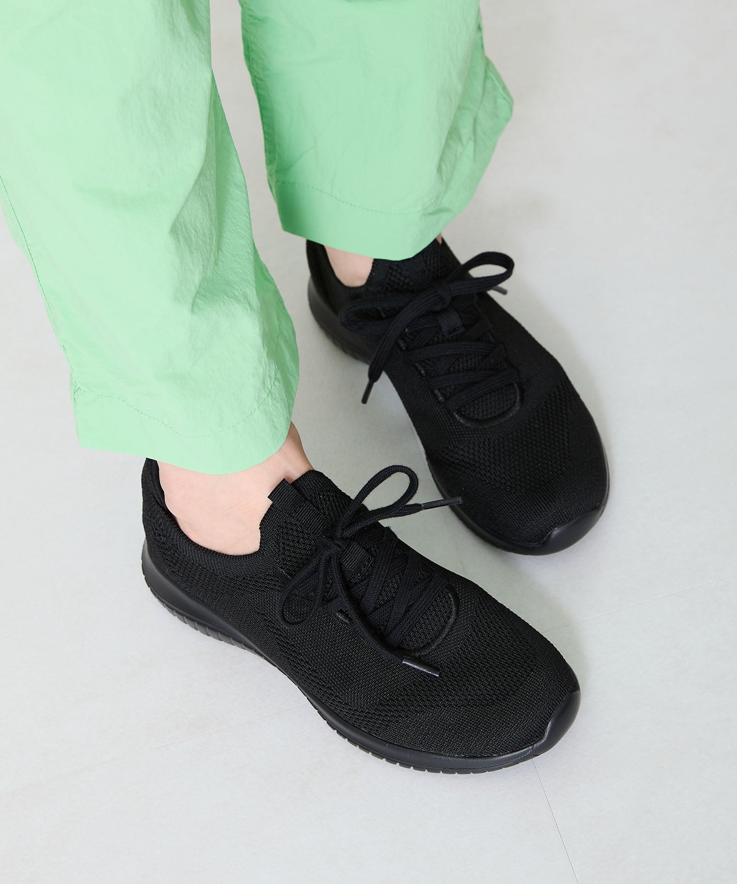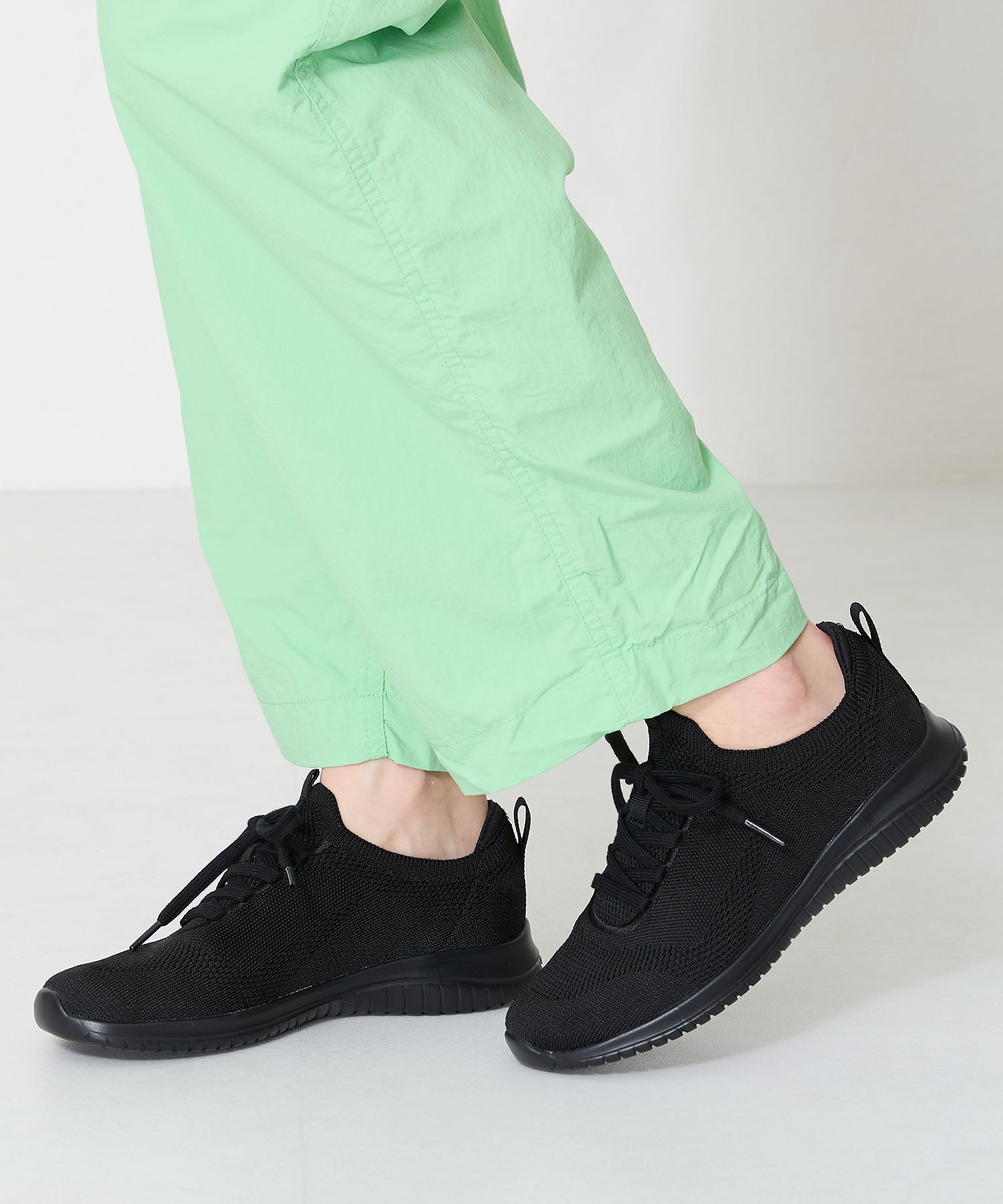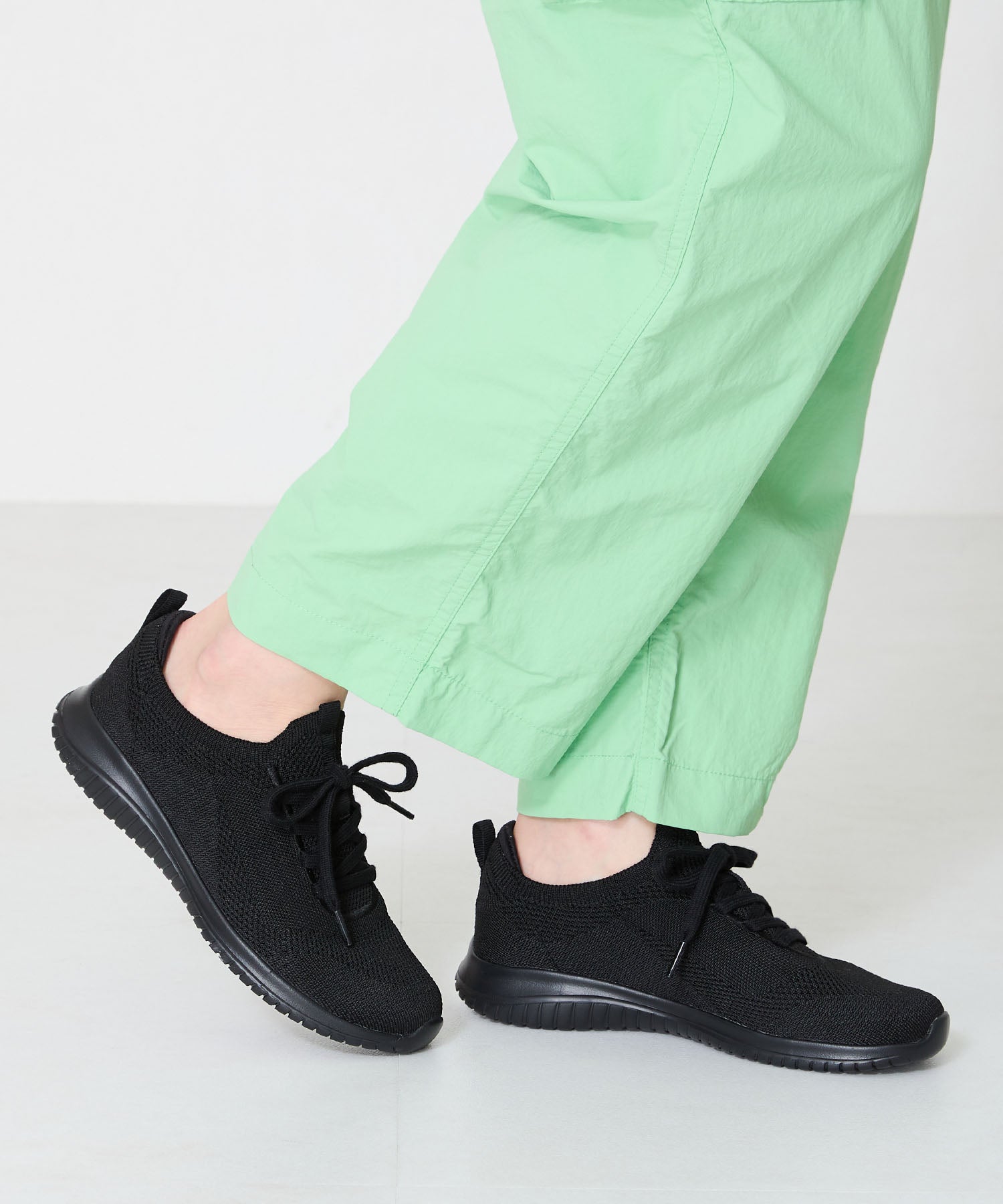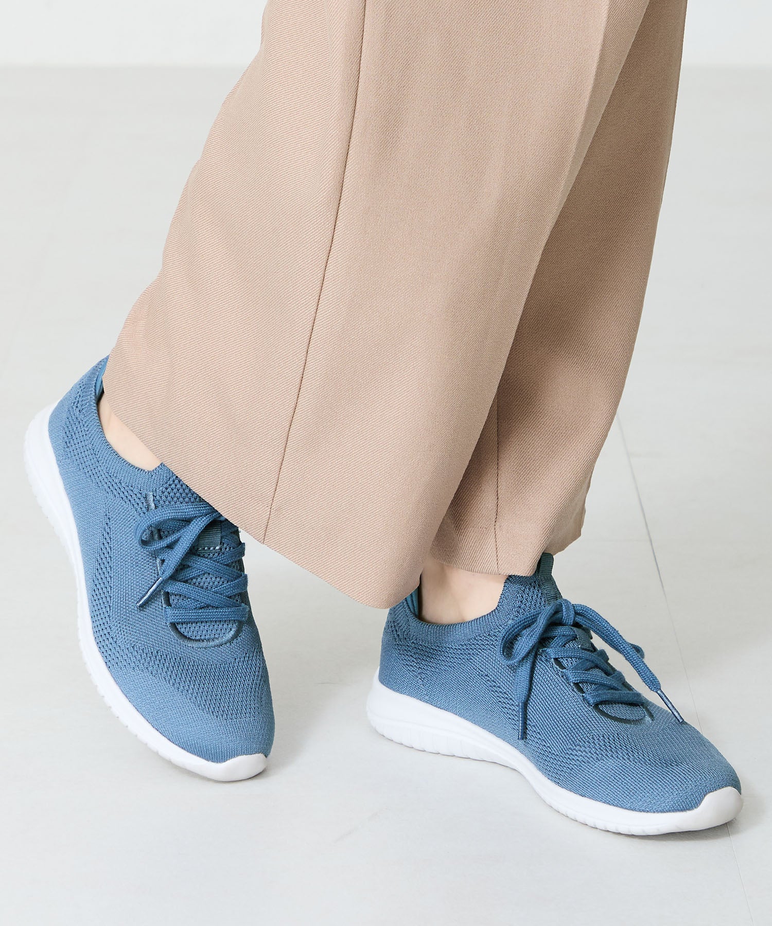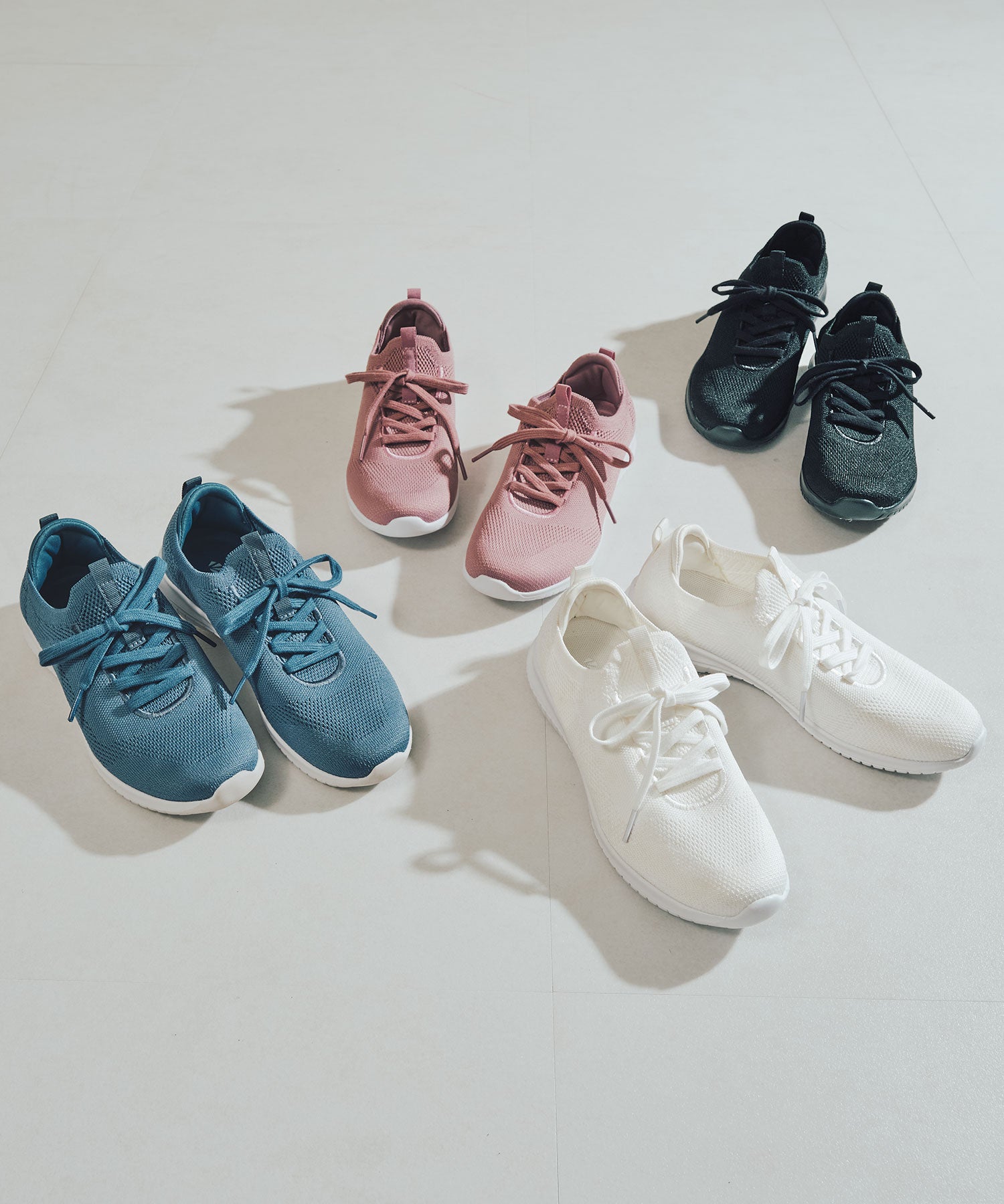 とことん軽い履き心地が魅力のニットスニーカーにレースアップタイプが登場。靴紐で甲を調節できるので自分の足に合わせてフィット感を高められる仕様に。さらにアッパー全体が伸縮性のあるニット素材で足当たりが良くソールは歩きやすいよう返りの良い設計でストレスフリーな履き心地。靴自体がとにかく軽いのでタウンユースだけでなくアクティブなお出かけシーンにも活躍してくれそう。
