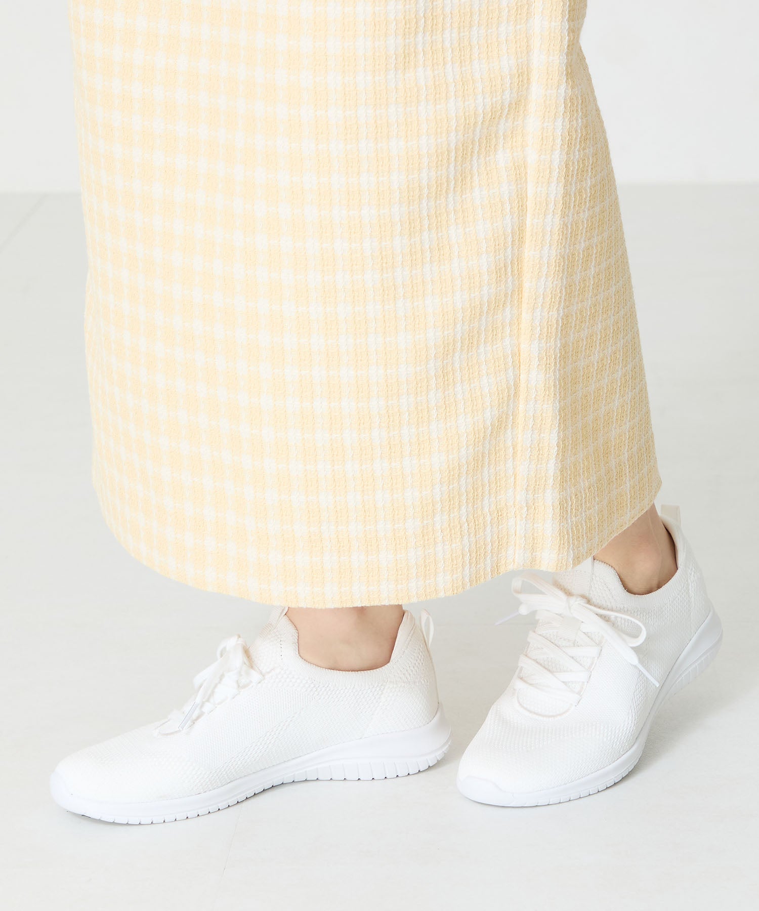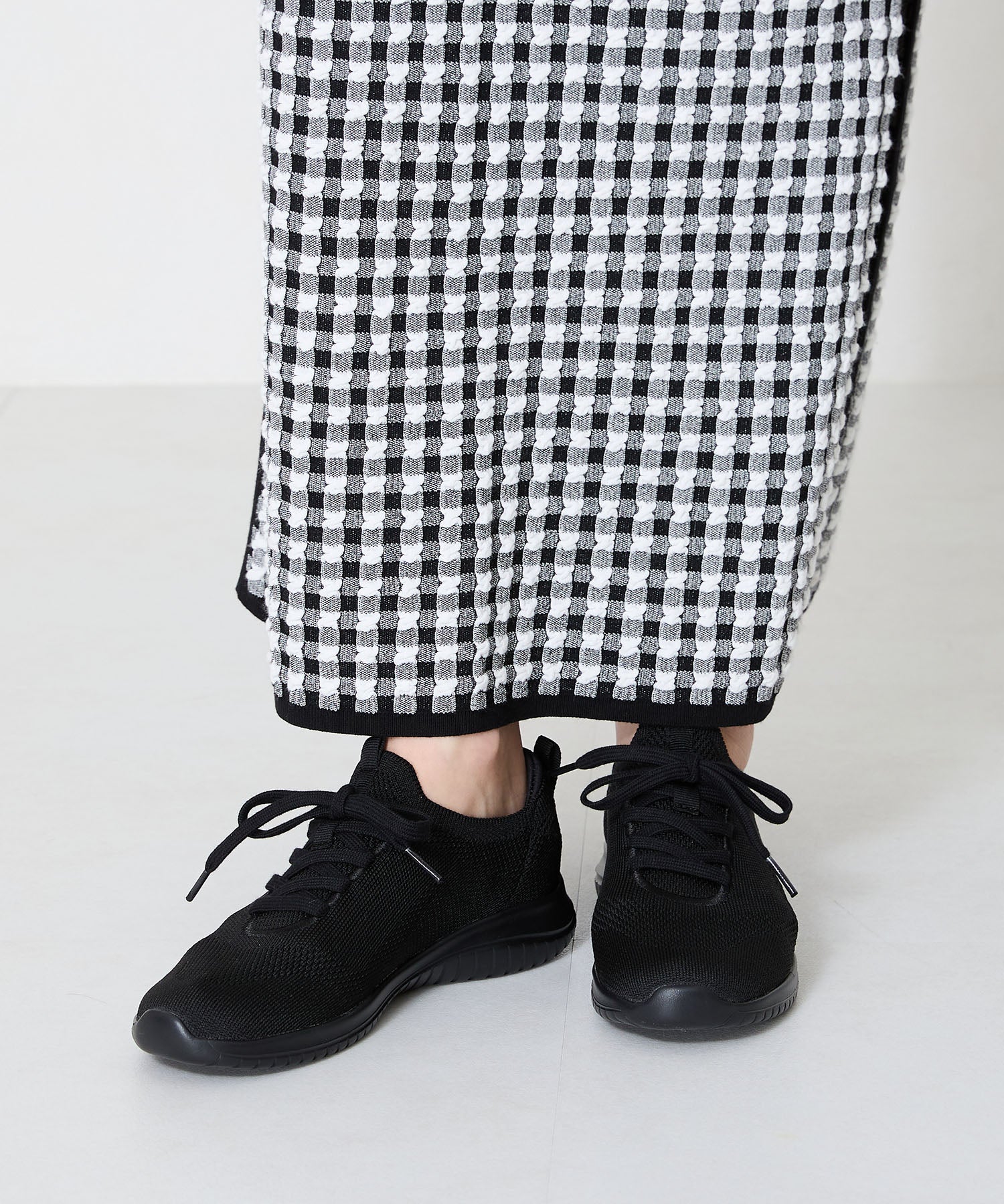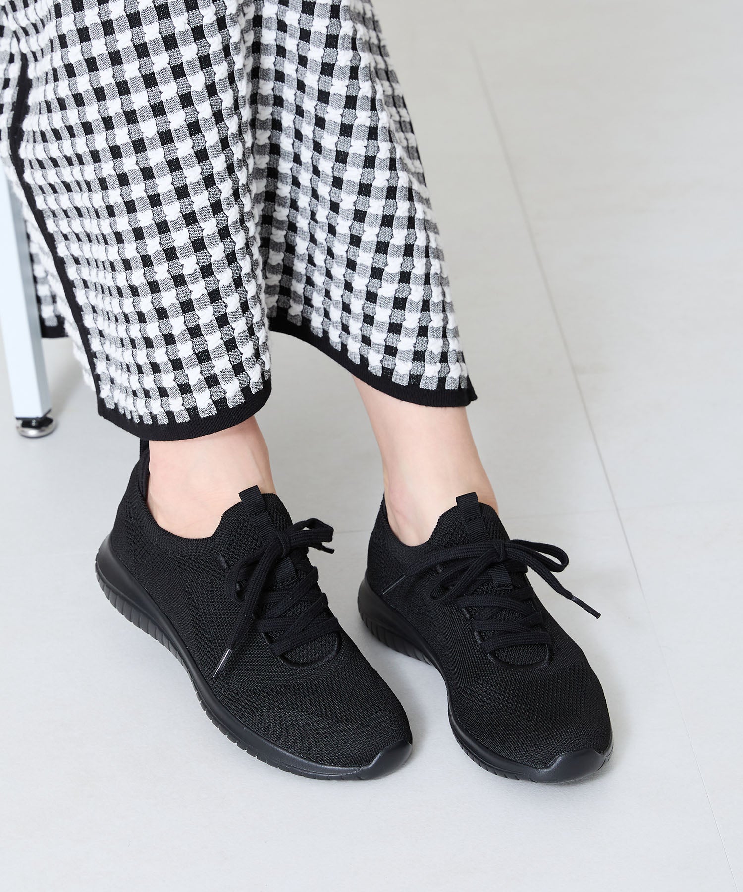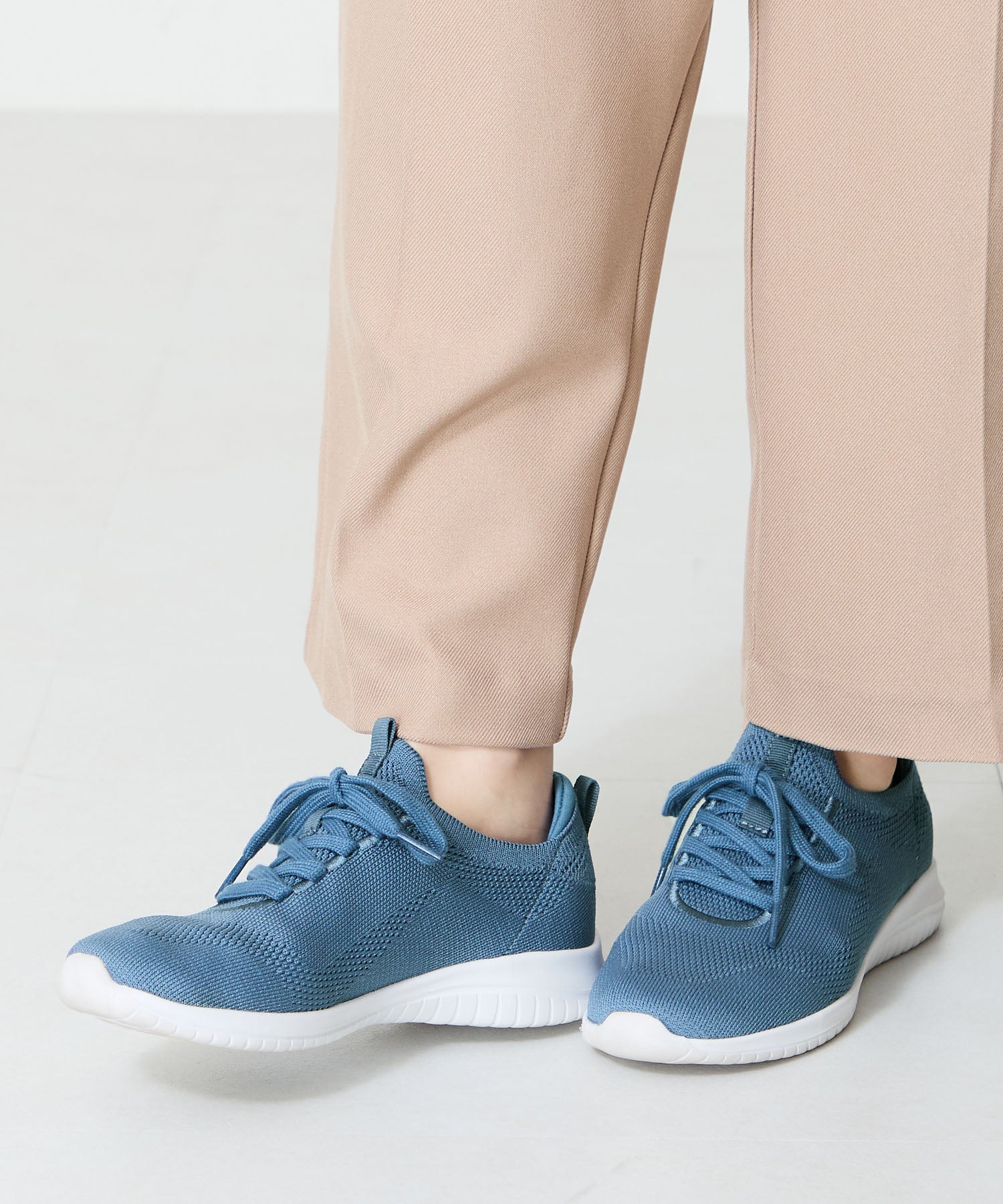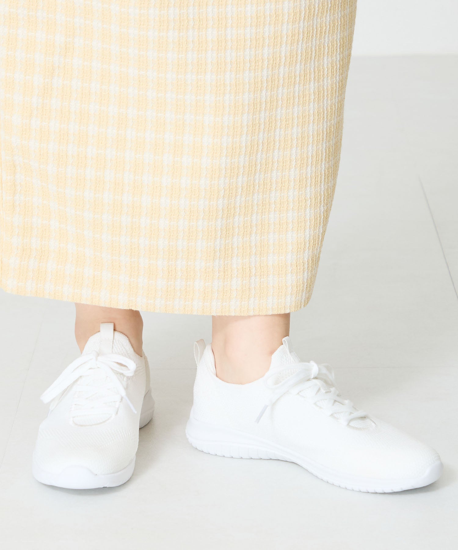 とことん軽い履き心地が魅力のニットスニーカーにレースアップタイプが登場。靴紐で甲を調節できるので自分の足に合わせてフィット感を高められる仕様に。さらにアッパー全体が伸縮性のあるニット素材で足当たりが良くソールは歩きやすいよう返りの良い設計でストレスフリーな履き心地。靴自体がとにかく軽いのでタウンユースだけでなくアクティブなお出かけシーンにも活躍してくれそう。