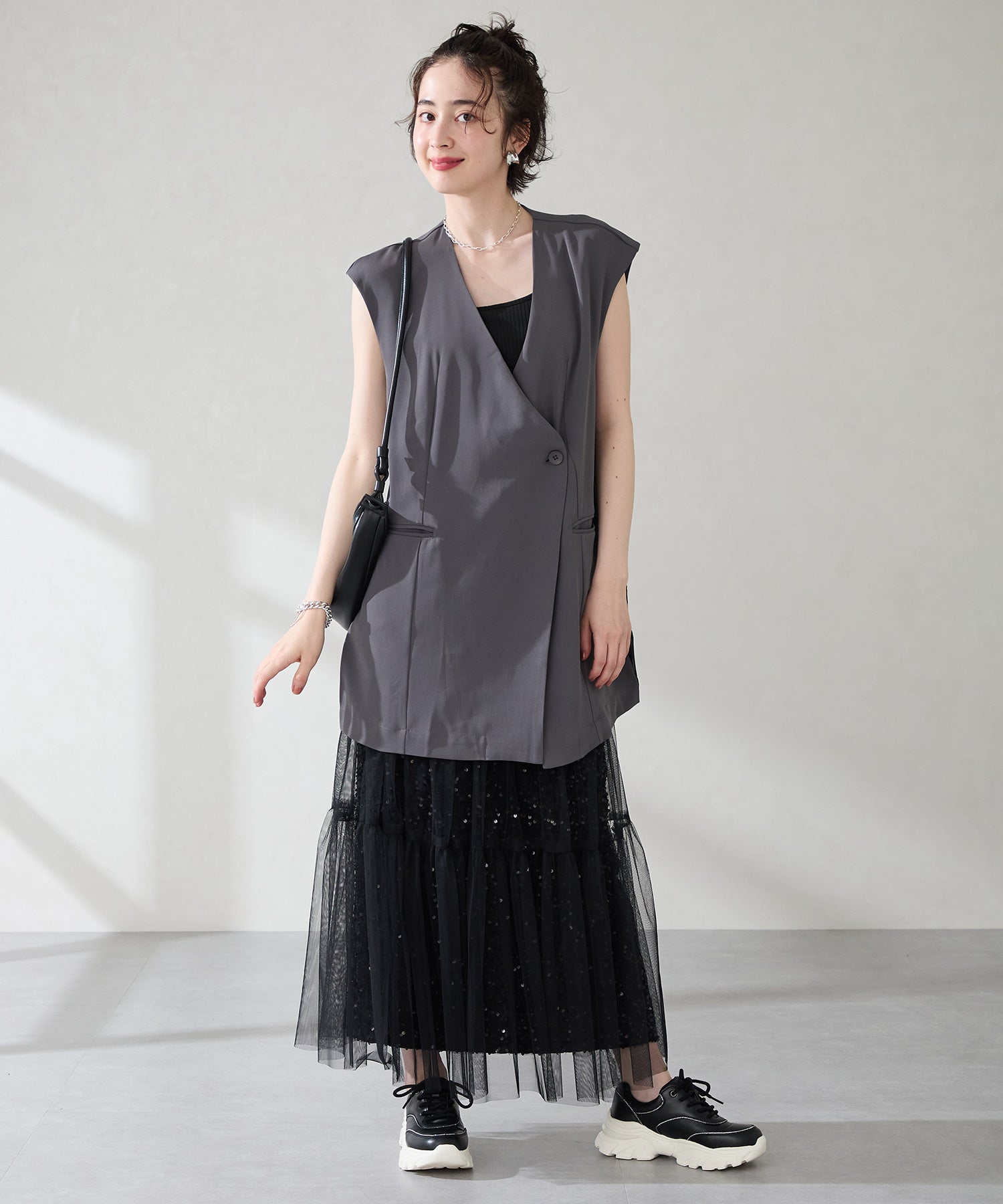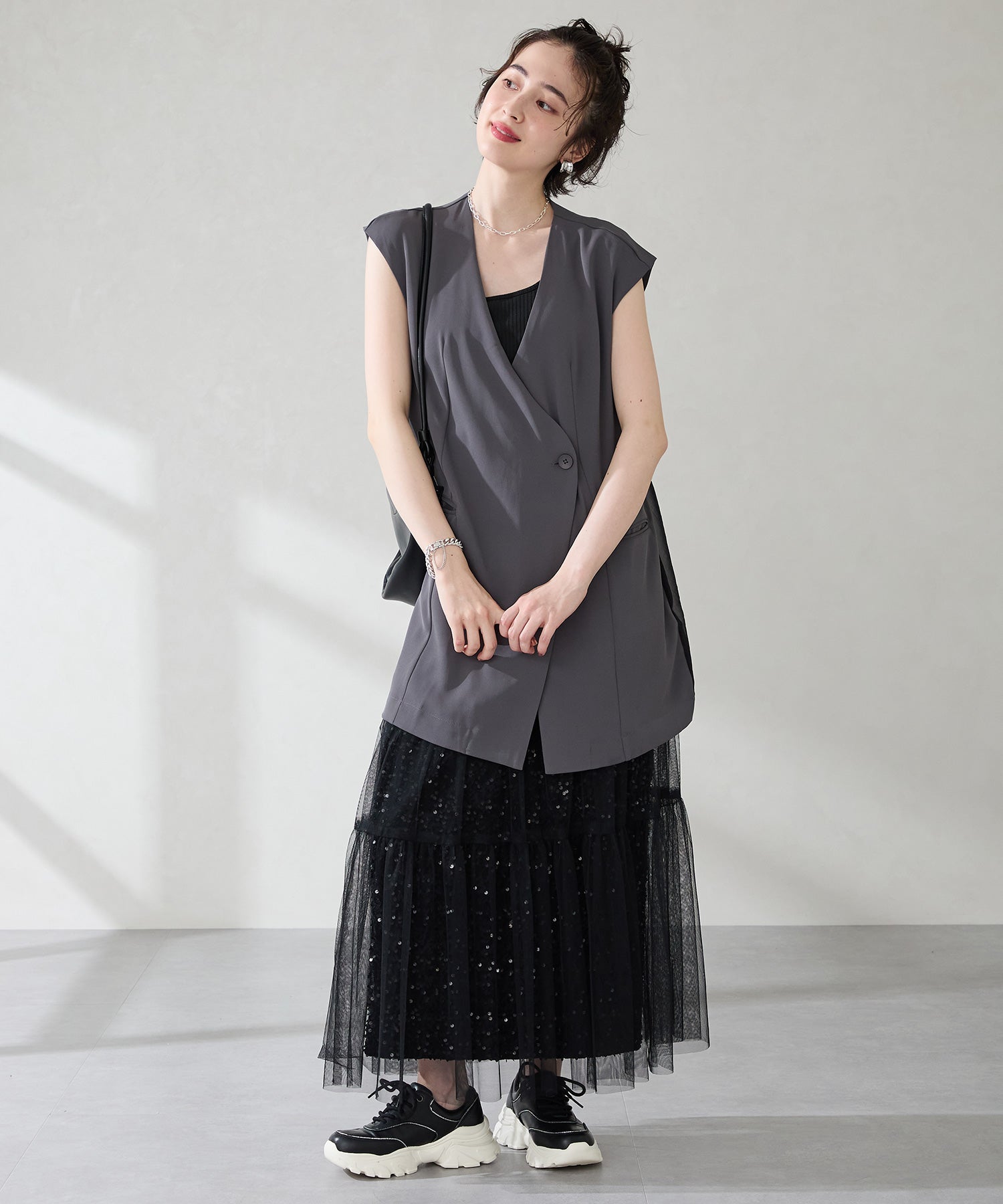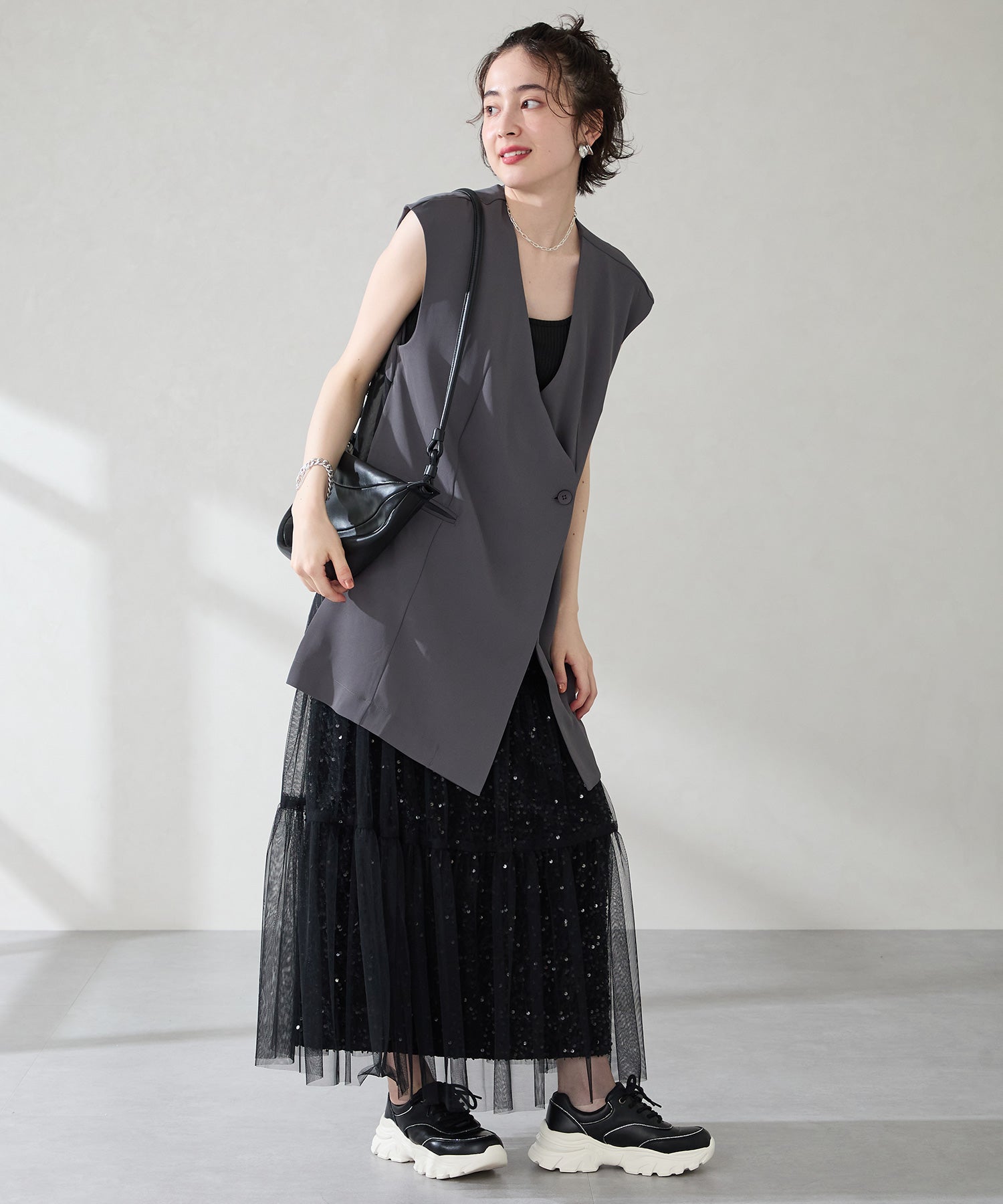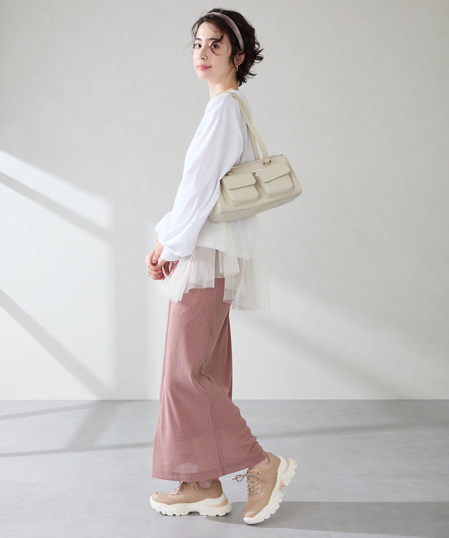 ワントーンのカラーリングの上にキラリと輝くラインストーンが目を引く、大人の華やかさを纏った1足。あえて凹凸感のある厚底ソールを組み合わせることでカジュアルダウンさせているのでフェミニンなコーデはもちろん、デニムなどパンツスタイルとも相性抜群。ラインストーンが際立つブラックと、ヌーディーなカラーがレディライクなベージュの2色展開。