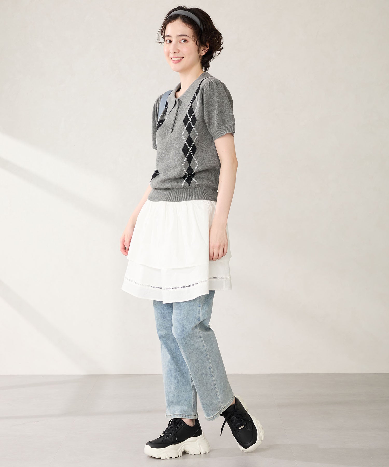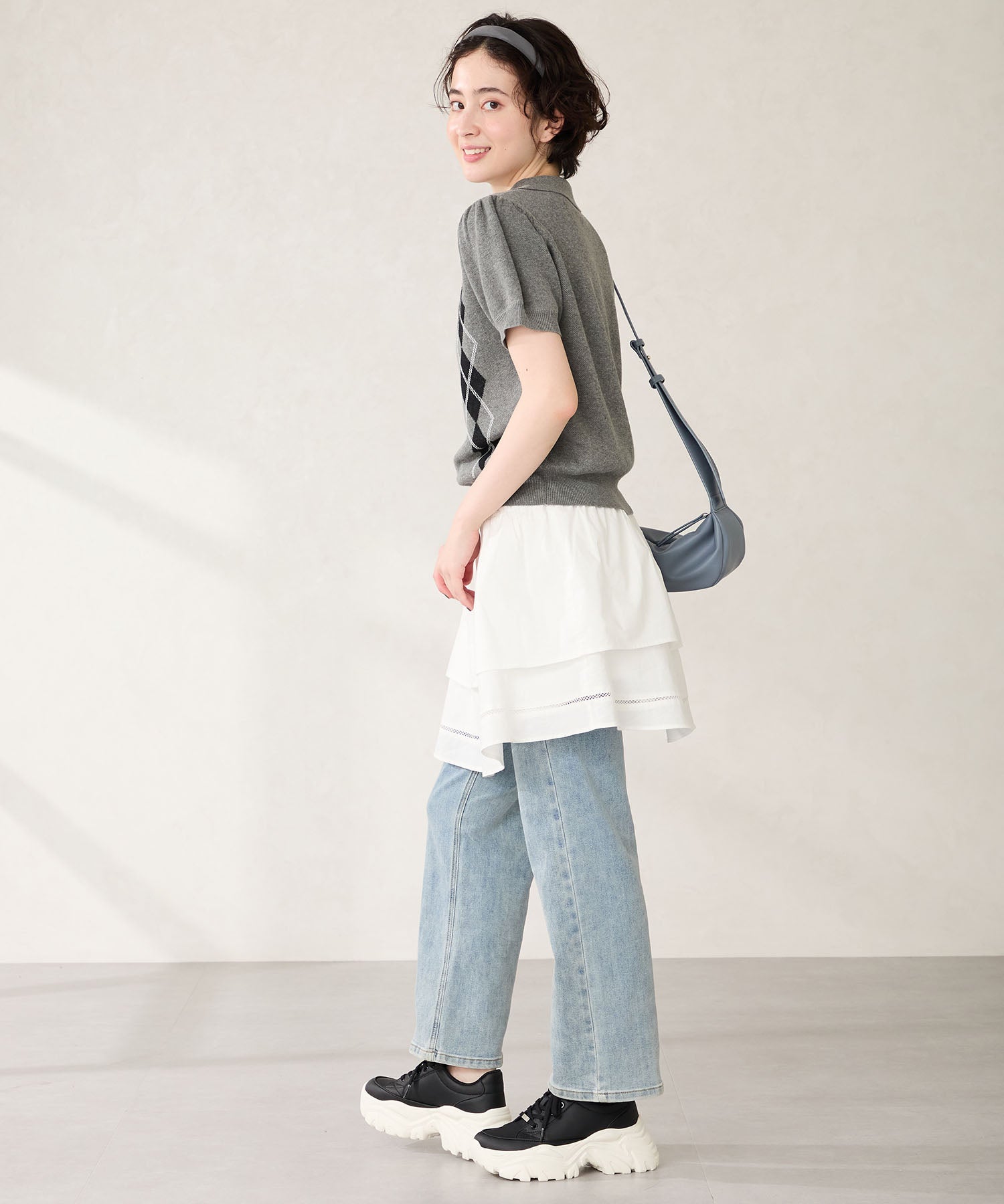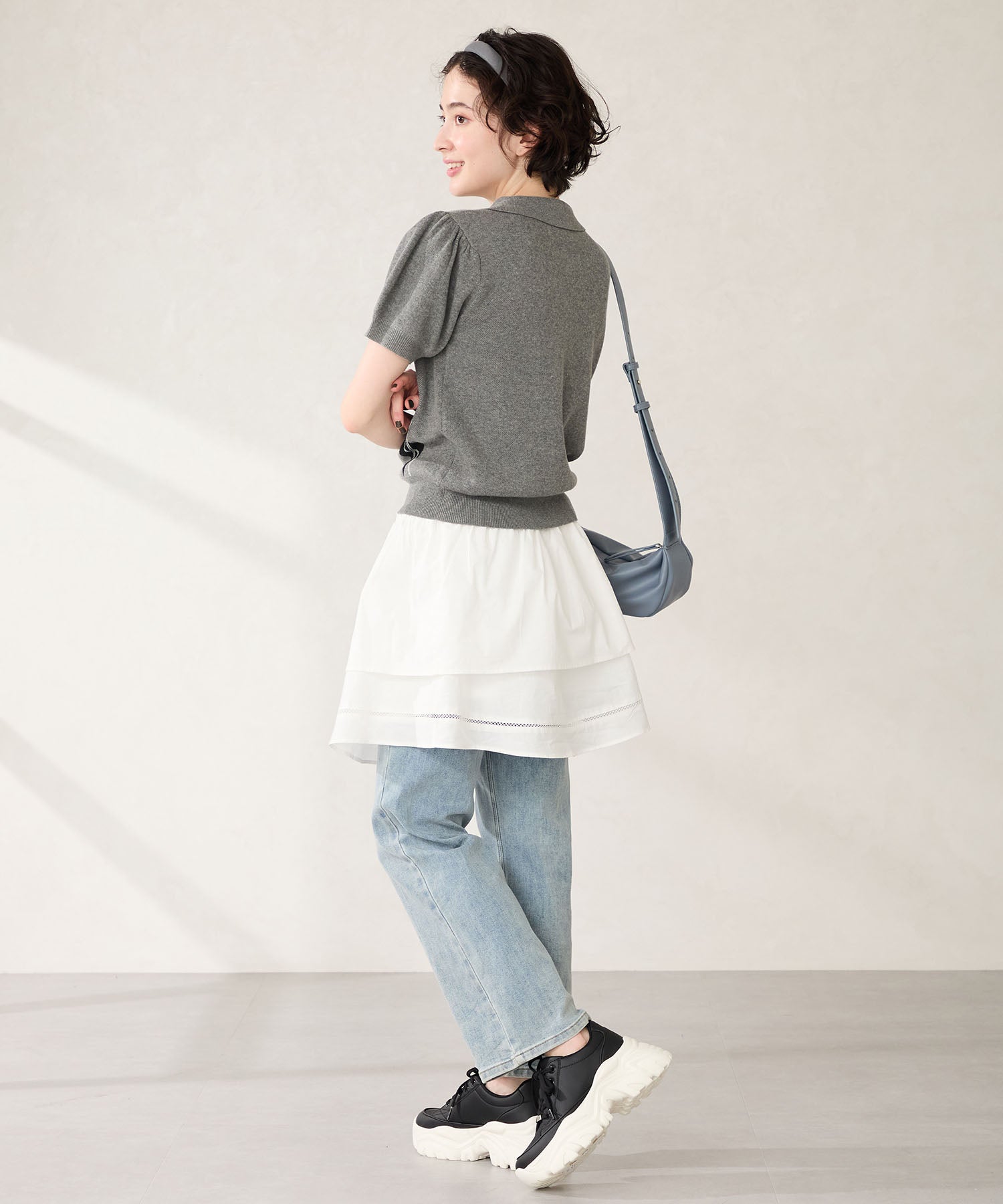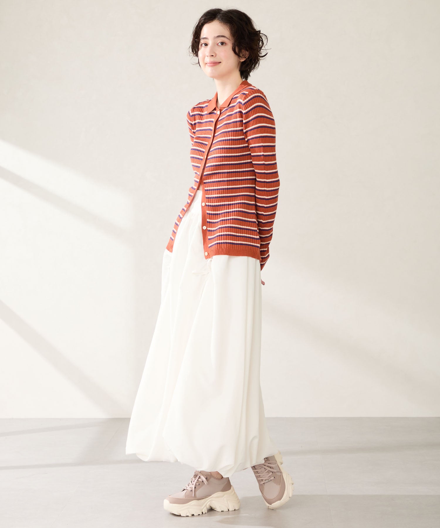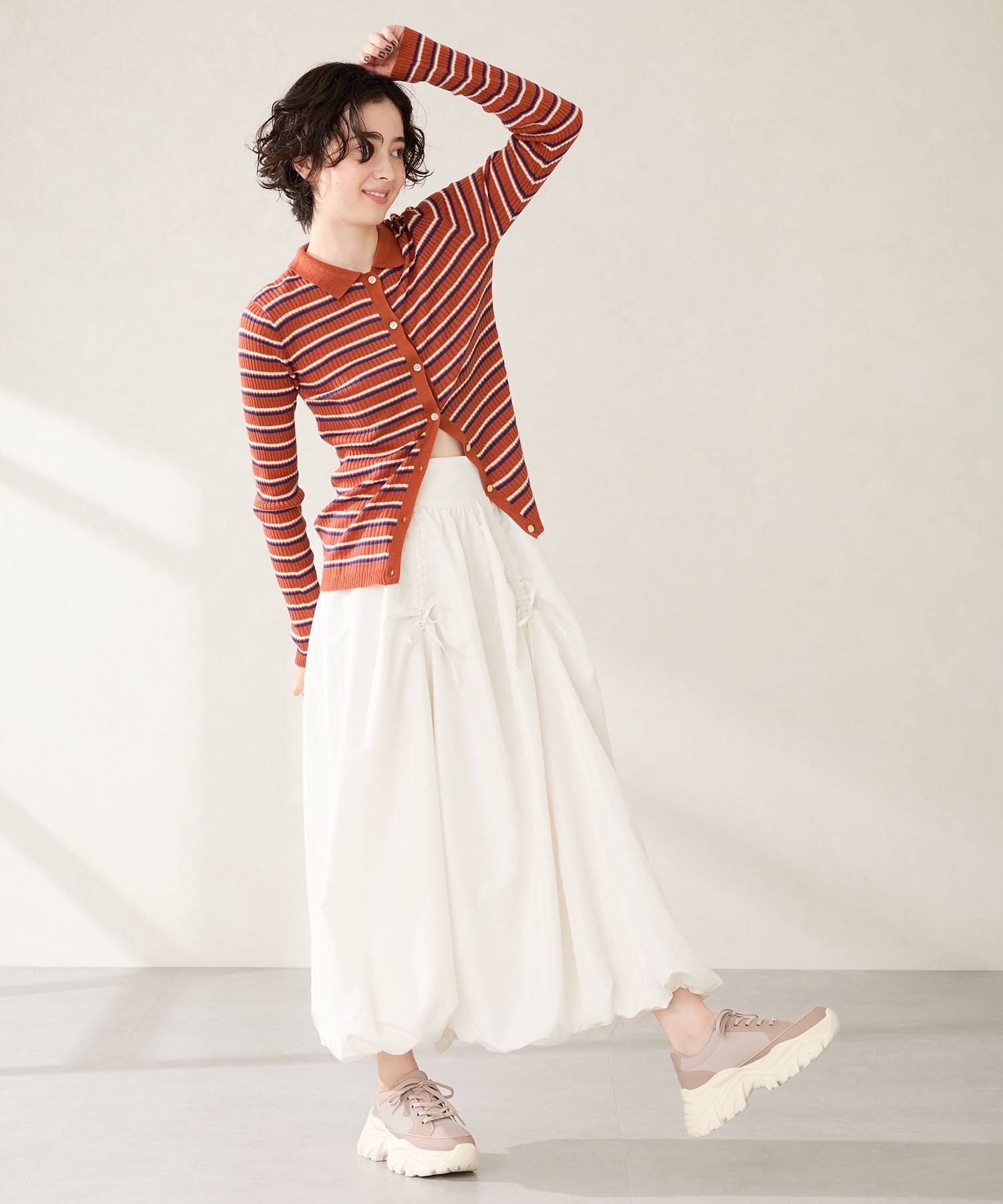とことんボリュームのあるソールがスタイルアップを叶えてくれるスニーカーは、オリジナルの金具パーツでアクセントを効かせた1足。インパクトのあるソールも見た目以上に軽く、全色ホワイトに統一することで重たく見えないのもポイント。切替パーツが少なくすっきりとしたデザインに、シボのある素材をアッパー全体に使用することで高級感のある仕上がりに。