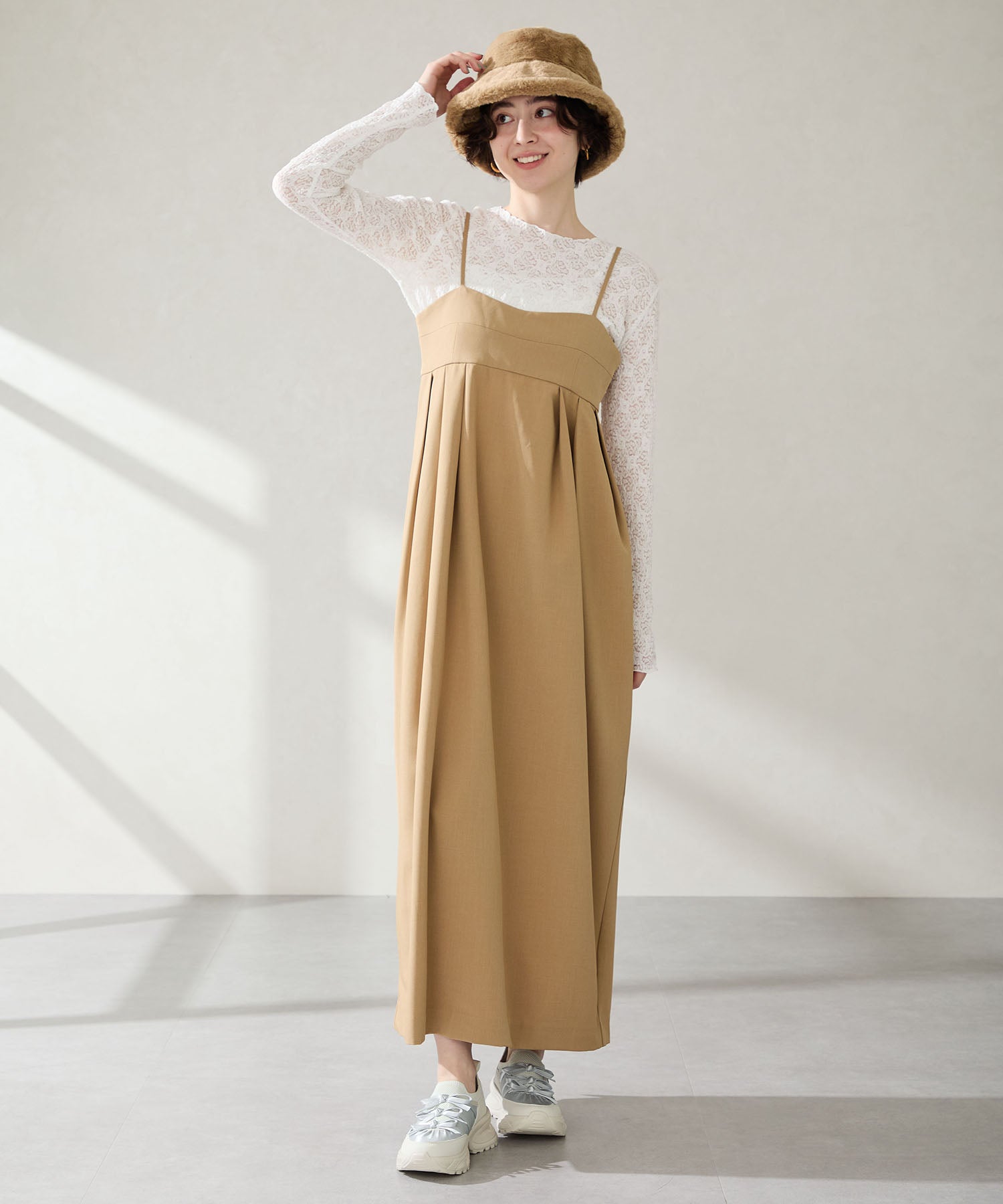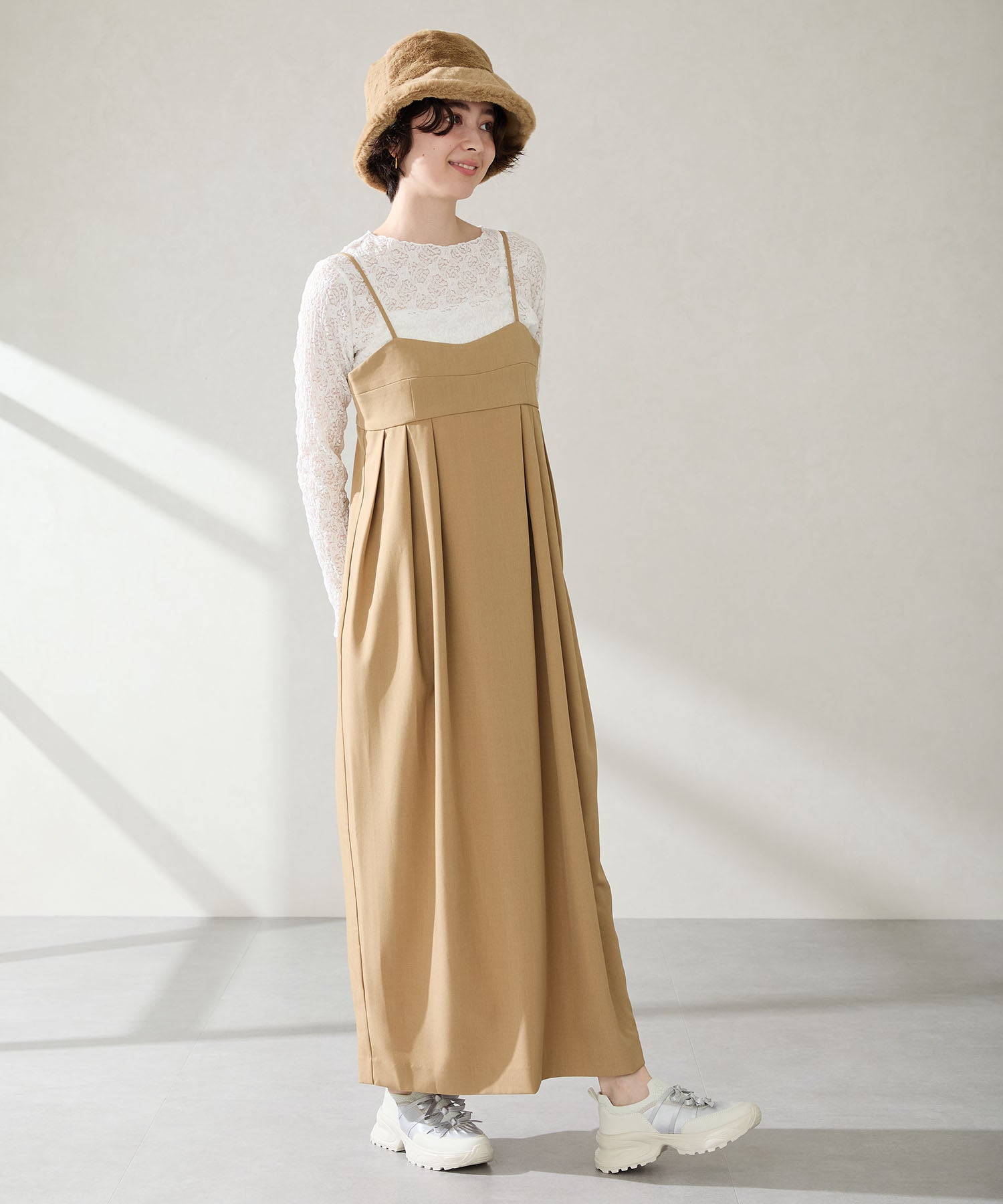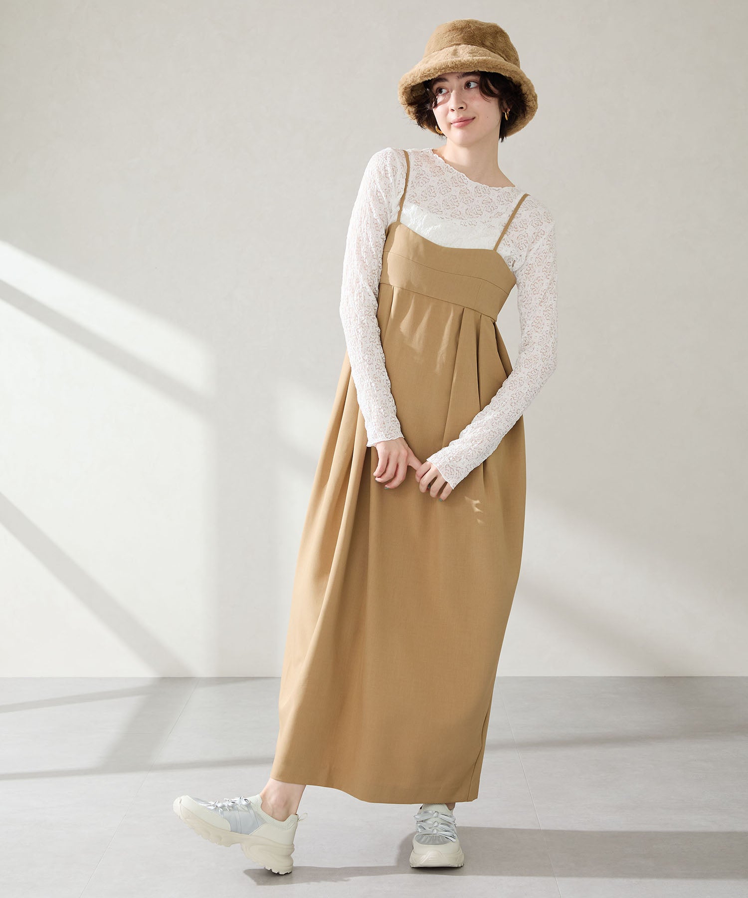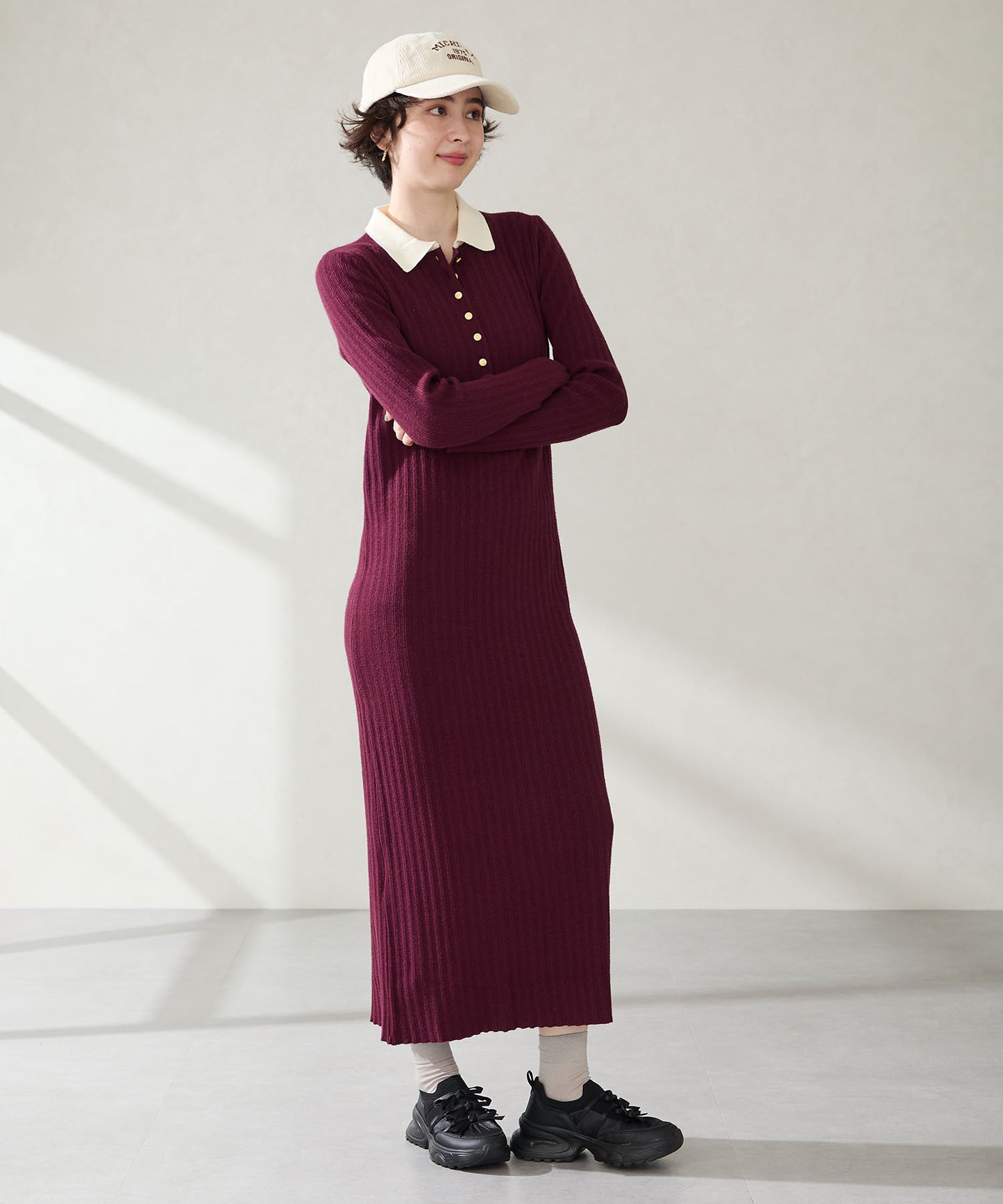 リボンディテールとギャザーがコーディネートに大人可愛い甘さをプラスしてくれる厚底スニーカー。しっかりホールドしてくれる履き口部分のニットは伸縮性がありフィット感も◎。カジュアルにも合わせられるブラックと、フェミニンコーデにぴったりな淡いグレーとピンクのカラバリも可愛い。ガーリーに履きたい方はミニ丈で、甘さをおさえたい方はロング丈のボトムで合わせるがおすすめ。