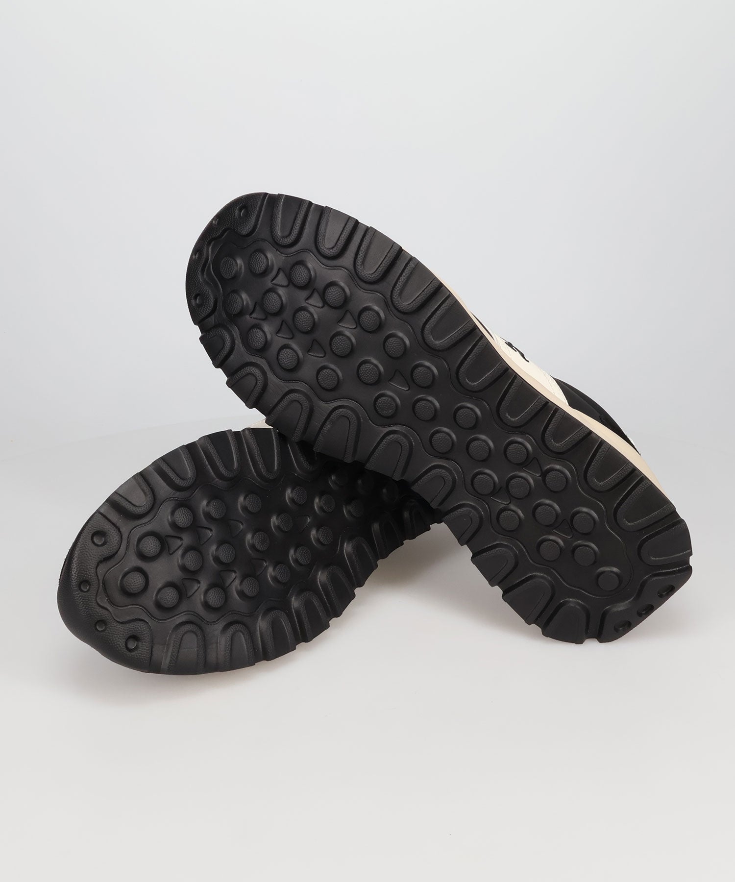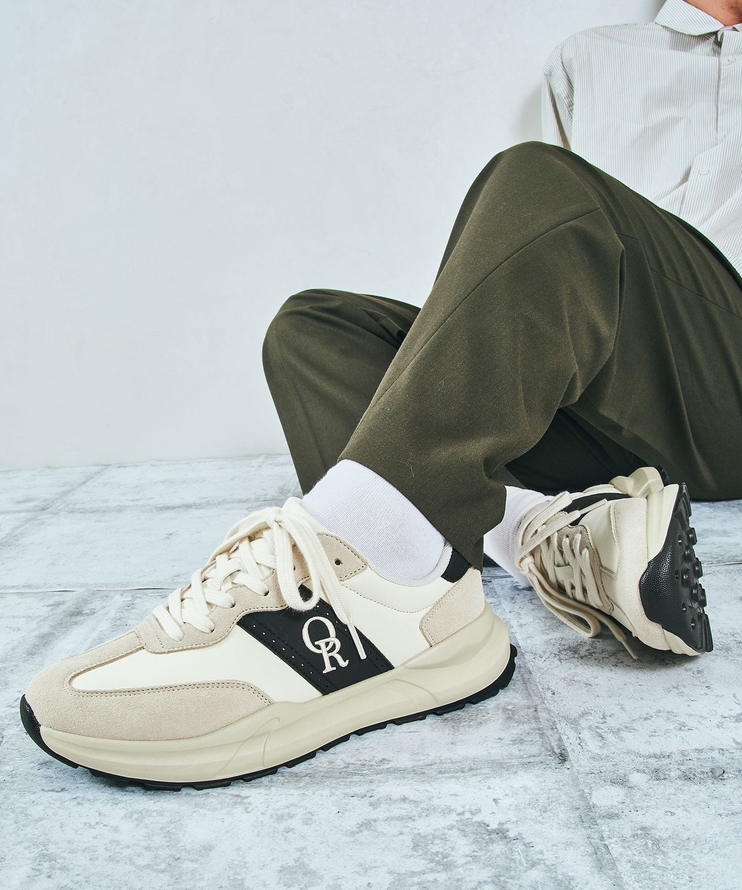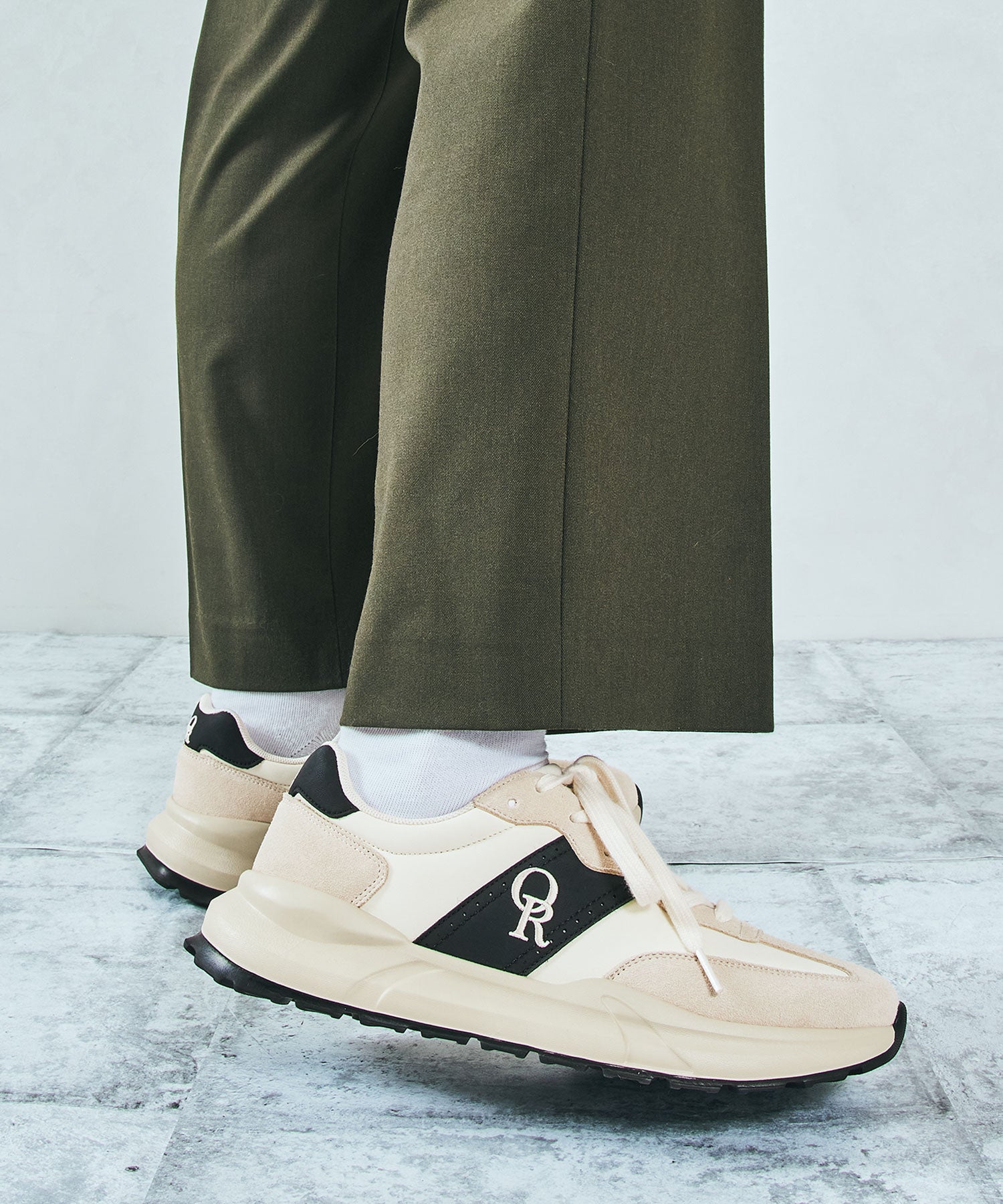 クラシックなジャーマンデザインを取り入れたスニーカーはスエード部分に本革を使用した高級感のある仕上がり。全体をワントーンでまとめつつもバイカラーのパーツでメリハリを付けて、サイドのロゴが全体を引き締めてくれる。シャープな細身のつま先シルエットにすることで都会的な雰囲気になり幅広いスタイリングに合う万能な1足。