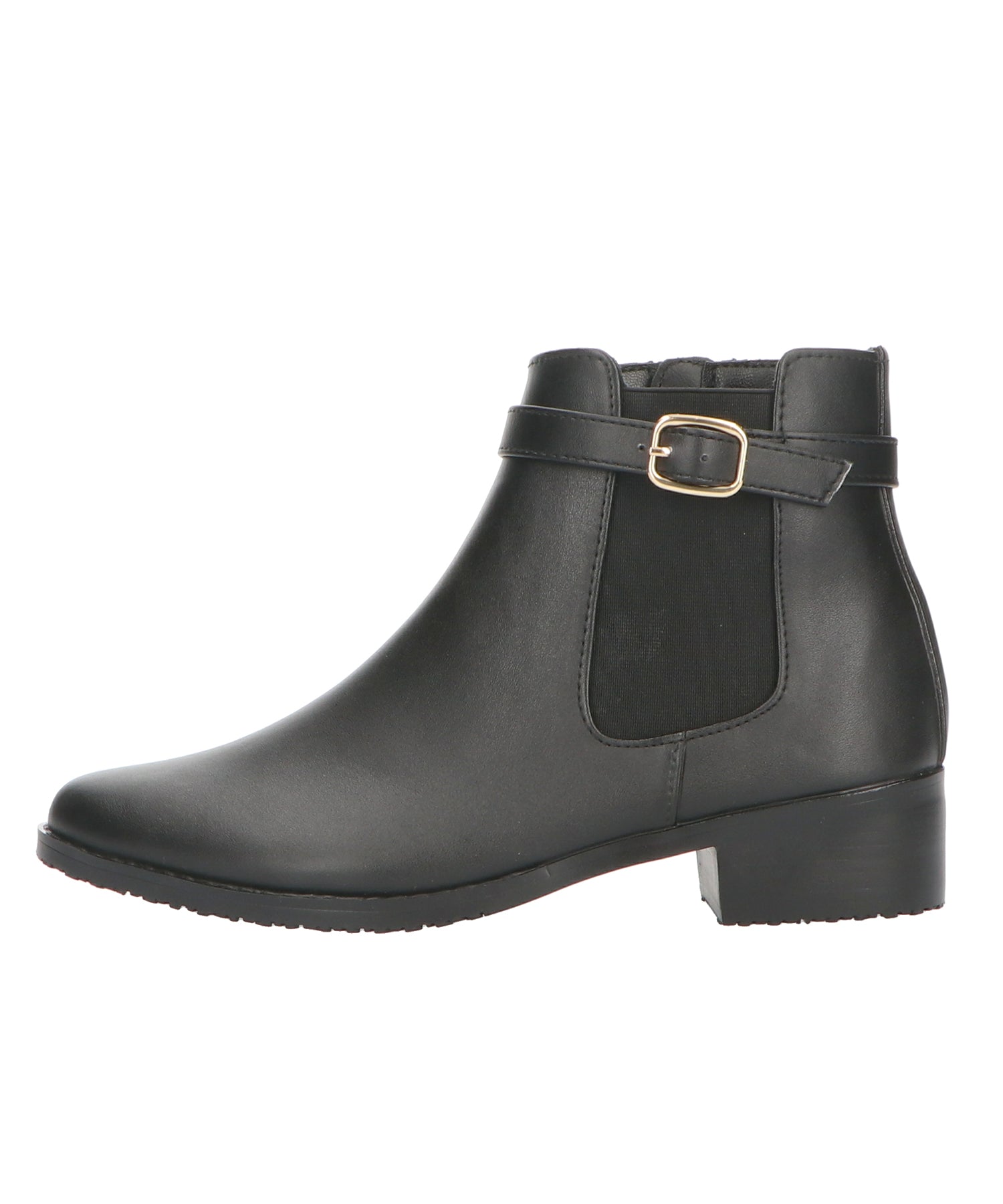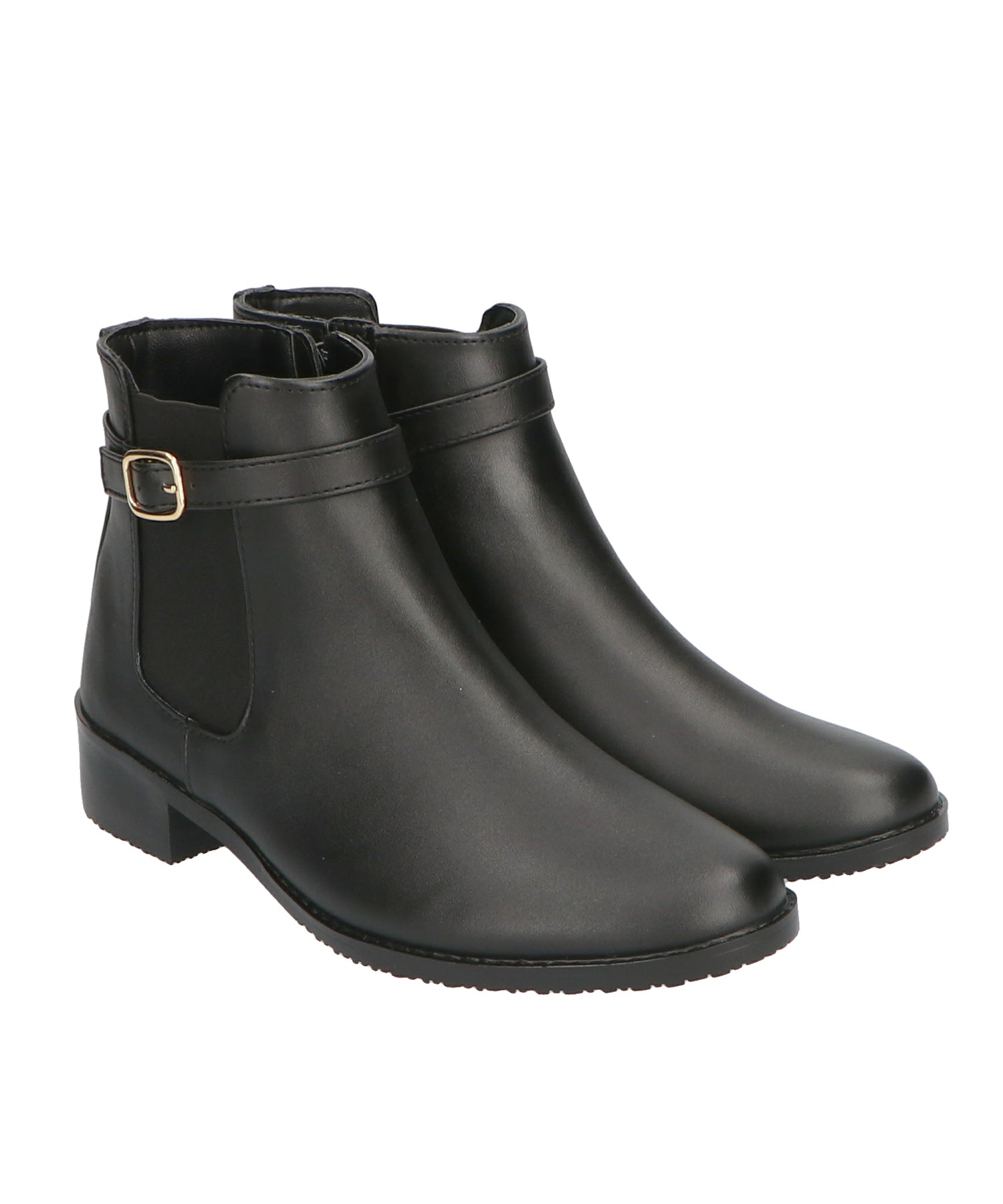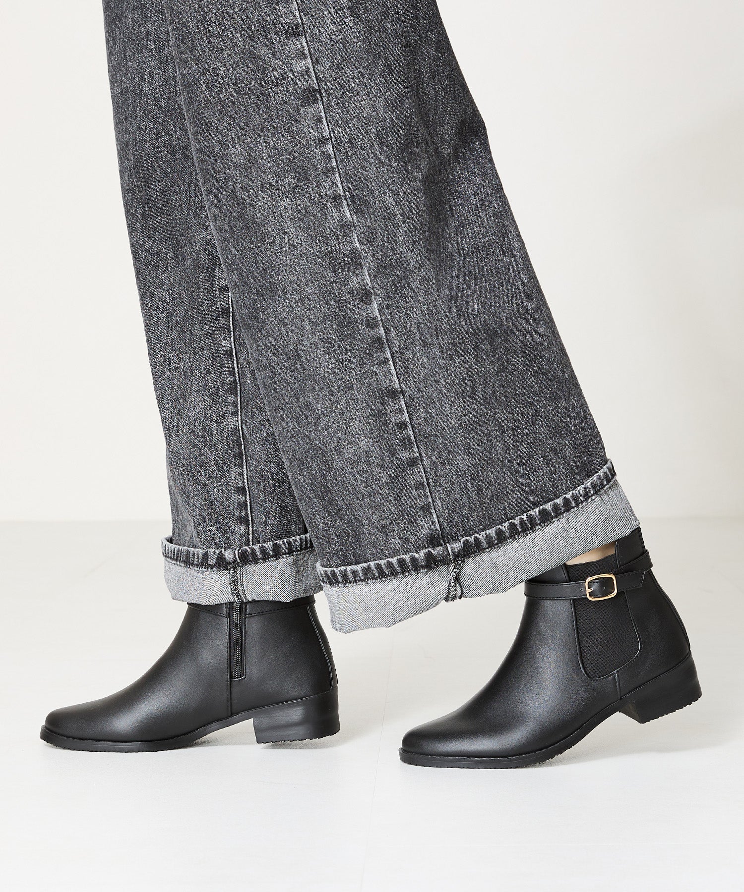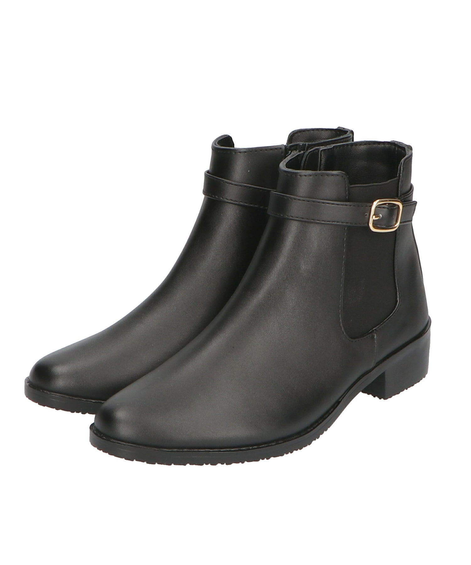 サイドの華奢なベルトとゴールドのバックルがポイントになり、レインブーツに見えないので晴雨兼用で履けるのが嬉しいアイテム。ファスナー位置を調整したことで浸水しにくく、雨の日も安心して履ける1足。ソールは滑りにくい仕様にオリジナルで設計。