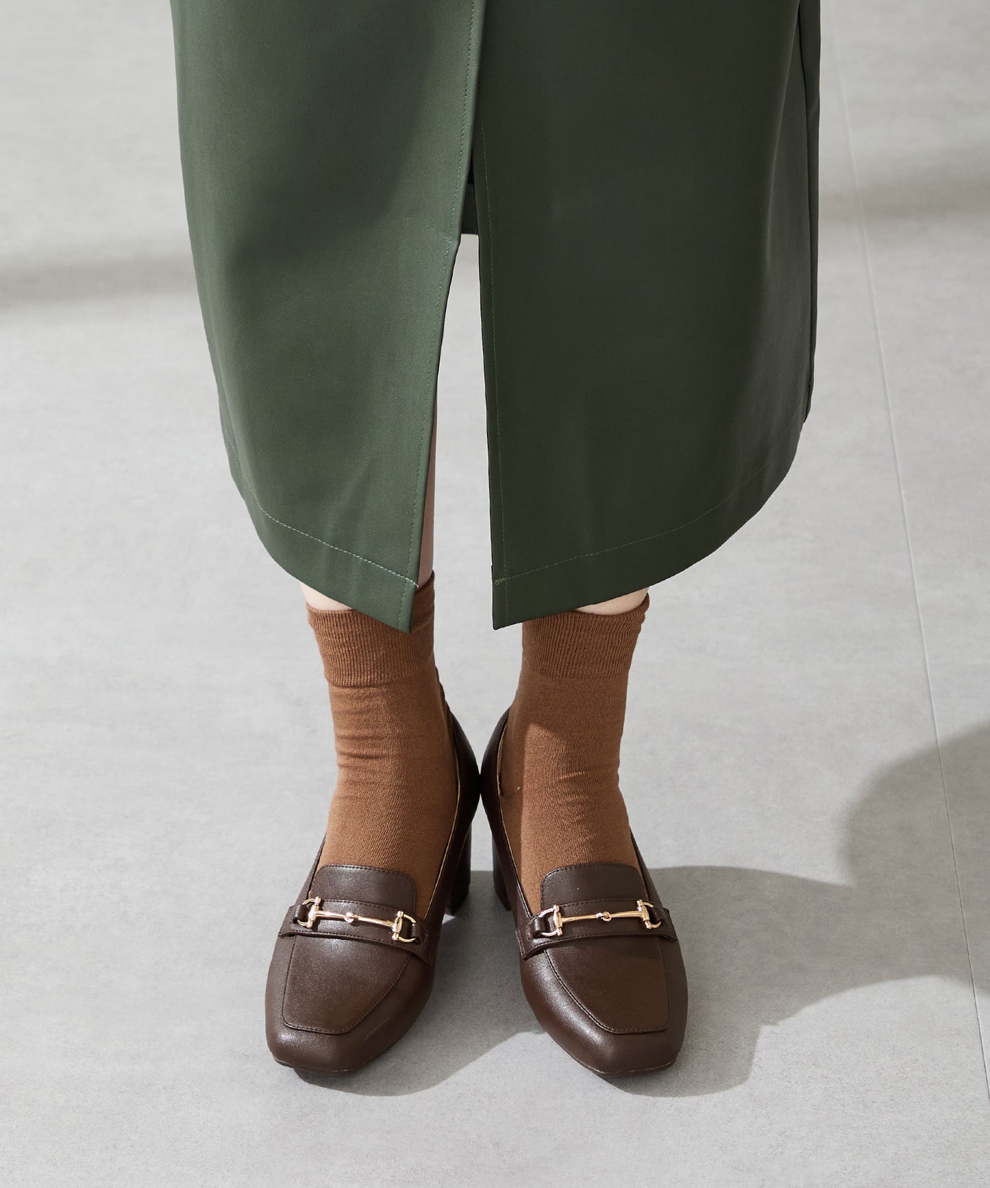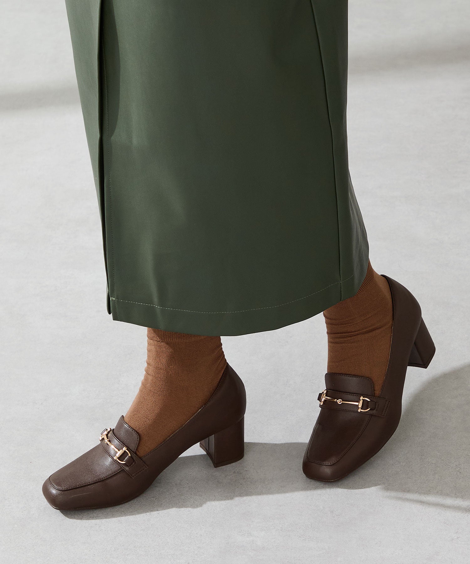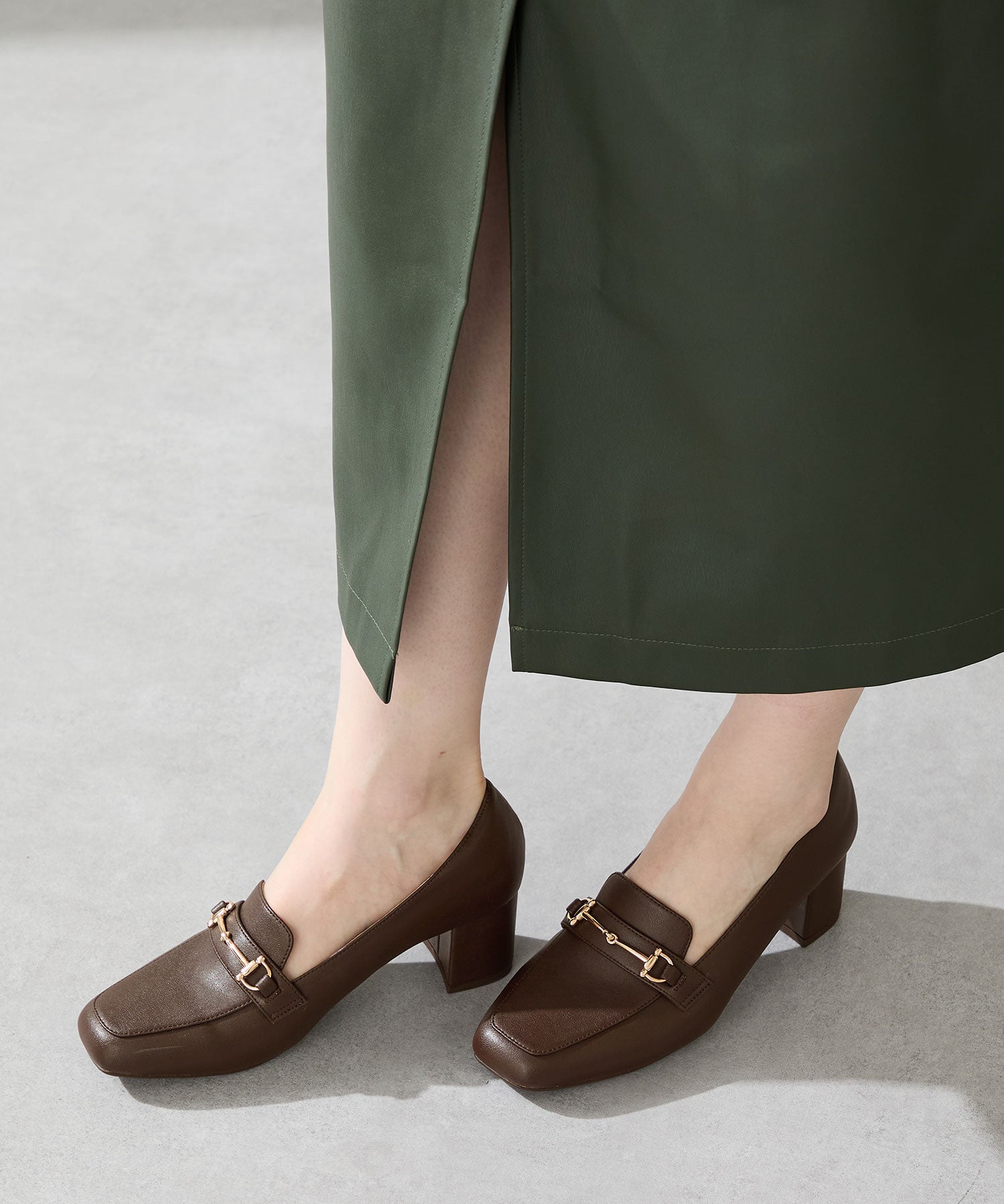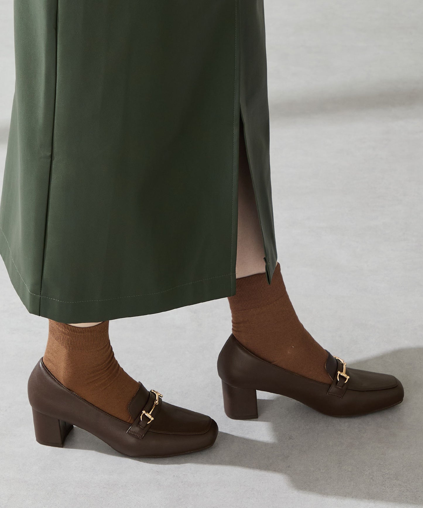 丸みのあるスクエアトゥが女性らしいヒールローファーは、履きやすさとシルエットにとことんこだわったアイテム。インソールに施された厚手のクッションが足の負担を軽減してくれるだけでなく、深めの履き口と踵クッションで脱げにくく、ヒール初心者でも挑戦しやすいのが嬉しいポイント。オンオフ問わず使えるデザインとカラバリで履き回し力も抜群。