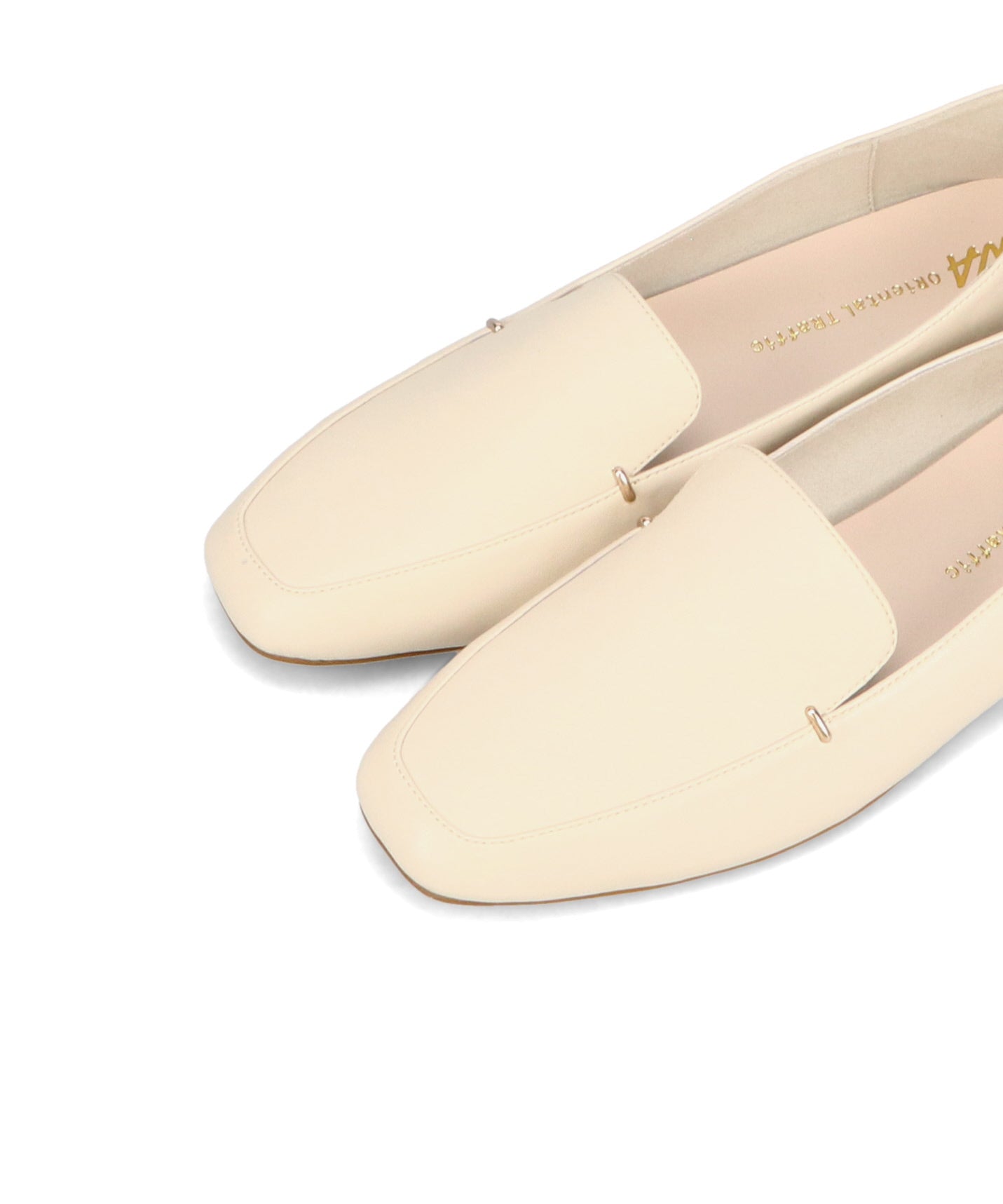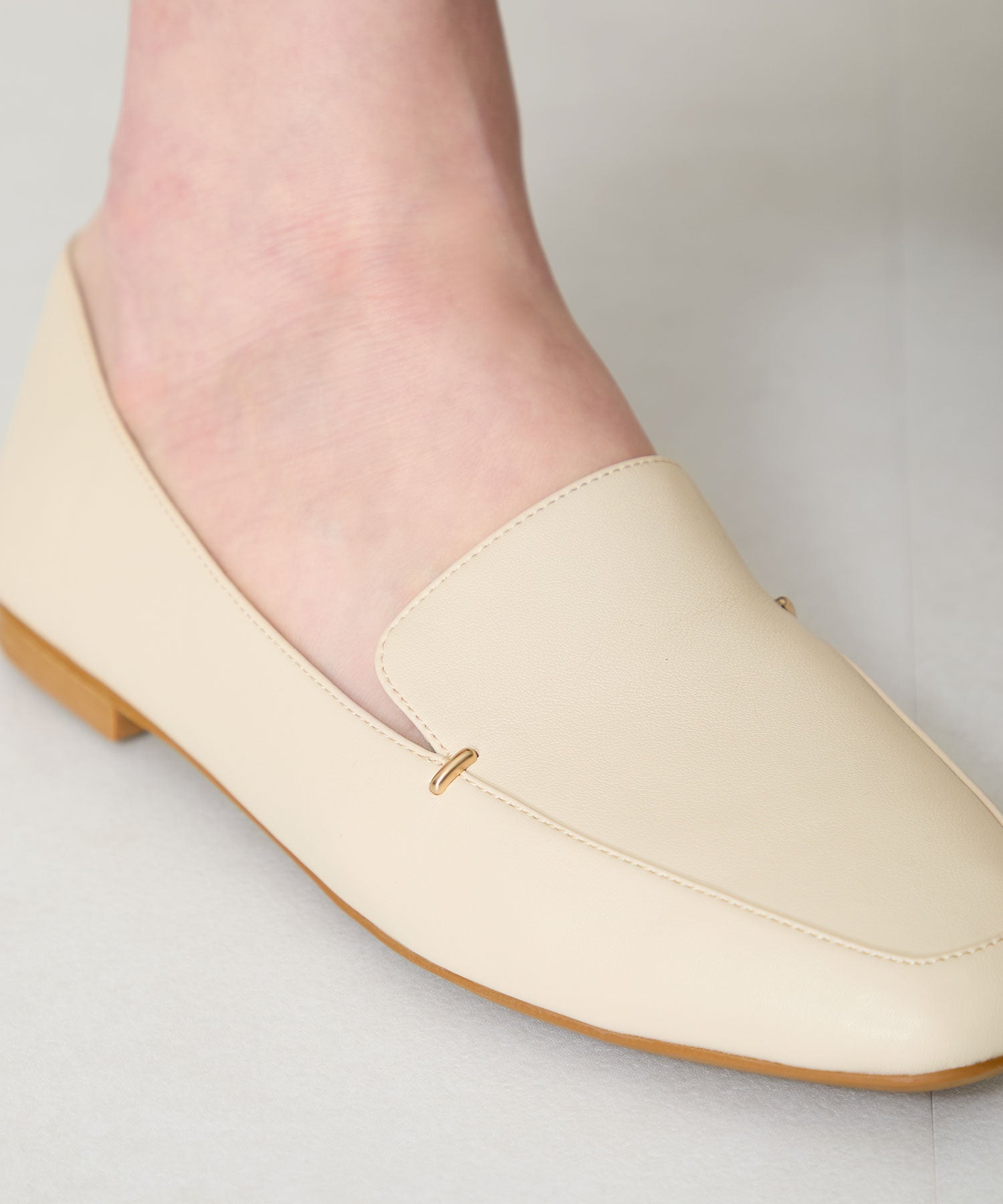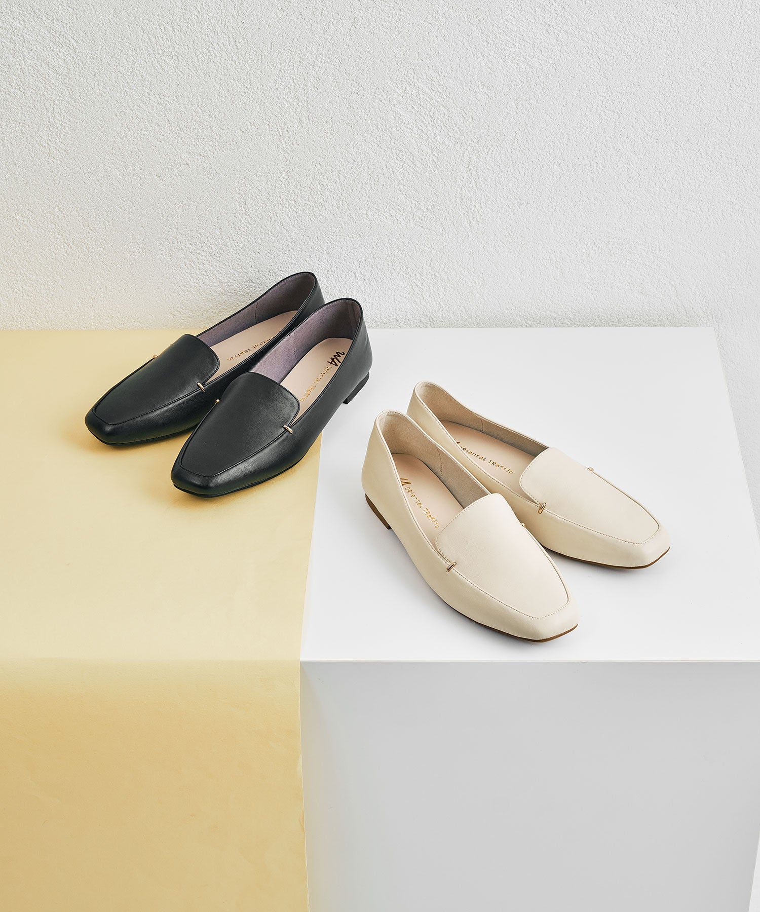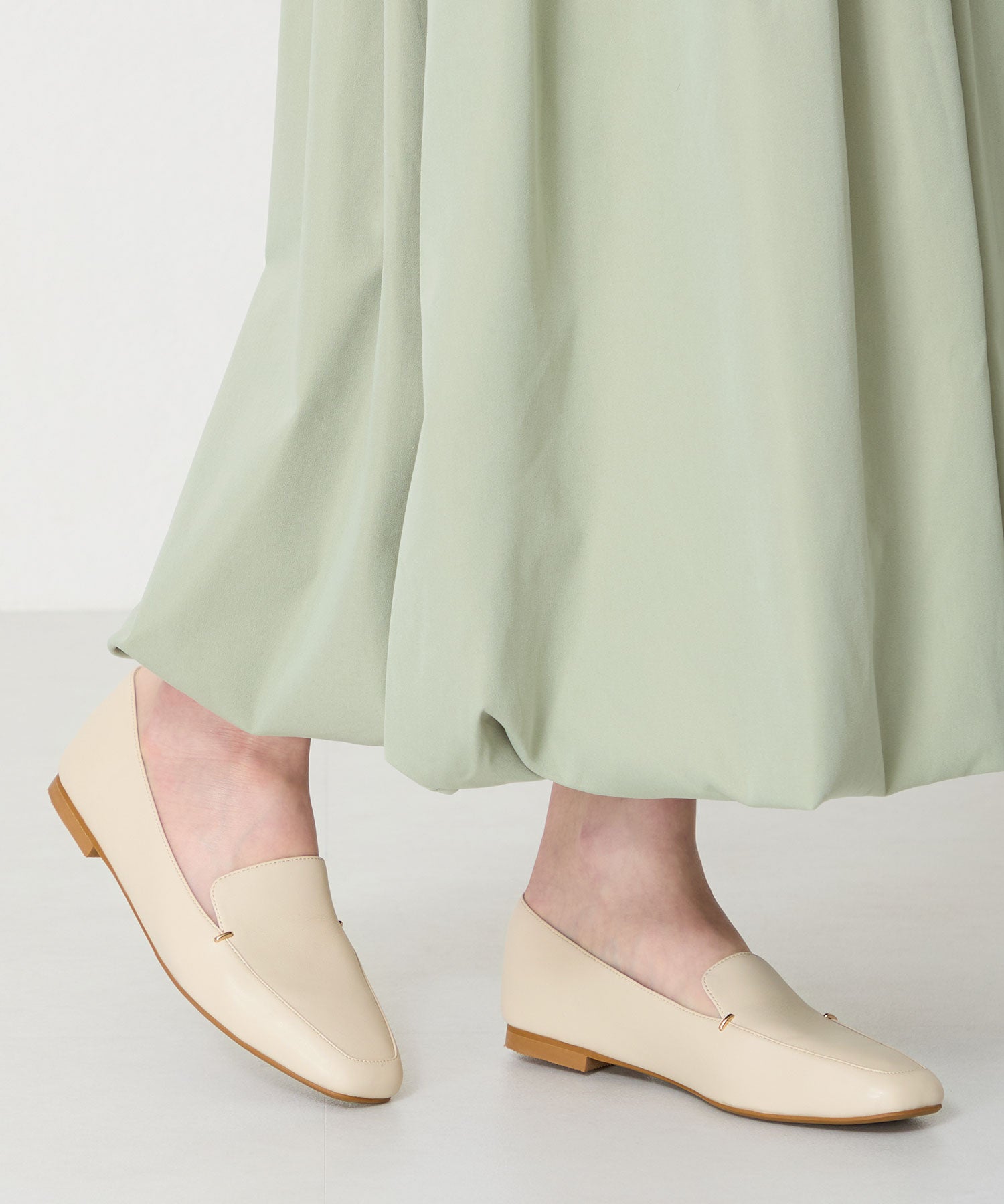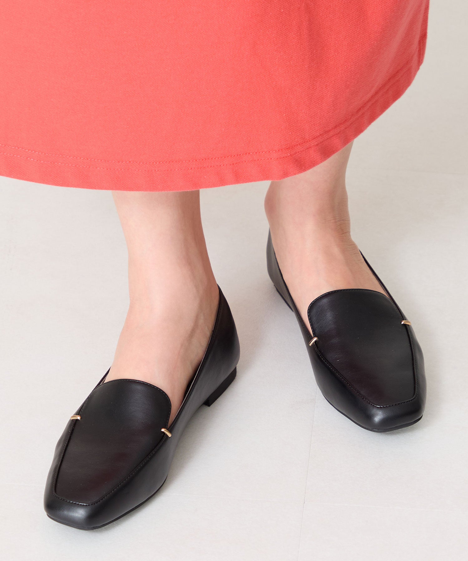 スクエアトゥがシャープな印象ながらも甲が深めで安心感のある履き心地のオペラパンプスは履き口両サイドに小ぶりなゴールドパーツを付けてアクセントに。厚みのあるクッションを全体に入れて足裏が痛くなりにくいので通勤用やたくさん歩く日にもおすすめ。足元を明るい印象に仕上げてくれるベージュとボトムスの色を選ばない万能カラーのブラックの2色展開。