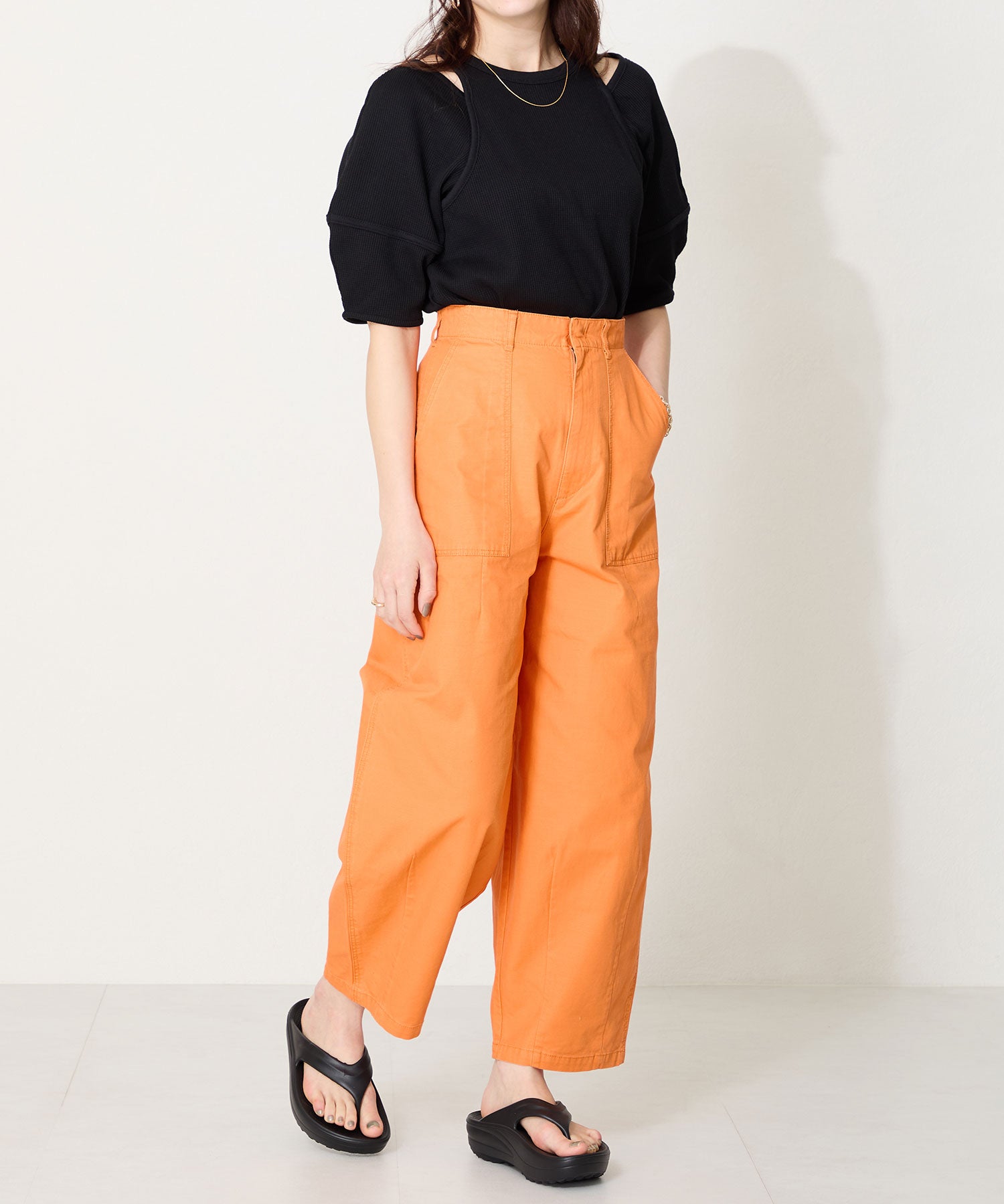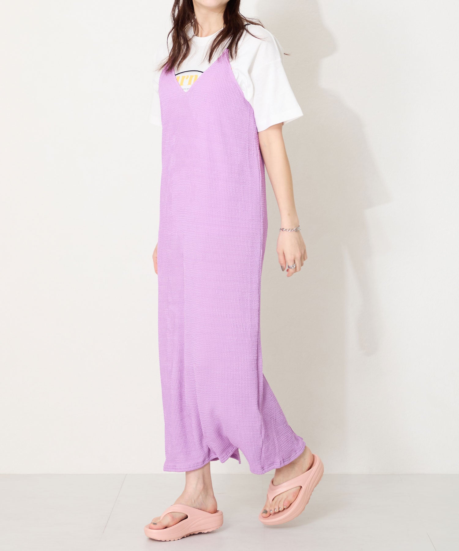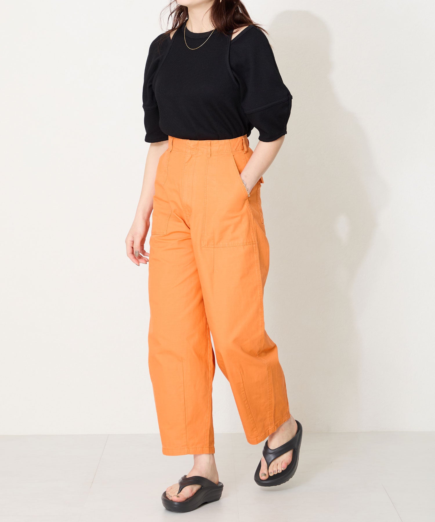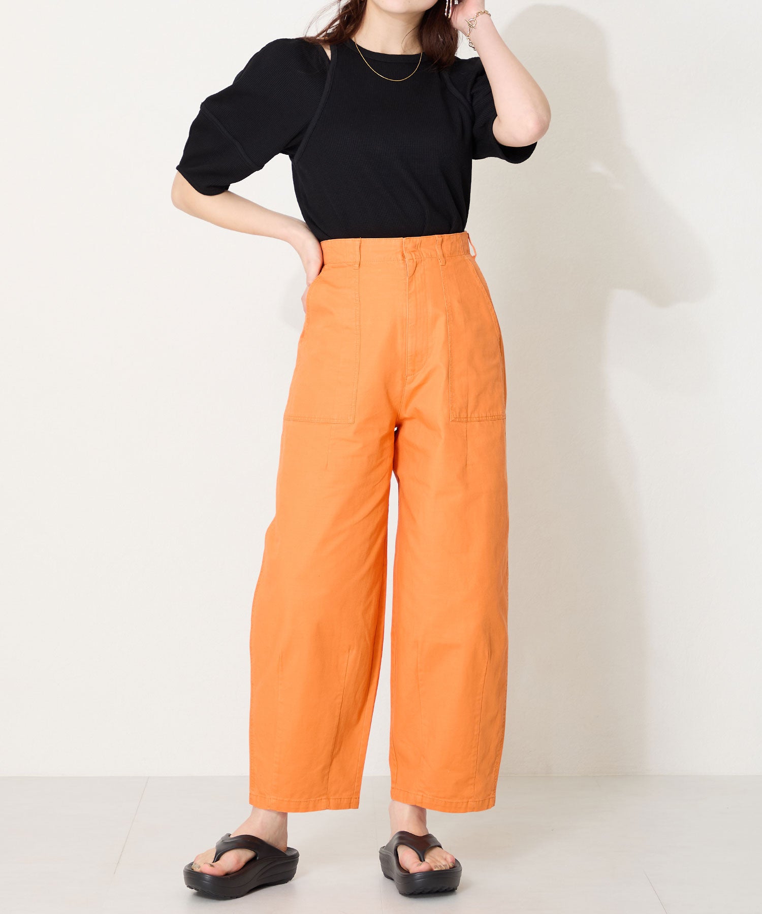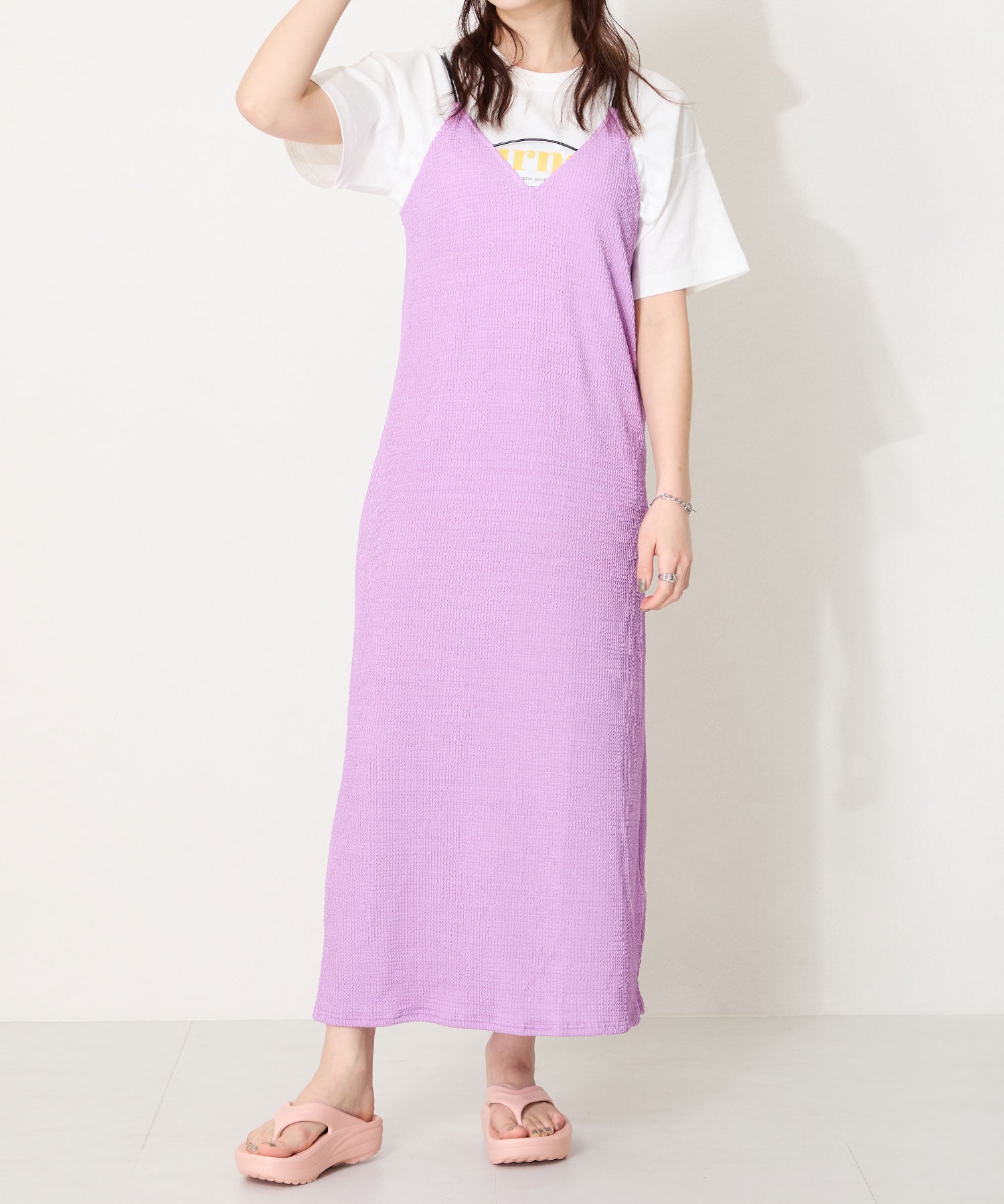 デイリー使いにぴったりのトングサンダルが厚底ソールで登場。厚底でも、少しつま先が沿った作りで歩きやすさもしっかりキープ。弾力のある素材感で軽いのに加え、長時間の歩行も楽に感じるので疲れにくいのがポイント。飾りのないシンプルなデザインに、豊富なカラーバリエーションで夏のお出かけに重宝するアイテム。