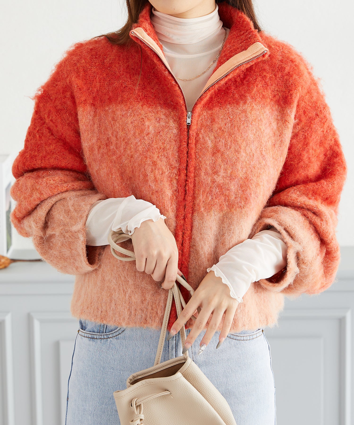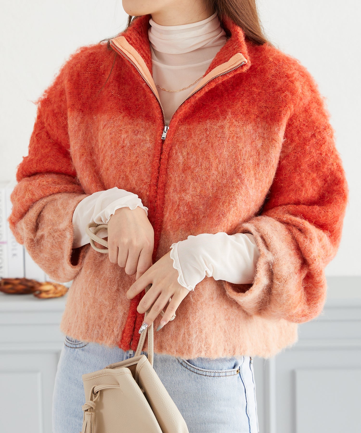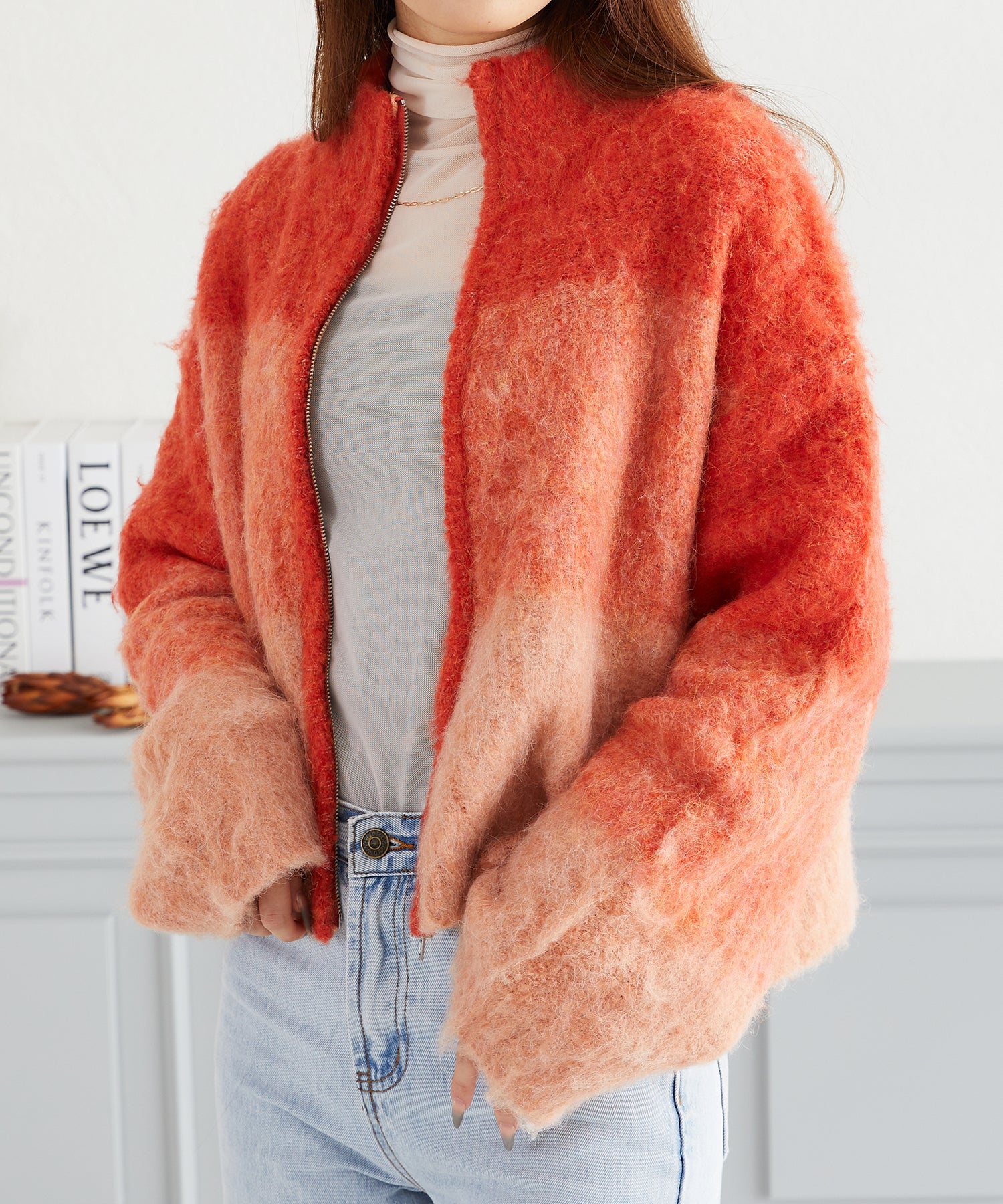 グラデーションニットブルゾン/AC3427 - オレンジ / FREESIZE