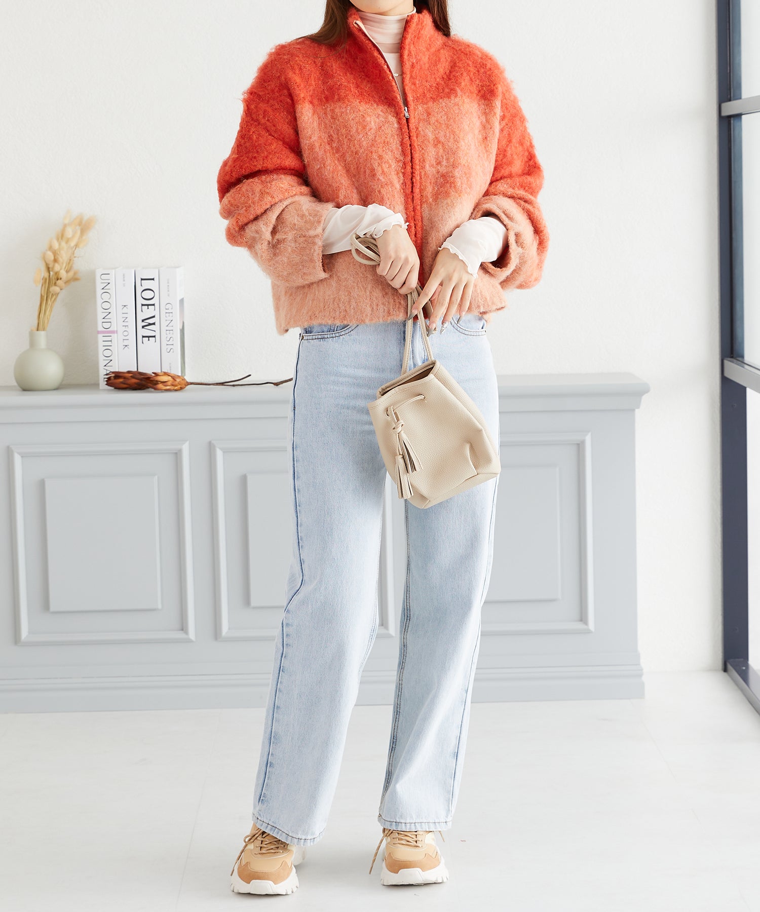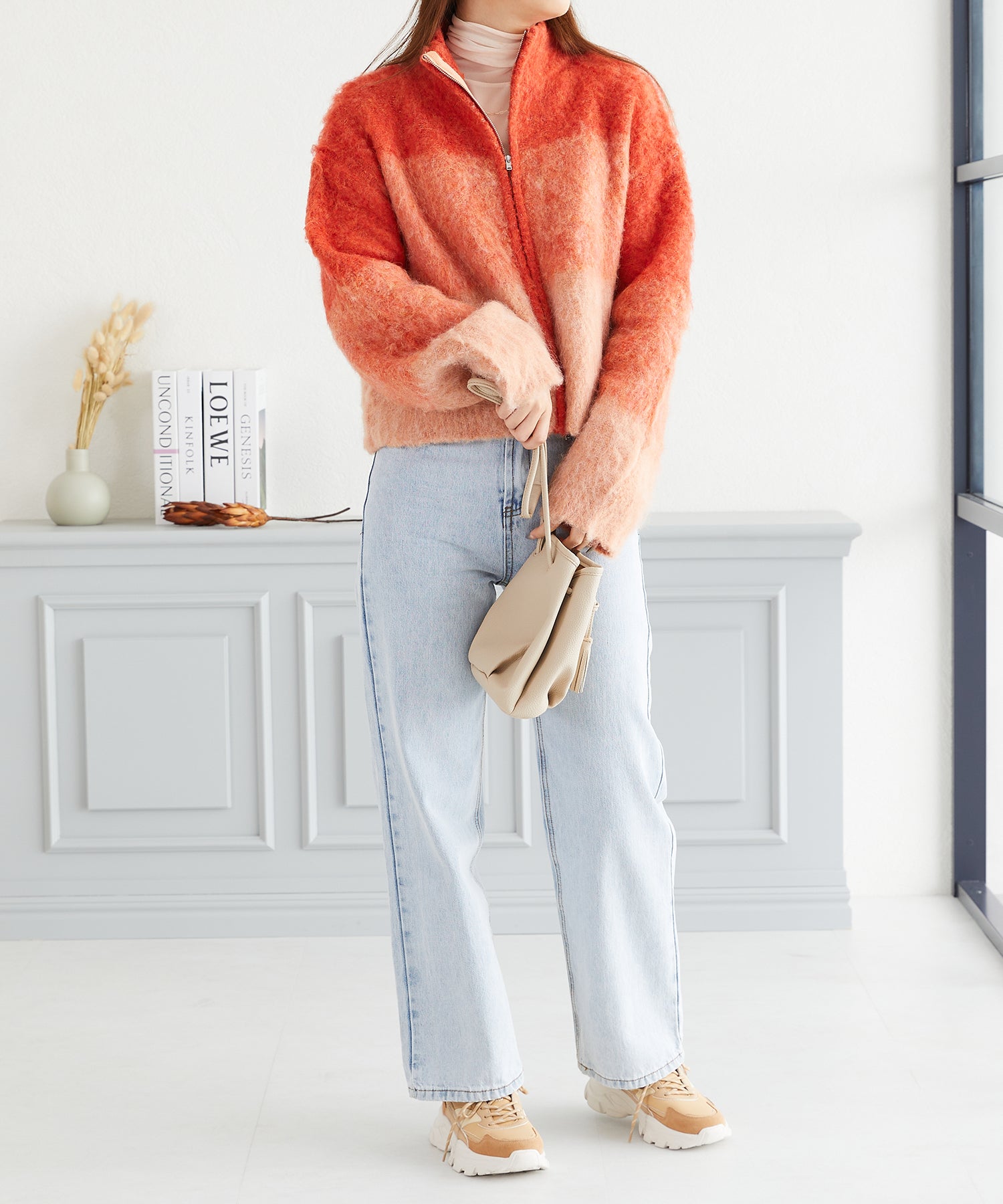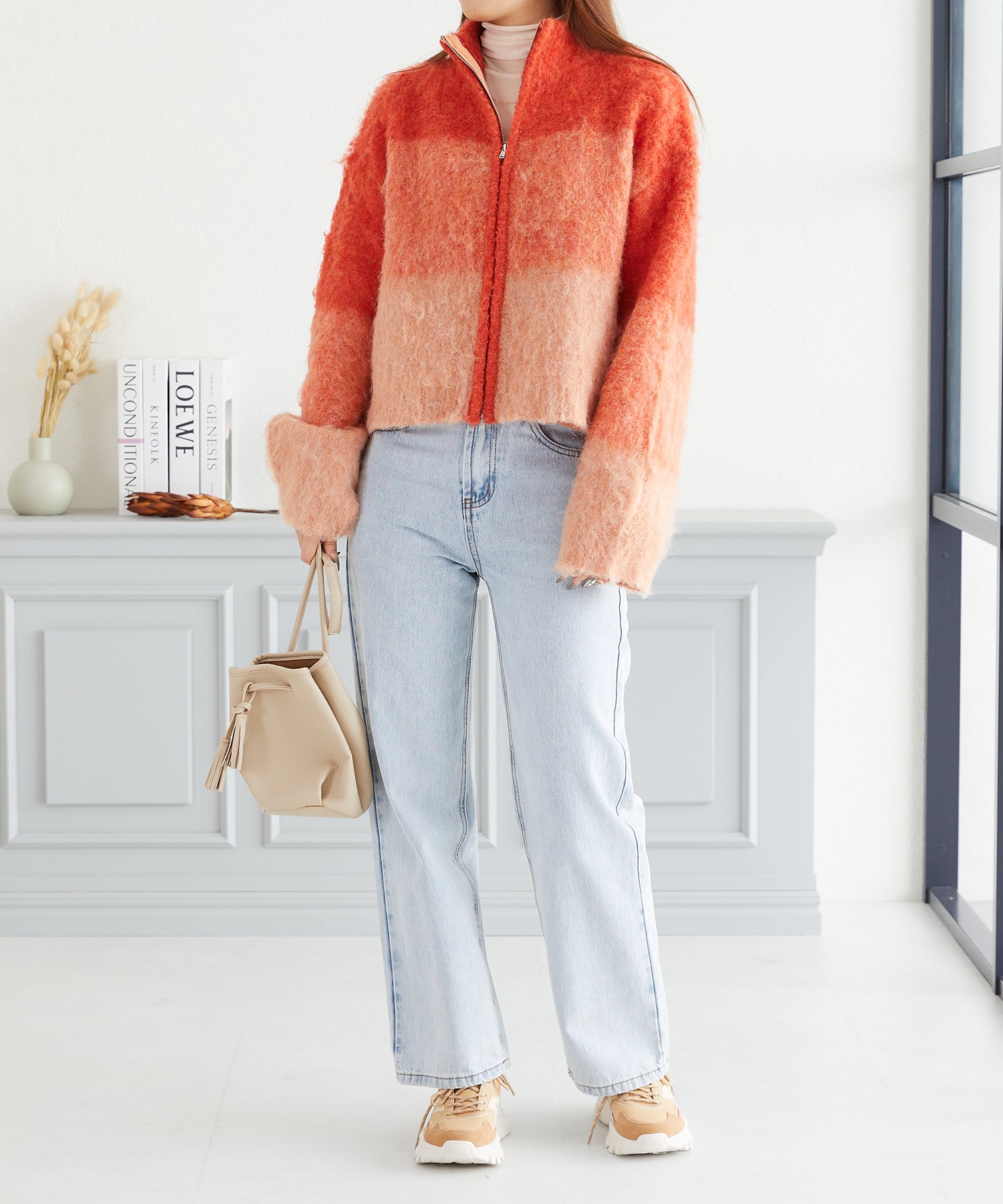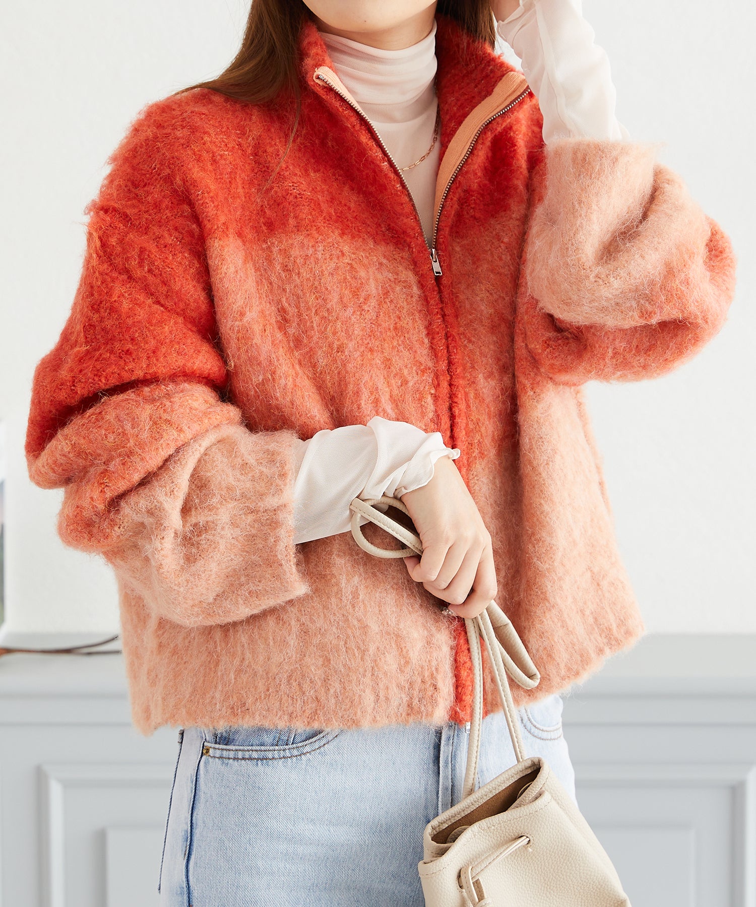 グラデーションニットブルゾン/AC3427 - オレンジ / FREESIZE