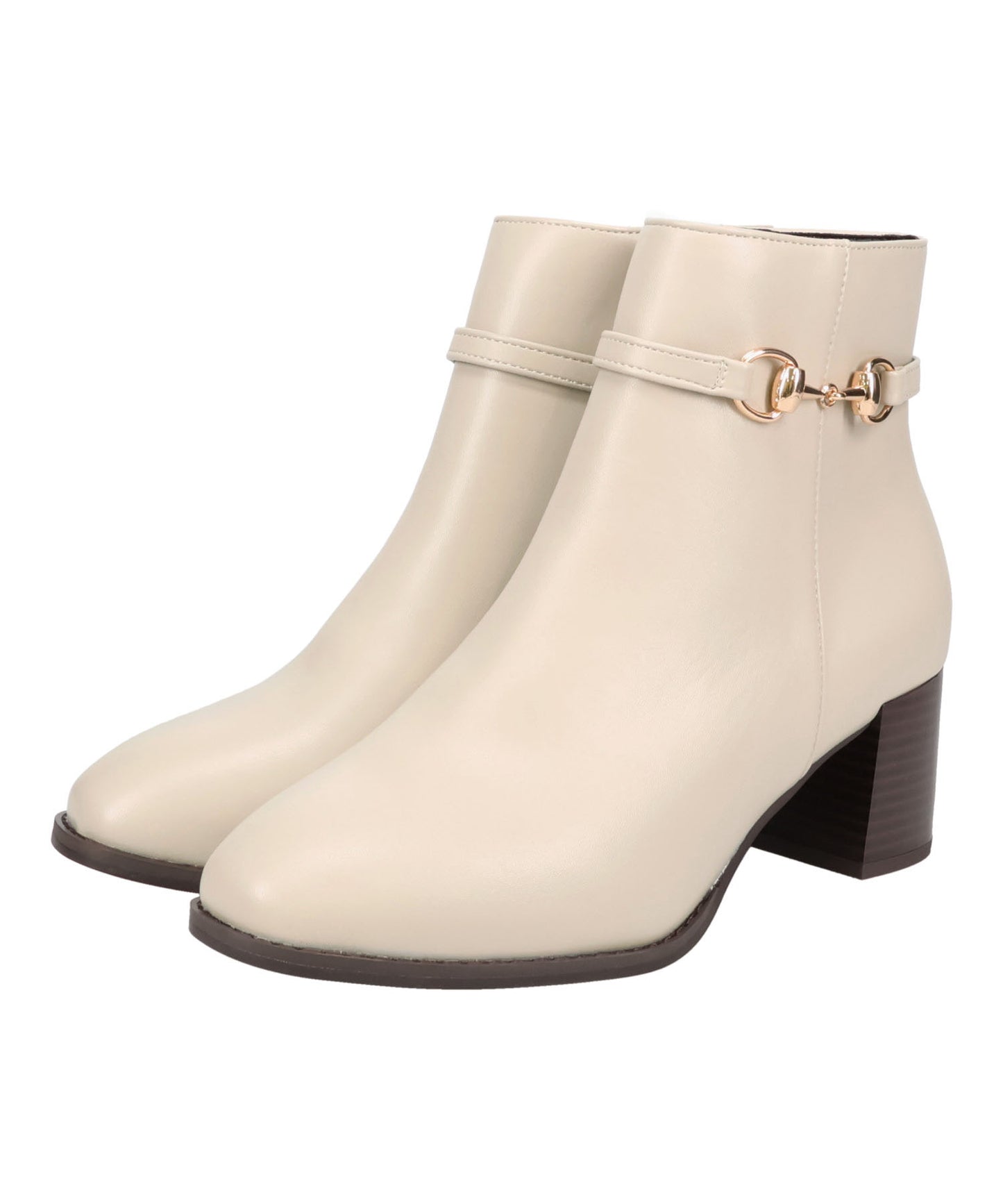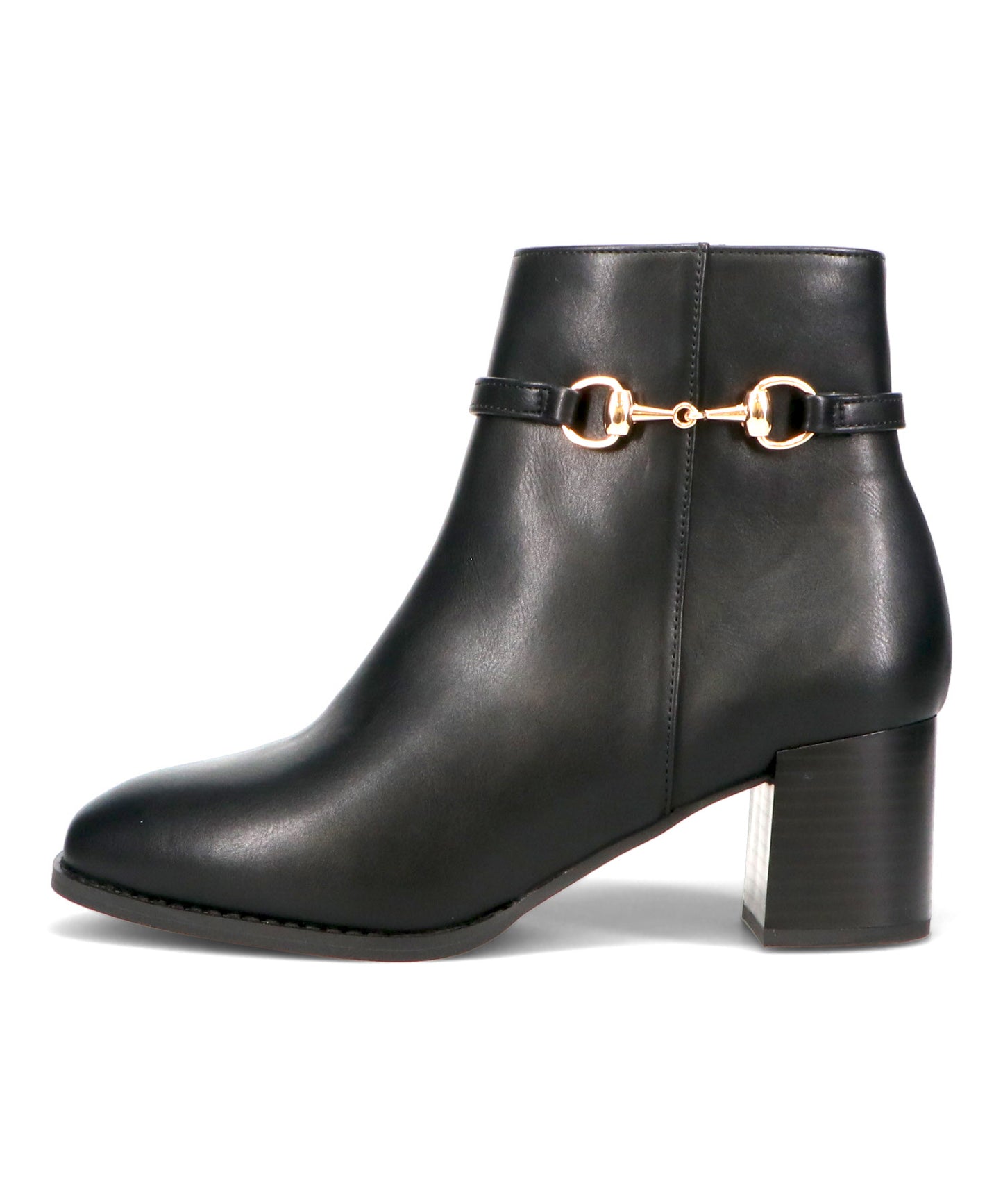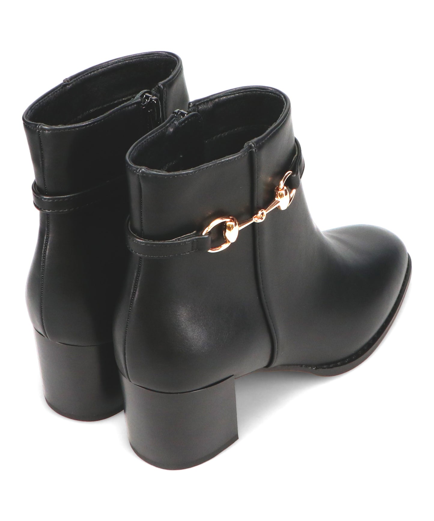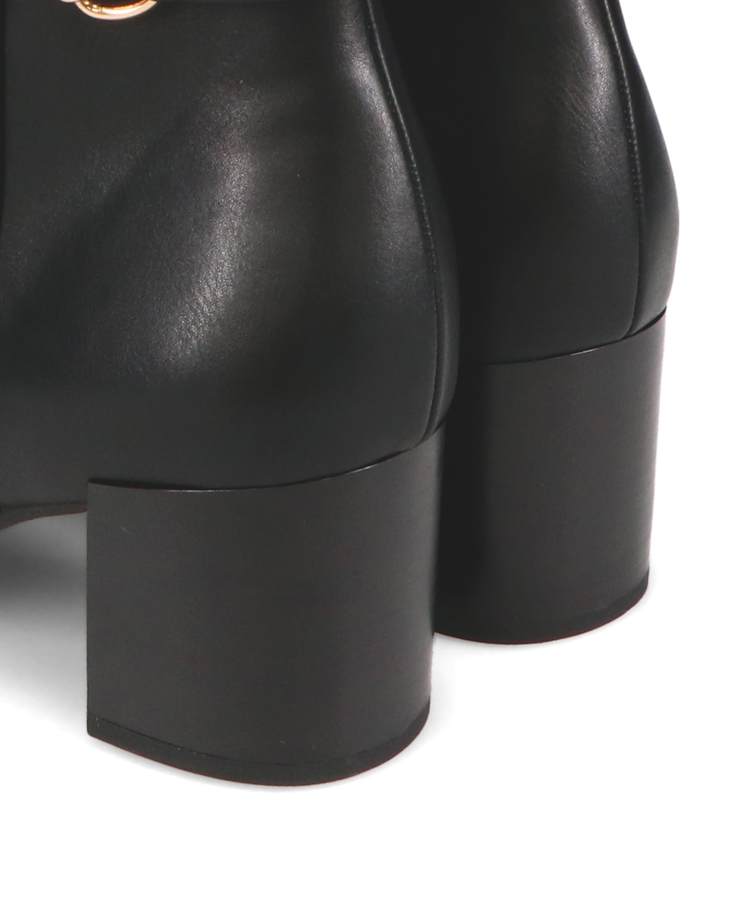 すっきりとしたフォルムとサイドに施したゴールドのビットモチーフがレディライクなショートブーツ。6cmヒールで足元のシルエットを綺麗に見せつつ、チャンキーヒールで安定感があって長時間歩いても疲れにくいのが魅力的。パンツやスカート、ワンピースなど幅広いコーデに合わせやすく、普段のスタイルをワンランクアップグレードしてくれる1足。
