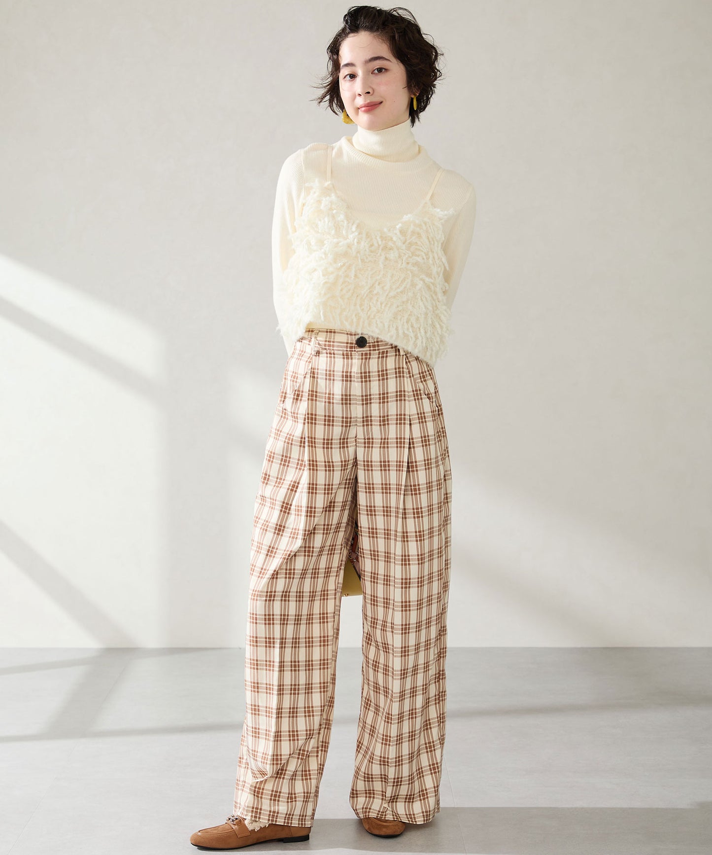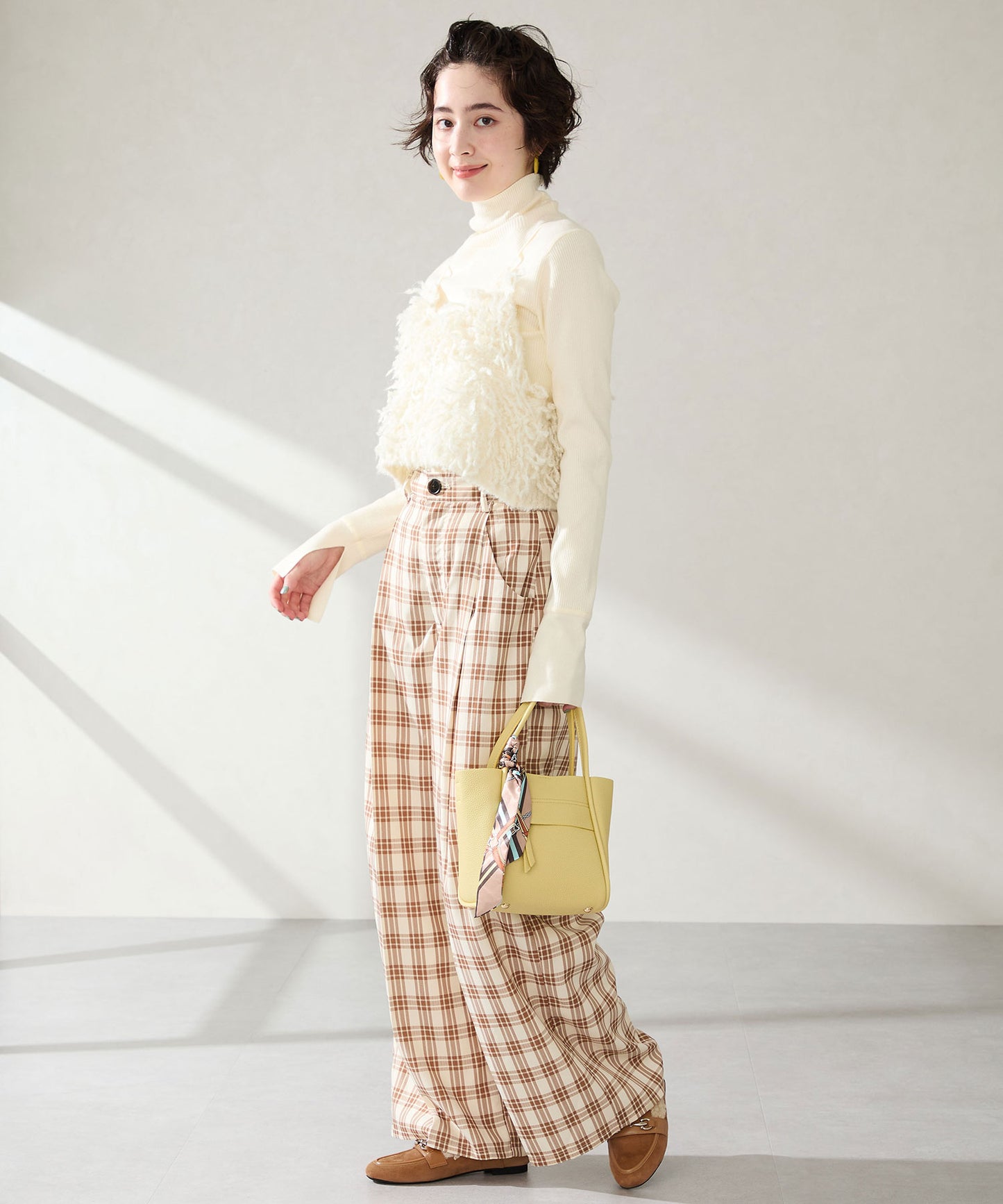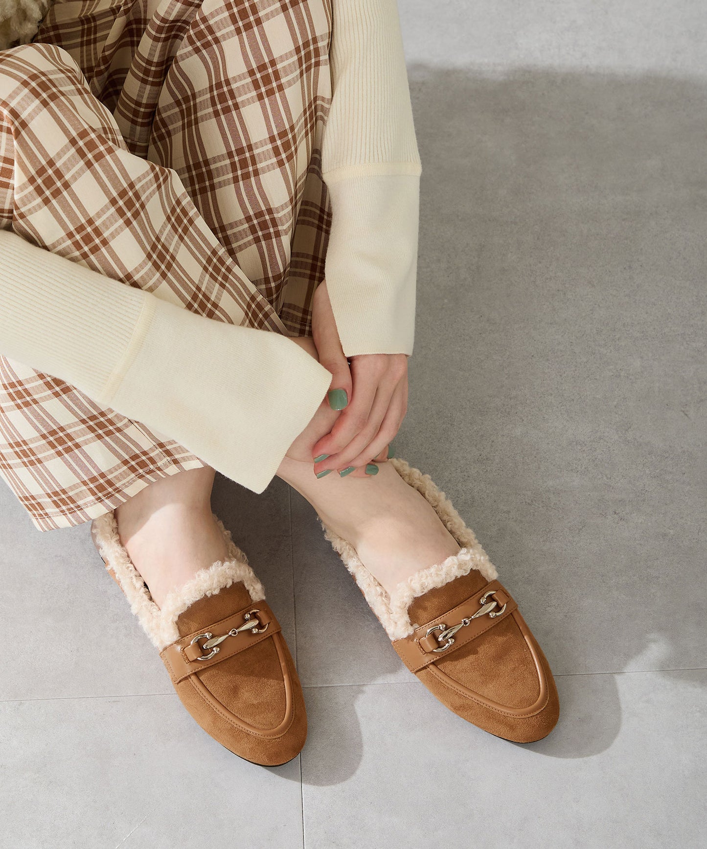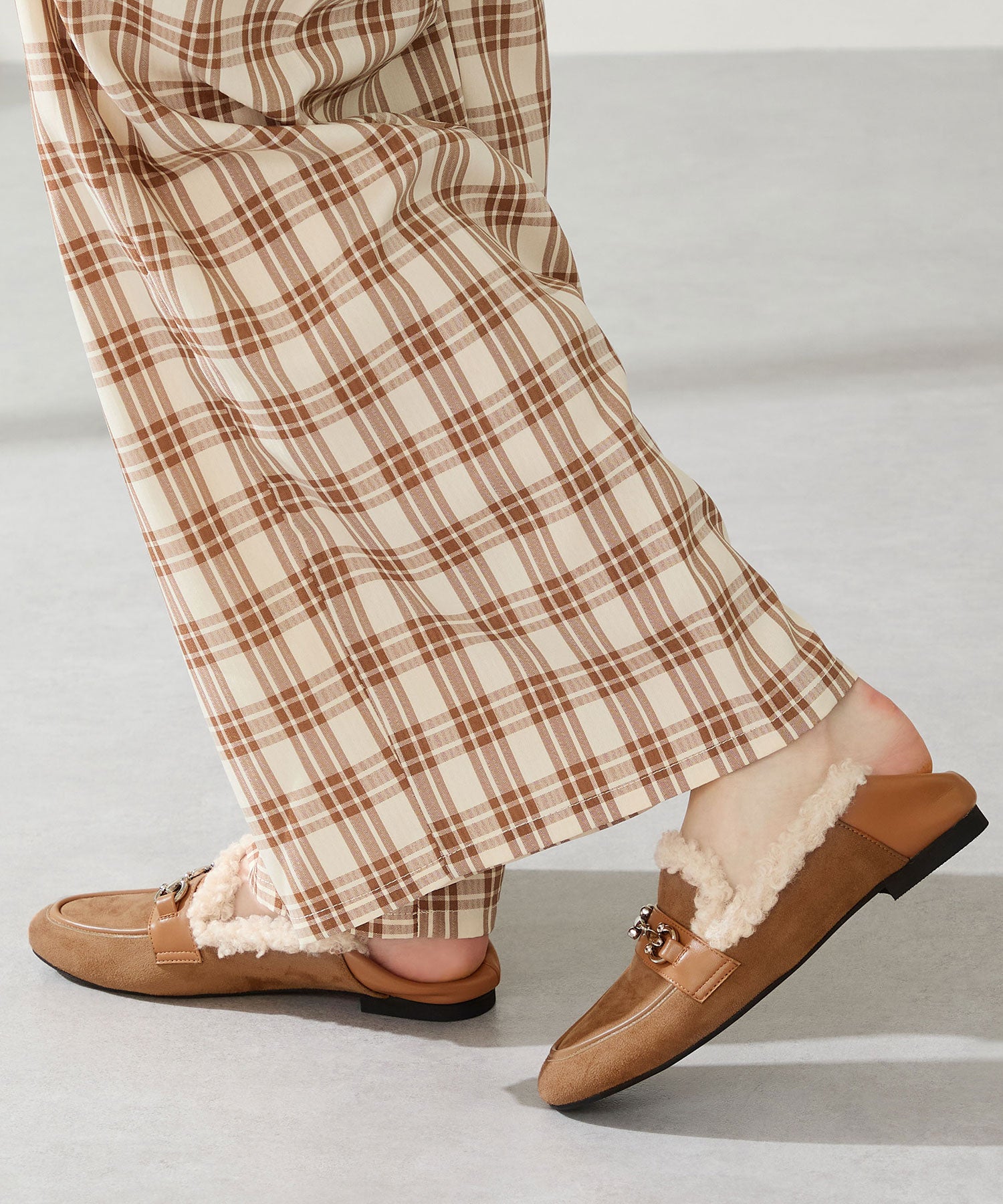 履き口に付けたボアがポイントのローファーは履くだけでシーズンライクな装いに。丸みのあるビットモチーフが程よい存在感を演出。優しい印象のスエード素材のアッパーにスムースの切替を付けることでメリハリと立体感をプラス。踵を踏んでも履けるバブーシュ仕様で、ストレスフリーな履き心地に。着まわしの効く2色展開で普段のコーディネートをアップデートしてくれること間違いなし。