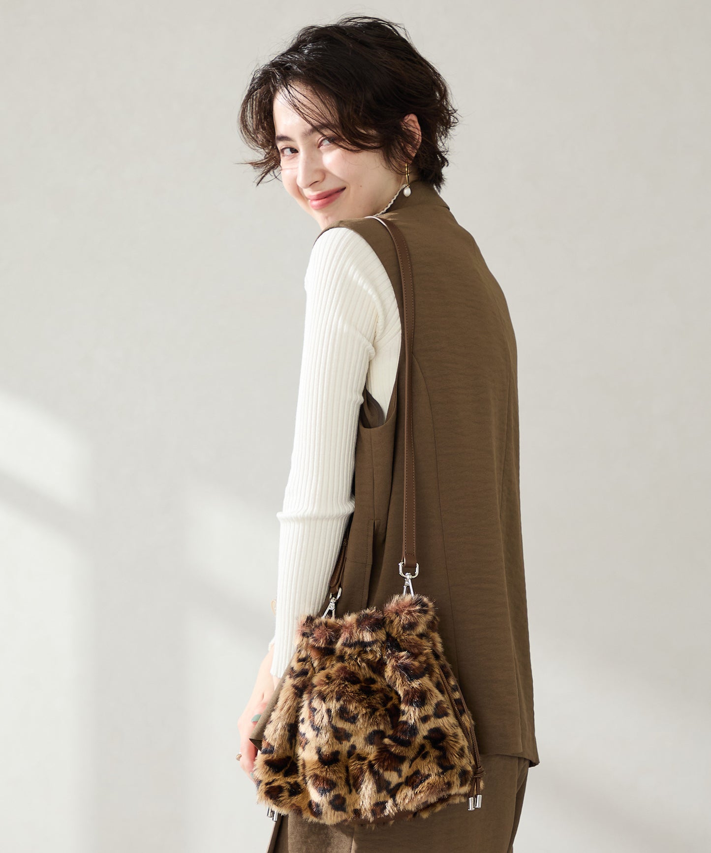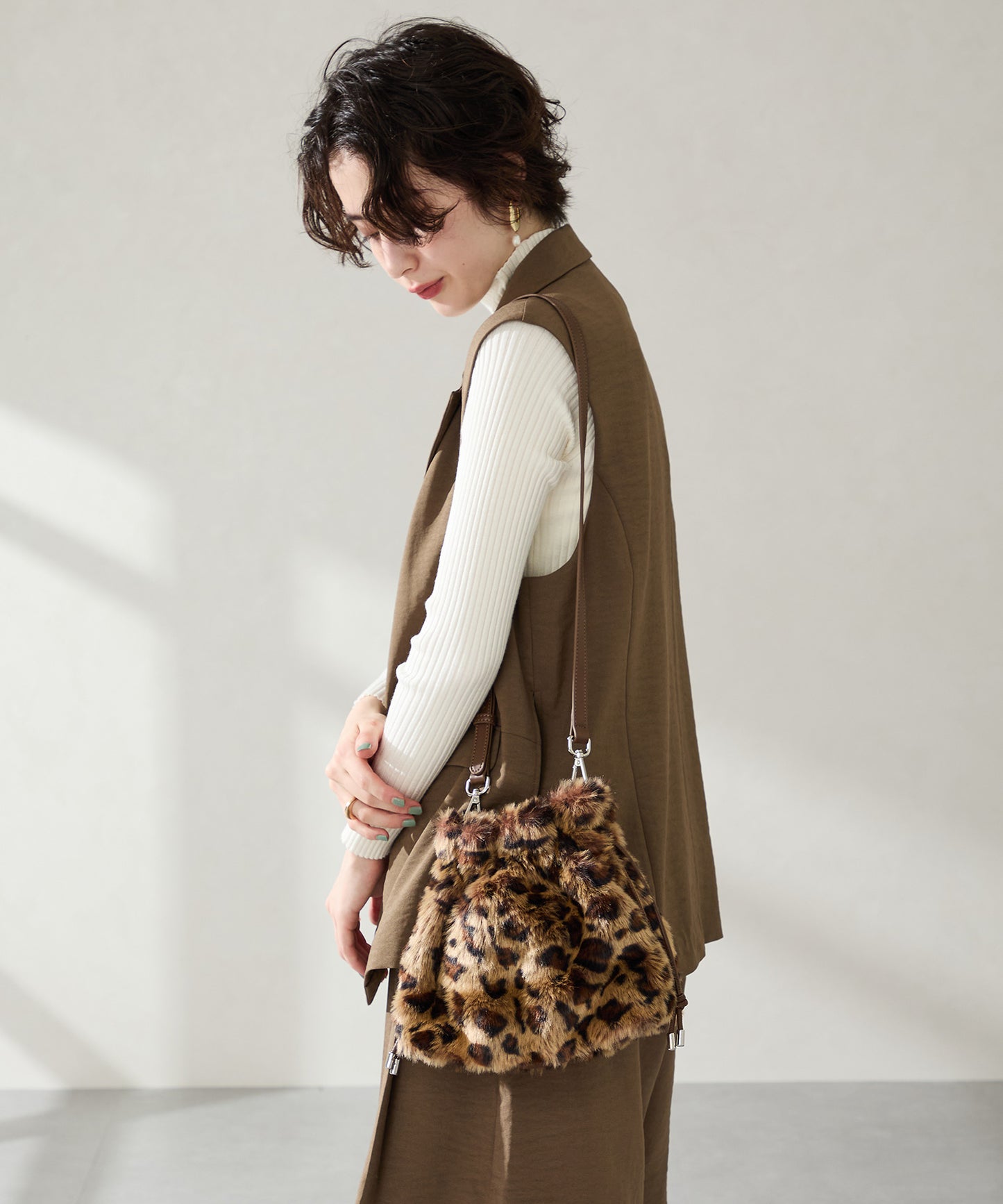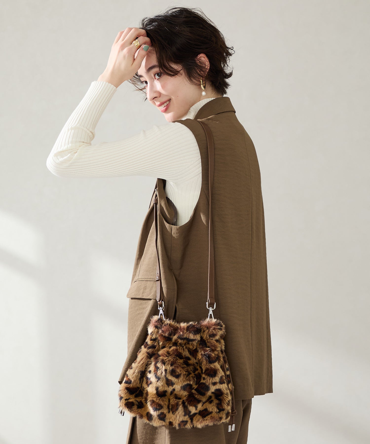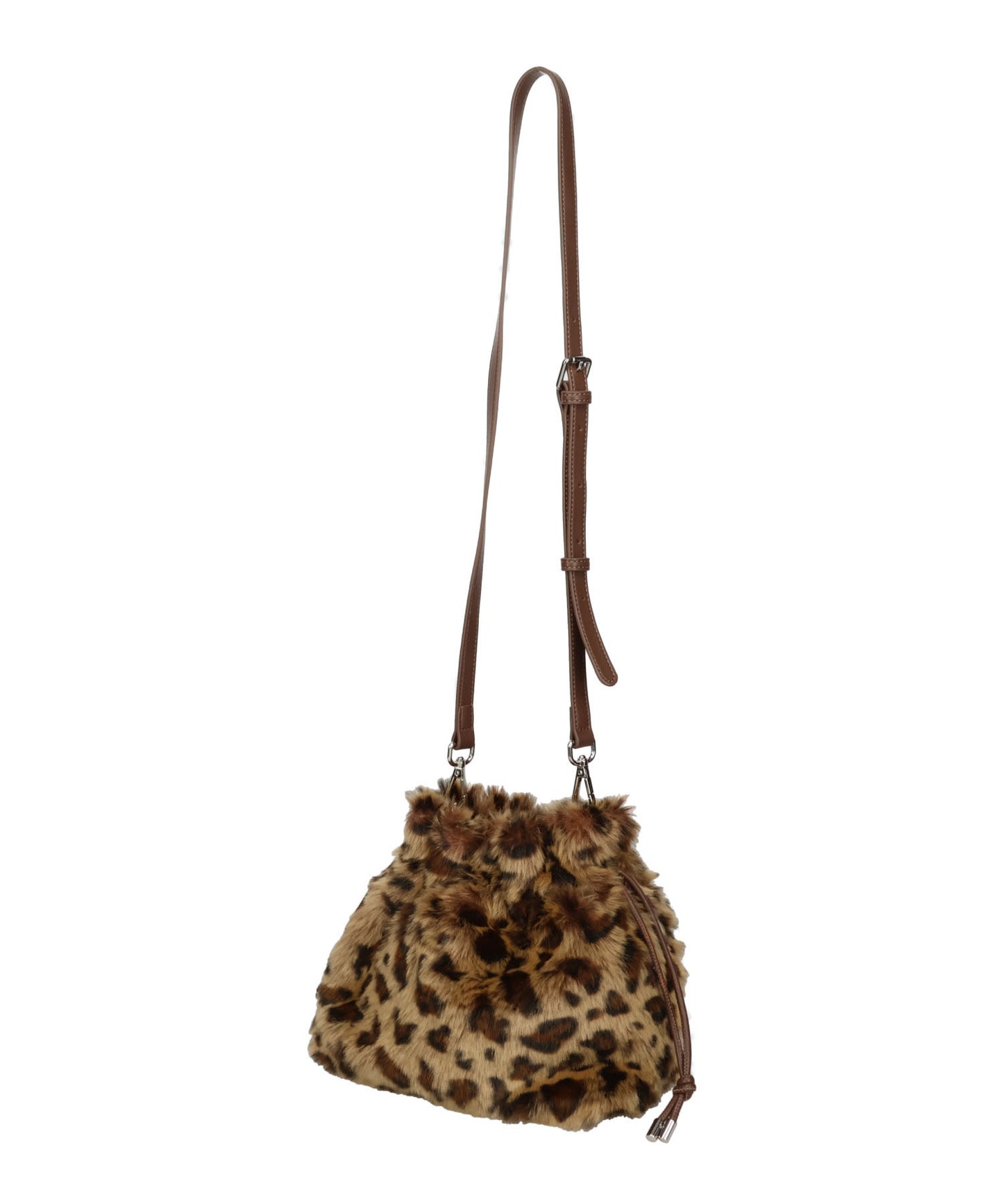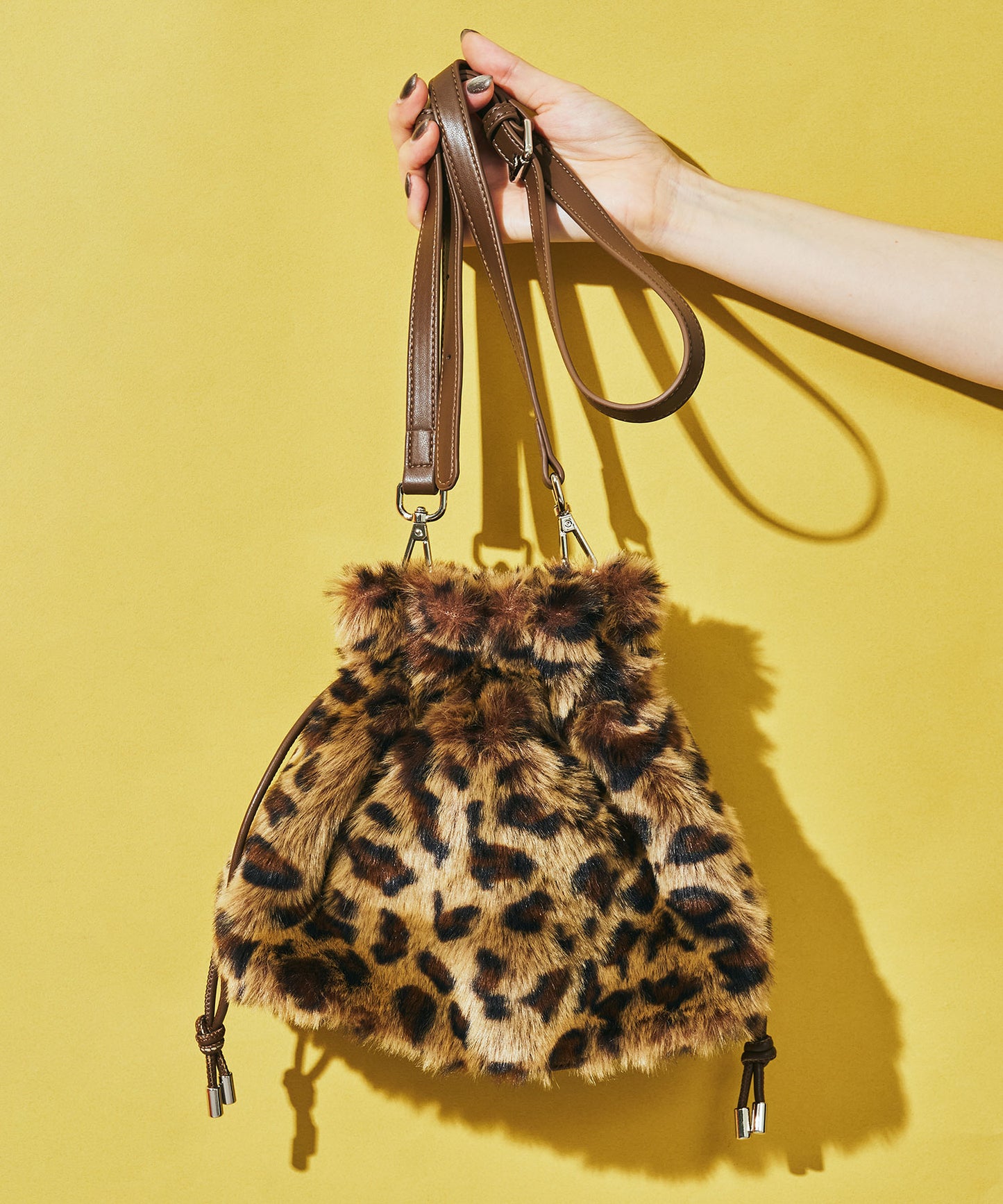 思わず触りたくなるふわふわのファーがキャッチ―な巾着バッグは、トレンドライクなレオパード柄がコーディネートのアクセントにぴったり。ちょっとしたお出かけにぴったりなサイズ感が使いやすく、付属のストラップを付ければショルダーバッグにもなるので身軽に出かけたい時にもぴったり。