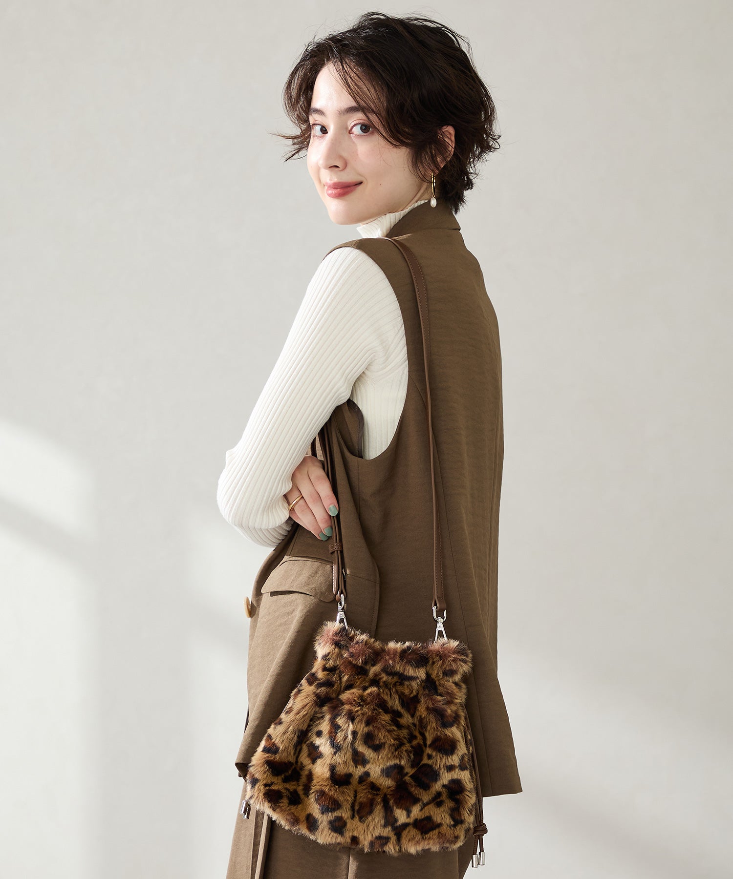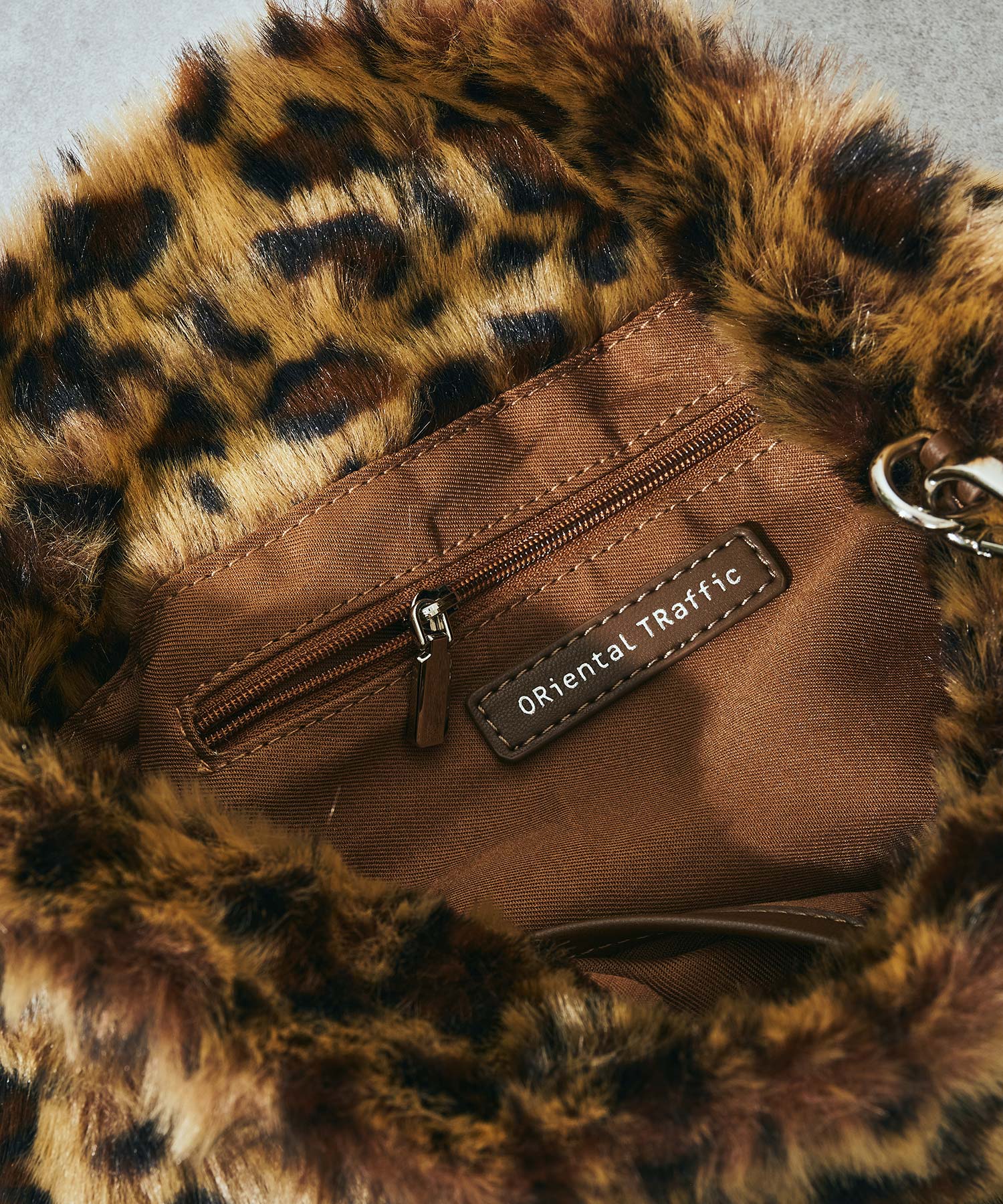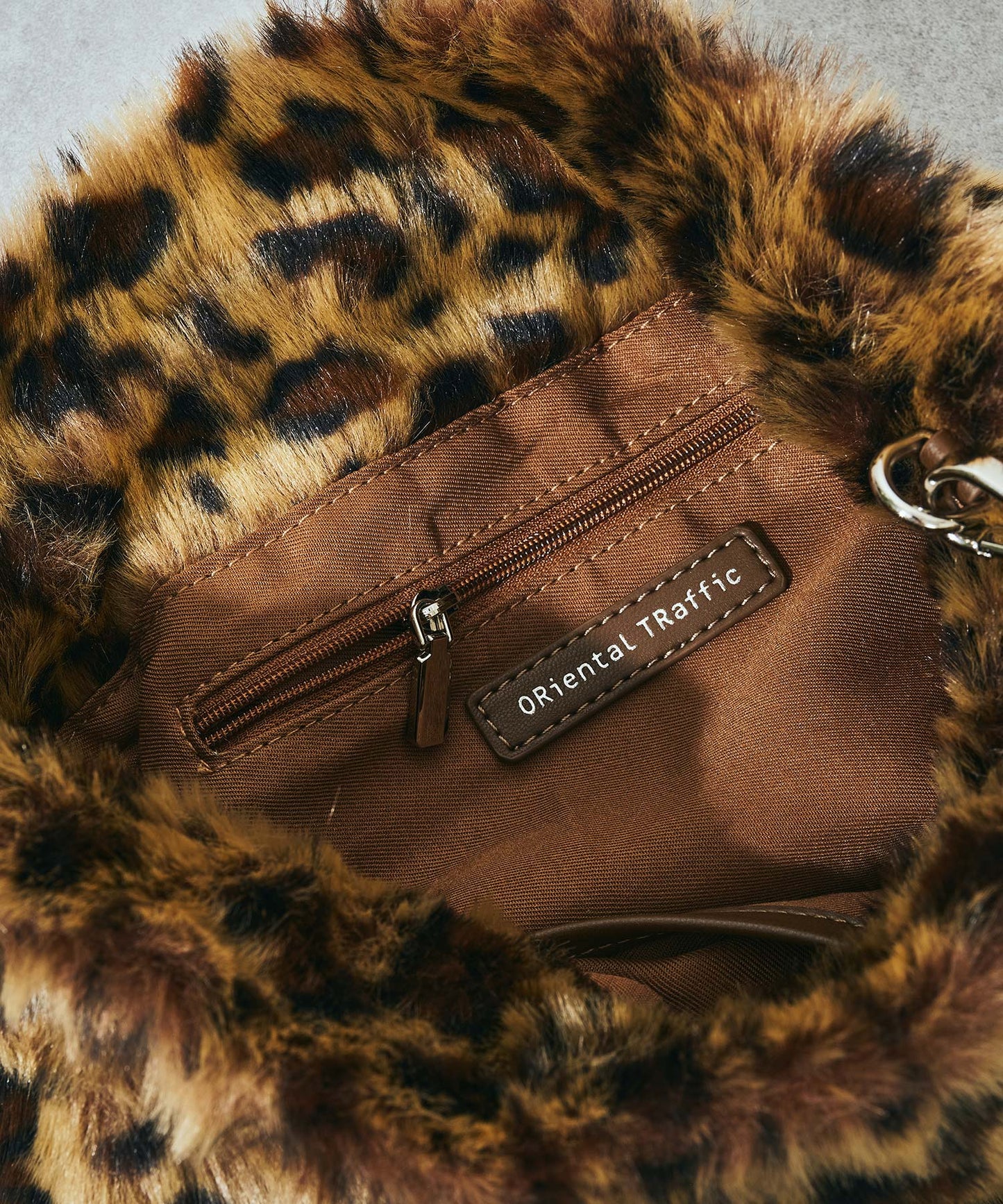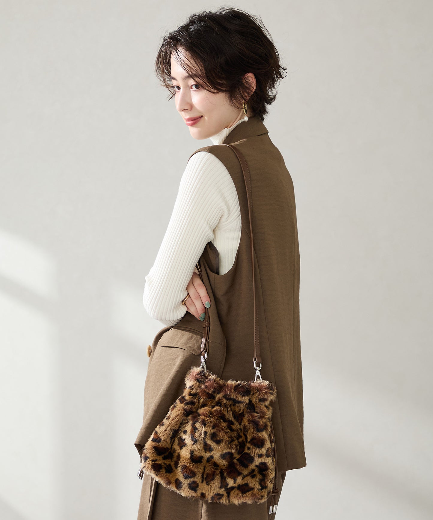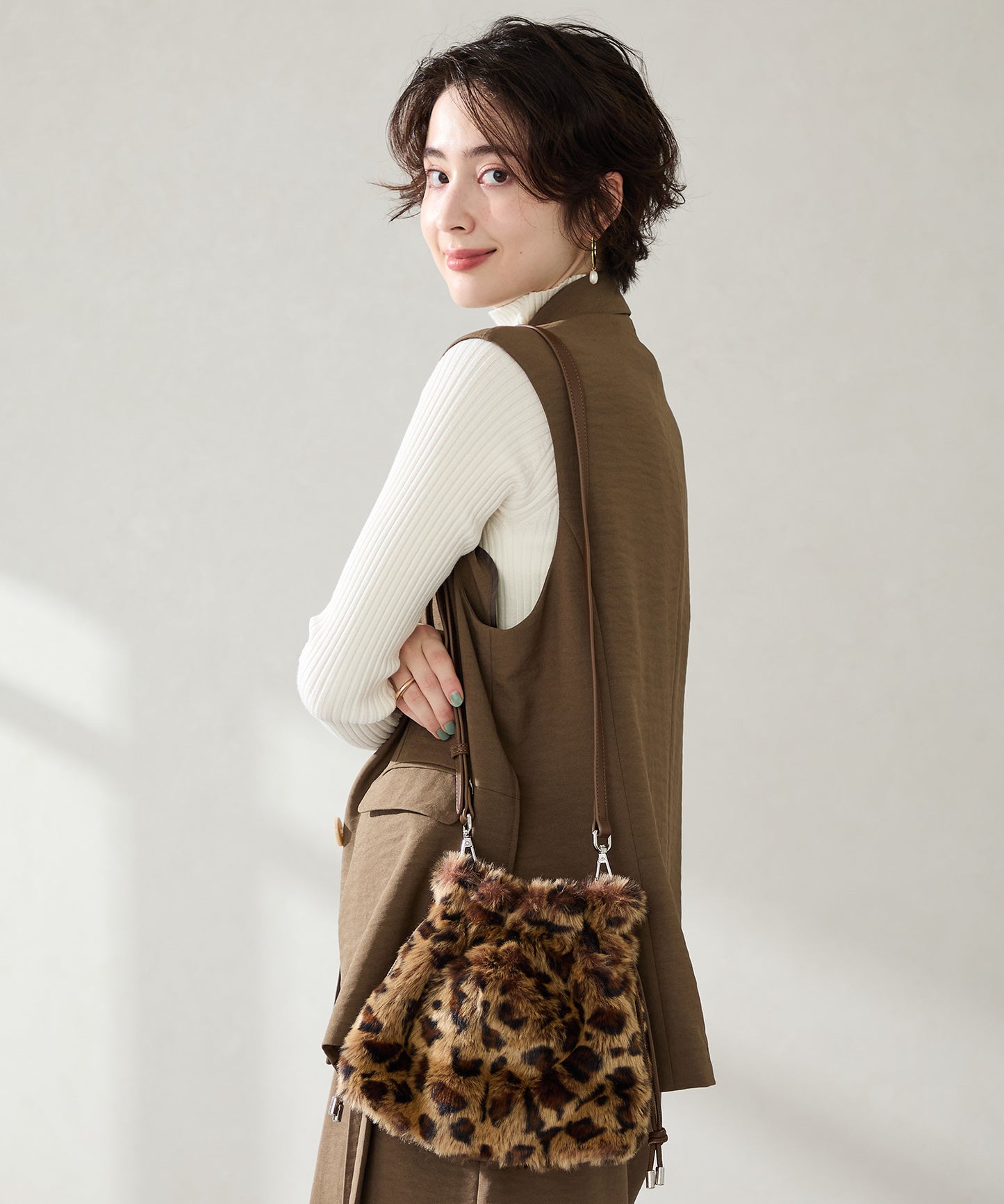 思わず触りたくなるふわふわのファーがキャッチ―な巾着バッグは、トレンドライクなレオパード柄がコーディネートのアクセントにぴったり。ちょっとしたお出かけにぴったりなサイズ感が使いやすく、付属のストラップを付ければショルダーバッグにもなるので身軽に出かけたい時にもぴったり。