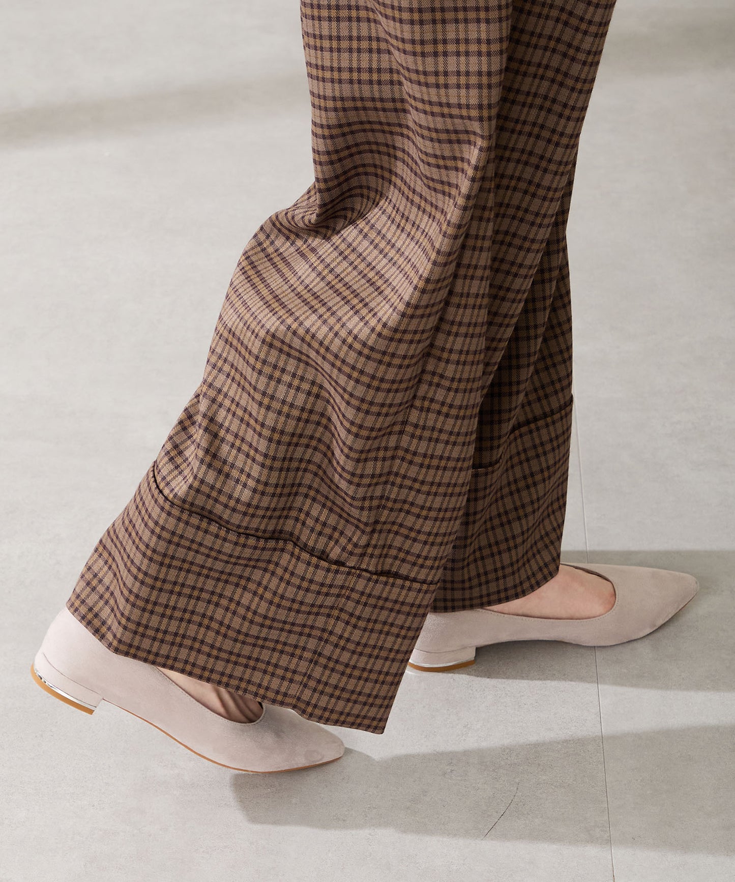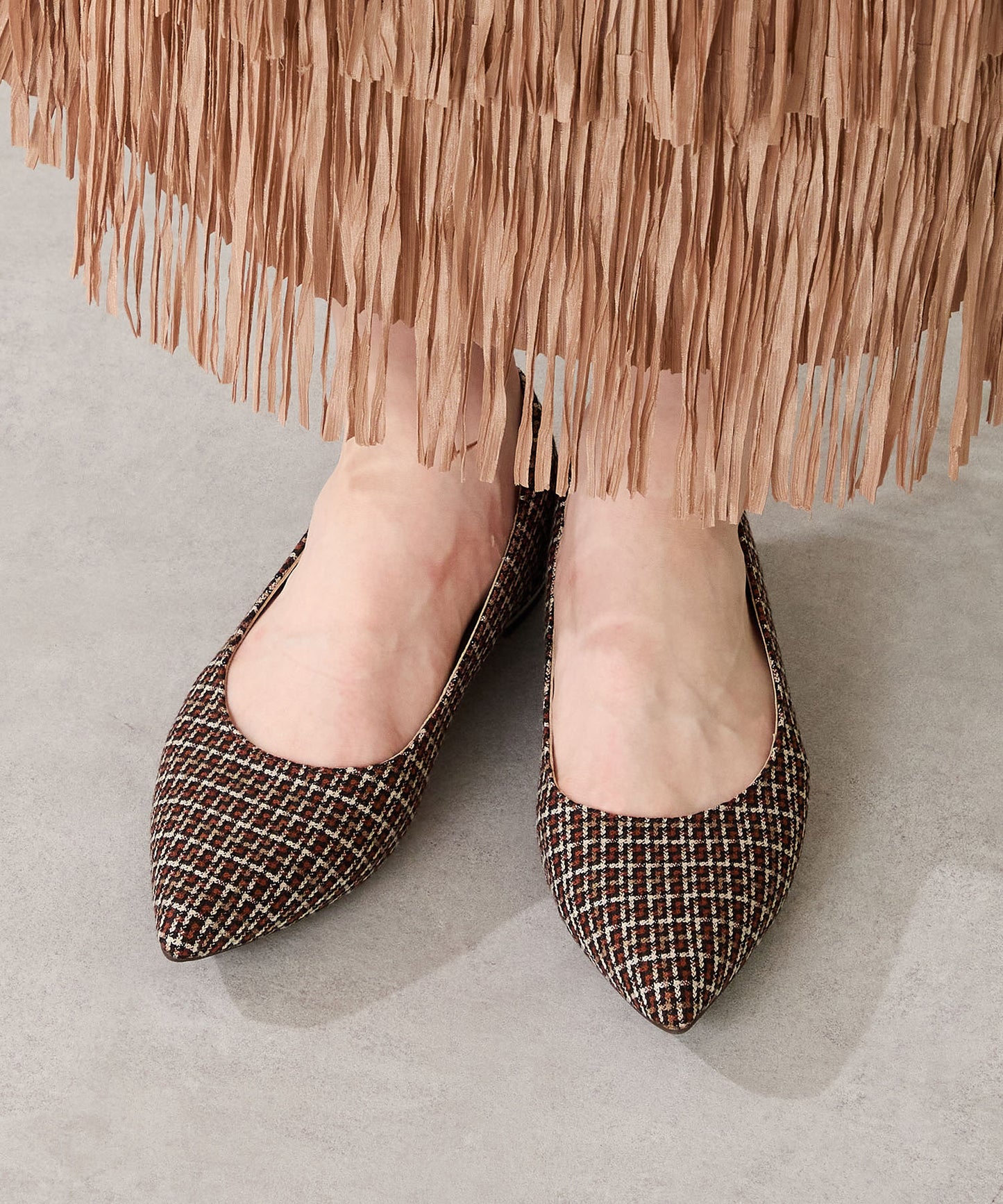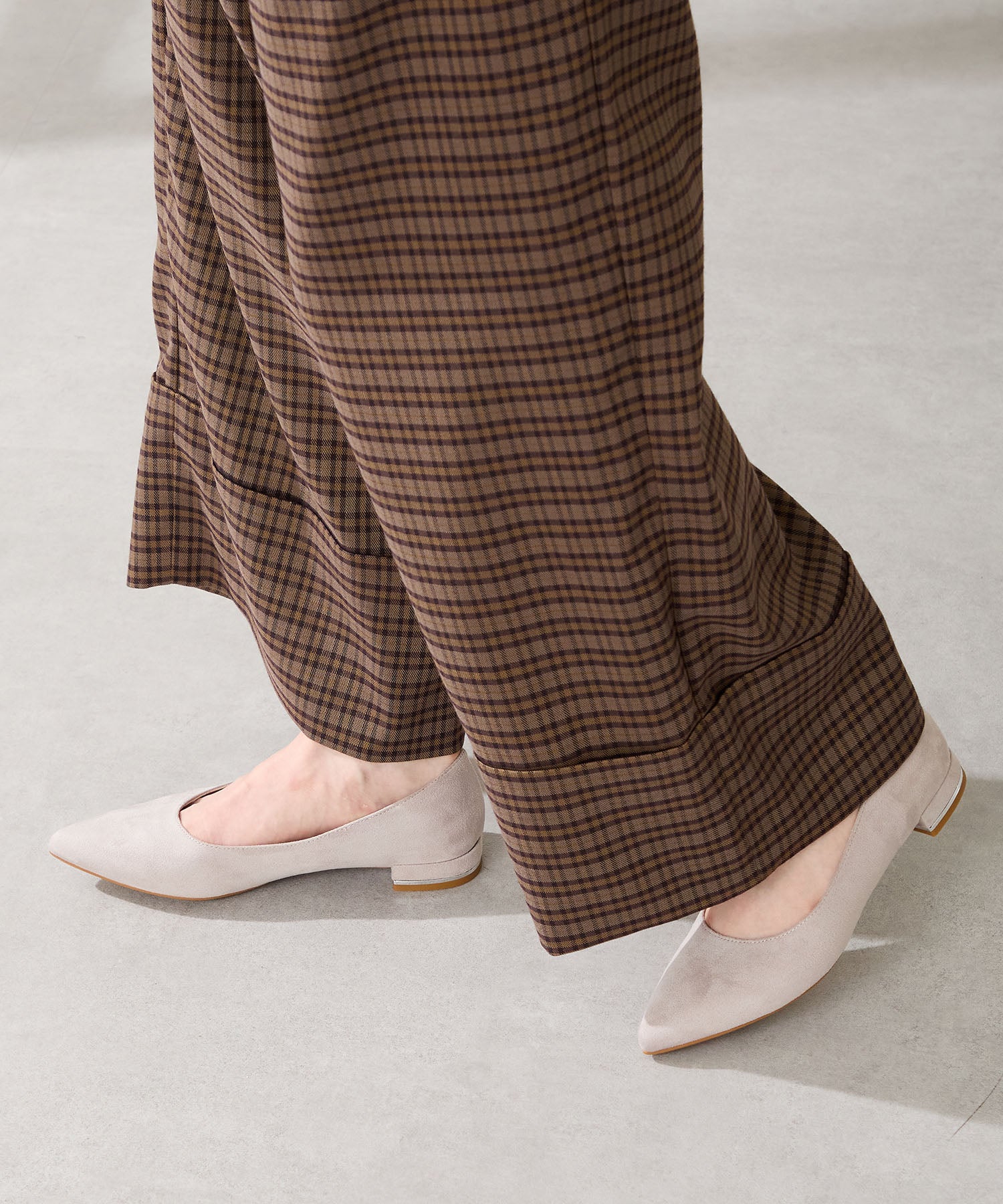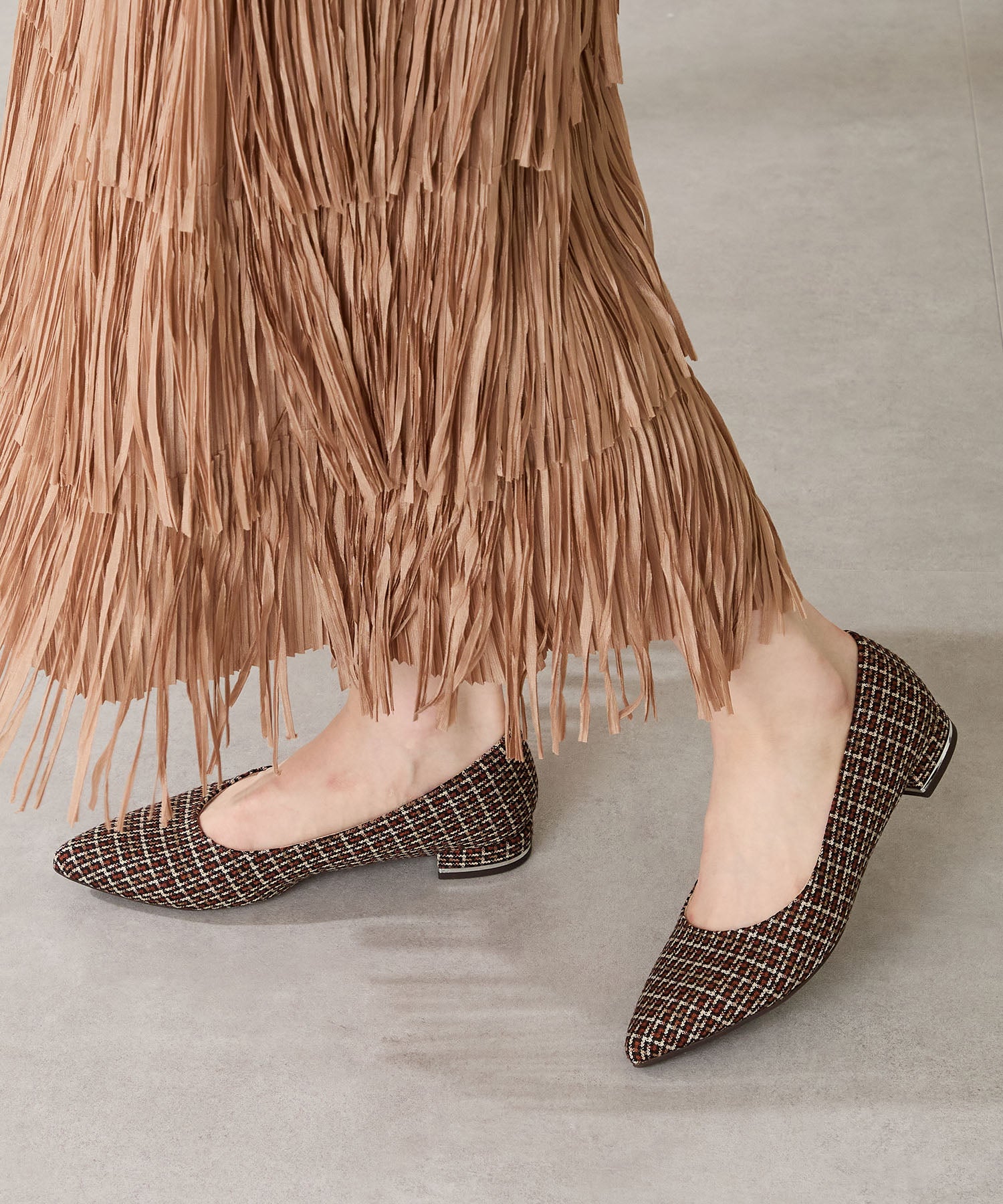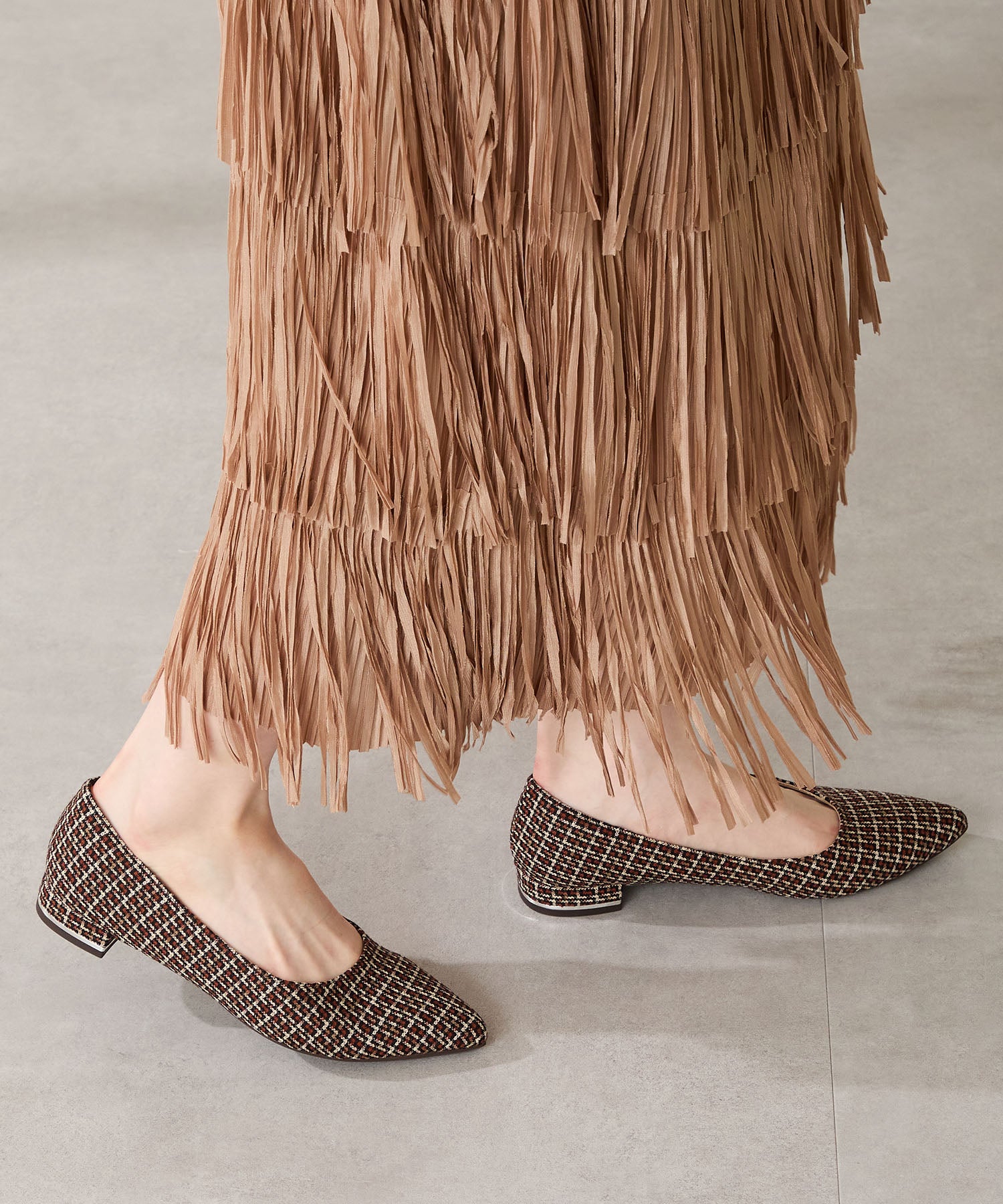 シンプルでデイリー使いしやすいフラットパンプスはシャープなトゥで足元を綺麗に見せてくれる。フラットでも足裏が痛くなりにくい厚手クッションや返りの良いソールなど機能性も抜群。無駄のないデザインながらヒールにはメタリックラインを付けてさりげないワンポイントをプラス。オンオフ使える豊富なカラー展開で色違いで揃えるのもおすすめ。