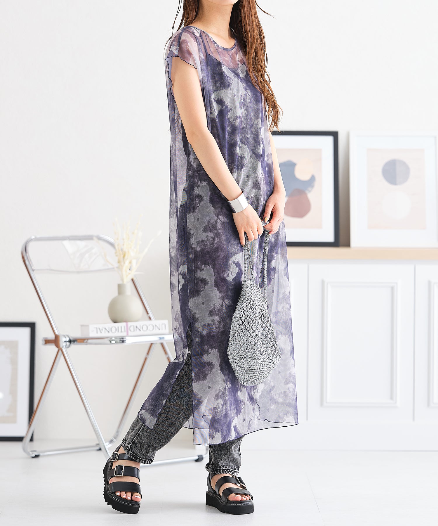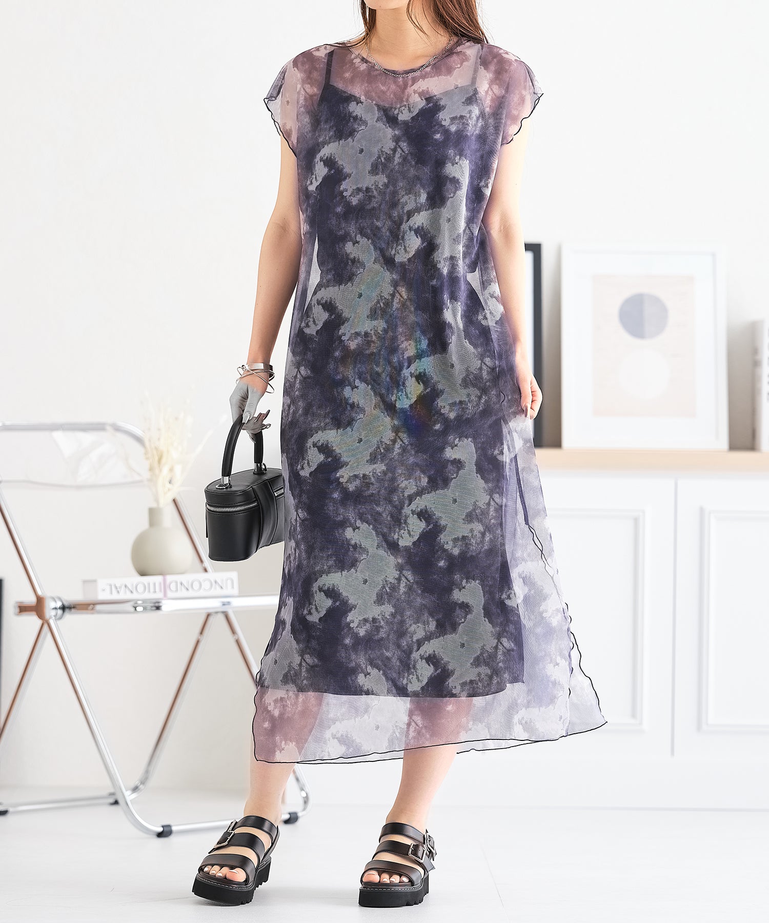 2WAYシースルーフレンチタイダイシアーワンピース/AC3417