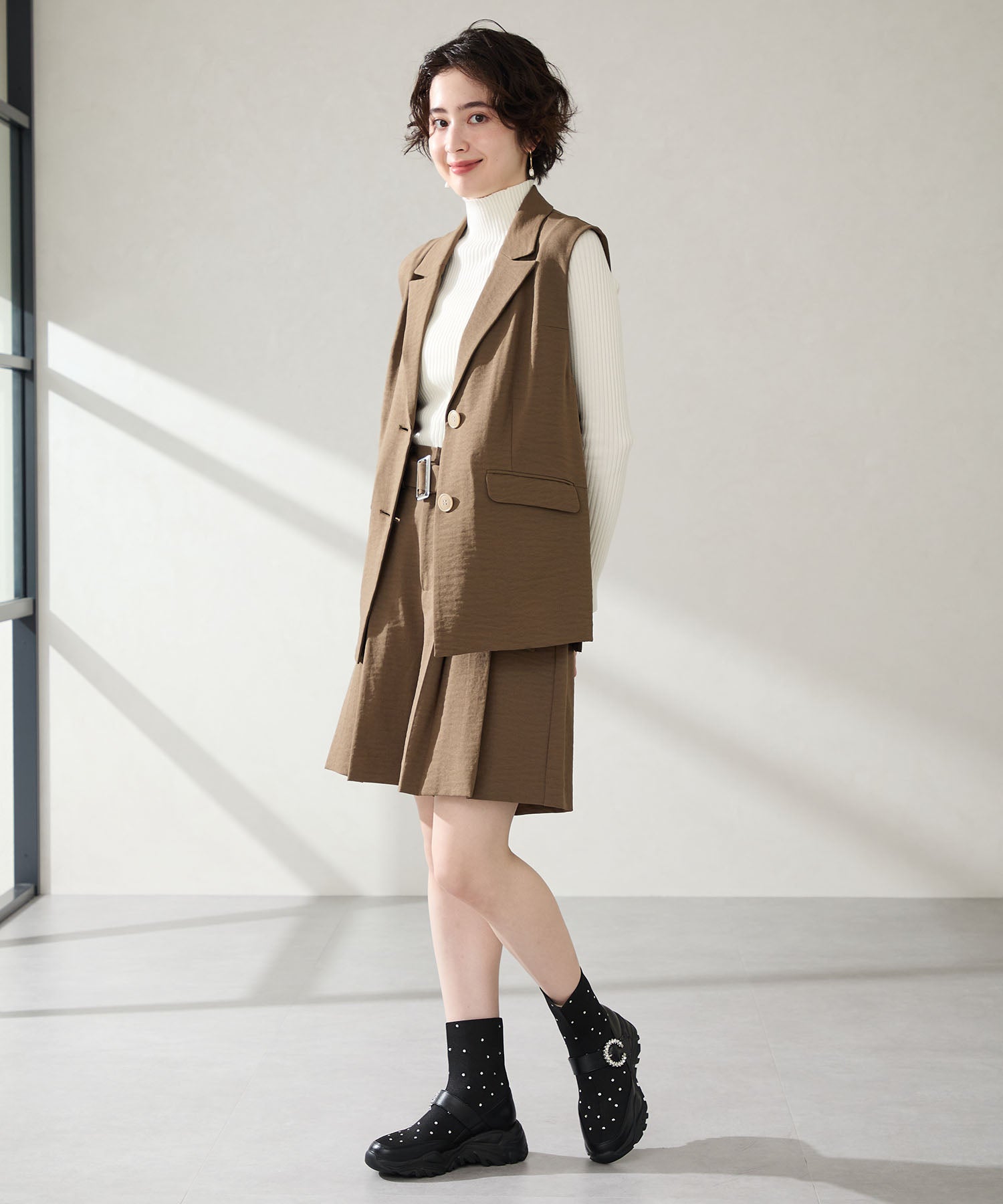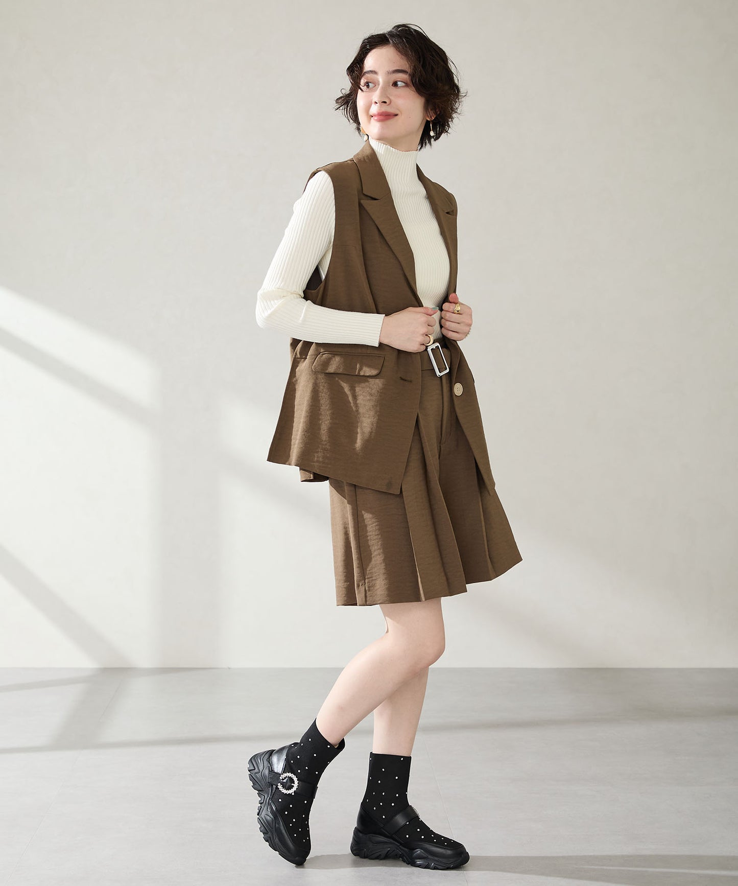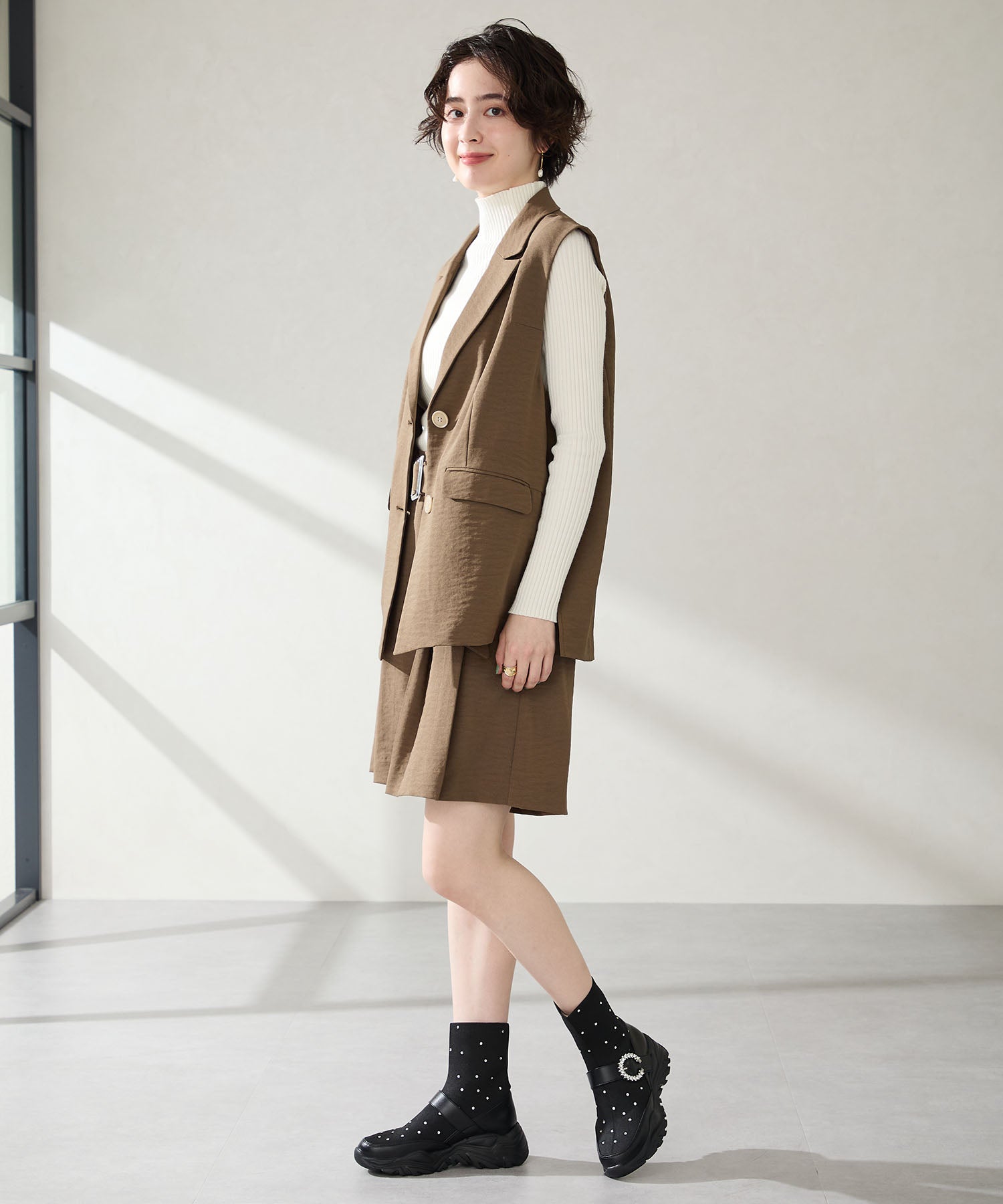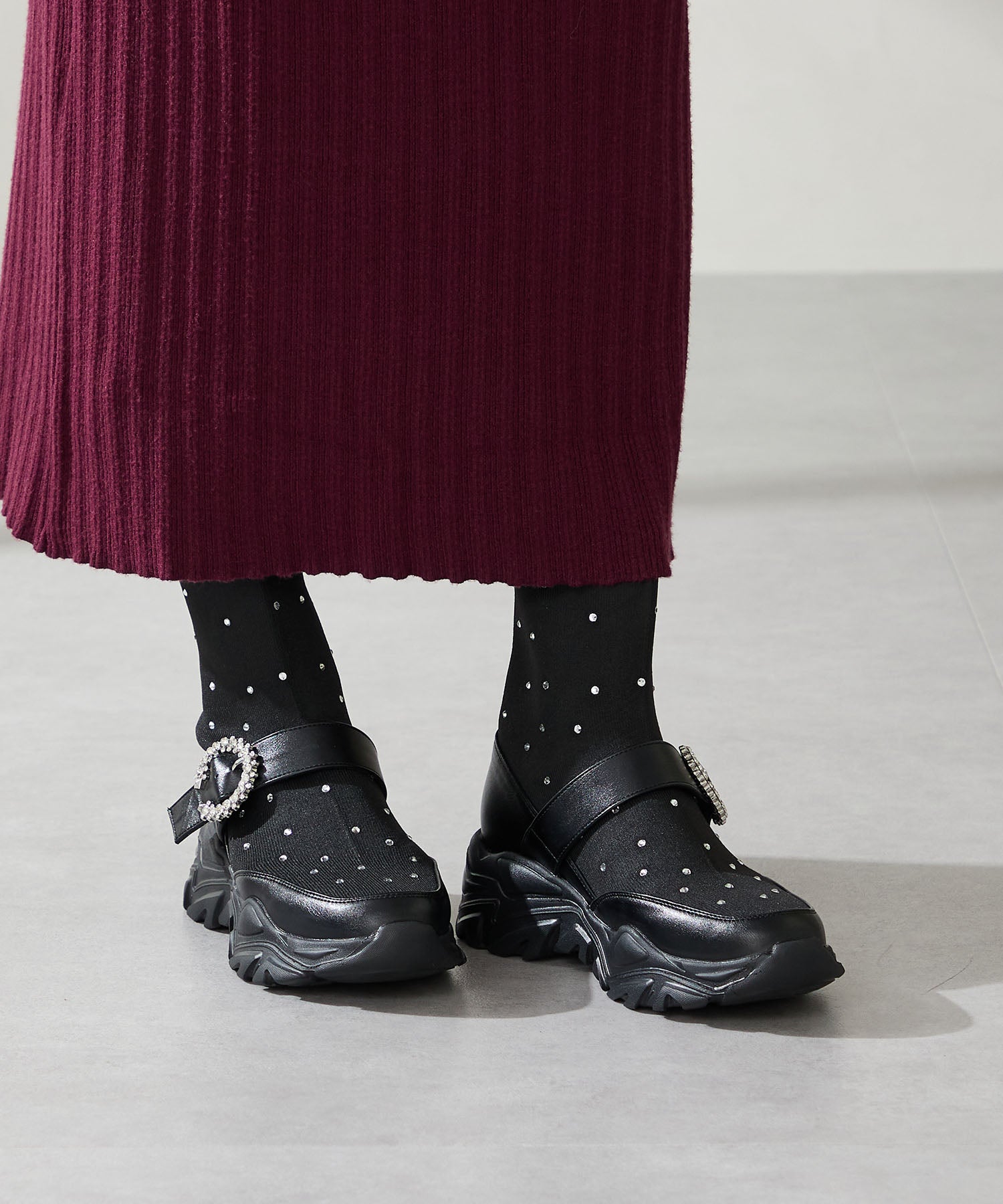 ビジューモチーフをあしらったベルトに、ラインストーンを全体に散りばめたデコラティブなデザインで特別感のあるブーツ。あえてカジュアルなスニーカーソールを組み合わせることでエレガンスな雰囲気とのアンバランス感が今っぽい。伸縮性のあるニット素材は足当たりが優しく、厚手クッションを内蔵したインソールはナイロン素材で履きやすさまで追及した1足。