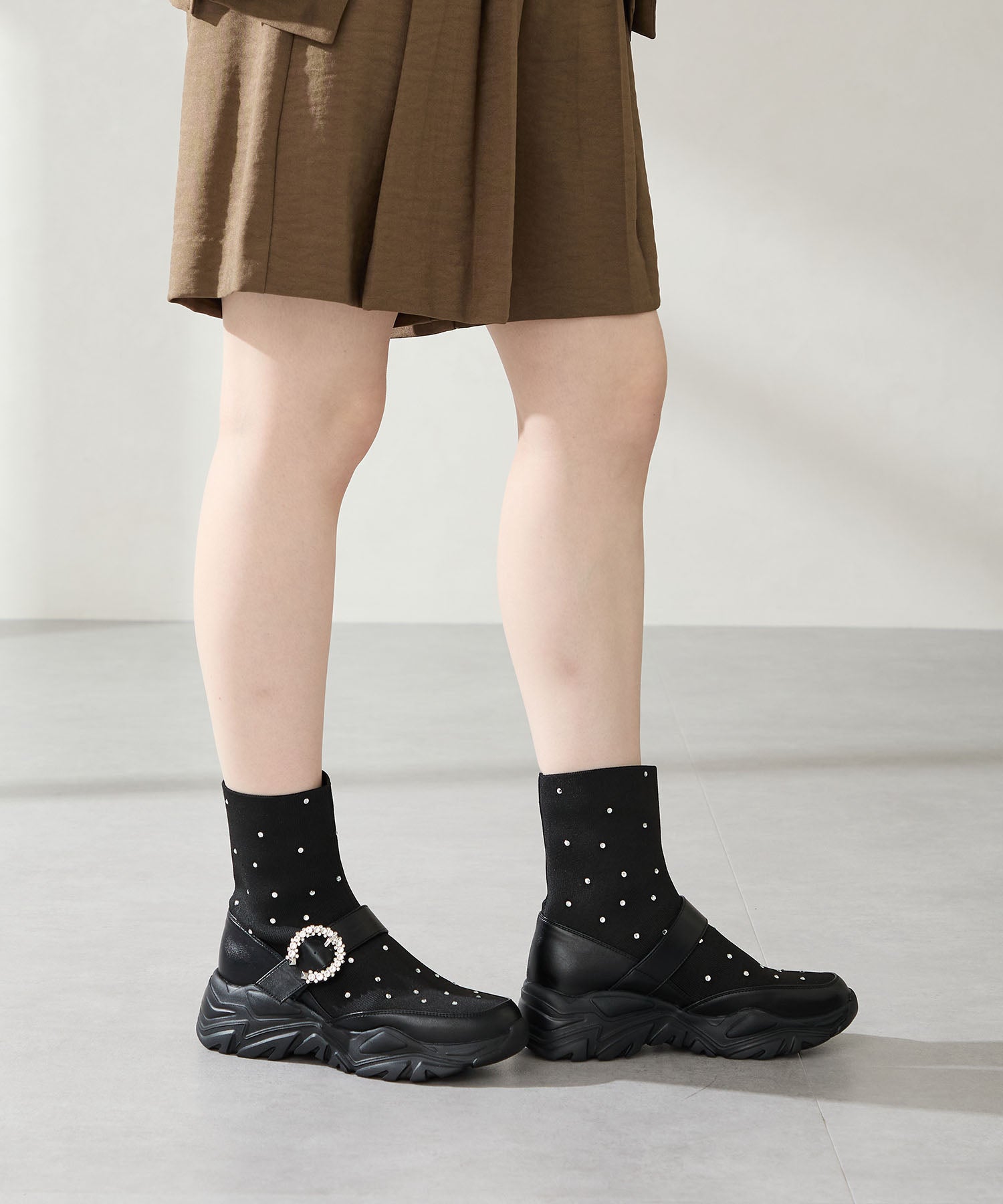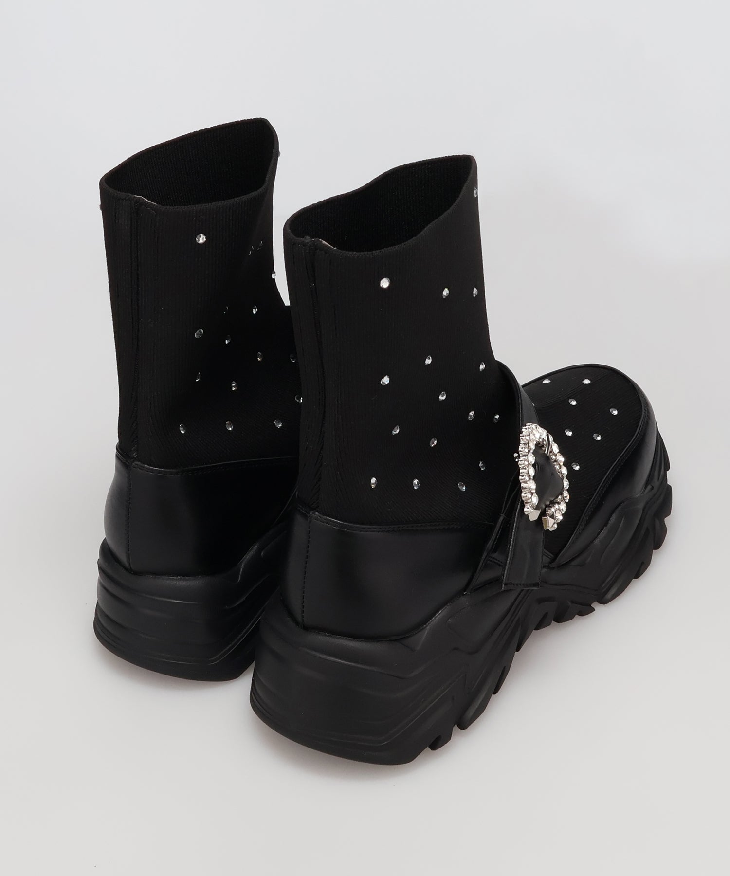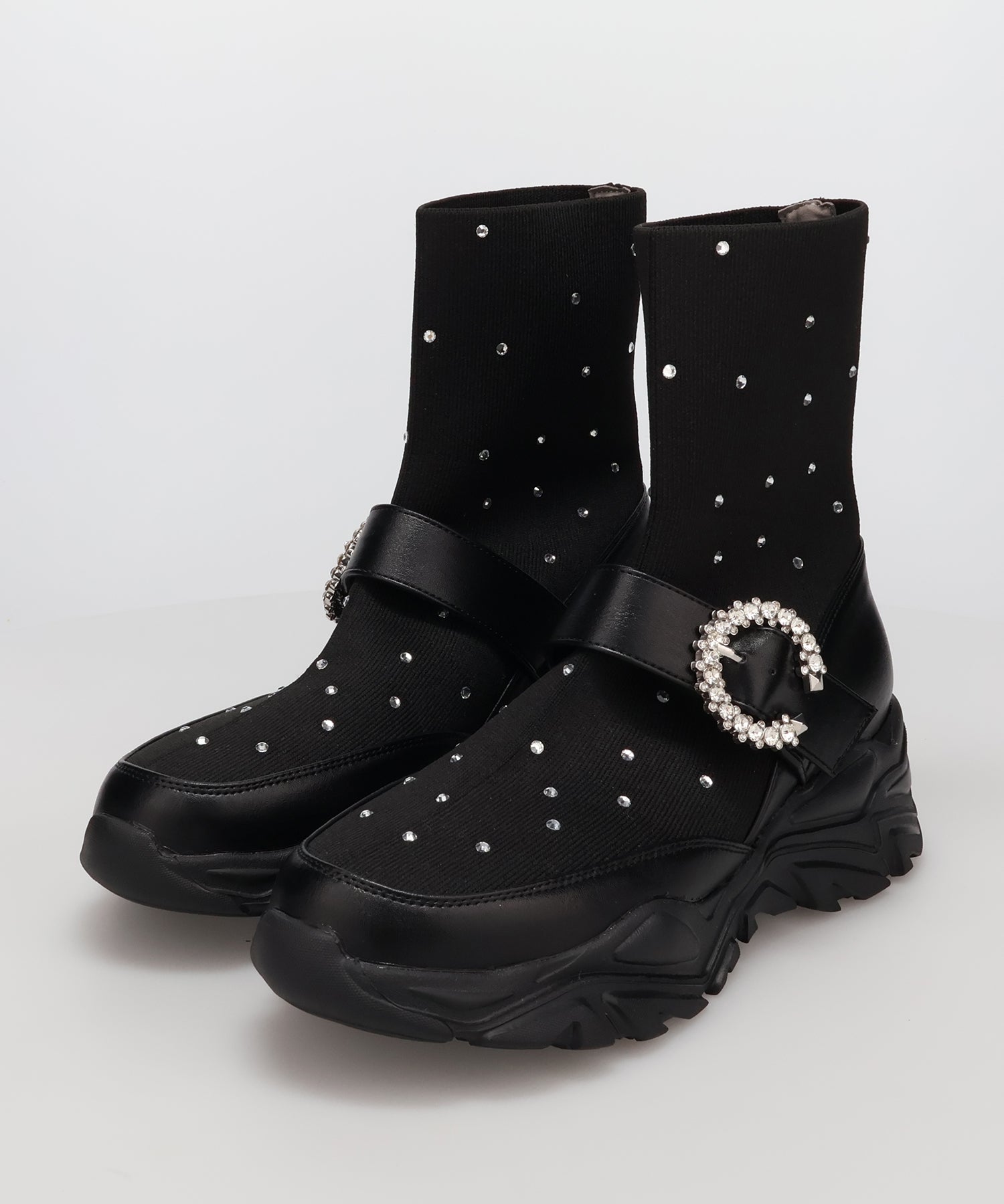 【カタログ掲載アイテム】ラインストーン付きニットスニーカーソールブーツ/56404