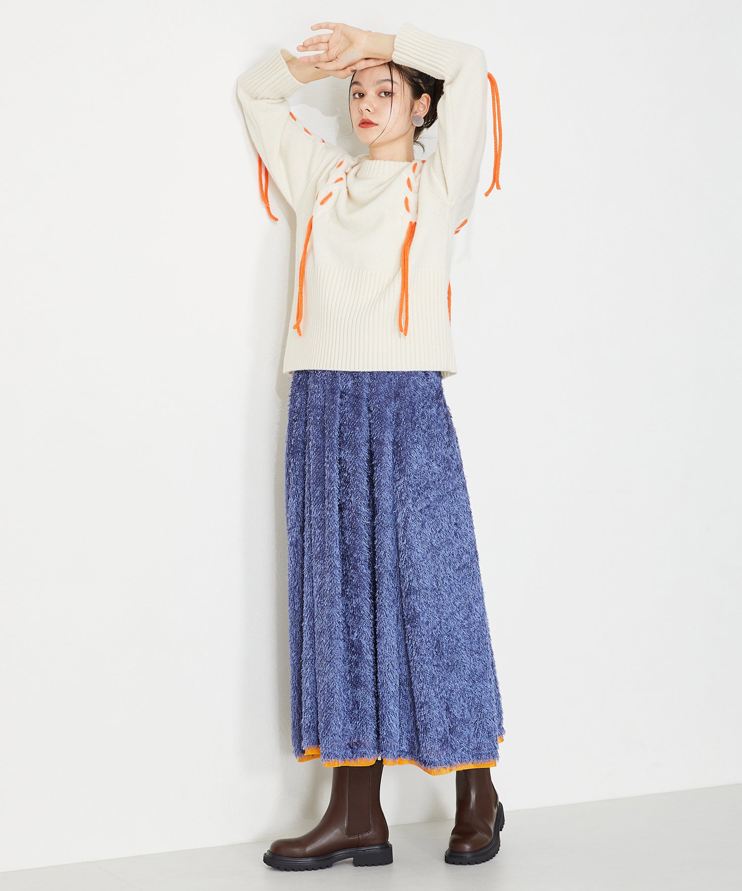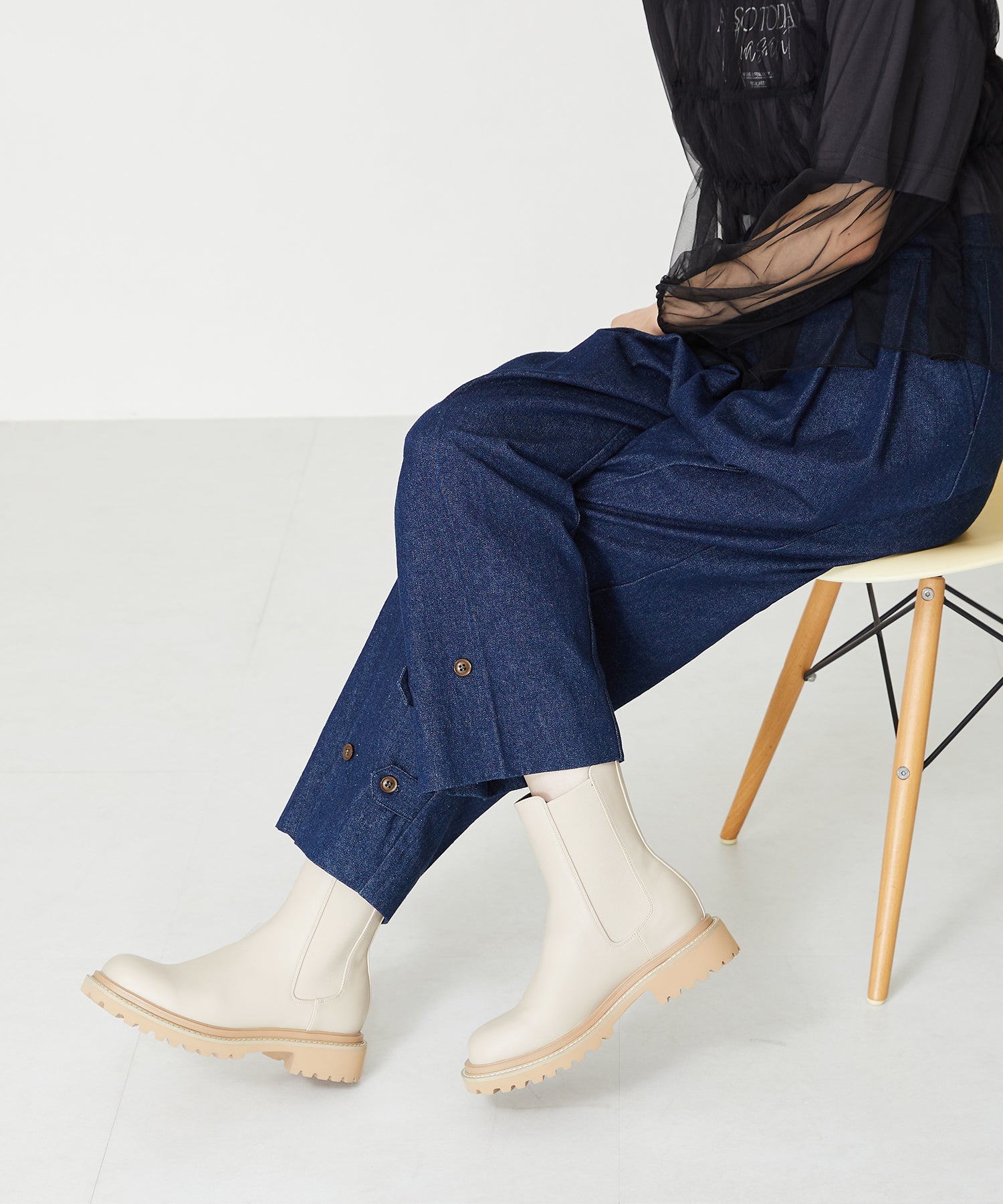 トレンド継続中のチェルシーブーツは、足元にボリュームを出してくれるので履くだけで旬なコーデに格上げしてくれる優秀アイテム。ソールの返りを良くし、足運びしやすく歩きやすいフィッティングに。ホワイトはソールの色をベージュにすることでメリハリがあり、明るい色味でも挑戦しやすい。ガーリースタイルにあえて外しアイテムとして合わせることでコーデをぐっと引き締めてくれる。