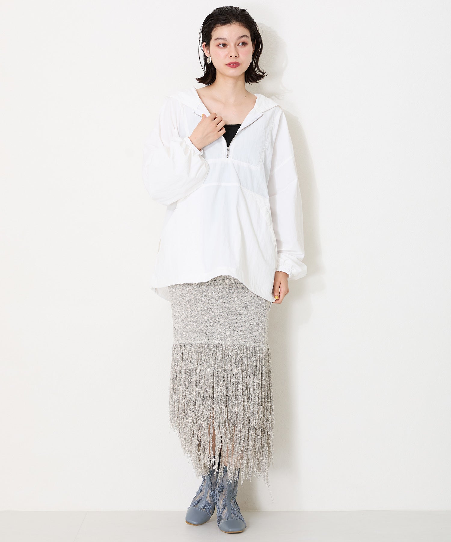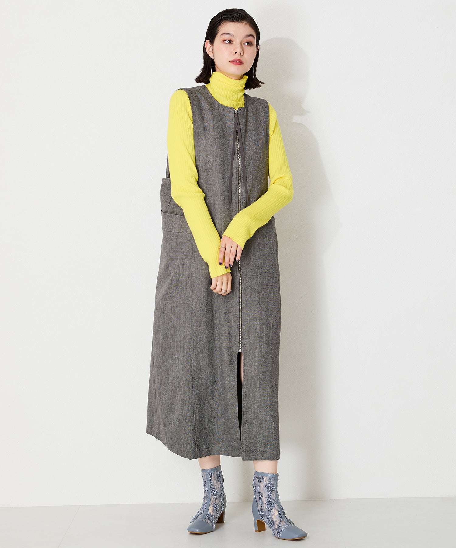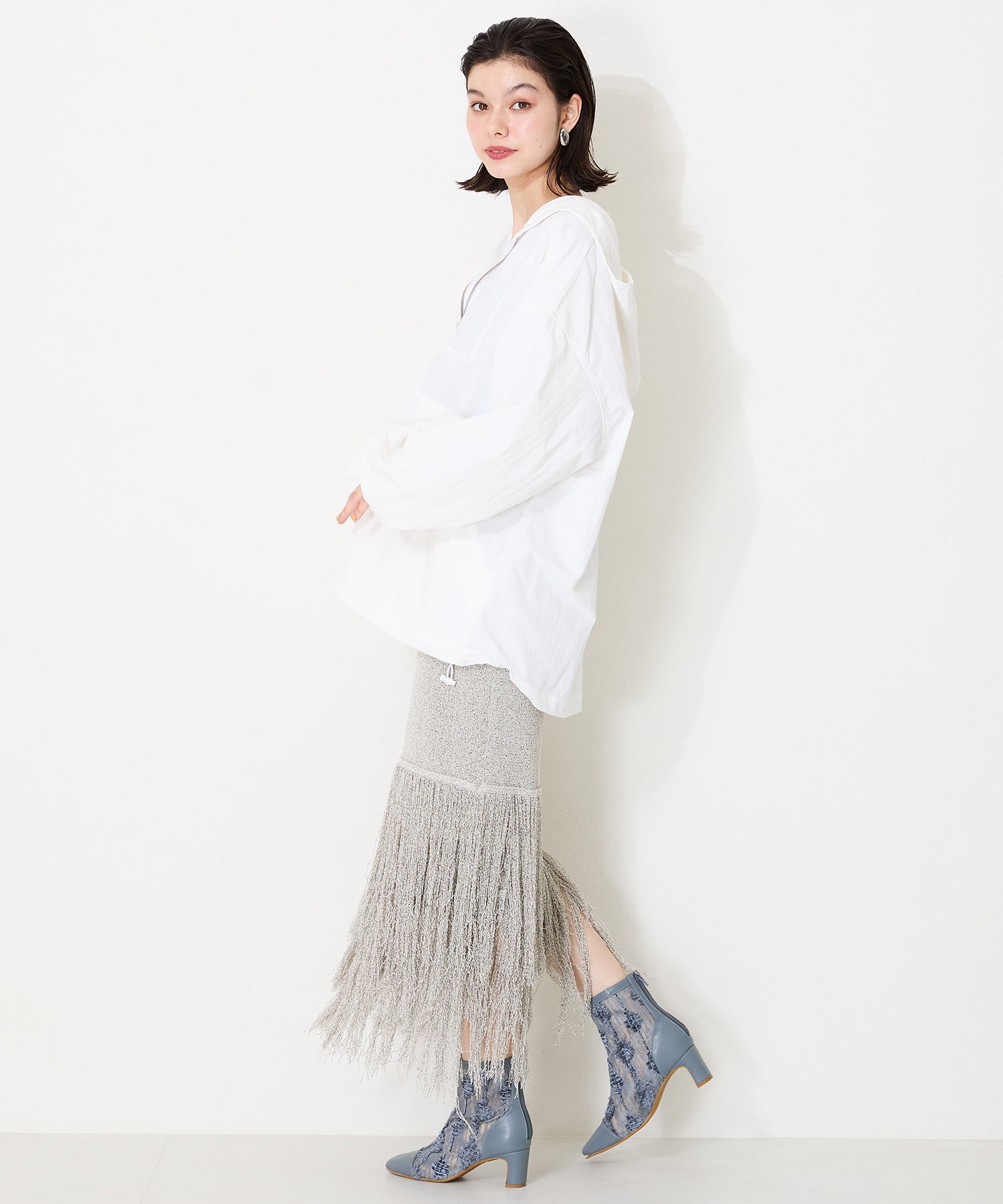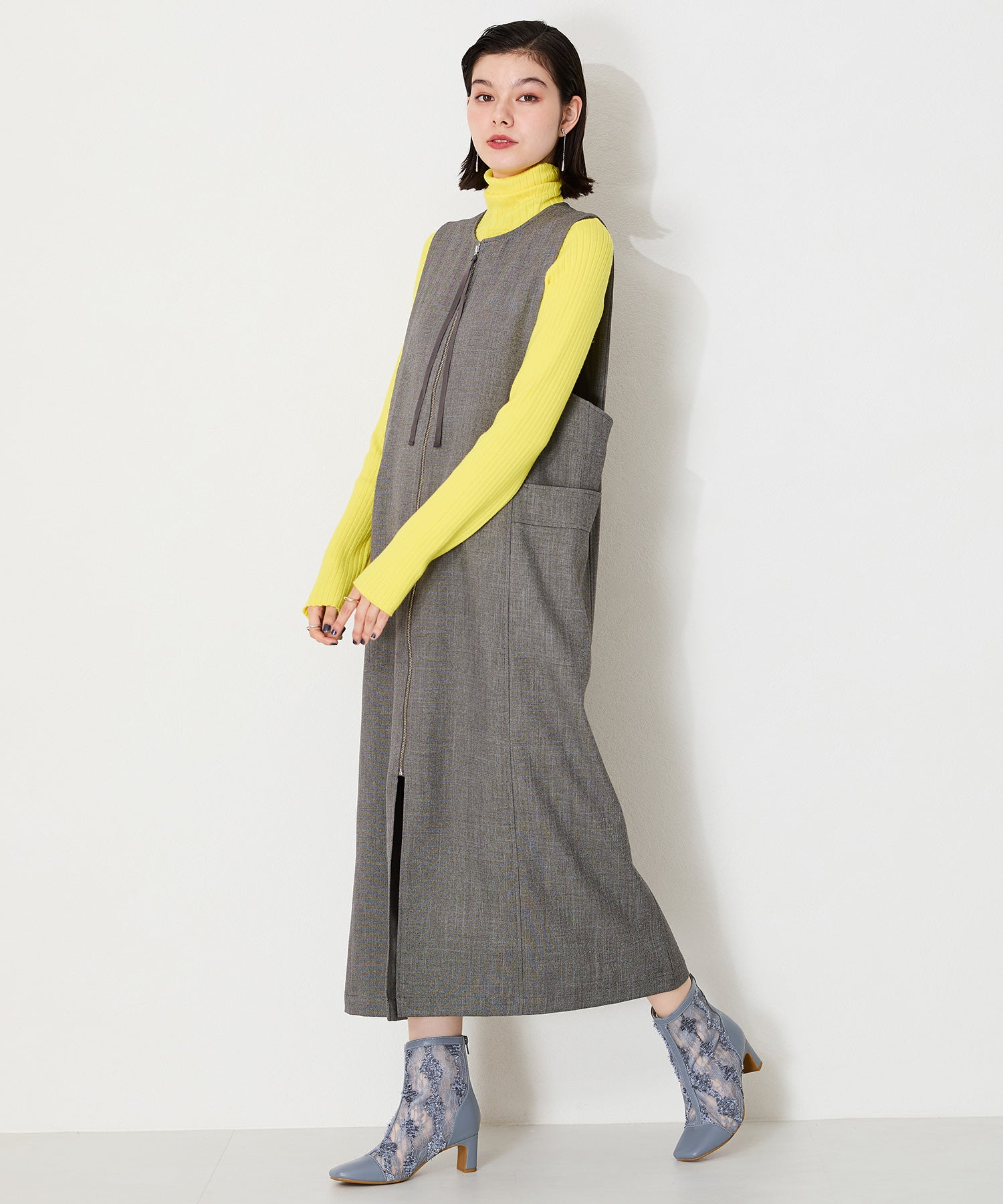 チュールの透け感が女性らしさを出しつつ、スムース素材を合わせることでコーディネートに馴染むよう仕上げたブーツは、センターシームで美脚見えするデザインに。細すぎないプレートヒールで安定感もあり、バックファスナー付きで着脱がしやすいのはもちろん後ろからのシルエットも抜かりない仕上がり。3色すべて柄や質感が異なるのでお好みのスタイリングによって選べるのも嬉しいポイント。