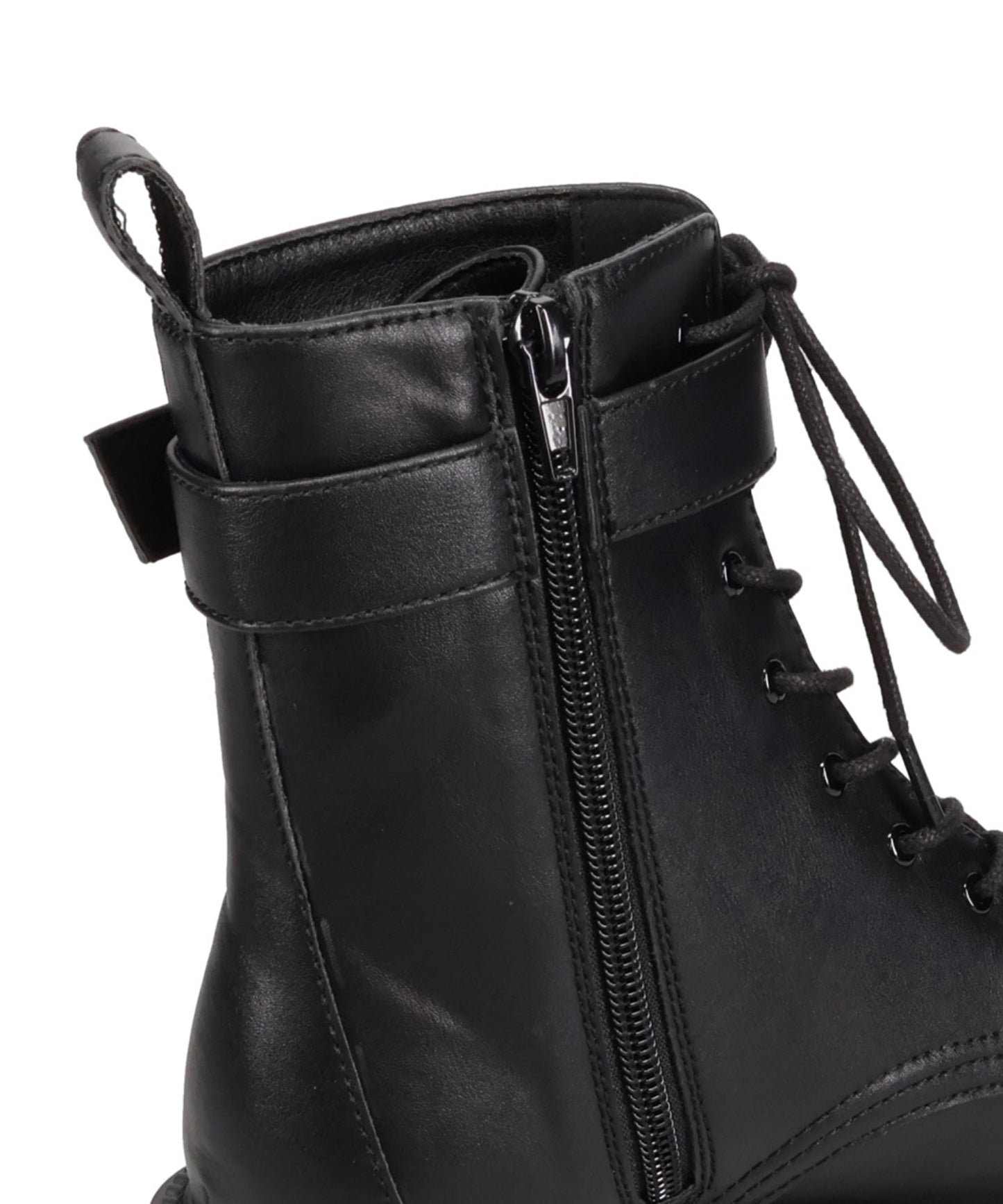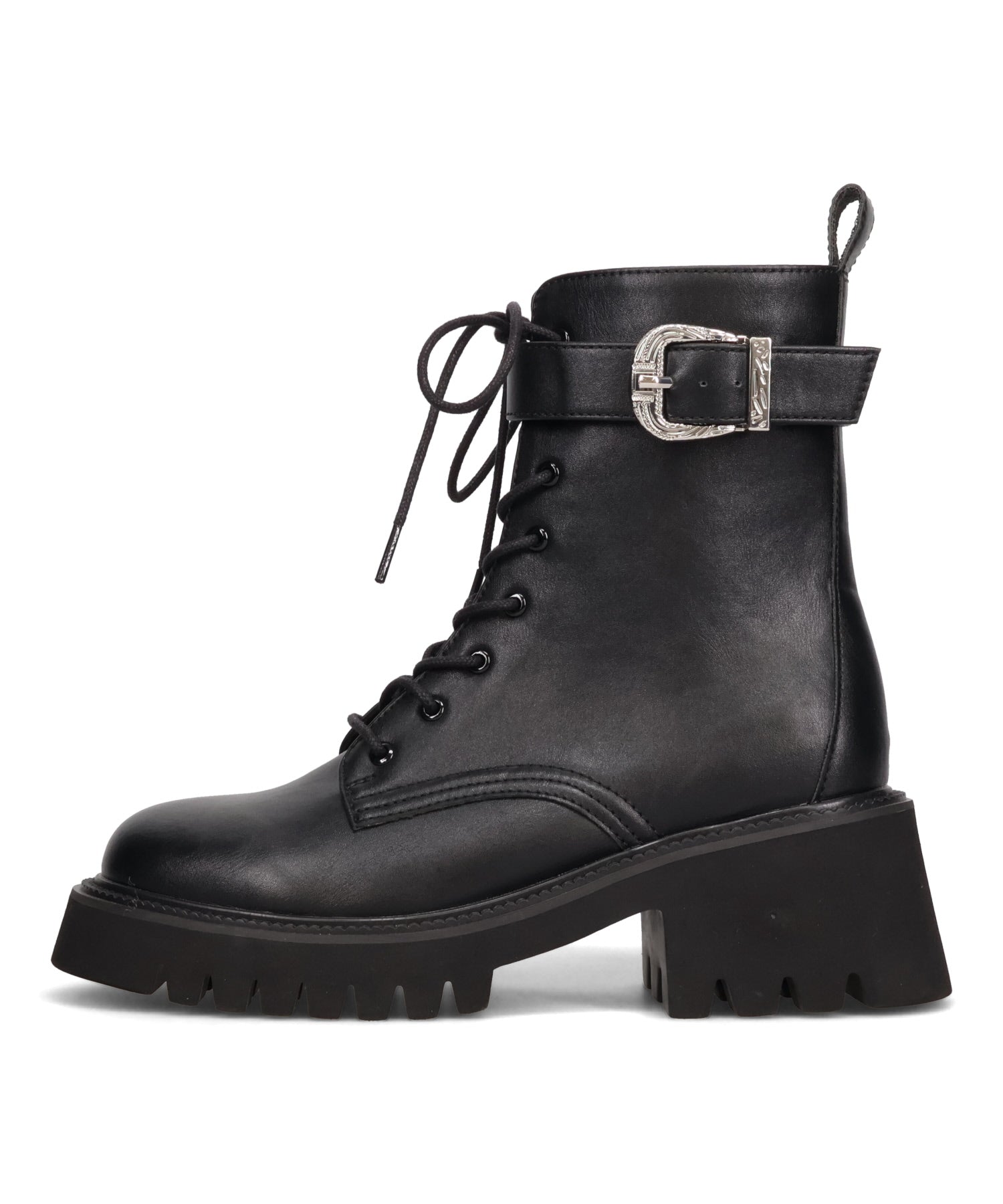 バックルベルトミドルレースアップブーツ/51403 - ブラック / S