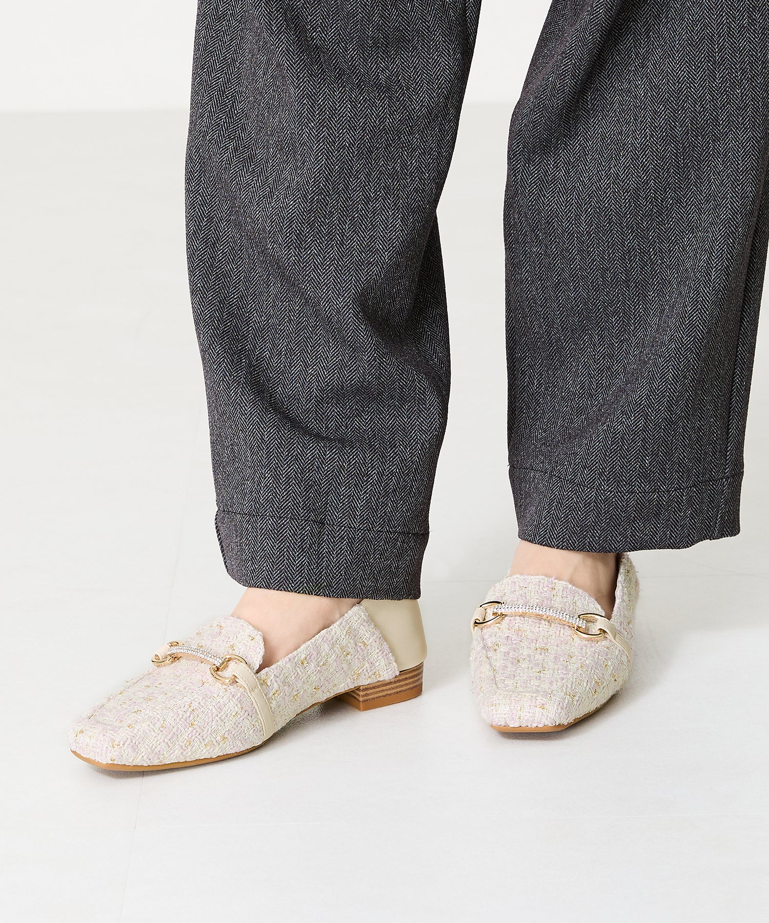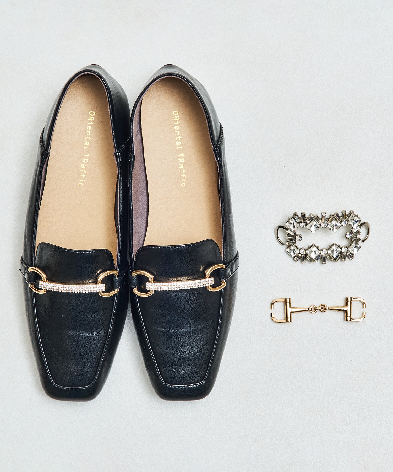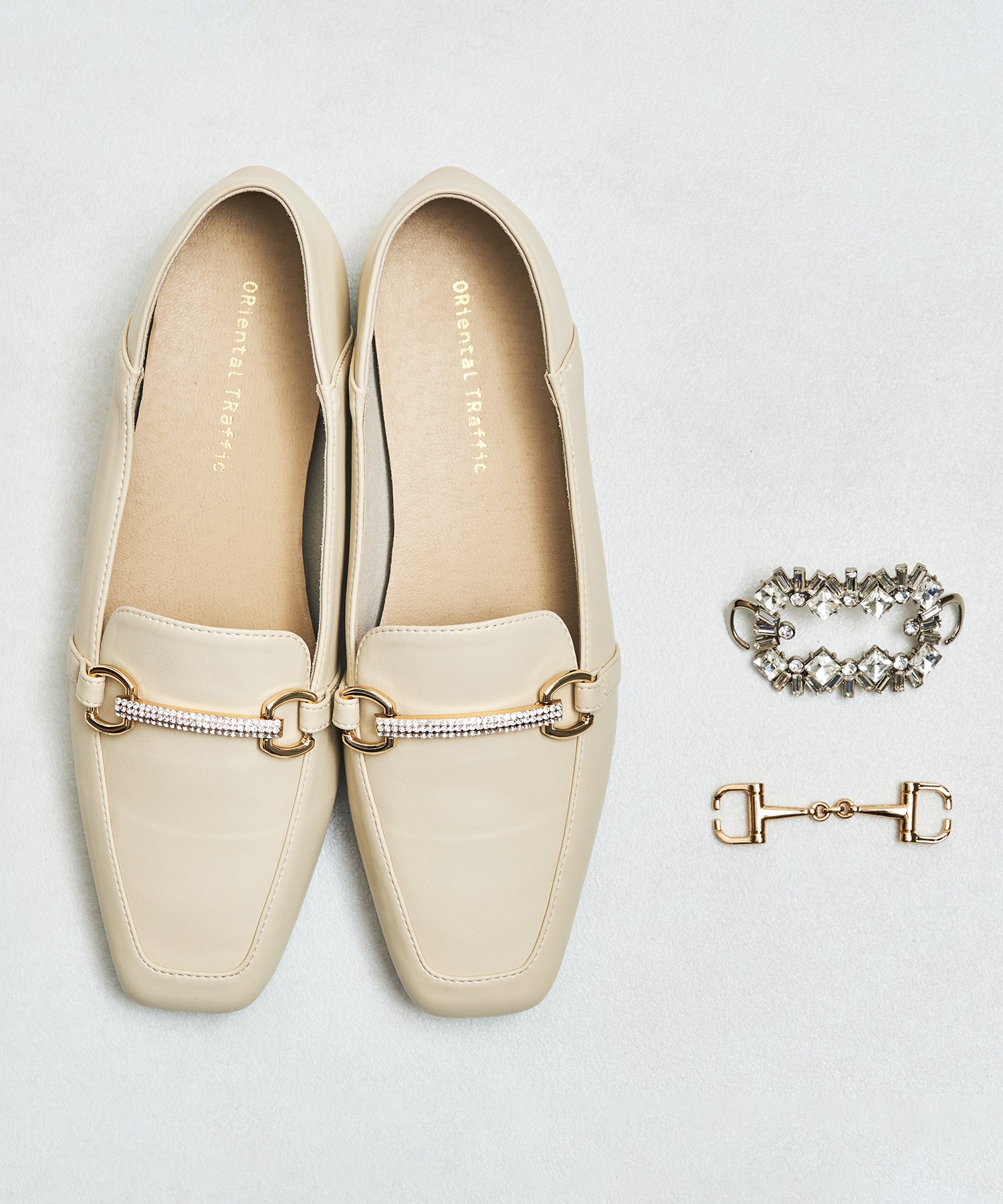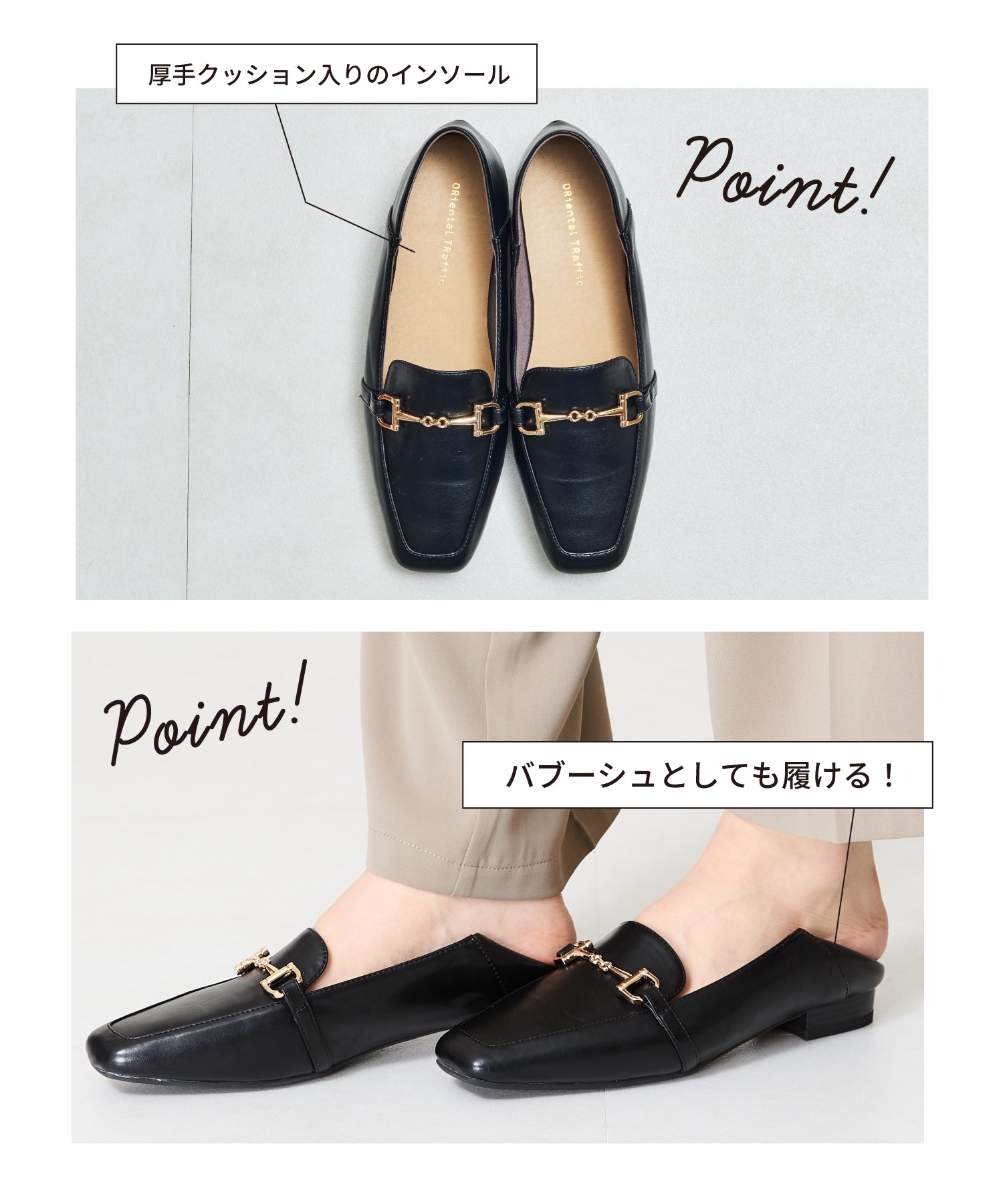 モチーフ部分が付け替え可能な特別感のあるローファーが登場。デザインの違う3種類のモチーフが付いているので、その日のシーンやスタイルに合わせてデザインをカスタムできるのが嬉しい。厚手クッション入りのインソールで疲れにくく、さらに踵が踏めるバブーシュ仕様で気になる踵の負担を軽減。1足でマルチに大活躍してくれること間違いなしの注目アイテム。
