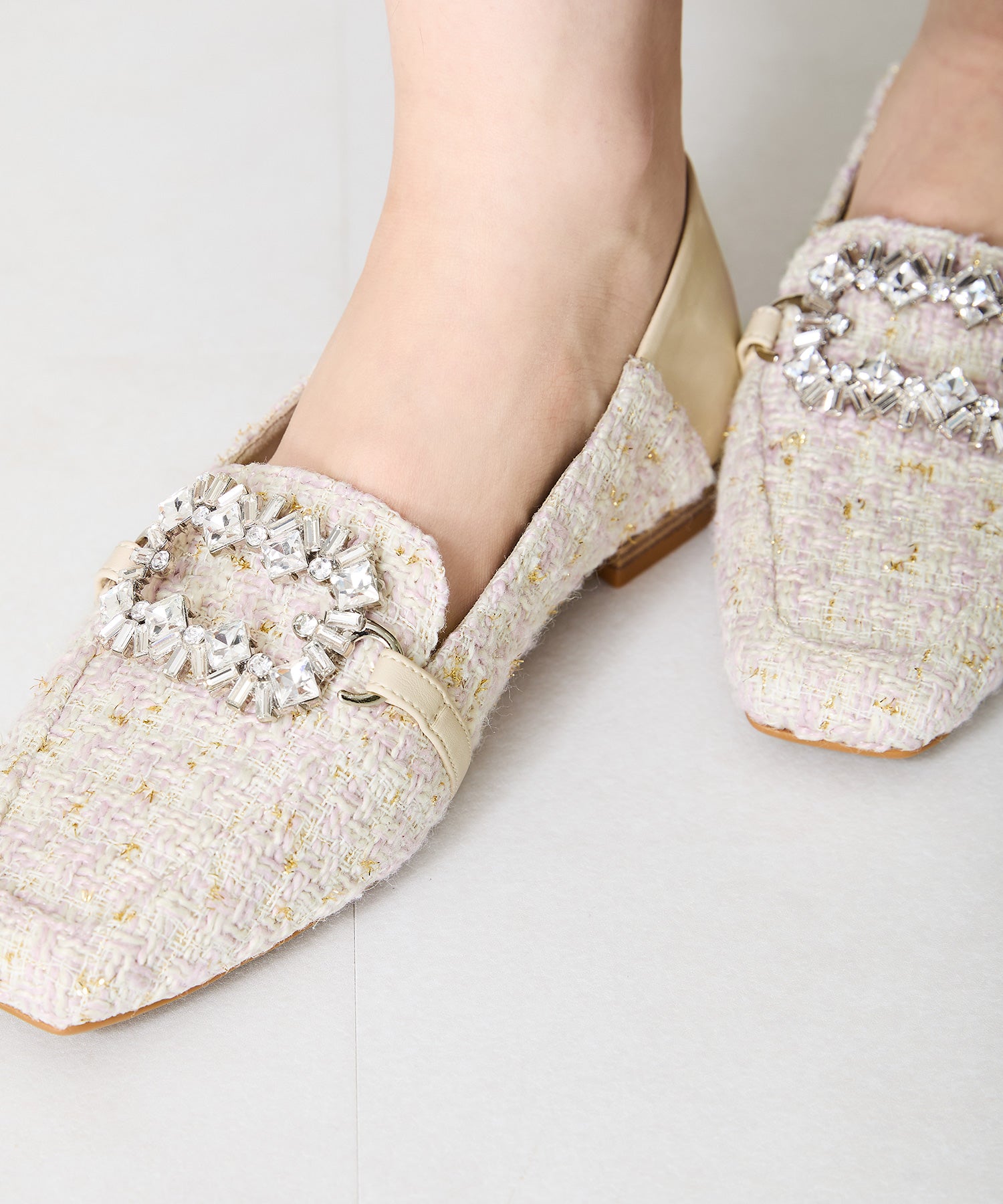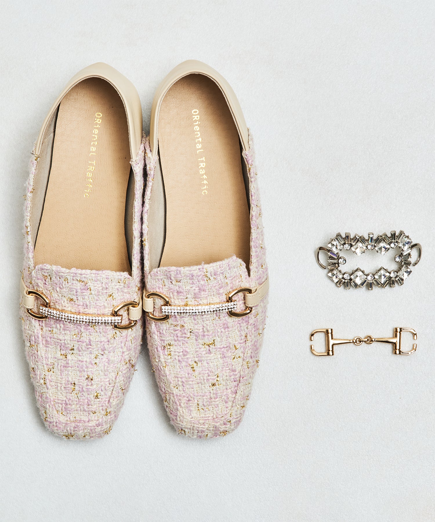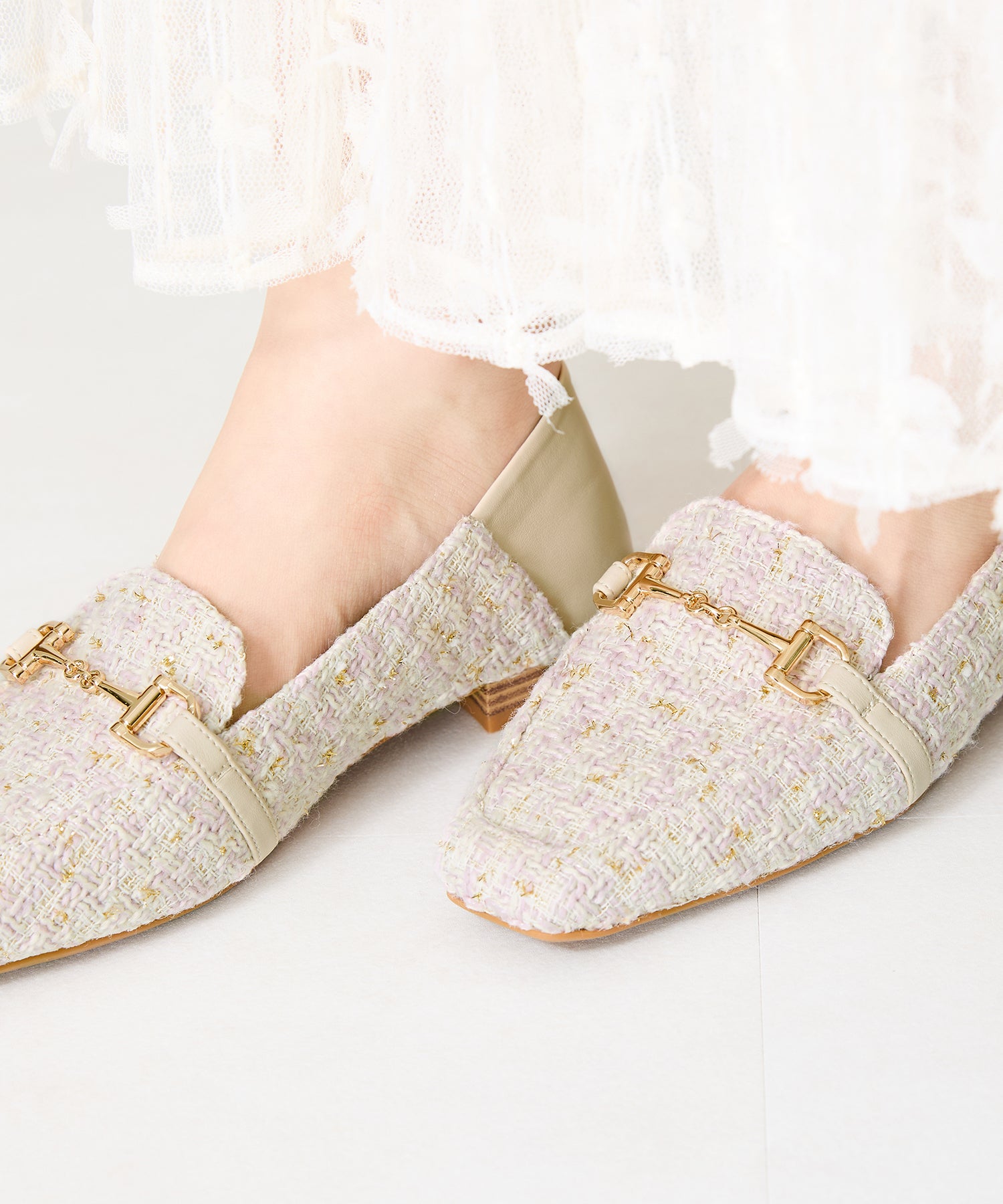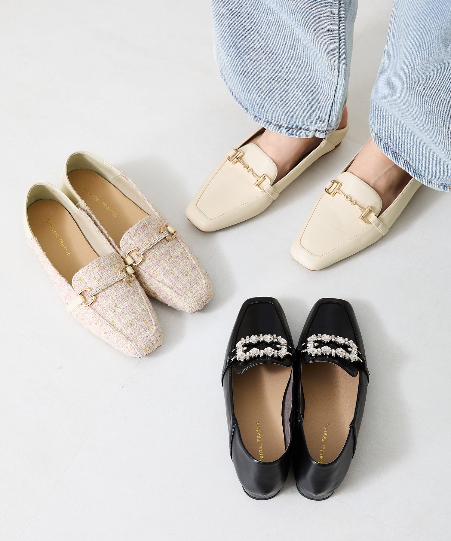 モチーフ部分が付け替え可能な特別感のあるローファーが登場。デザインの違う3種類のモチーフが付いているので、その日のシーンやスタイルに合わせてデザインをカスタムできるのが嬉しい。厚手クッション入りのインソールで疲れにくく、さらに踵が踏めるバブーシュ仕様で気になる踵の負担を軽減。1足でマルチに大活躍してくれること間違いなしの注目アイテム。