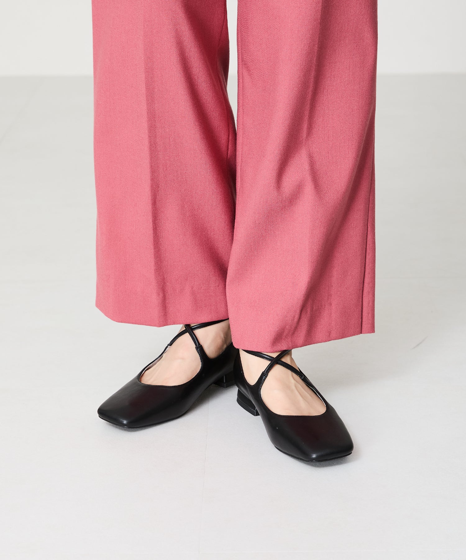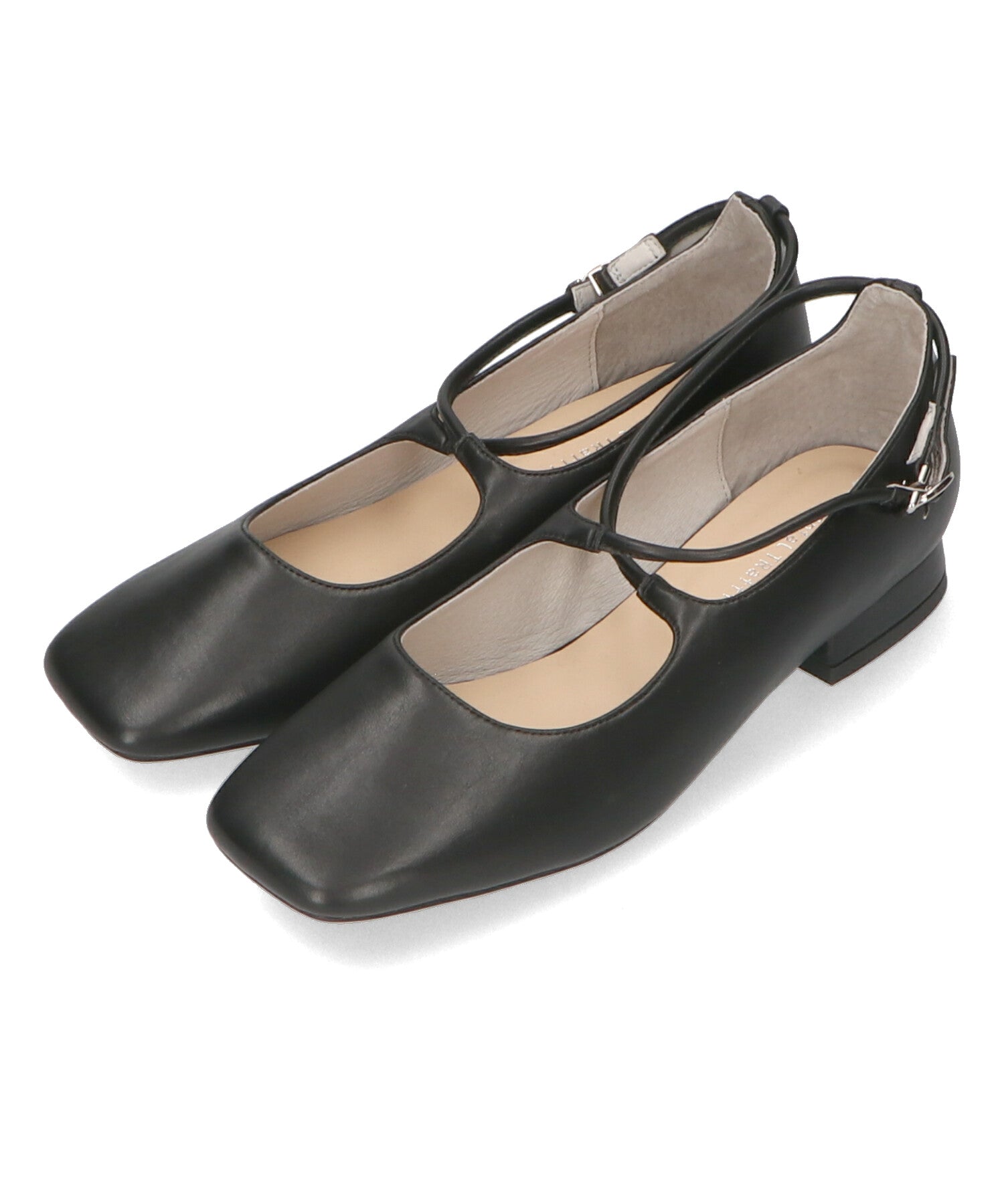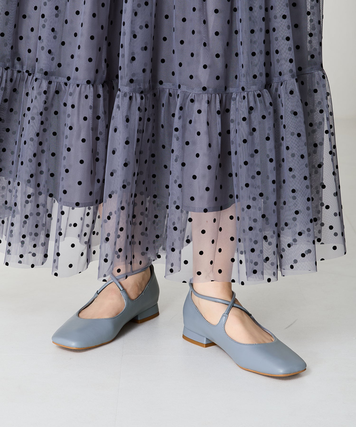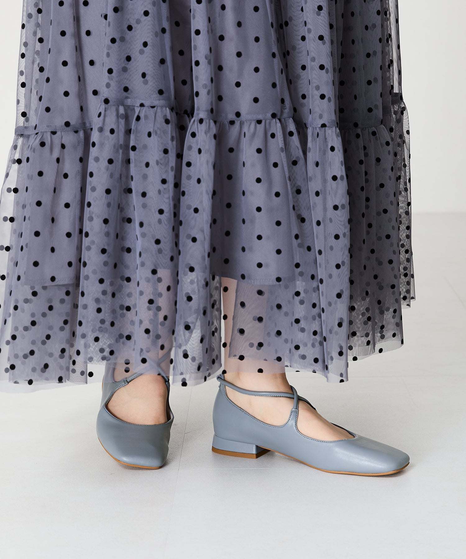 甲でクロスする華奢なストラップデザインが可愛いパンプスは、2cmのローヒールで歩きやすい高さなもの嬉しいポイント。広めのスクエアトゥは程よい丸みがありながらもシルエットがすっきり見え、つま先が柔らかい作りなので指先が痛くなりにくい。どんなコーデにもハマるメタリックのゴールドは、レッグアイテムとの組み合わせも旬なおすすめカラー。