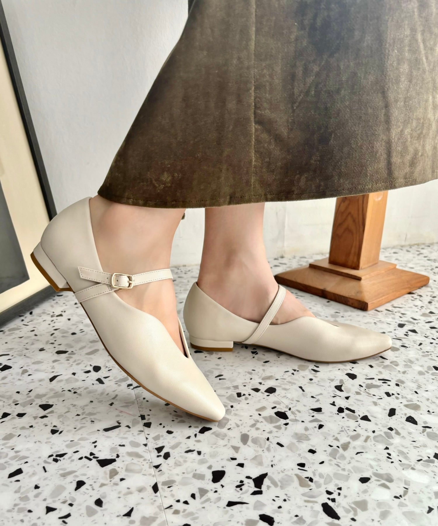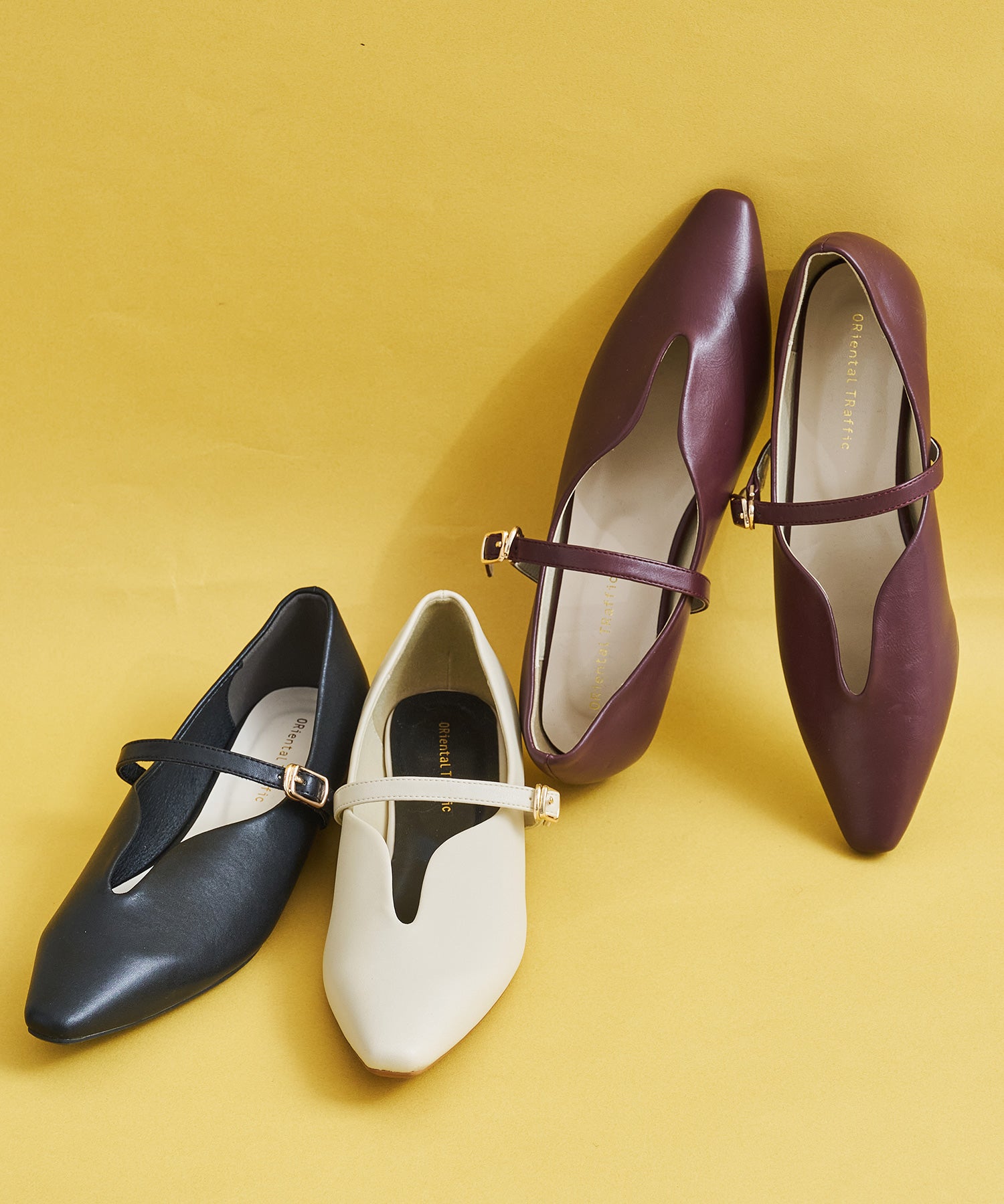 フラットタイプで履きやすいストラップパンプスは、甲部分に緩やかなVカットラインを入れてほどよく抜け感のあるデザインに。ストラップ付きでしっかり足をホールドしてくれるので、踵が浮いてしまうことなく安心して履けるのが嬉しい。オールシーズン使えるベーシックなデザインとカラバリで、普段のコーディネートにも馴染んでくれる優秀アイテム。