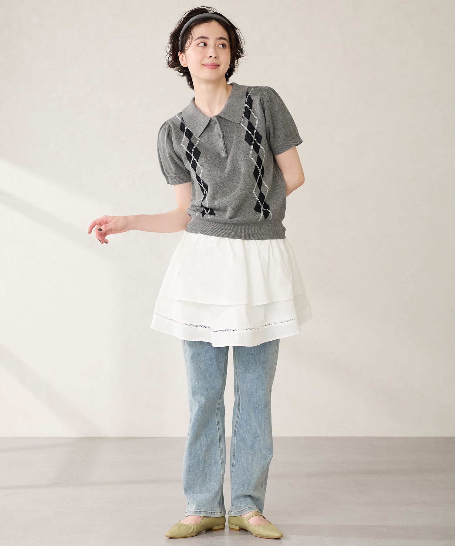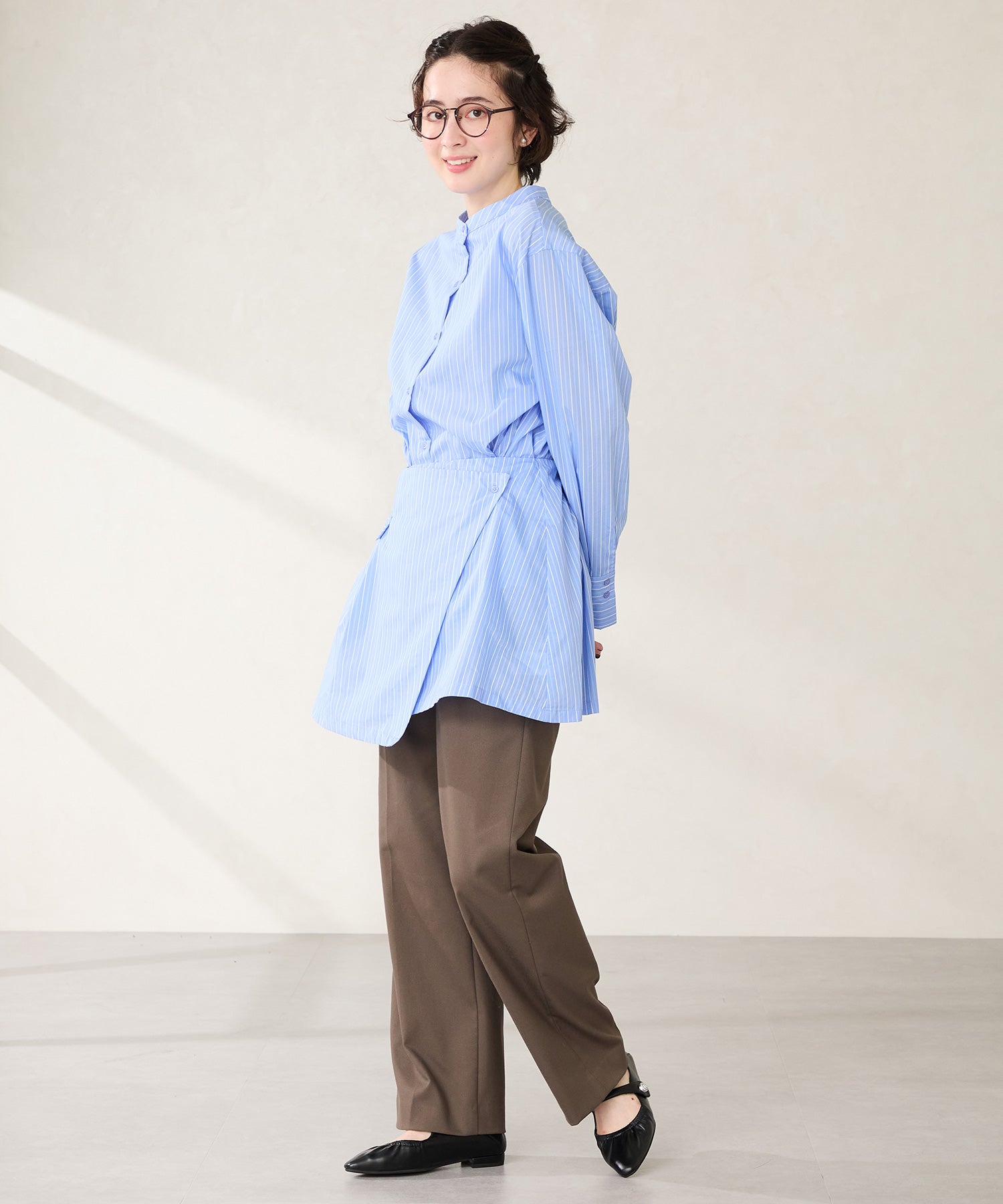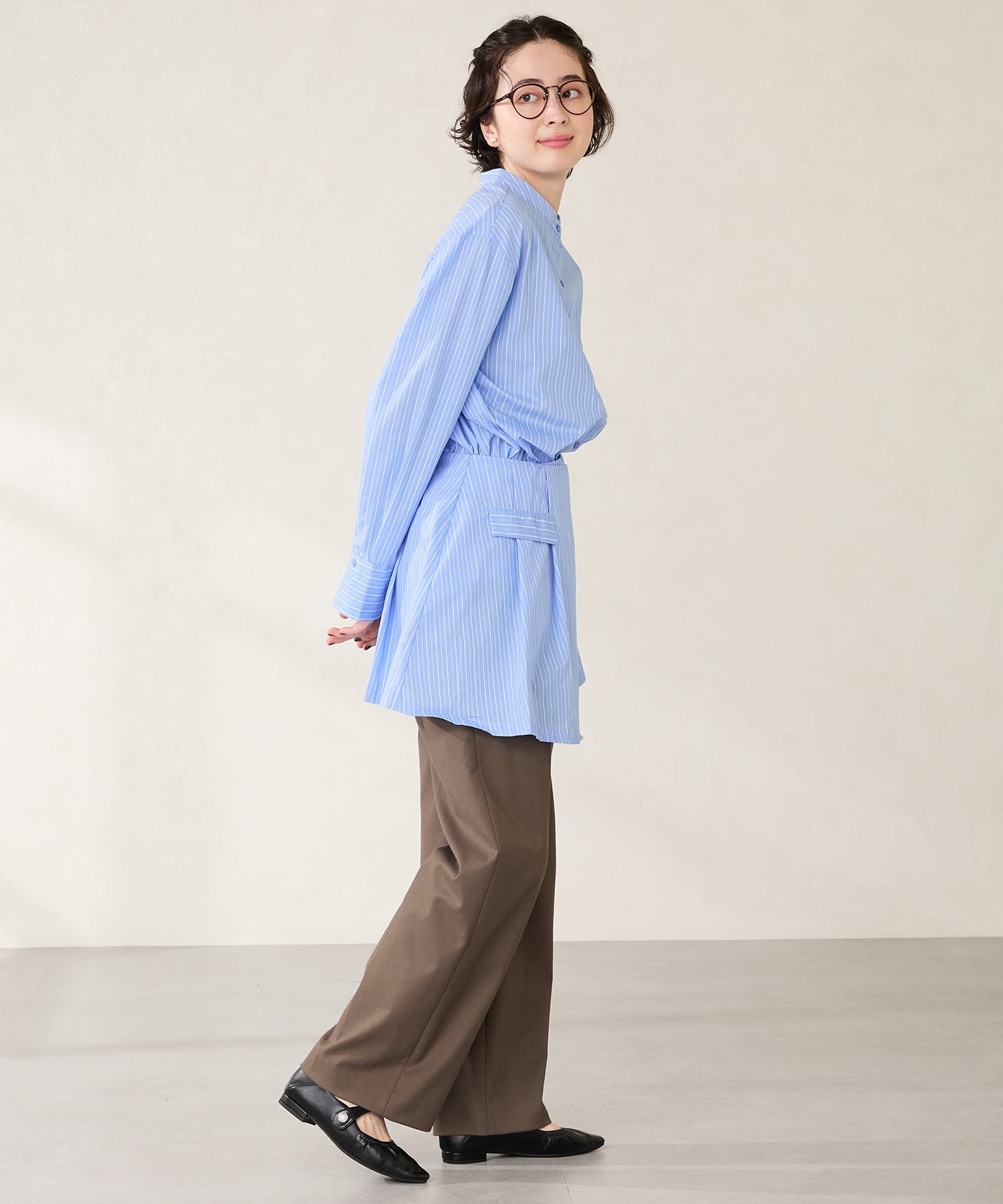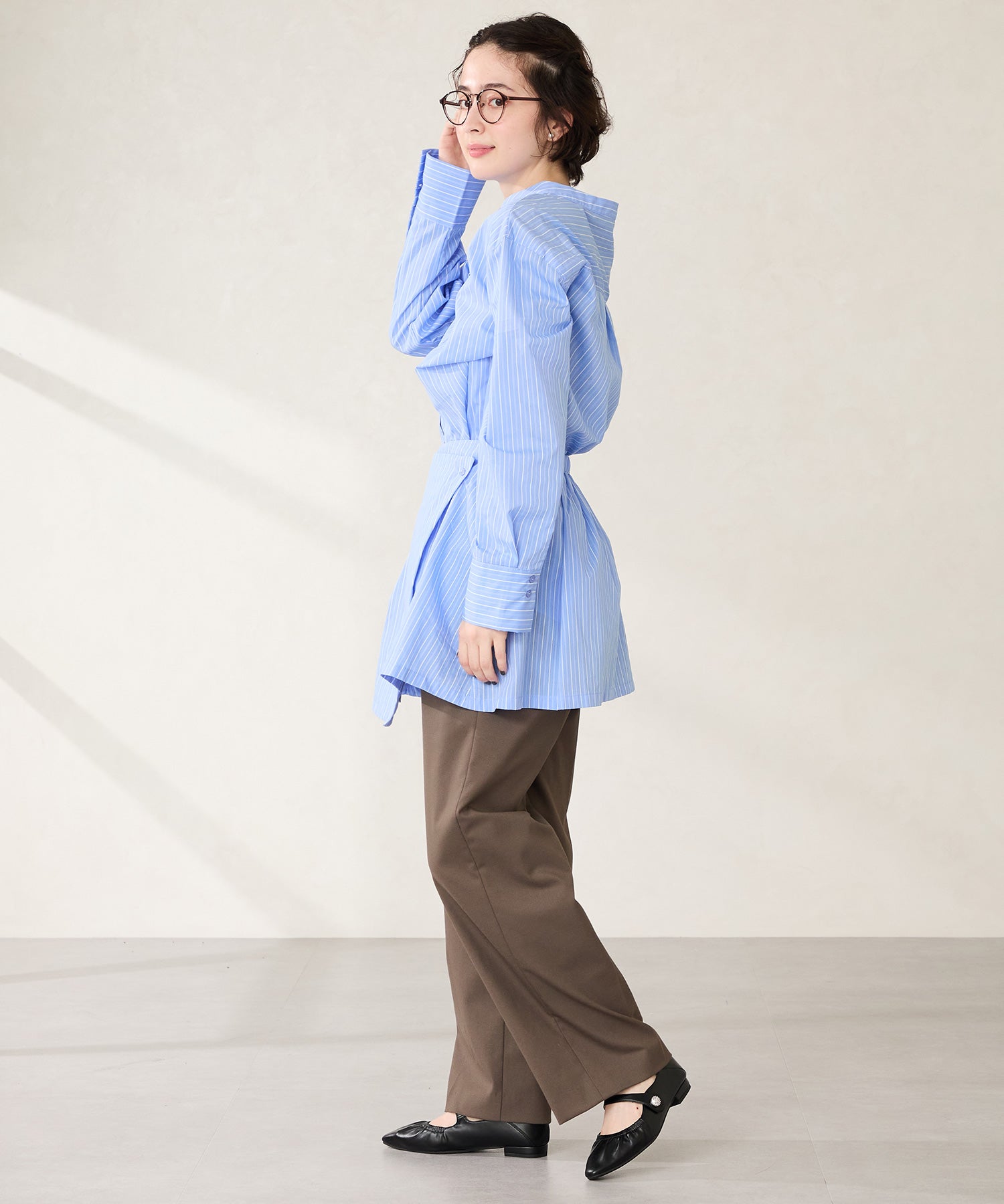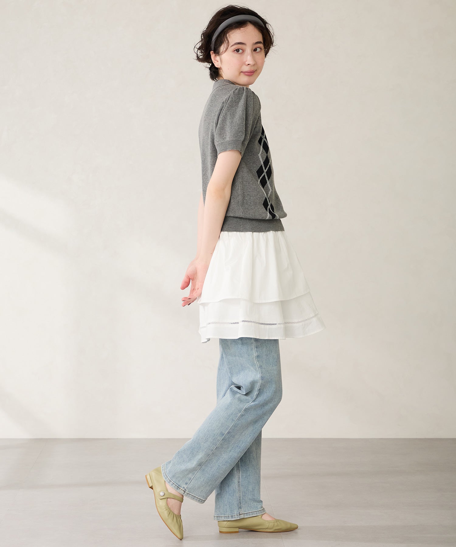 甲ベルトにあしらったビジュー付きのモチーフがさりげないワンポイントのフラットパンプスは、シャープなスクエアトゥで大人見えする1足。ゴムを入れた履き口は甲にフィットしながら、ギャザーデザインが足元をすっきり綺麗に見せてくれる。踵はバブーシュ仕様になっているので踏んでも履けるのと、中敷には厚手のクッションが入っているのでたくさん歩く日も安心。