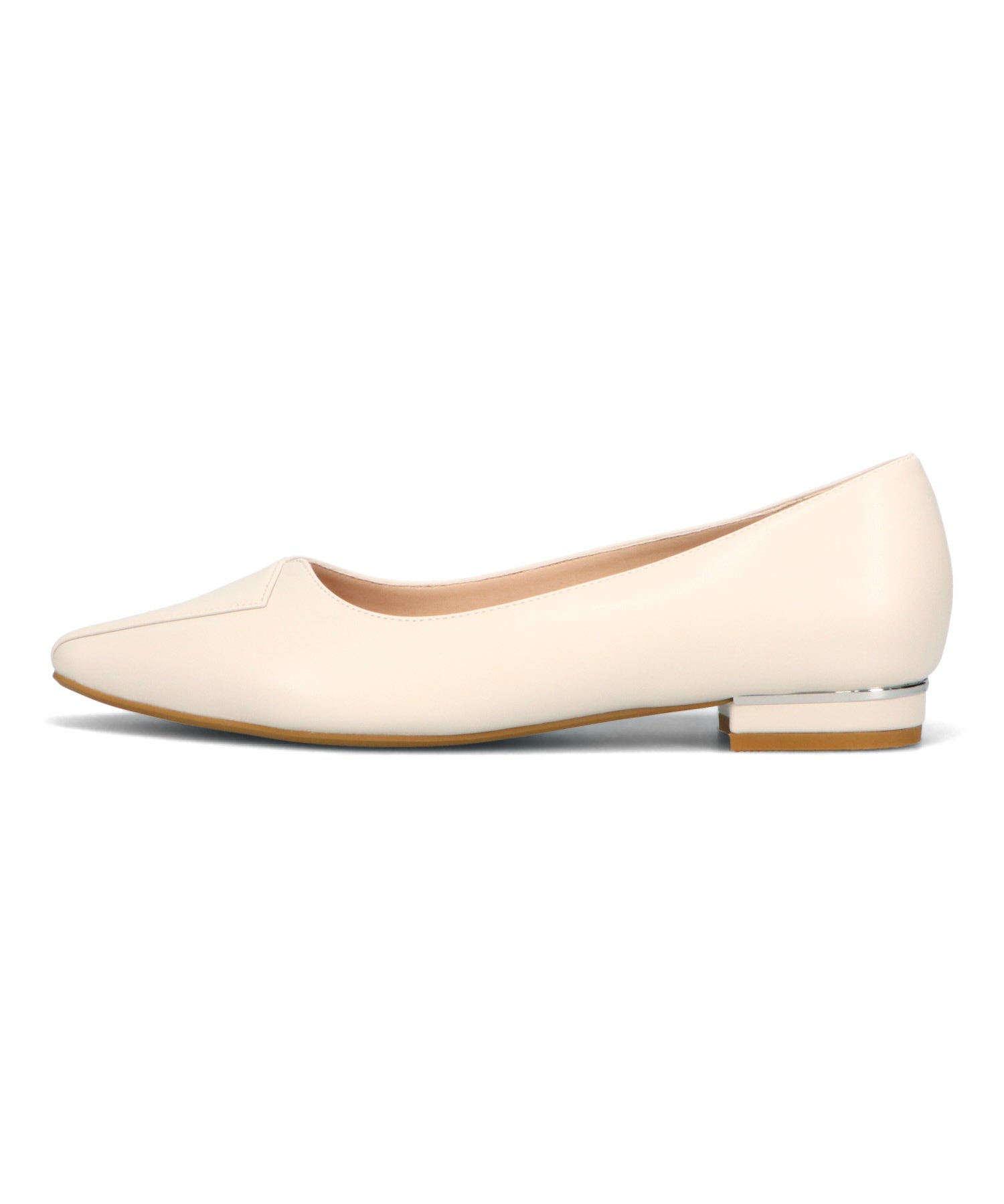 シンプルながらヒールのメタリックラインやアッパーのカットデザインがポイントのパンプス。インソールに入れたクッションやフラットヒールで日常使いにもビジネスシーンにも大活躍なアイテム。細身のトゥで綺麗なシルエットに仕上げ、足元がシャープに見えるのもポイント。落ち着いたベーシックカラーはスマートながら女性らしさが楽しめて幅広く履きこなせる。