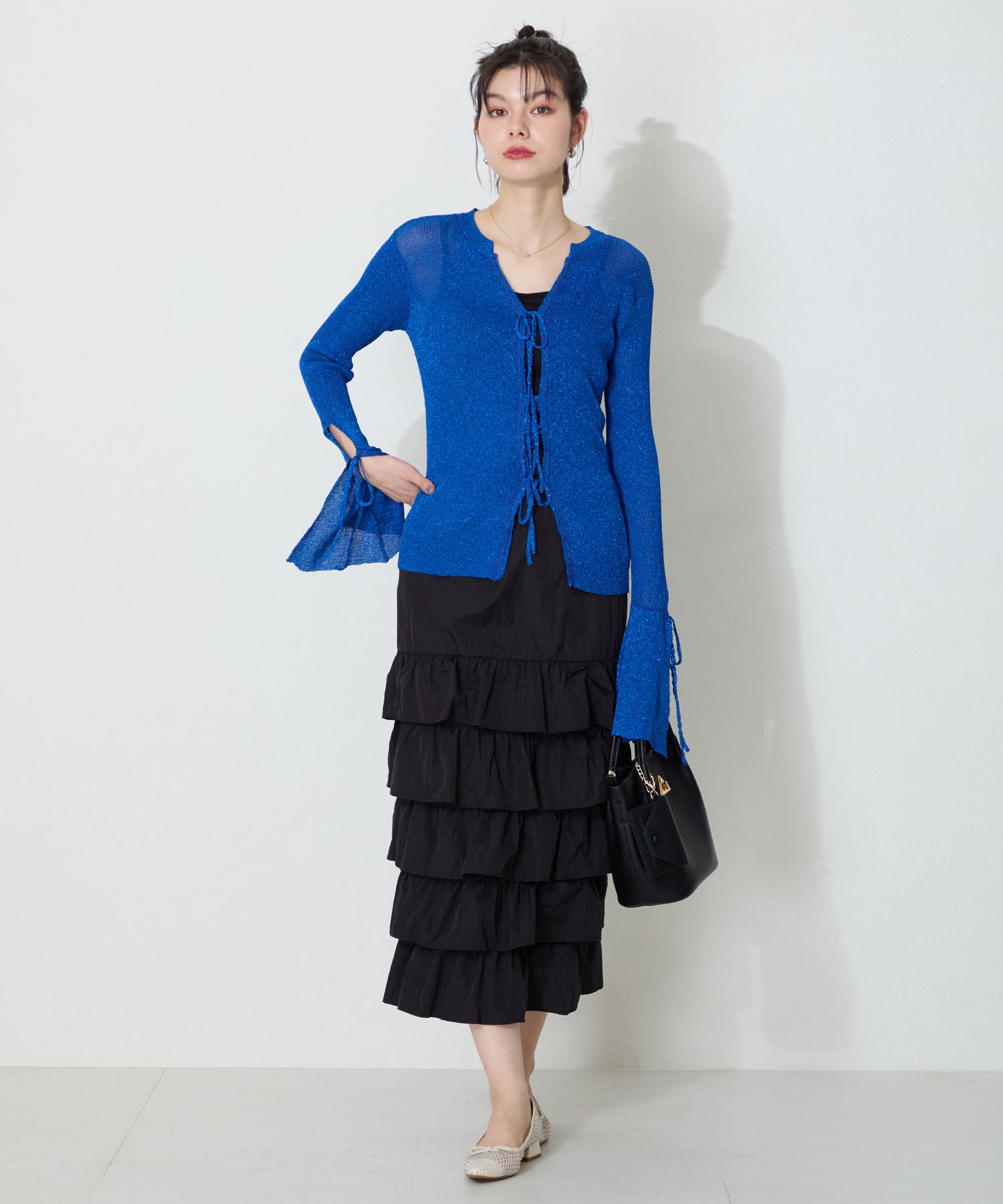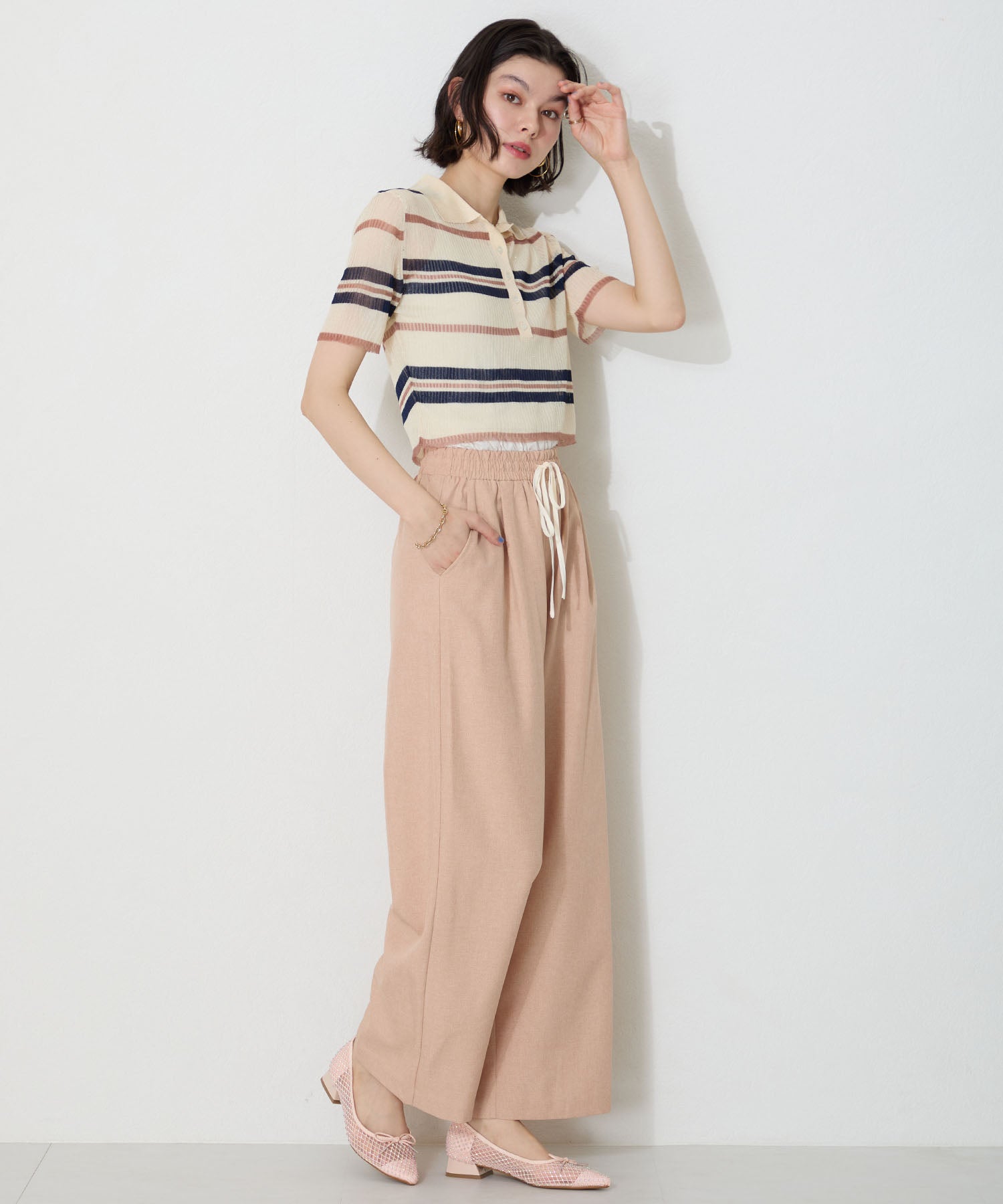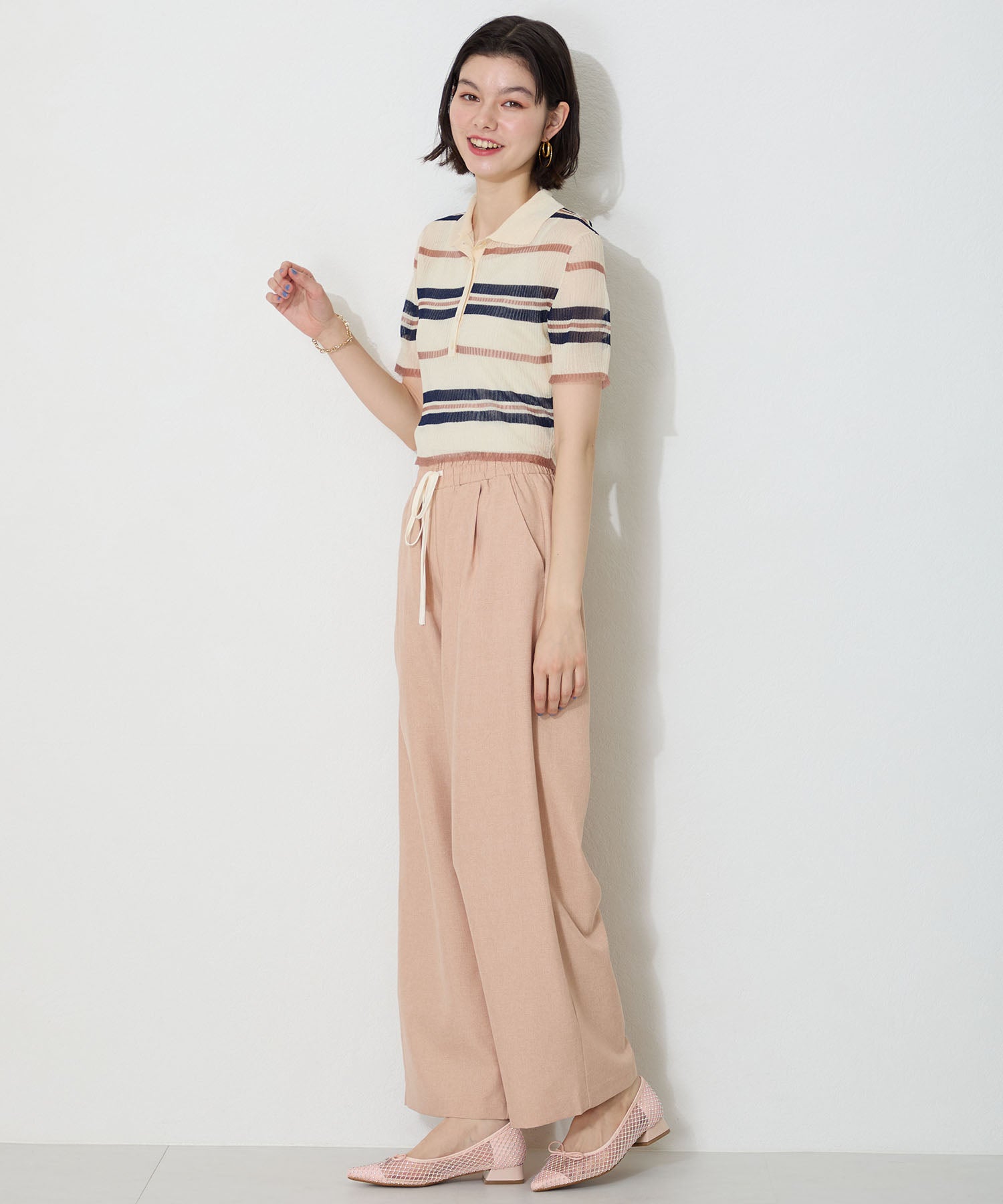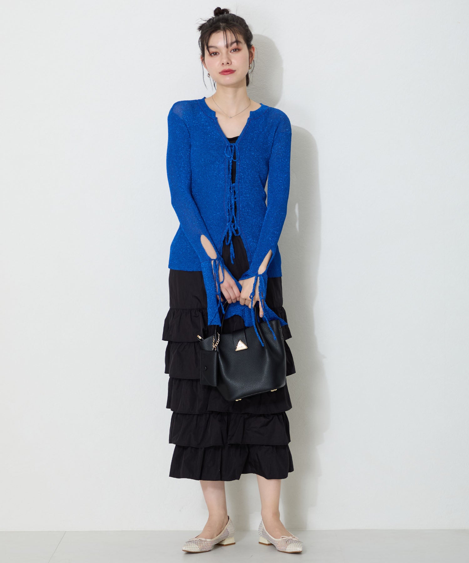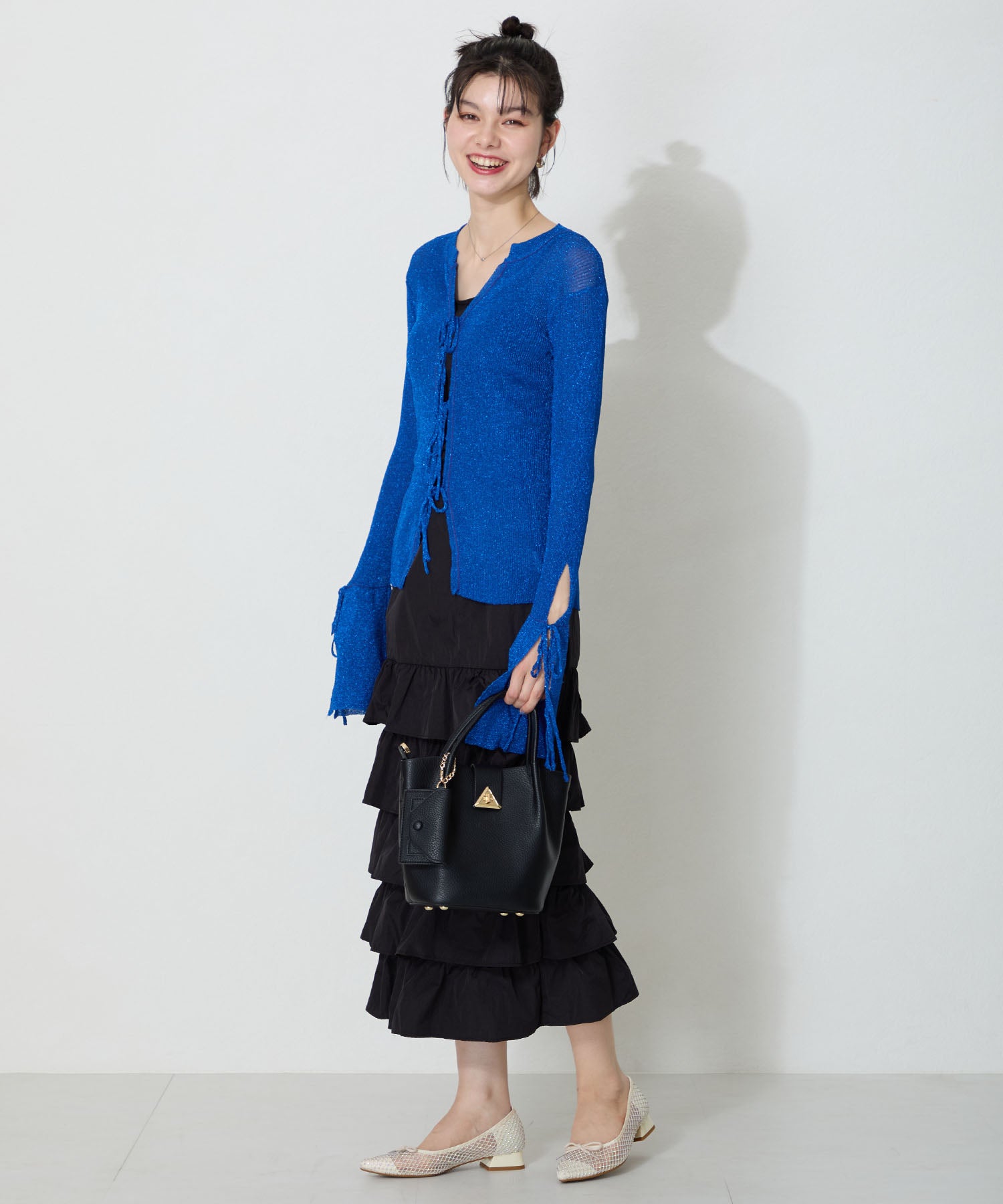涼し気なチュール生地にメッシュを掛け合わせたデザインが今っぽいパンプスは、小粒のラインストーンを全体に配置して歩くたびにキラキラ輝く、履くだけで気分の上がる1足。華奢なリボンを付け全体的に柔らかく淡いカラーリングにすることでかわいらしい印象をプラスし、シアーの透け感がいつものコーデにも馴染みやすいアイテム。
