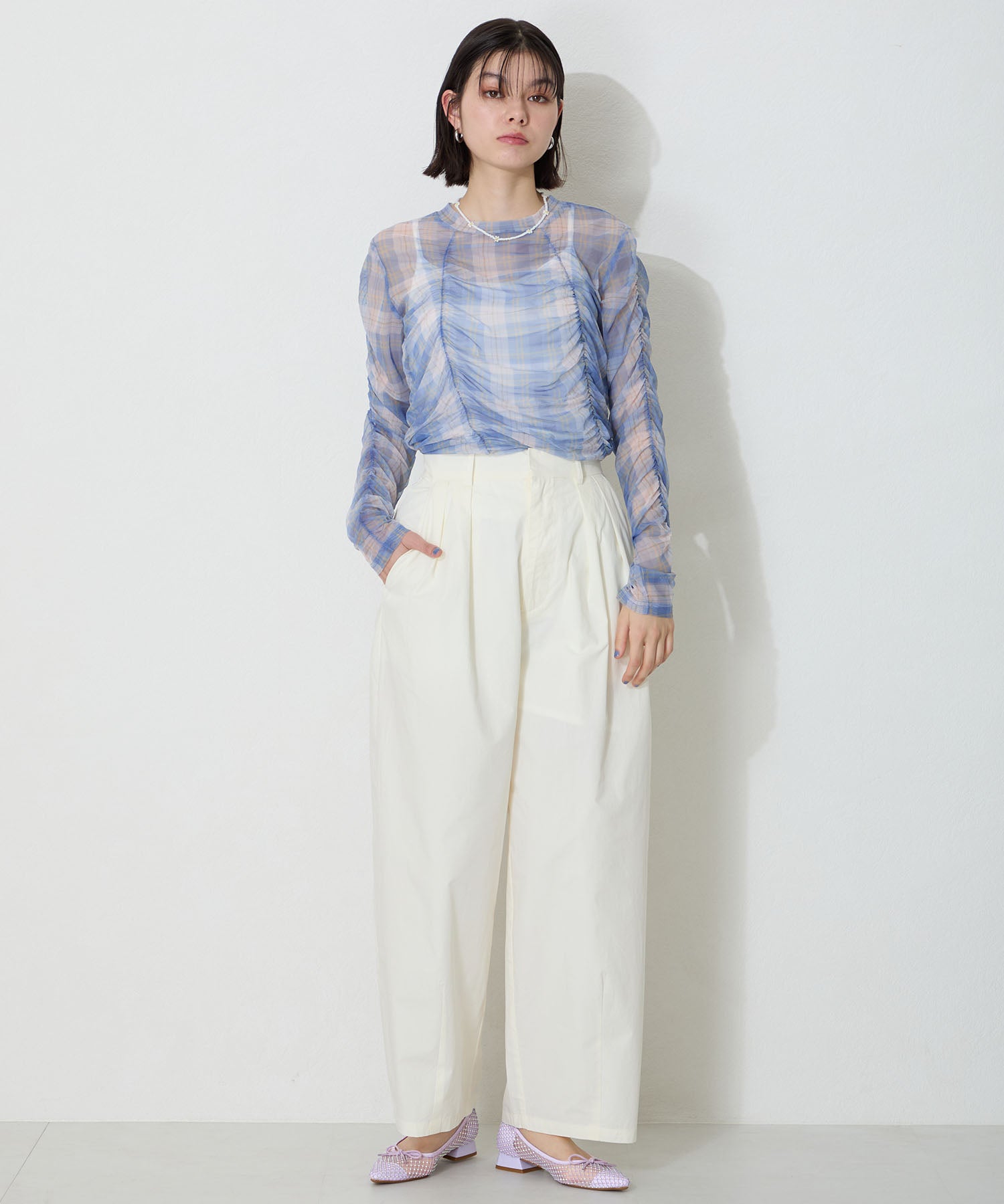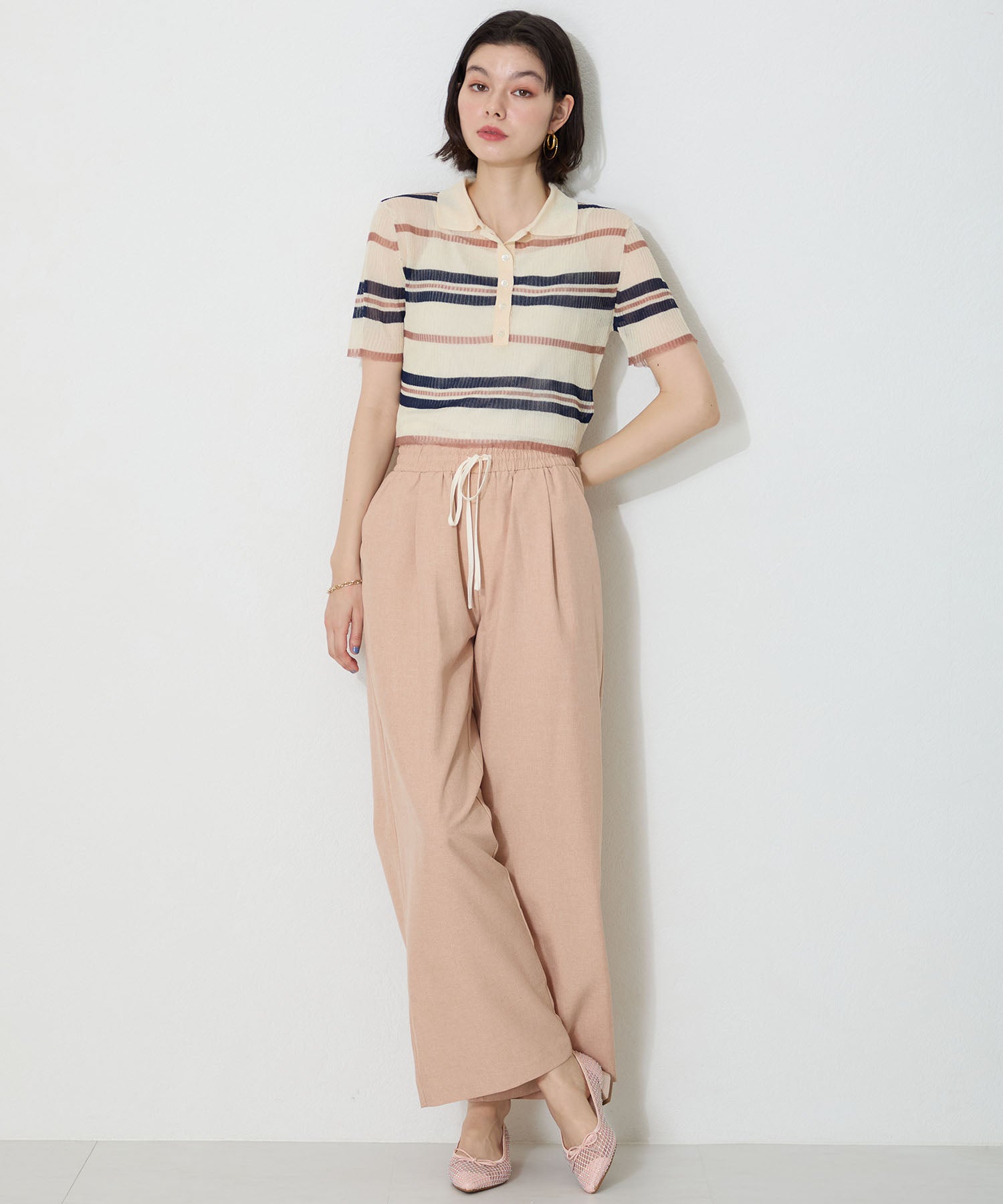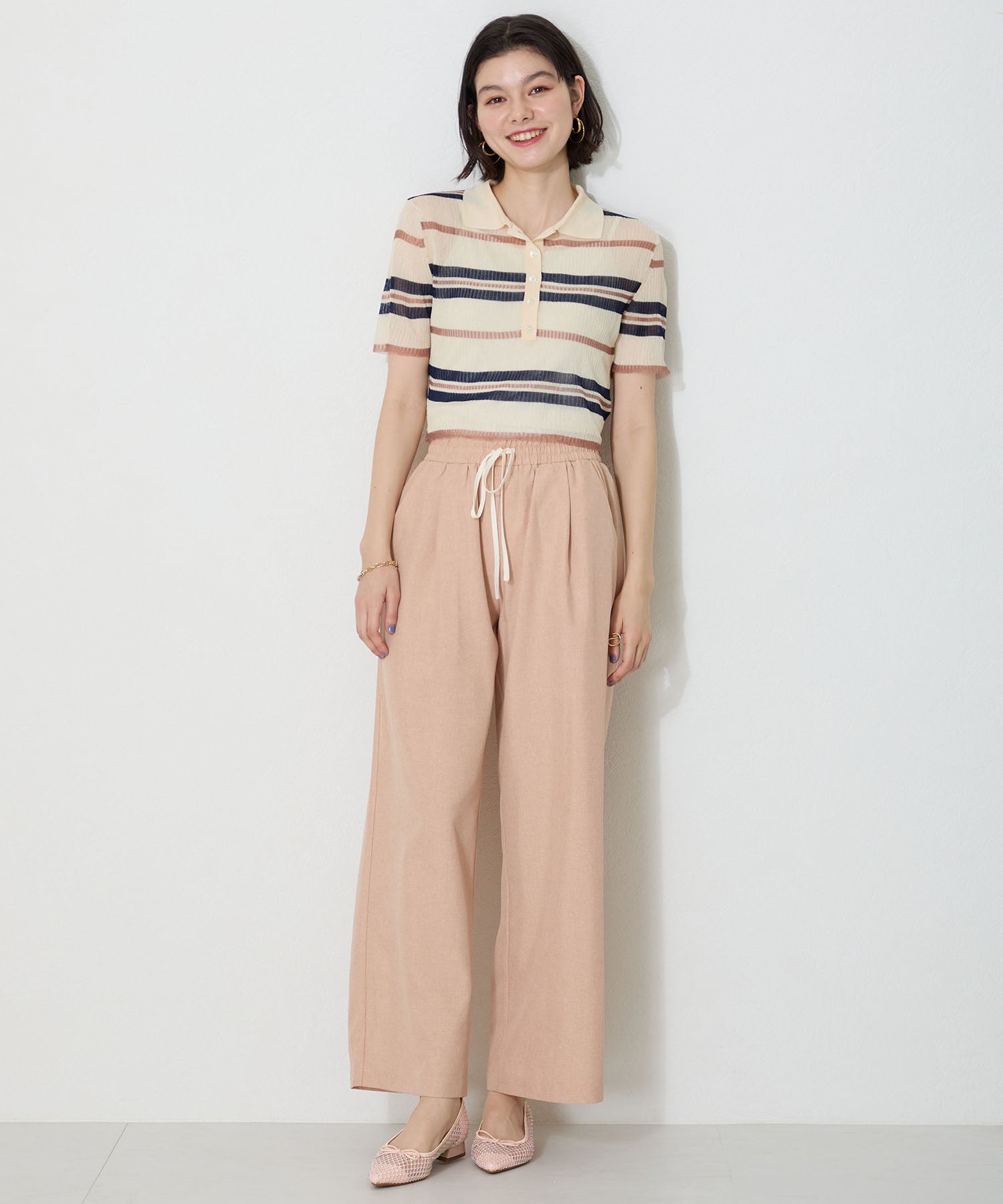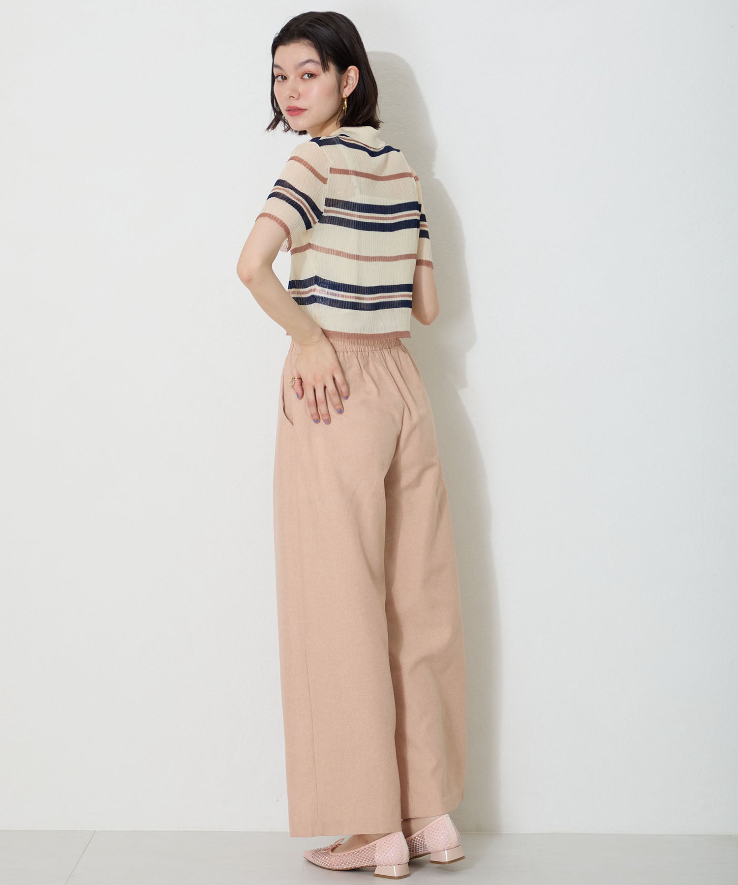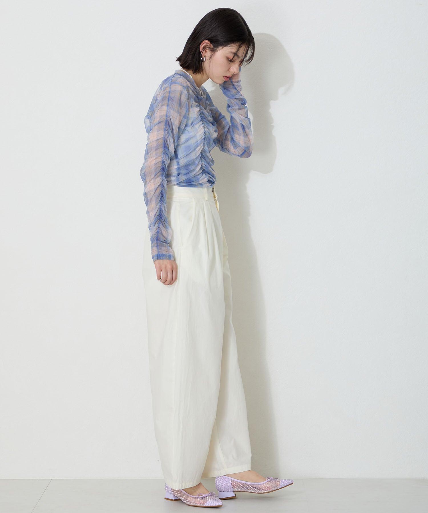 涼し気なチュール生地にメッシュを掛け合わせたデザインが今っぽいパンプスは、小粒のラインストーンを全体に配置して歩くたびにキラキラ輝く、履くだけで気分の上がる1足。華奢なリボンを付け全体的に柔らかく淡いカラーリングにすることでかわいらしい印象をプラスし、シアーの透け感がいつものコーデにも馴染みやすいアイテム。