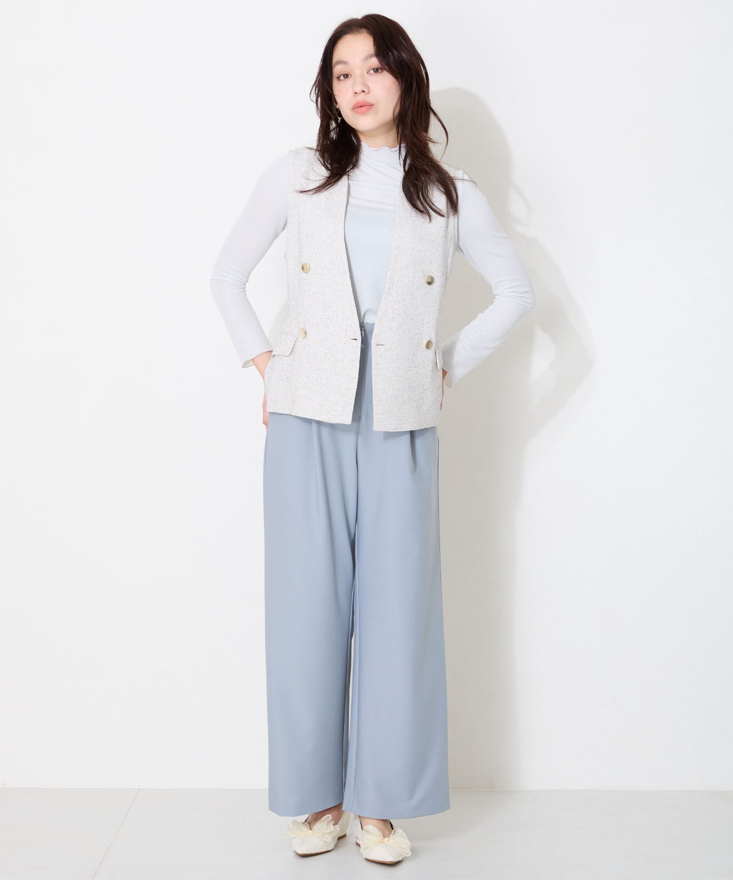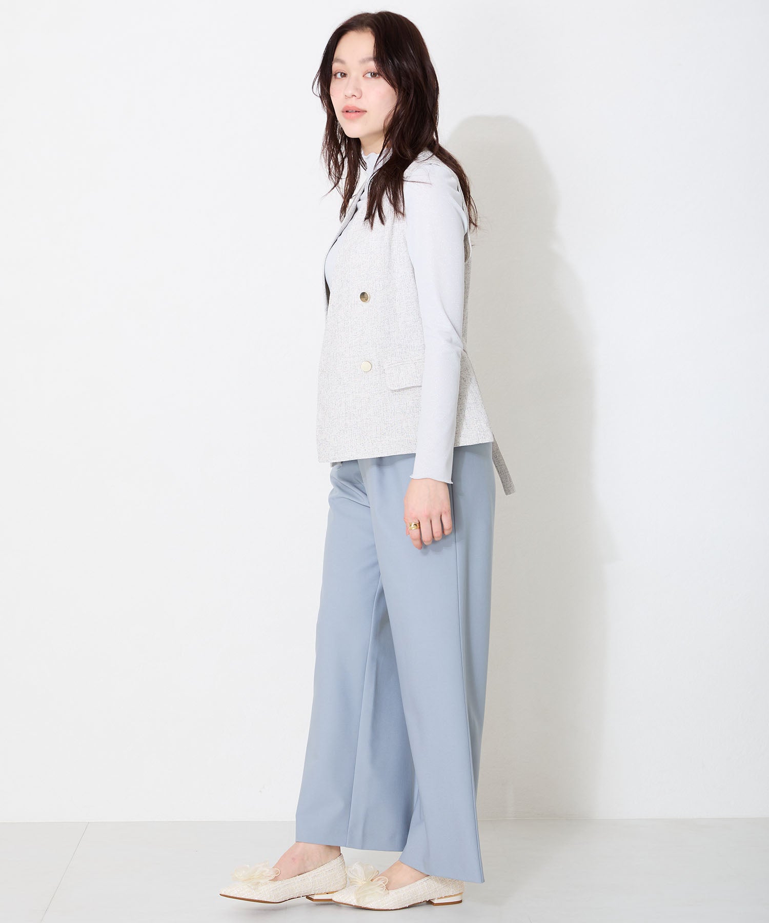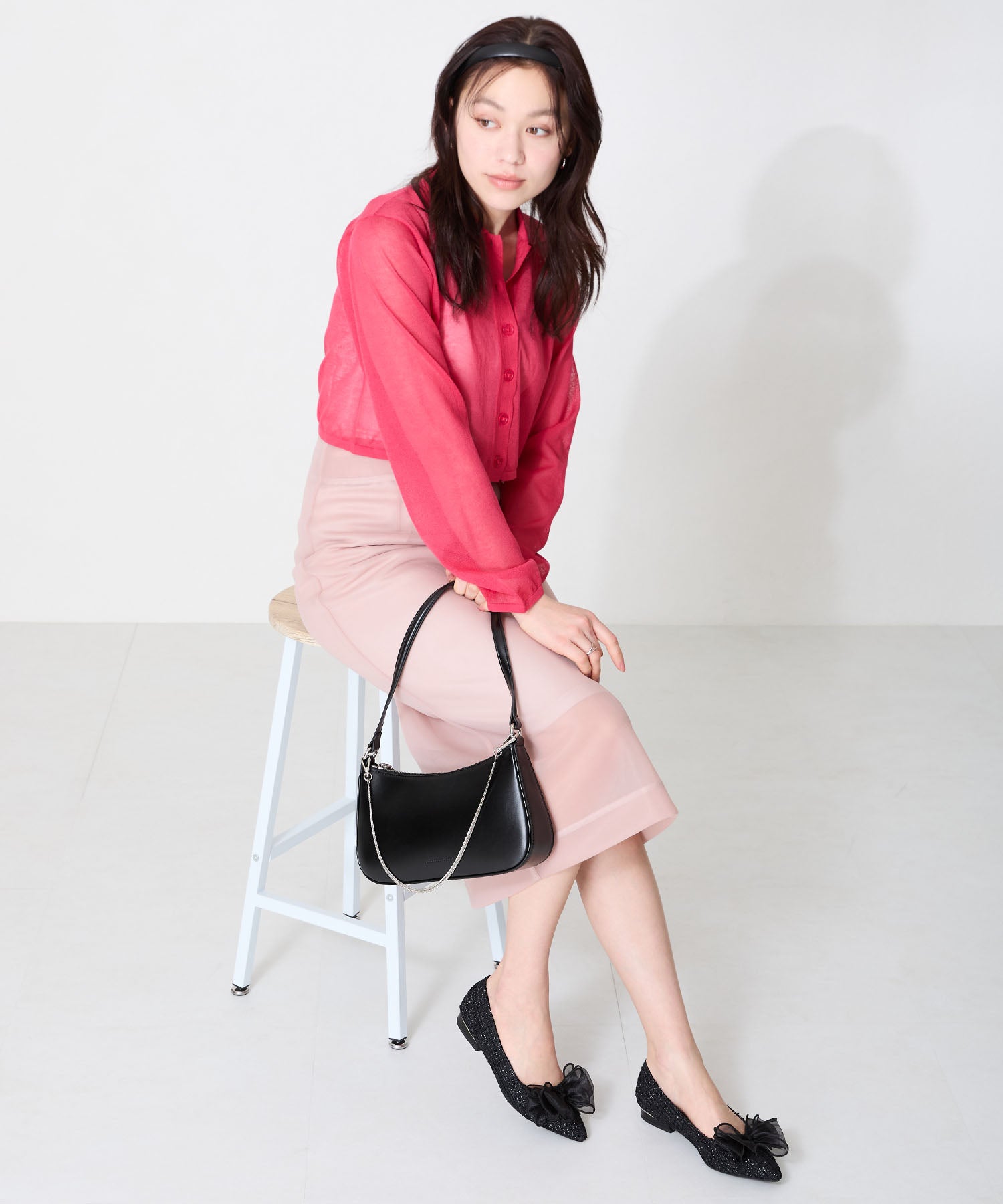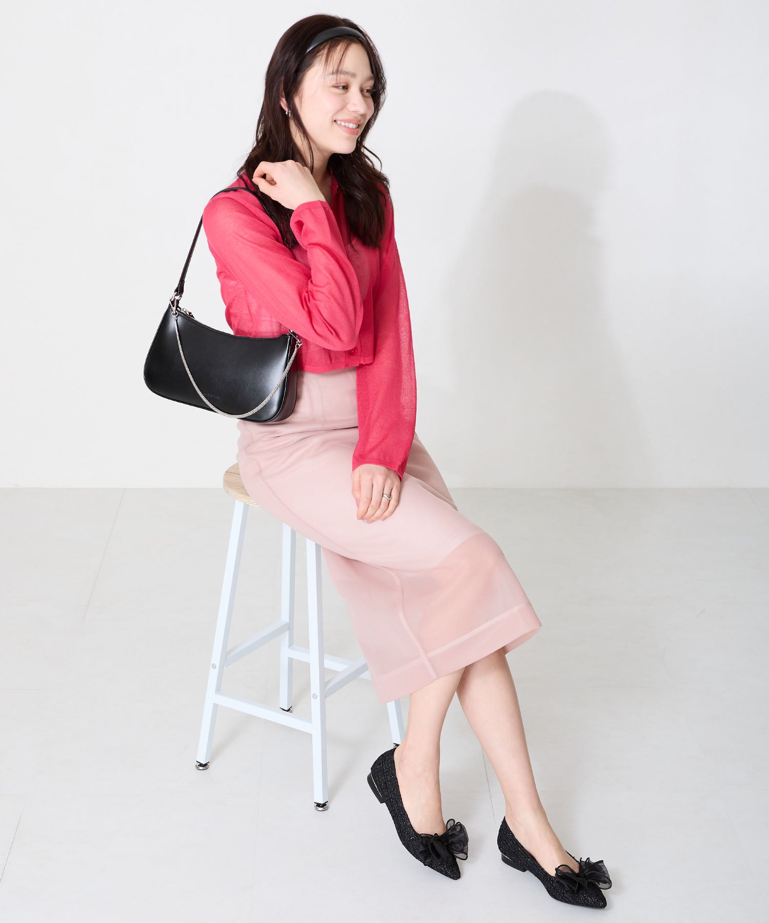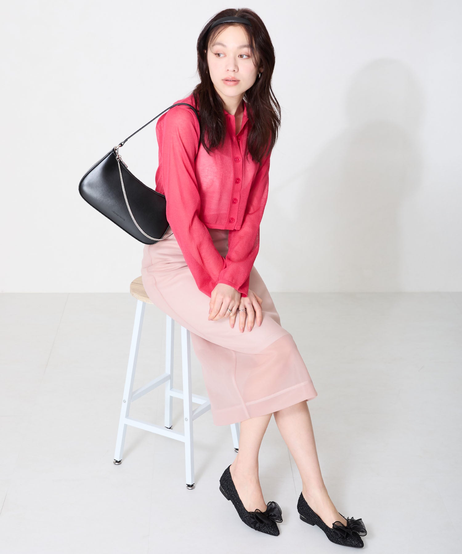 チュールのリボンと立体感のあるツイード素材がフェミニンなパンプスは、中敷にクッションが入っていて疲れにくく、フラットヒールで歩きやすいので足への負担も少なくお出かけにも大活躍なアイテム。ヒールのメタリックラインもポイントで女性らしさを楽しめるデザイン。スタイリングに取り入れやすい2色のカラー展開で日常使いはもちろん、パーティシーンにもおすすめ。