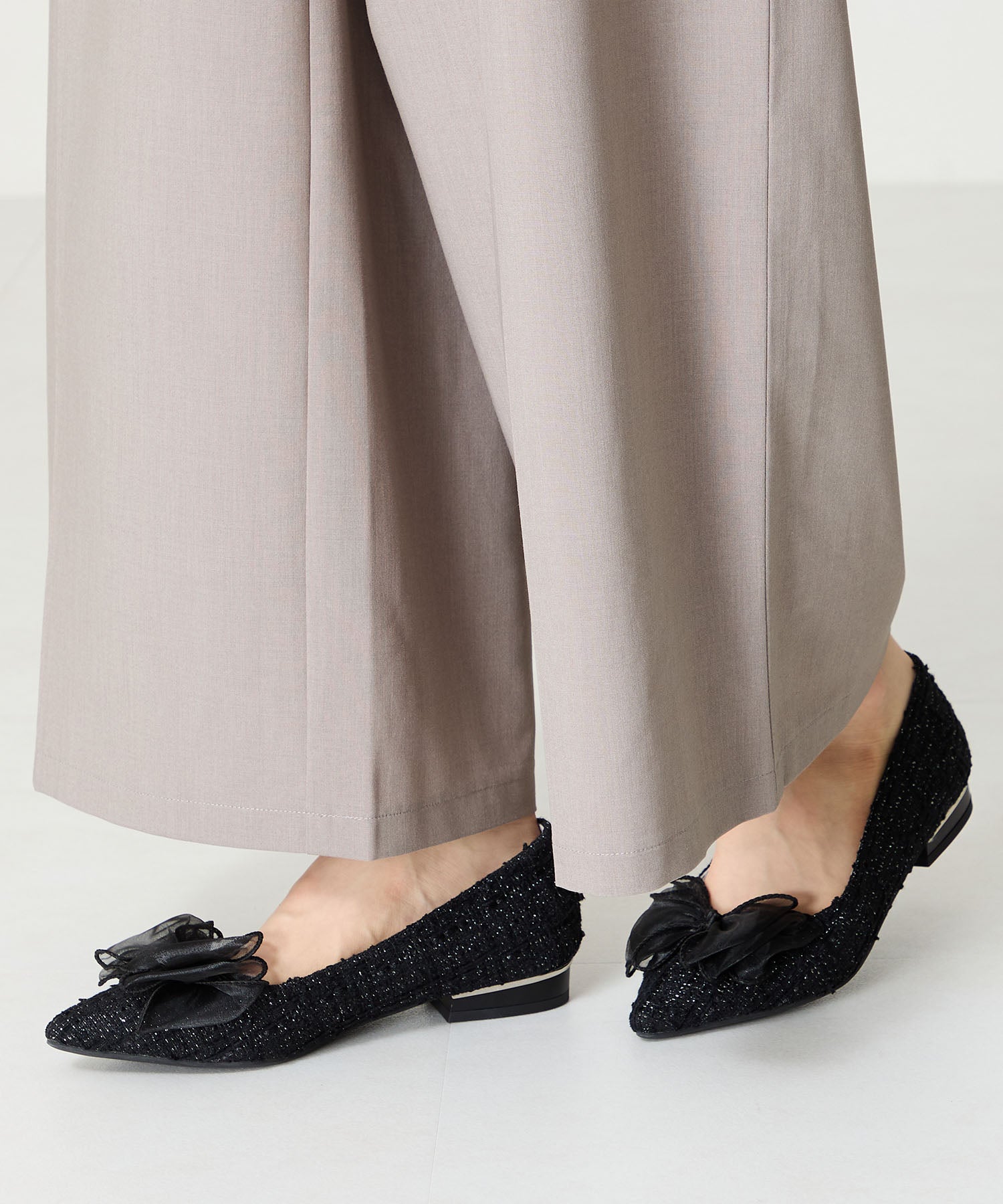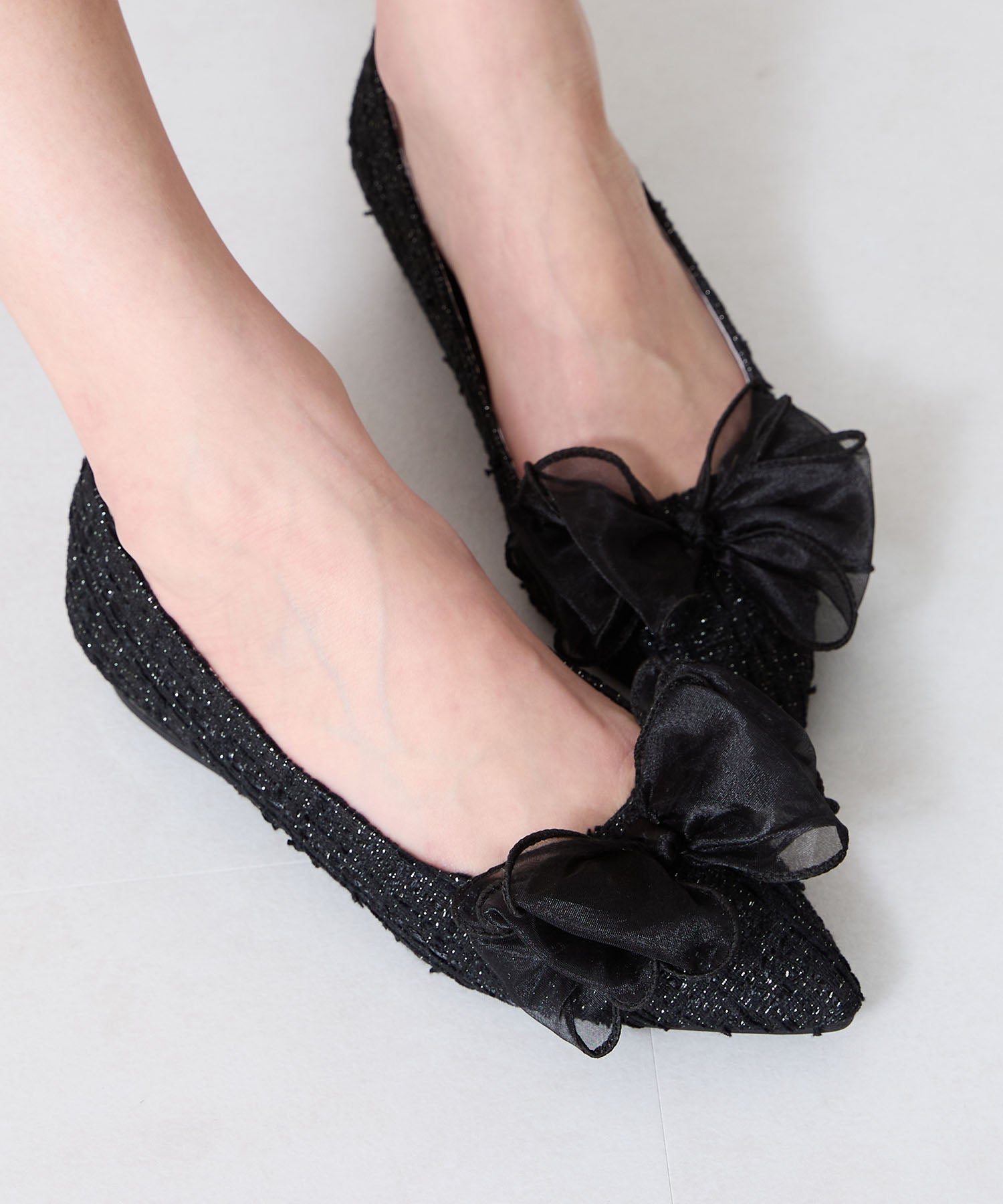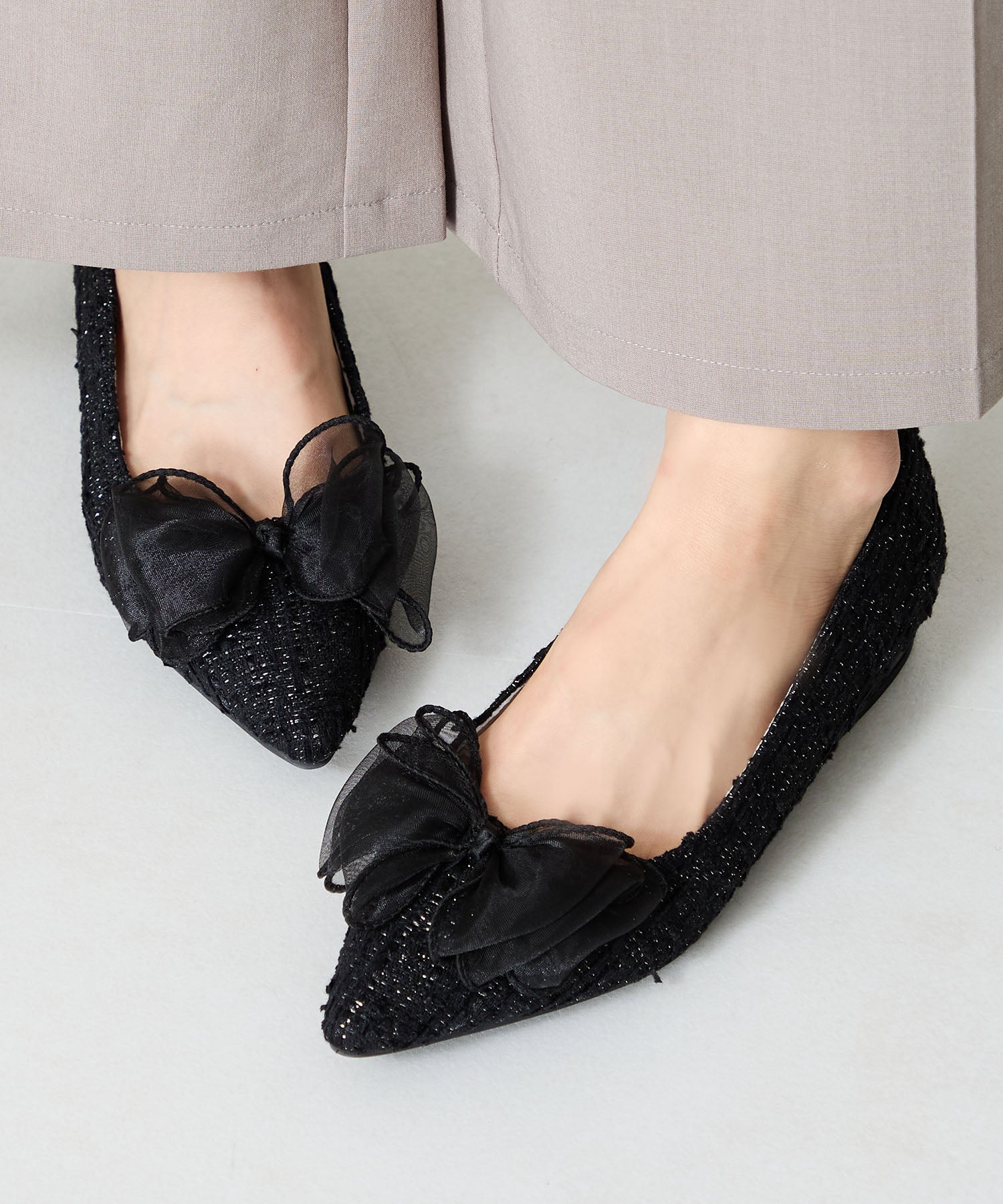 チュールリボンツイードパンプス/56106 - ブラック / 35/22.5cm