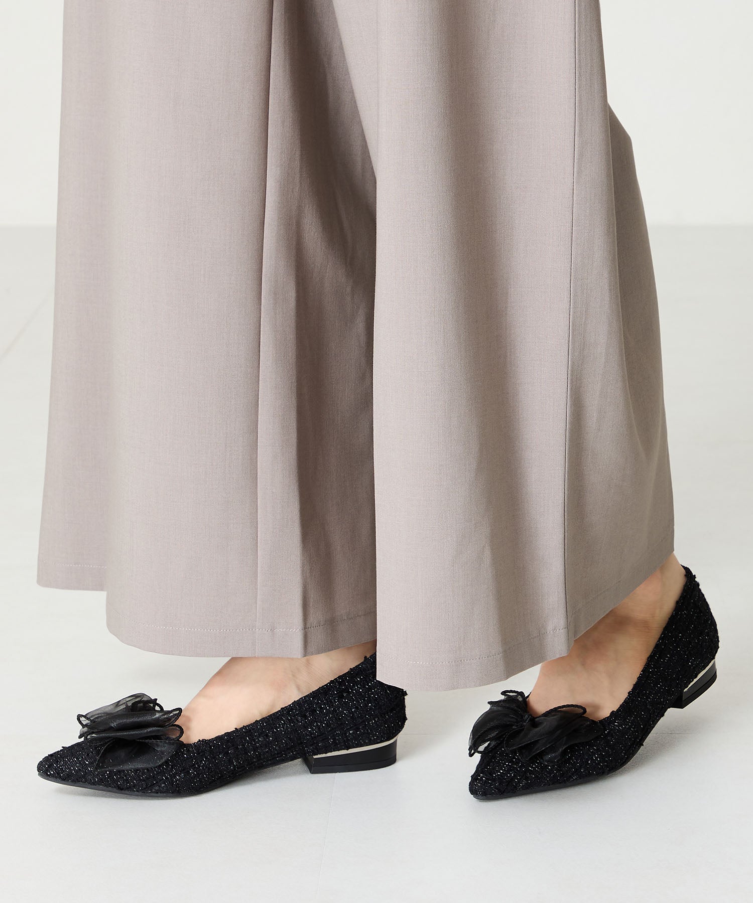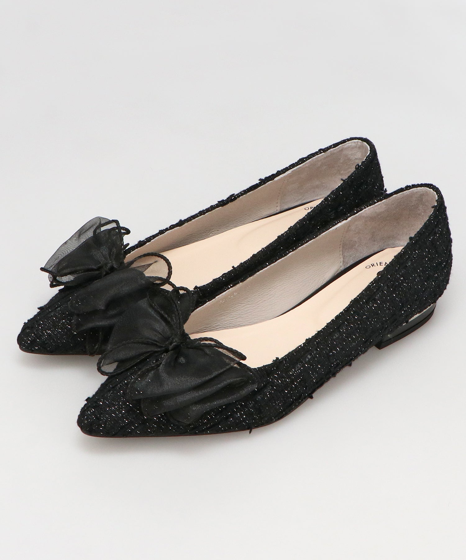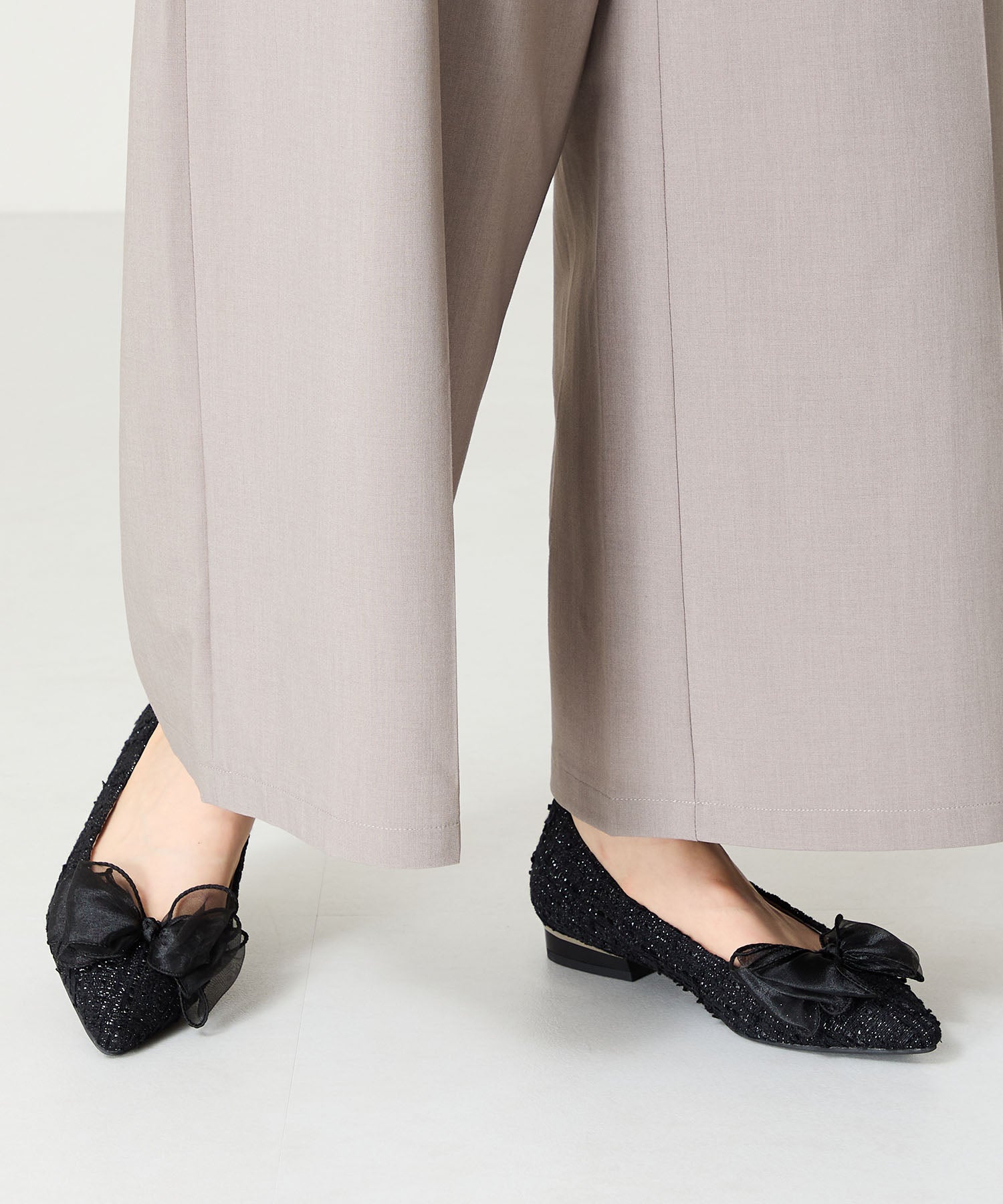 チュールリボンツイードパンプス/56106 - ブラック / 35/22.5cm