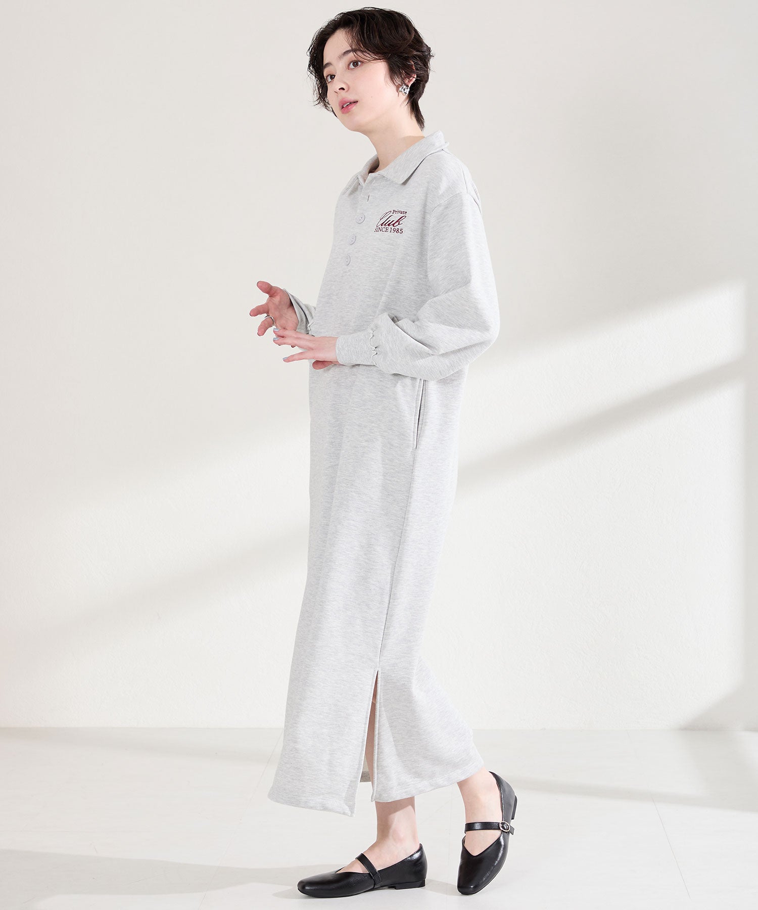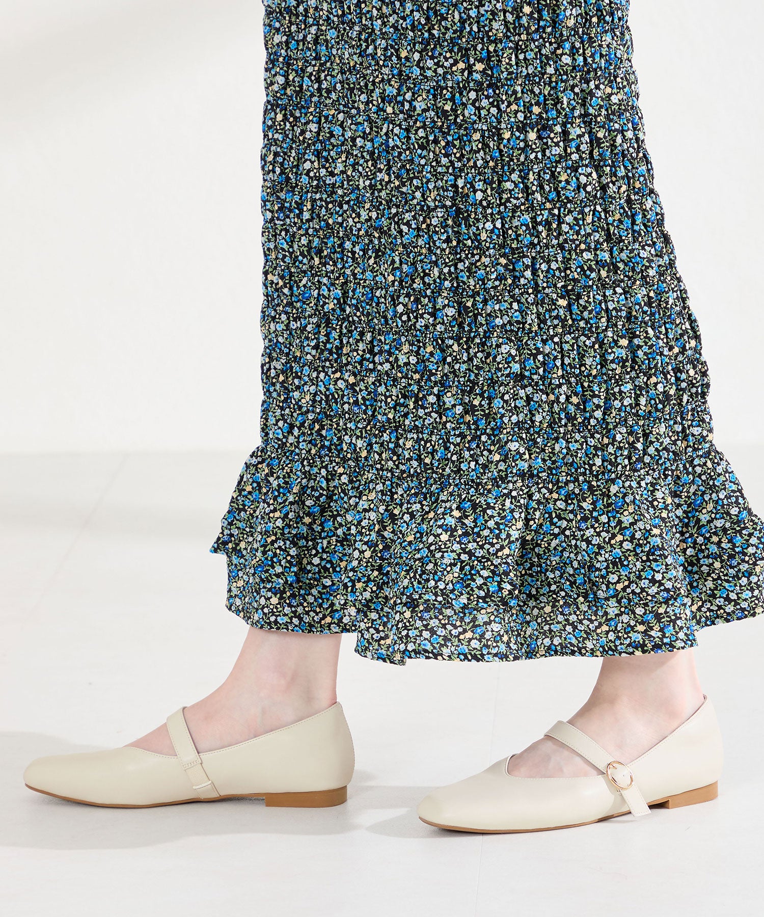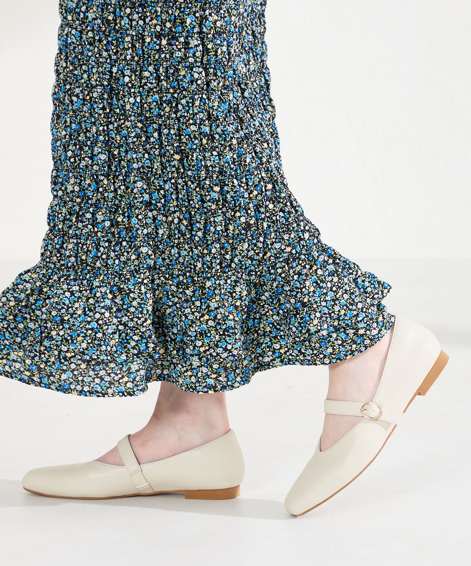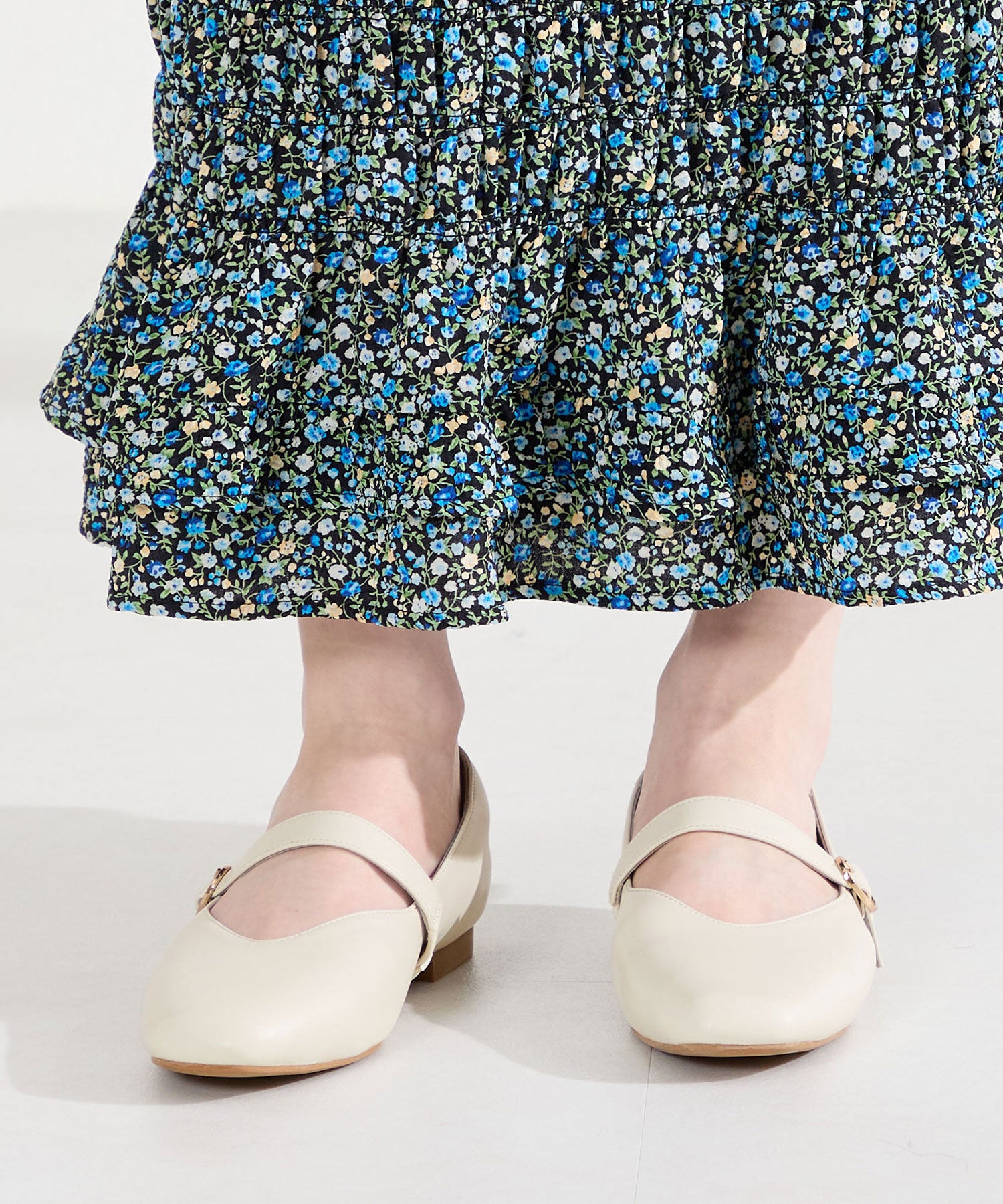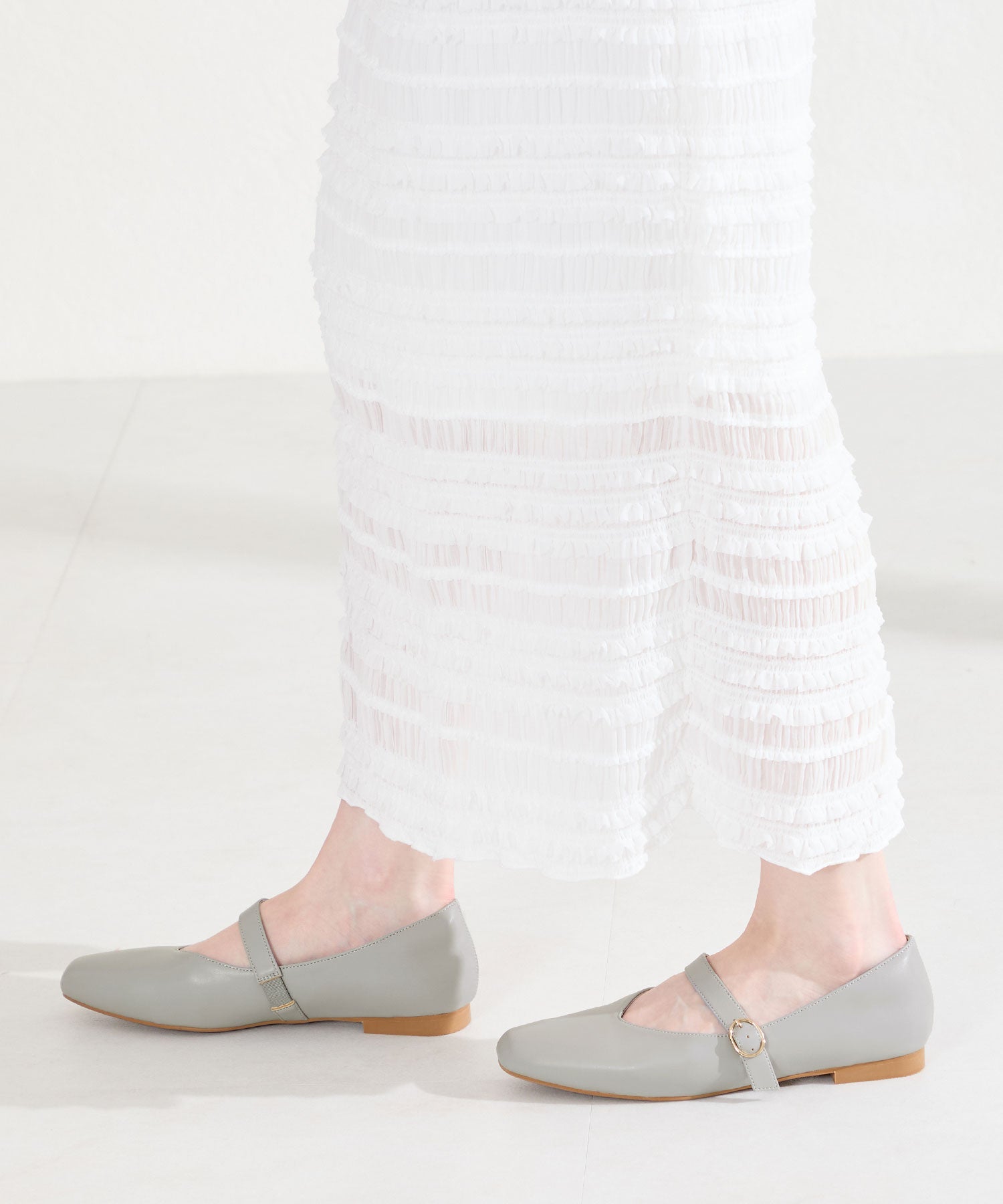 全体的に柔らかく履き心地にこだわった幅広さんにも安心の2E設計。シンプルなデザインながらVカットの履き口が甲を綺麗に見せてくれます。アッパー全体がやわらかく足へのフィット感も抜群で、ストラップ裏側は隠しゴム付きなのでワンタッチで着脱ができ、つま先や中敷、踵にもクッションを内蔵しているので、快適な履き心地をサポートしてくれるアイテム。