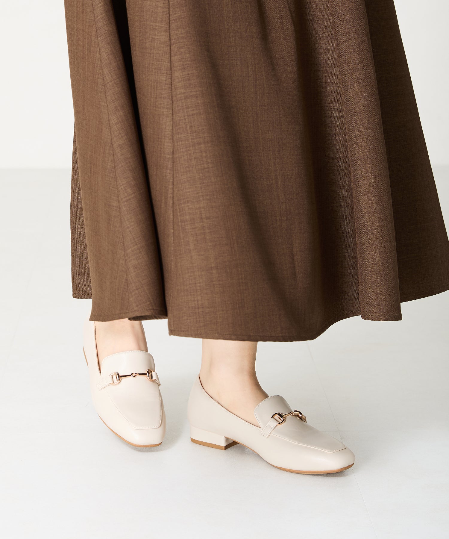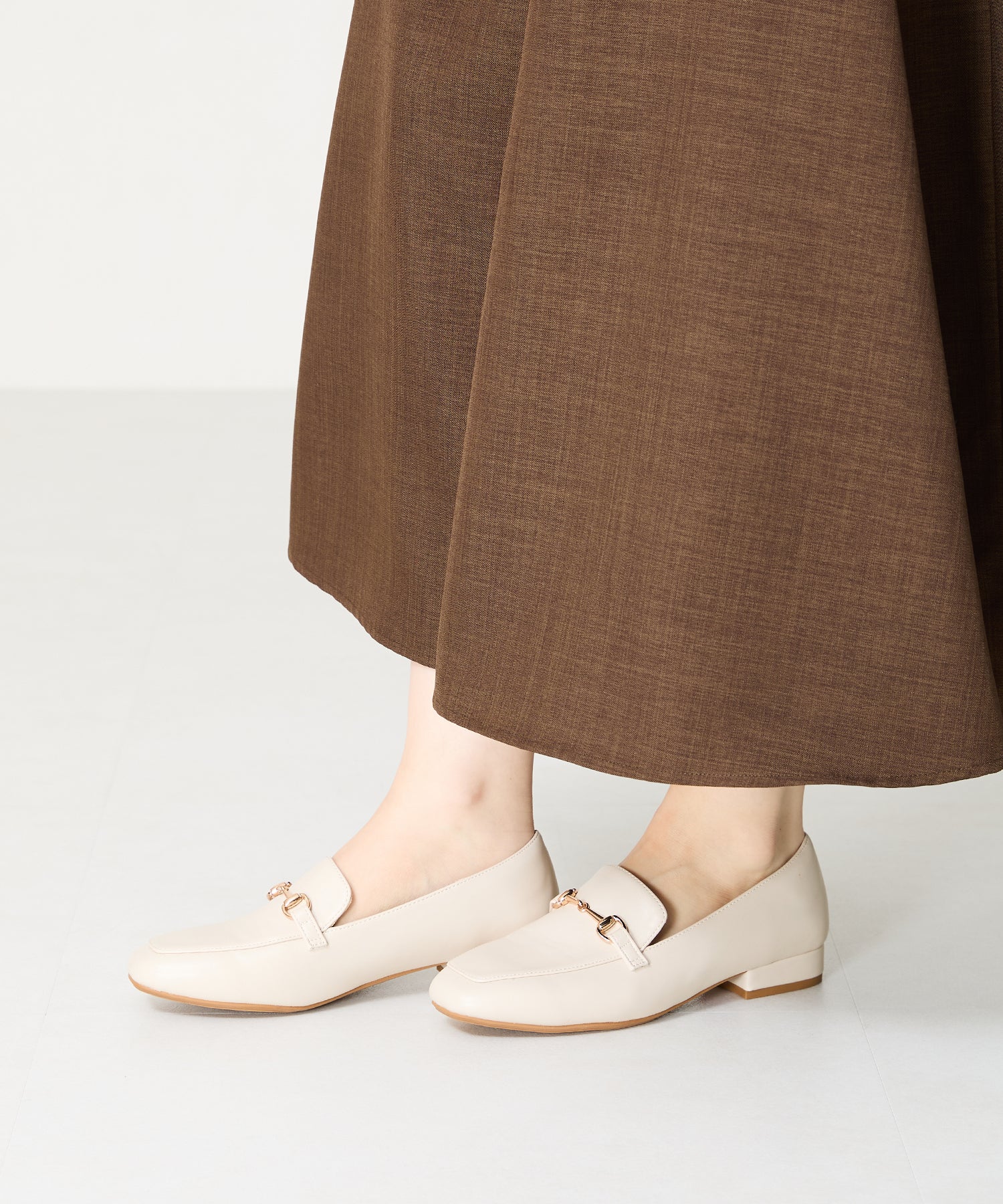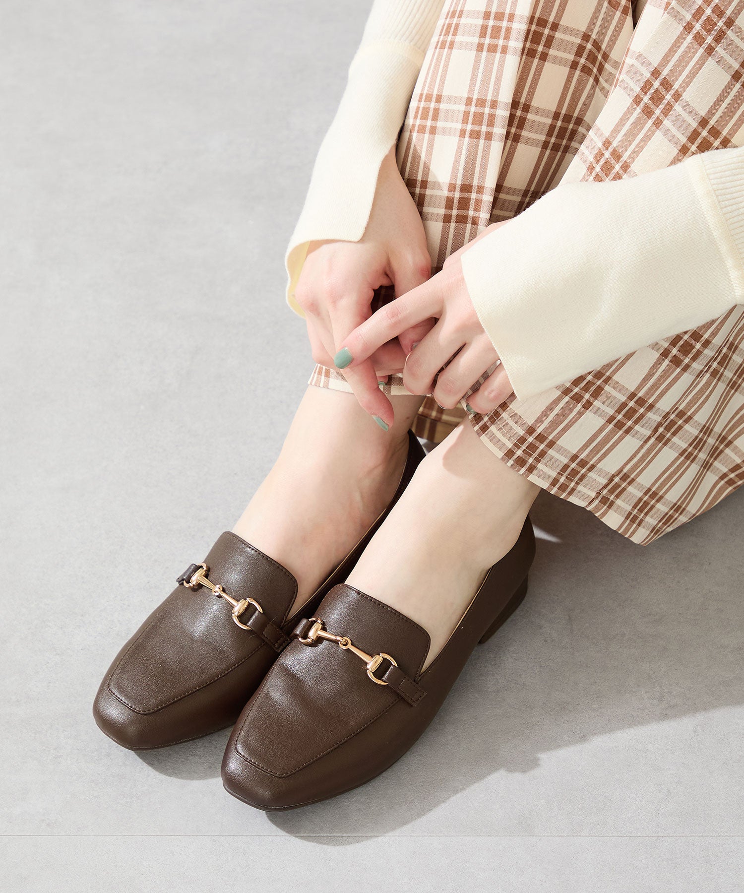 デイリー使いしやすいアイテムこそ履き心地にこだわりたいという方におすすめのビットローファー。華奢なビットモチーフやフラット過ぎないヒールできちんと感のある印象に。深めの履き口や足を包み込む様な柔らかいクッション入りで履き心地も◎。合わせやすいカラー展開やお手入れしやすい合皮素材でシーズン問わず長く使えるのも嬉しい。
