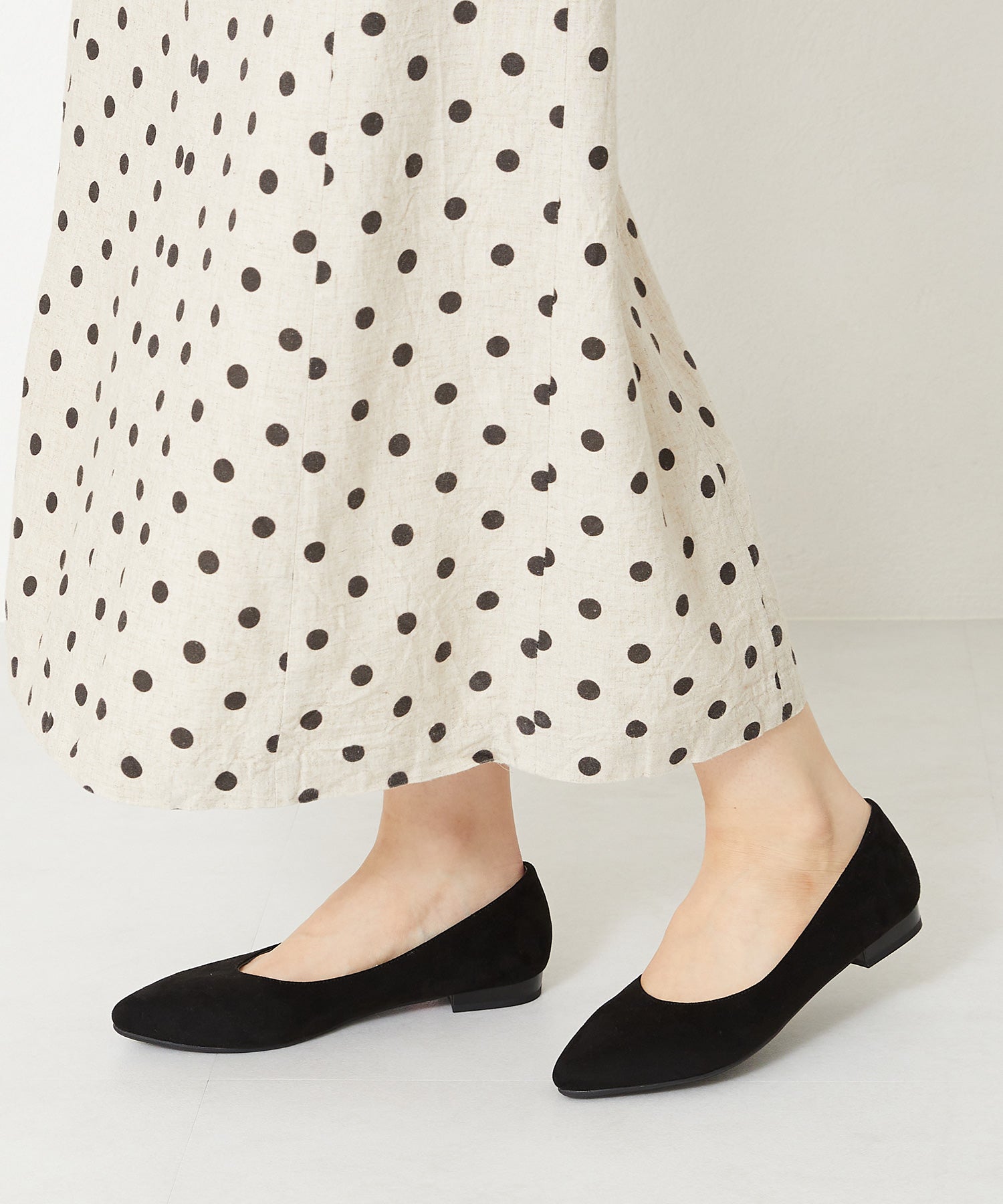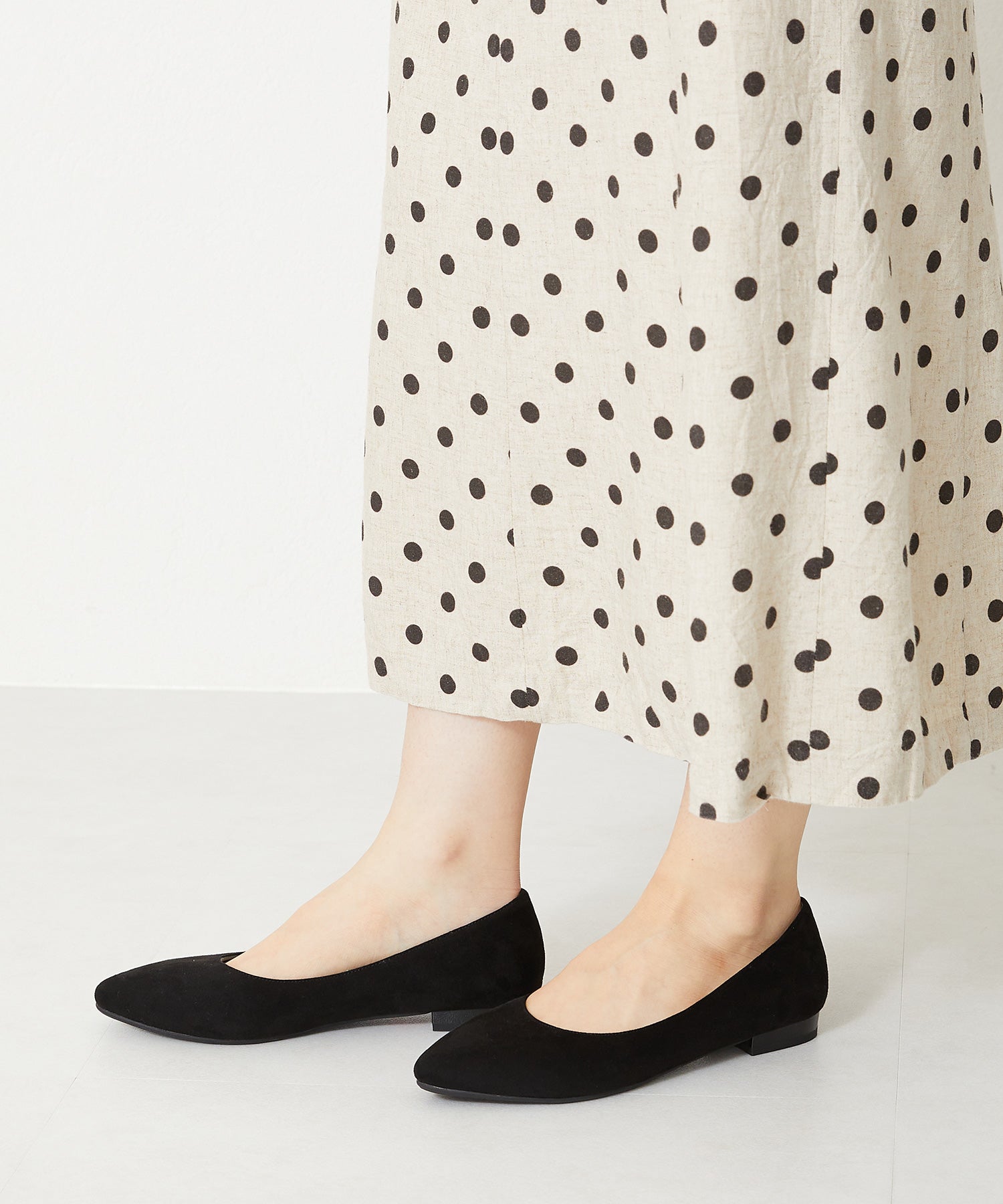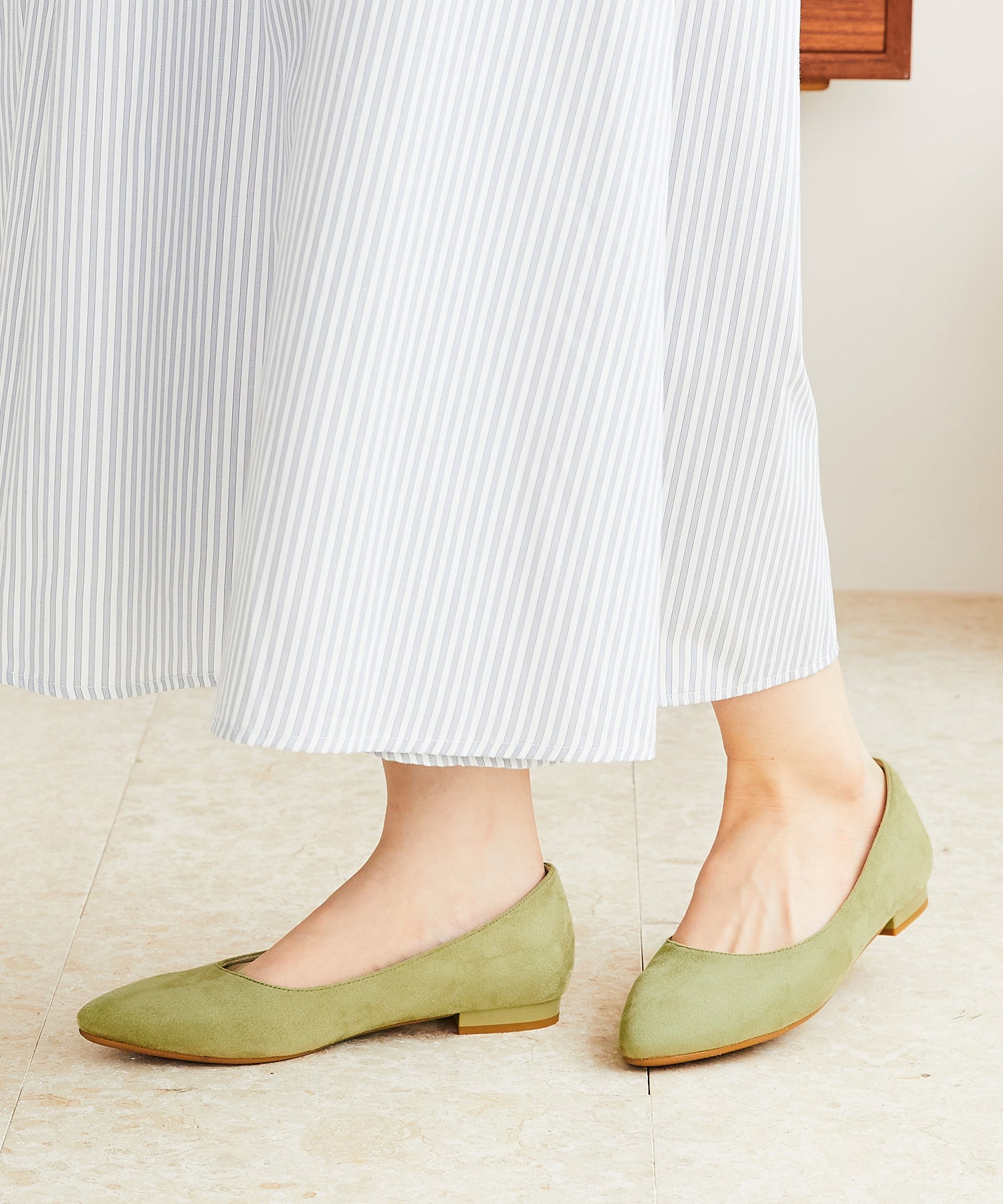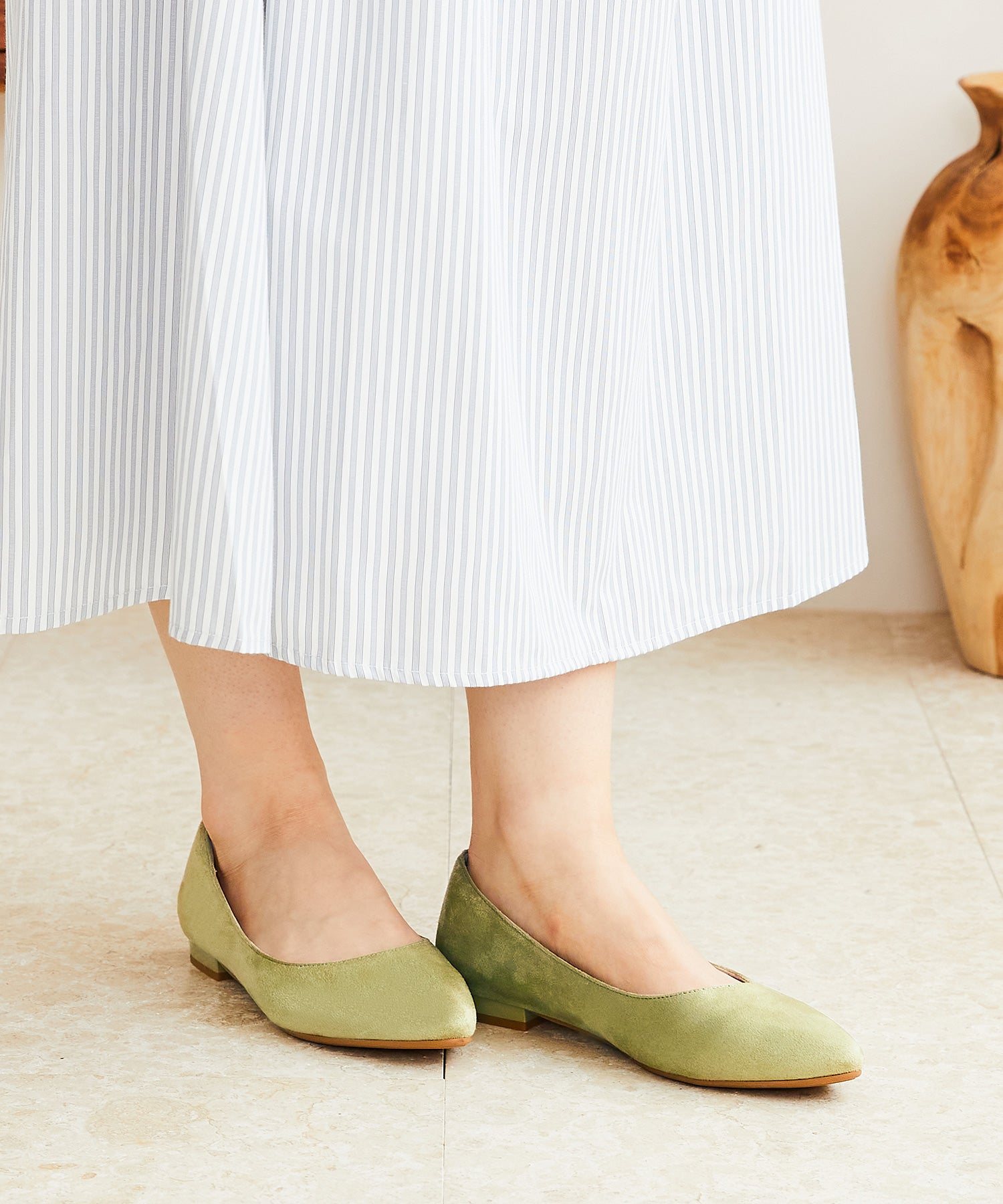 歩きやすい返りの良いソールや、フィットして脱げにくい踵クッションなど足の負担を軽減してくれる機能性抜群のフラットパンプス。ベーシックなデザインも艶ヒールにすることで足元にアクセントをプラス。ブラックやベージュに加え、肌馴染みの良い明るいスエードカラーが気分を盛り上げてくれる豊富なカラー展開で、色違いで揃えたくなるアイテム。