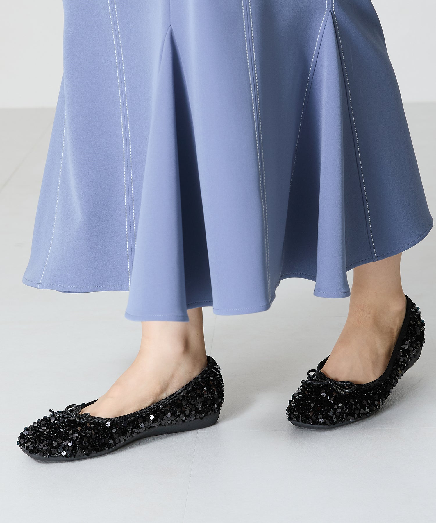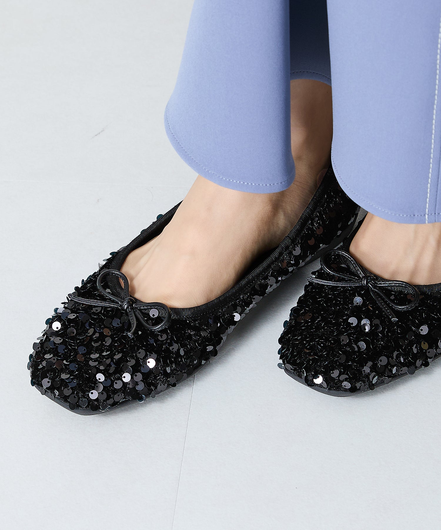 【跳べるパンプス】スパンコールスクエアトゥバレエシューズ/跳べるパンプスシリーズ累計150万足突破/R-3216