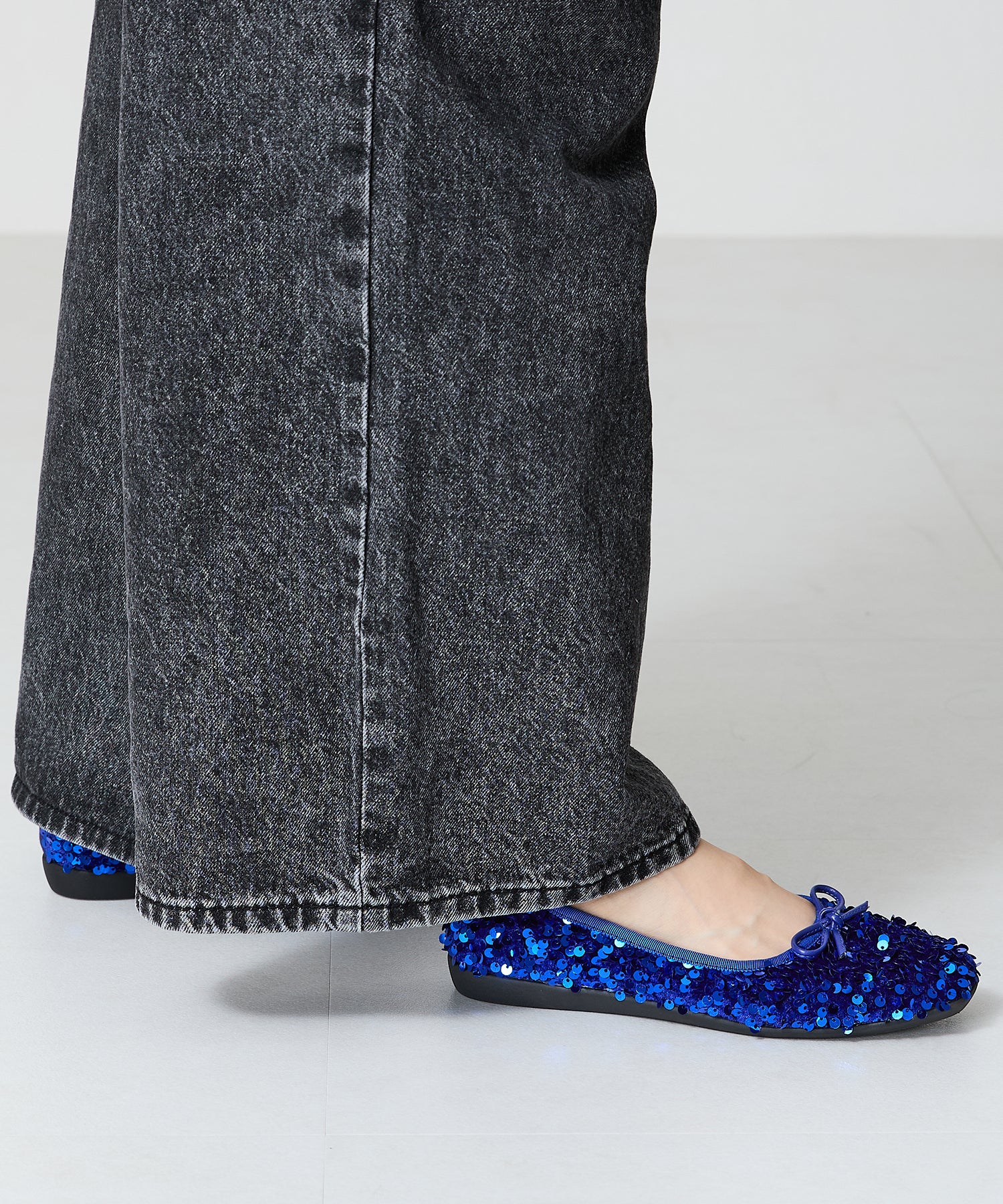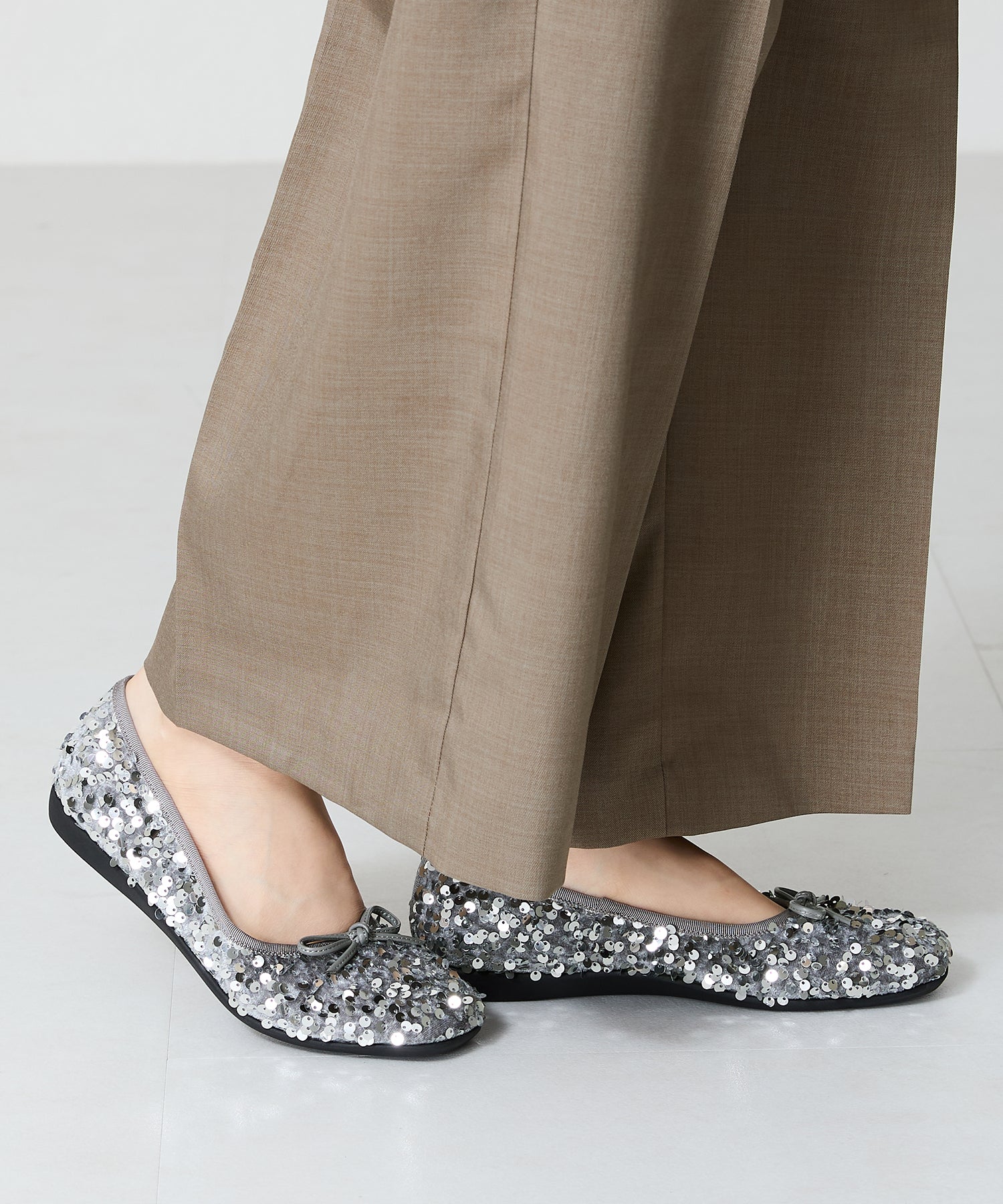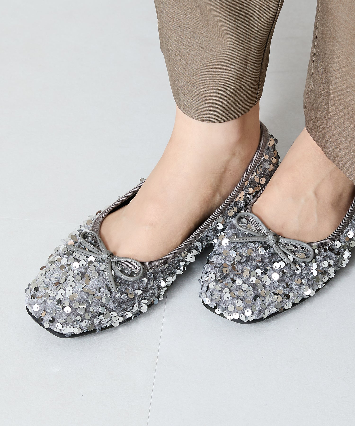 ベロア素材に大胆なスパンコールをあしらった、ドレッシーなバレエシューズが跳べるパンプスに仲間入り。オリジナル設計のソールは驚くほど軽くて返りもいいので、たくさん歩く日でも安心な履き心地。ブラックやシルバーはデイリー使いにぴったりで、目を引くレッドやブルーはカジュアルスタイルの外しに取り入れたいカラー。履くだけでトレンドライクな足元が完成する1足。