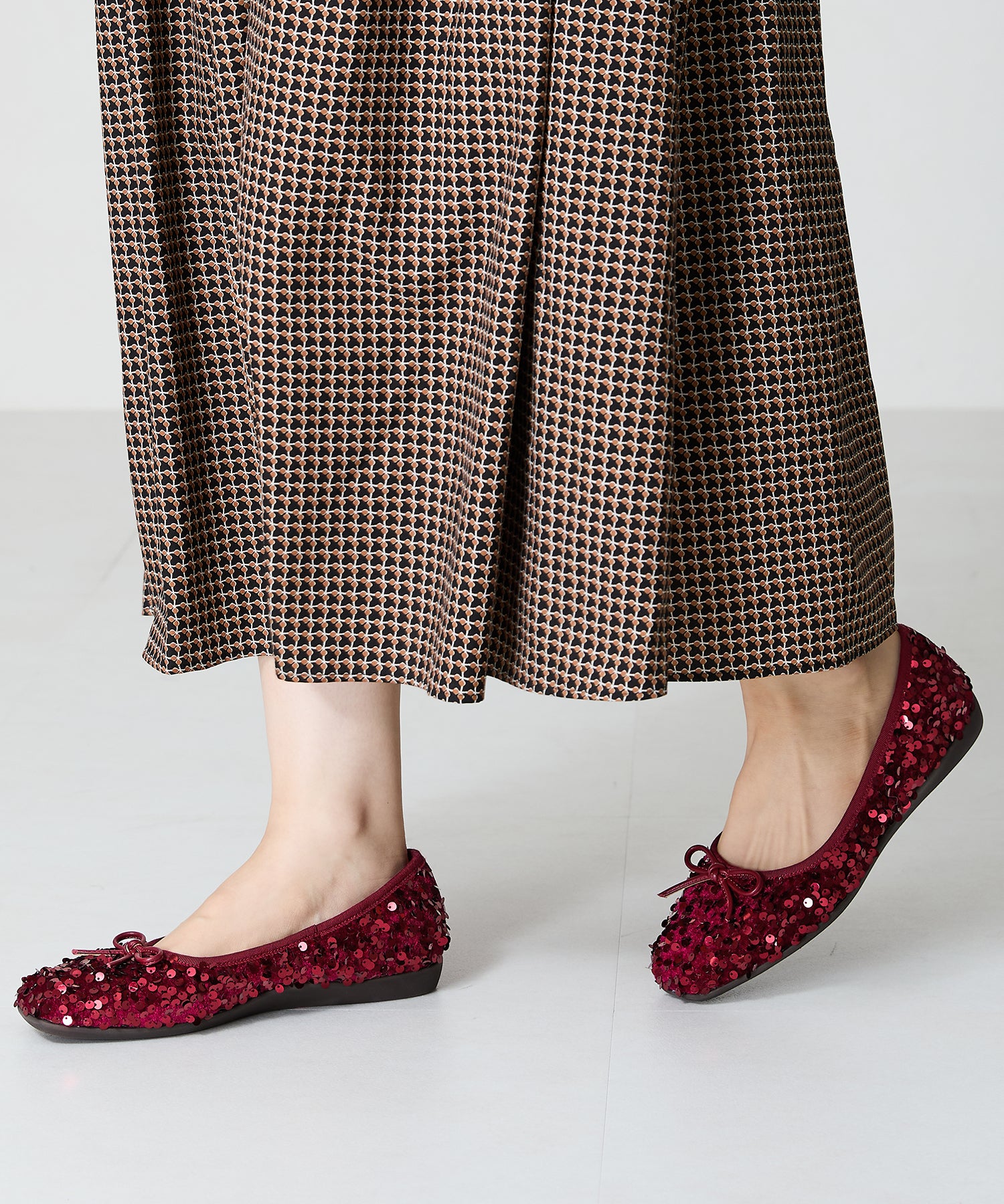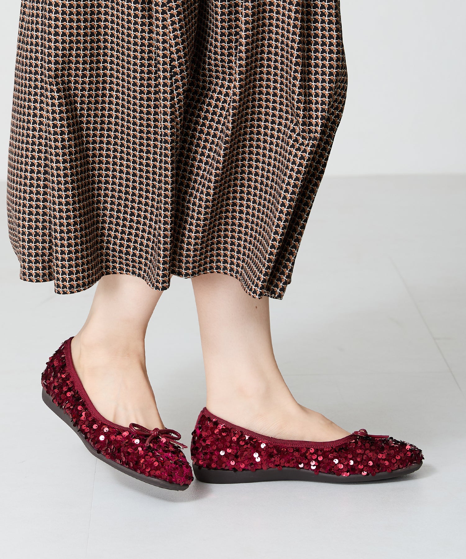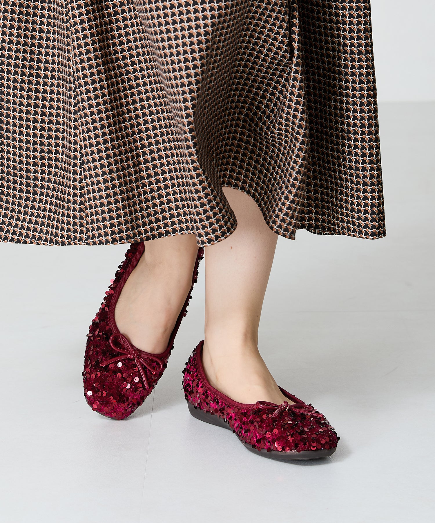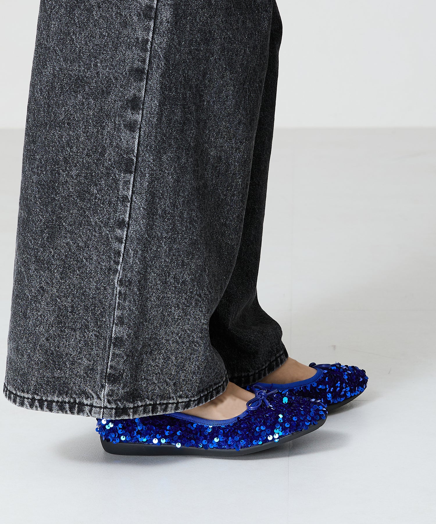 ベロア素材に大胆なスパンコールをあしらった、ドレッシーなバレエシューズが跳べるパンプスに仲間入り。オリジナル設計のソールは驚くほど軽くて返りもいいので、たくさん歩く日でも安心な履き心地。ブラックやシルバーはデイリー使いにぴったりで、目を引くレッドやブルーはカジュアルスタイルの外しに取り入れたいカラー。履くだけでトレンドライクな足元が完成する1足。