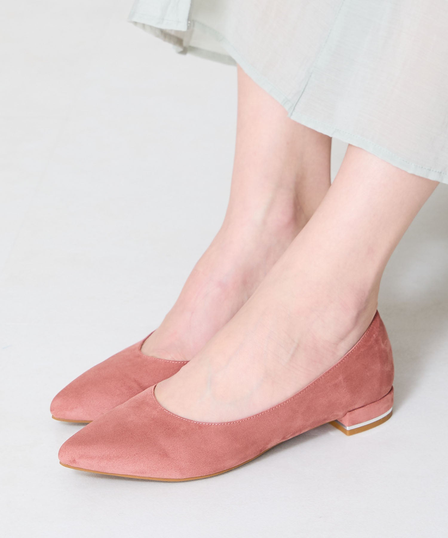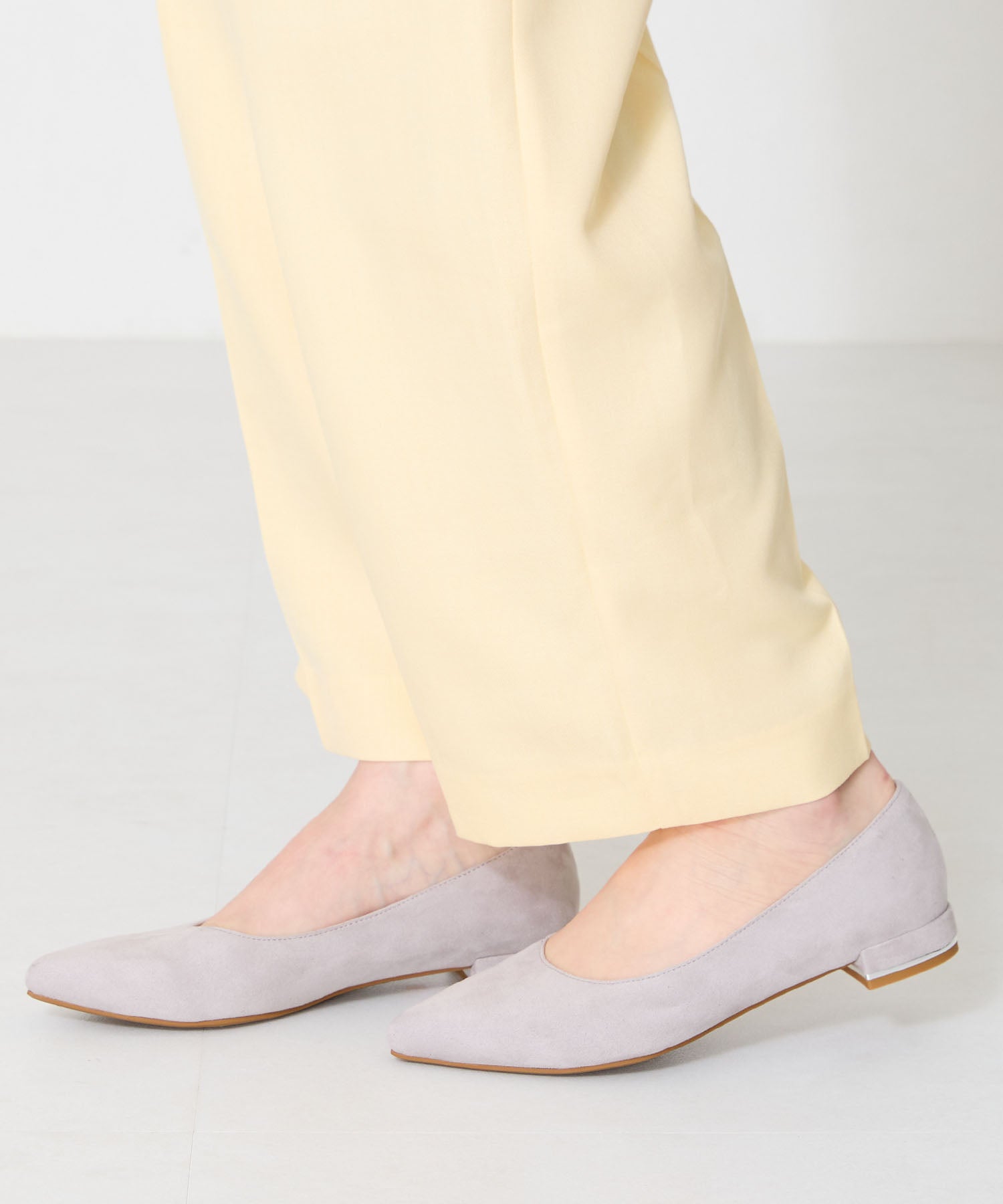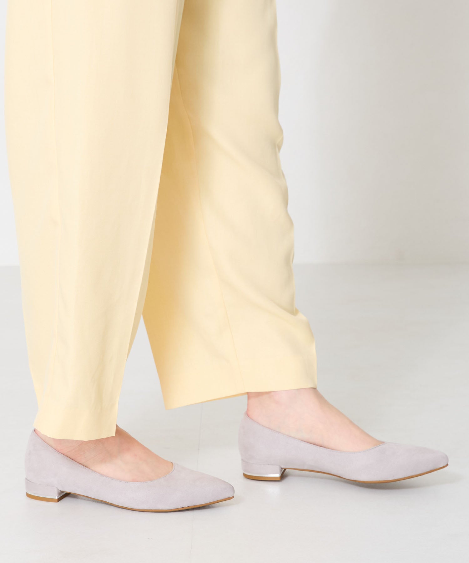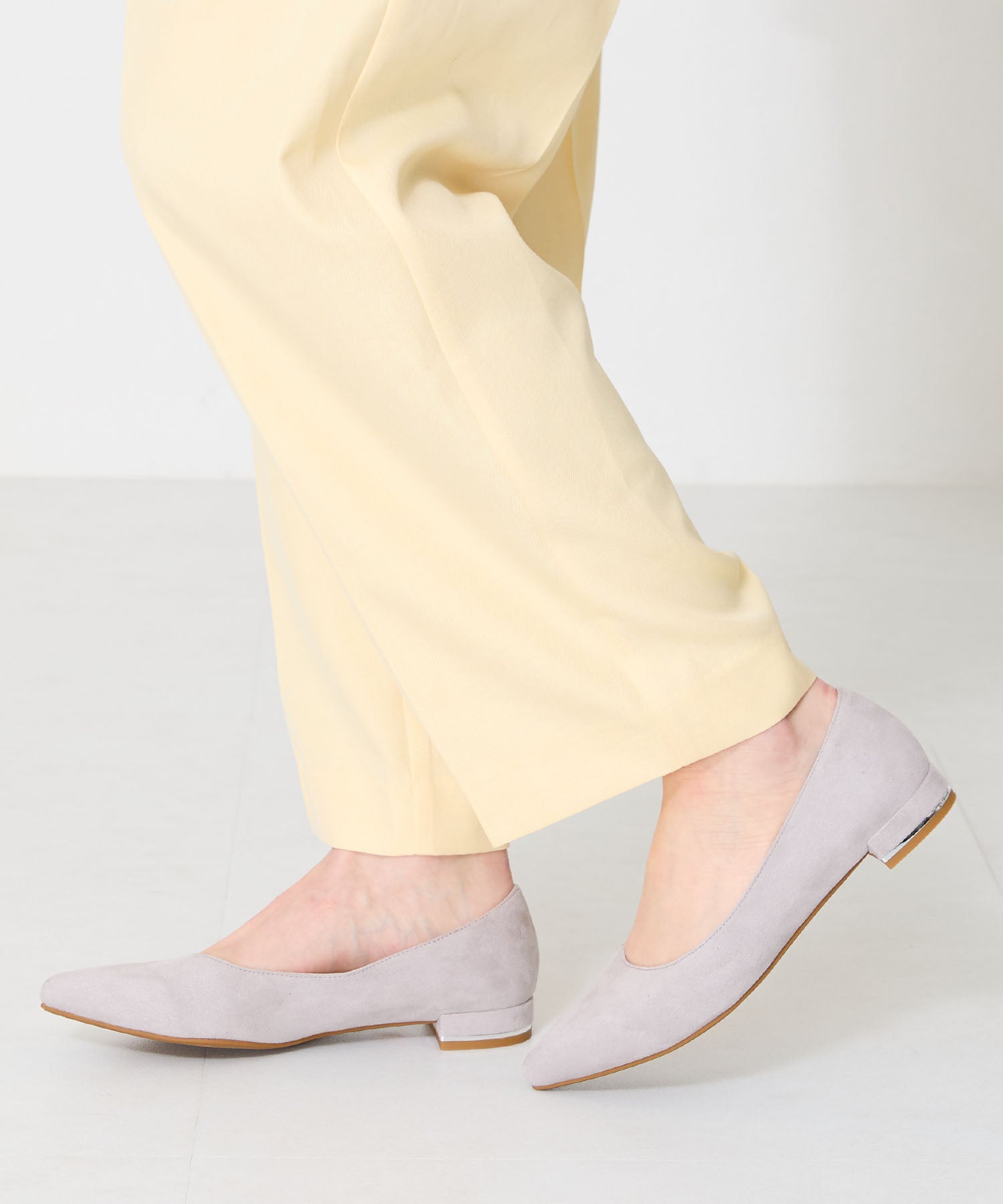 シンプルでデイリー使いしやすいフラットパンプスはシャープなトゥで足元を綺麗に見せてくれる。フラットでも足裏が痛くなりにくい厚手クッションや返りの良いソールなど機能性も抜群。無駄のないデザインながらヒールにはメタリックラインを付けてさりげないワンポイントをプラス。オンオフ使える豊富なカラー展開で色違いで揃えるのもおすすめ。