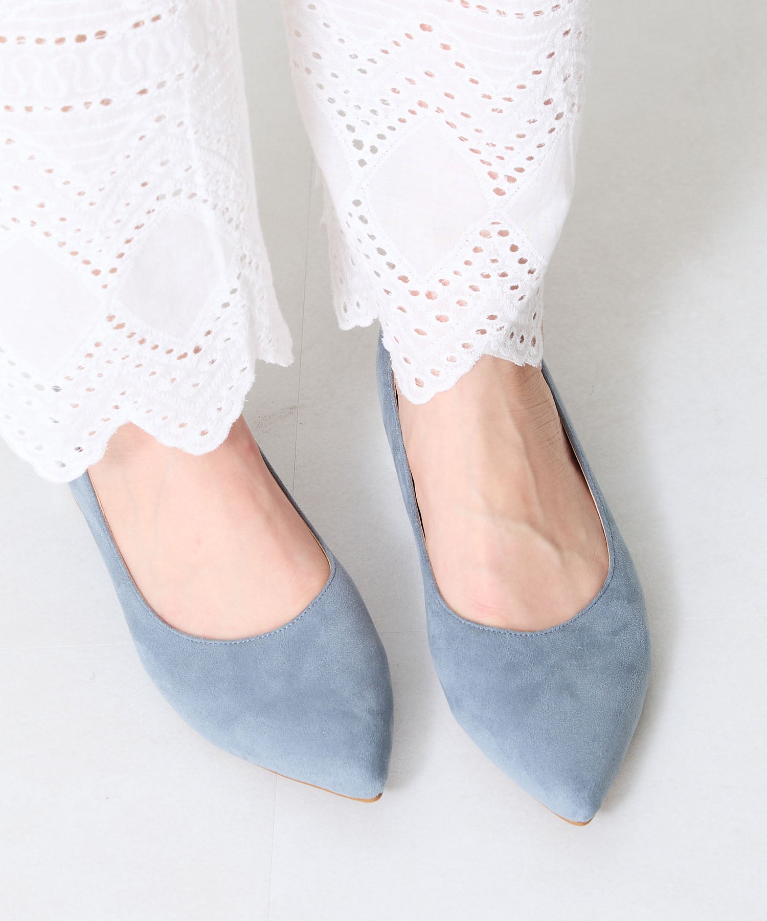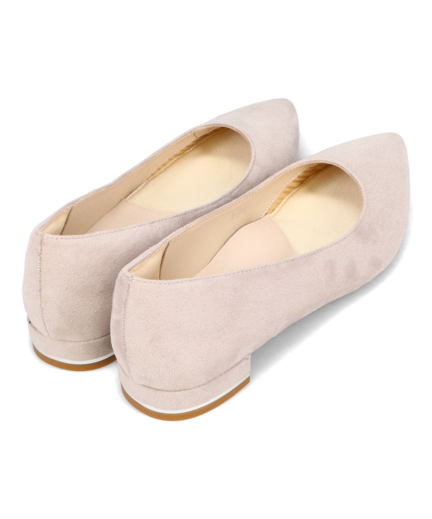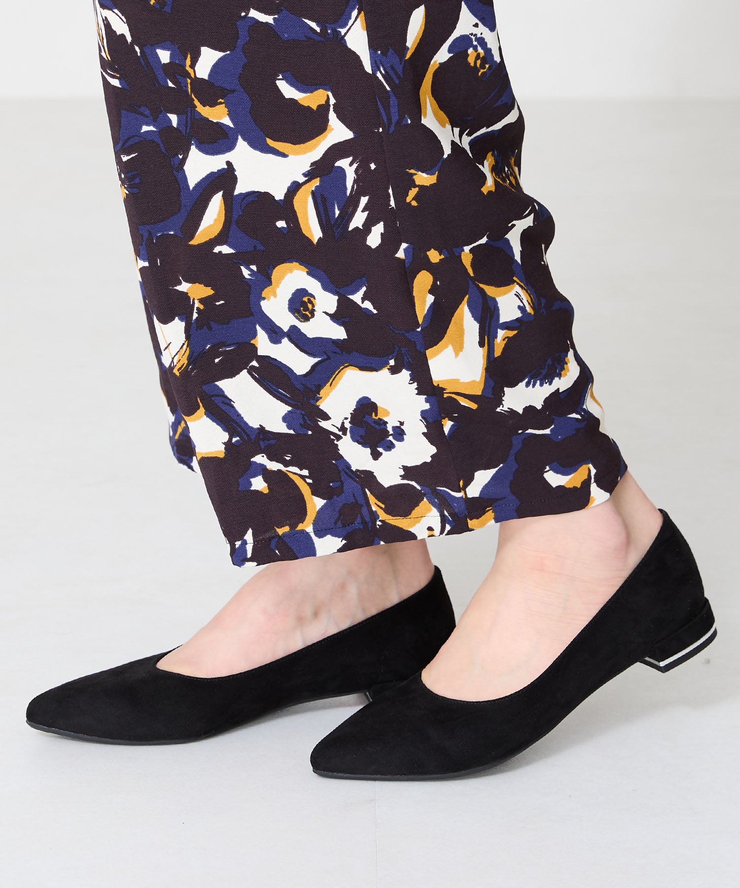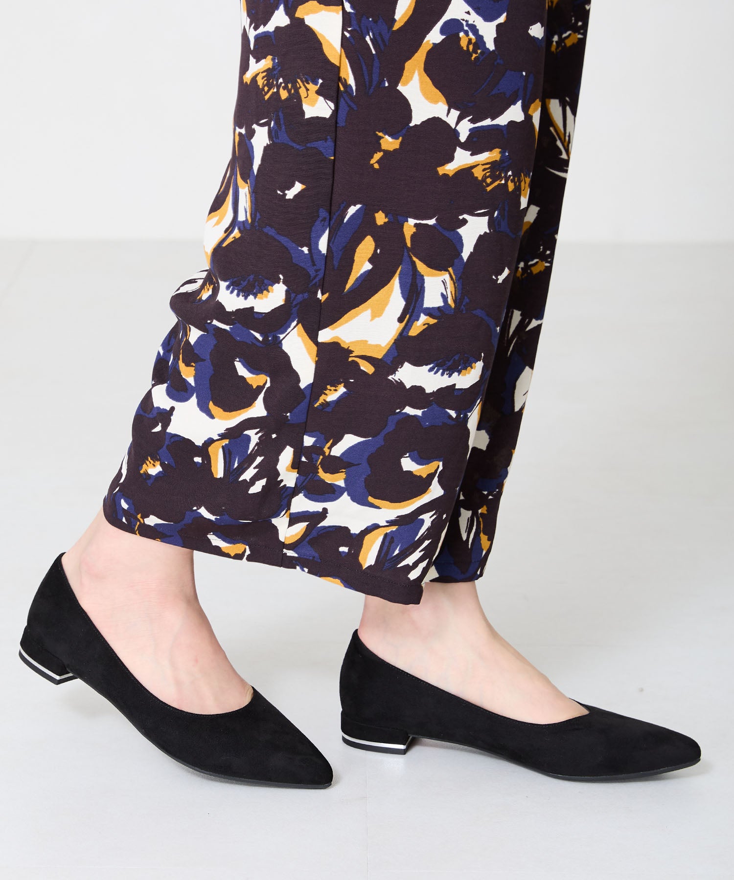 シンプルでデイリー使いしやすいフラットパンプスはシャープなトゥで足元を綺麗に見せてくれる。フラットでも足裏が痛くなりにくい厚手クッションや返りの良いソールなど機能性も抜群。無駄のないデザインながらヒールにはメタリックラインを付けてさりげないワンポイントをプラス。オンオフ使える豊富なカラー展開で色違いで揃えるのもおすすめ。