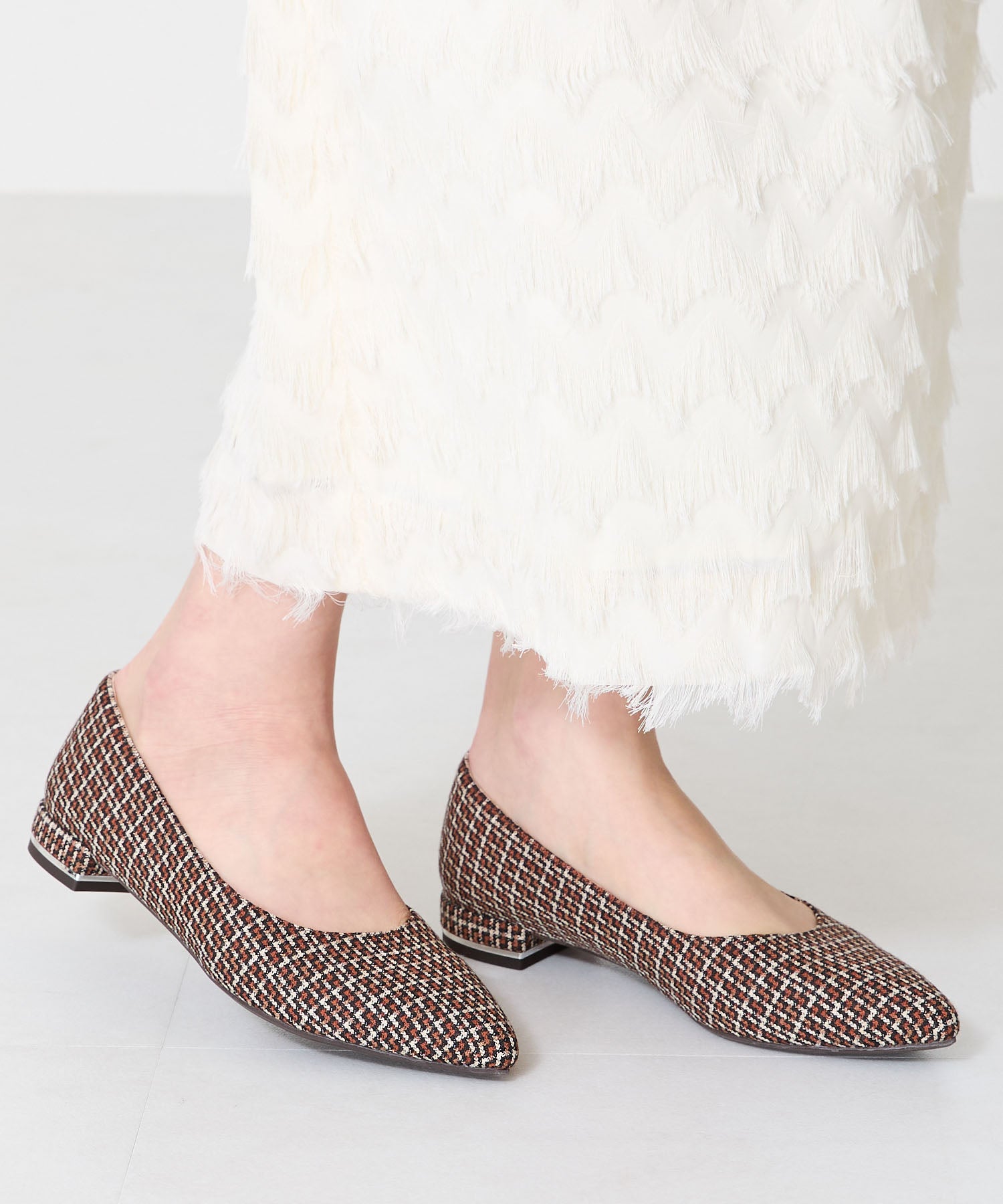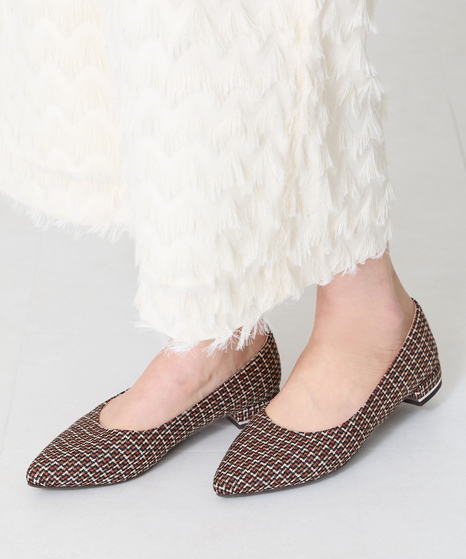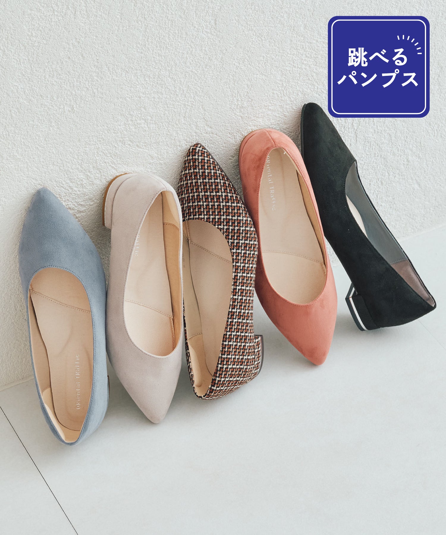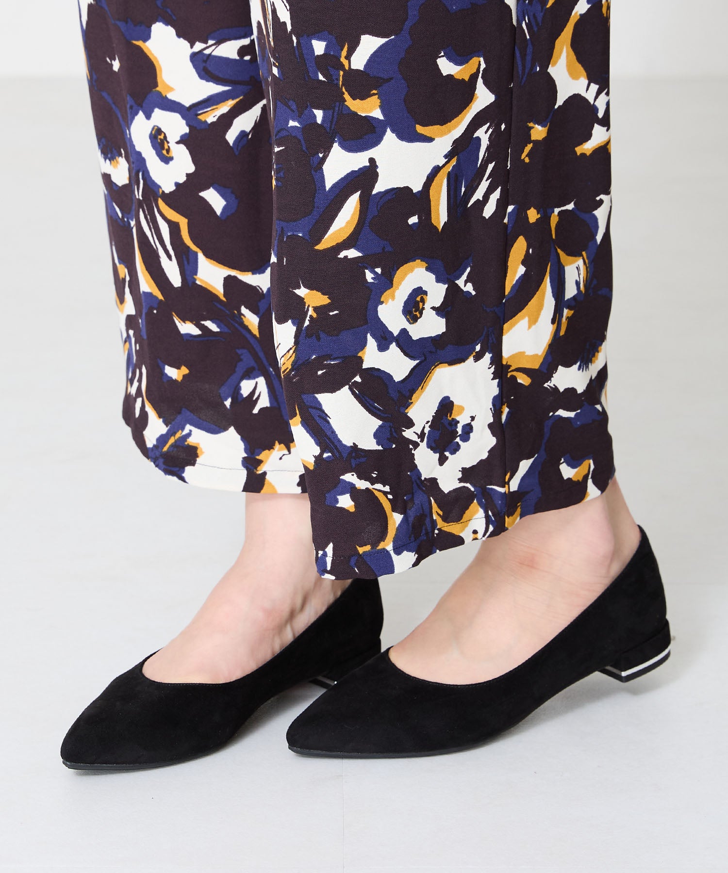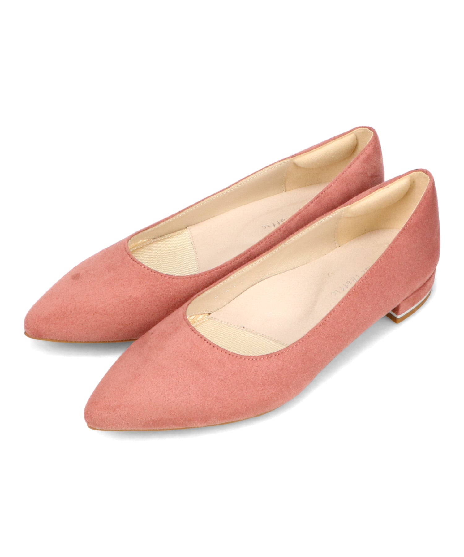 シンプルでデイリー使いしやすいフラットパンプスはシャープなトゥで足元を綺麗に見せてくれる。フラットでも足裏が痛くなりにくい厚手クッションや返りの良いソールなど機能性も抜群。無駄のないデザインながらヒールにはメタリックラインを付けてさりげないワンポイントをプラス。オンオフ使える豊富なカラー展開で色違いで揃えるのもおすすめ。