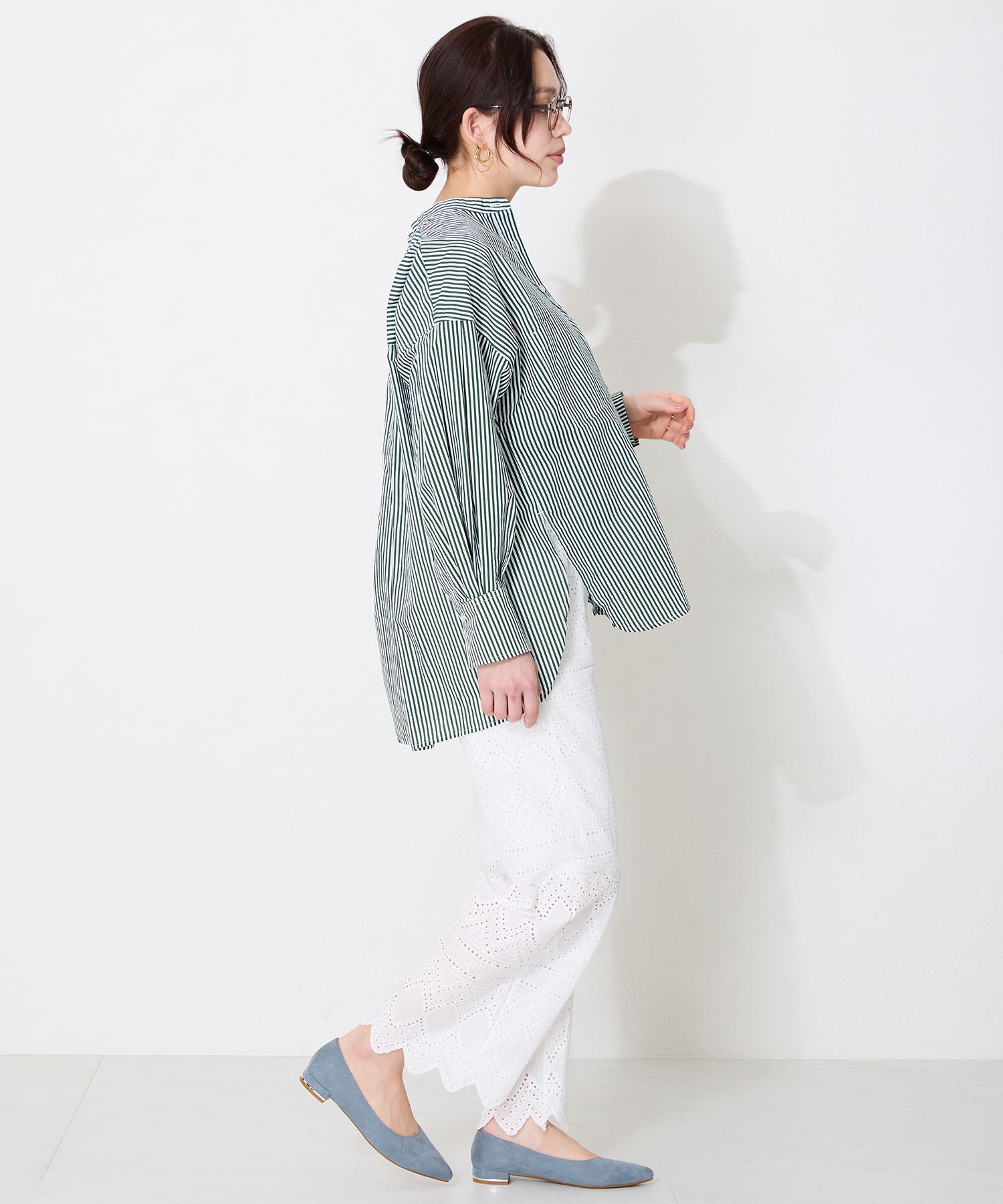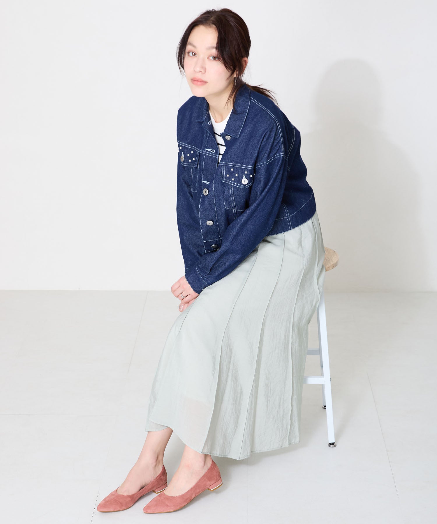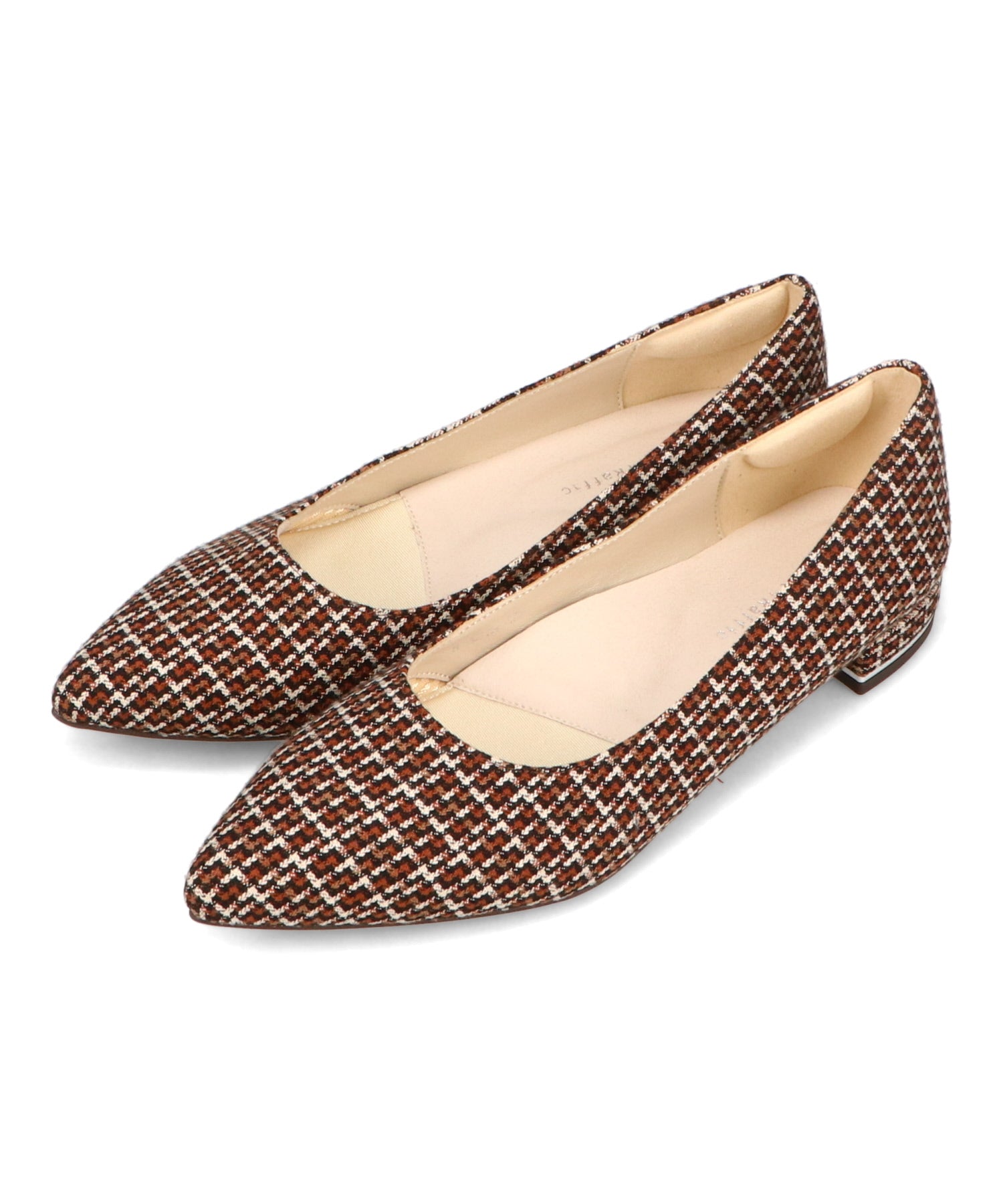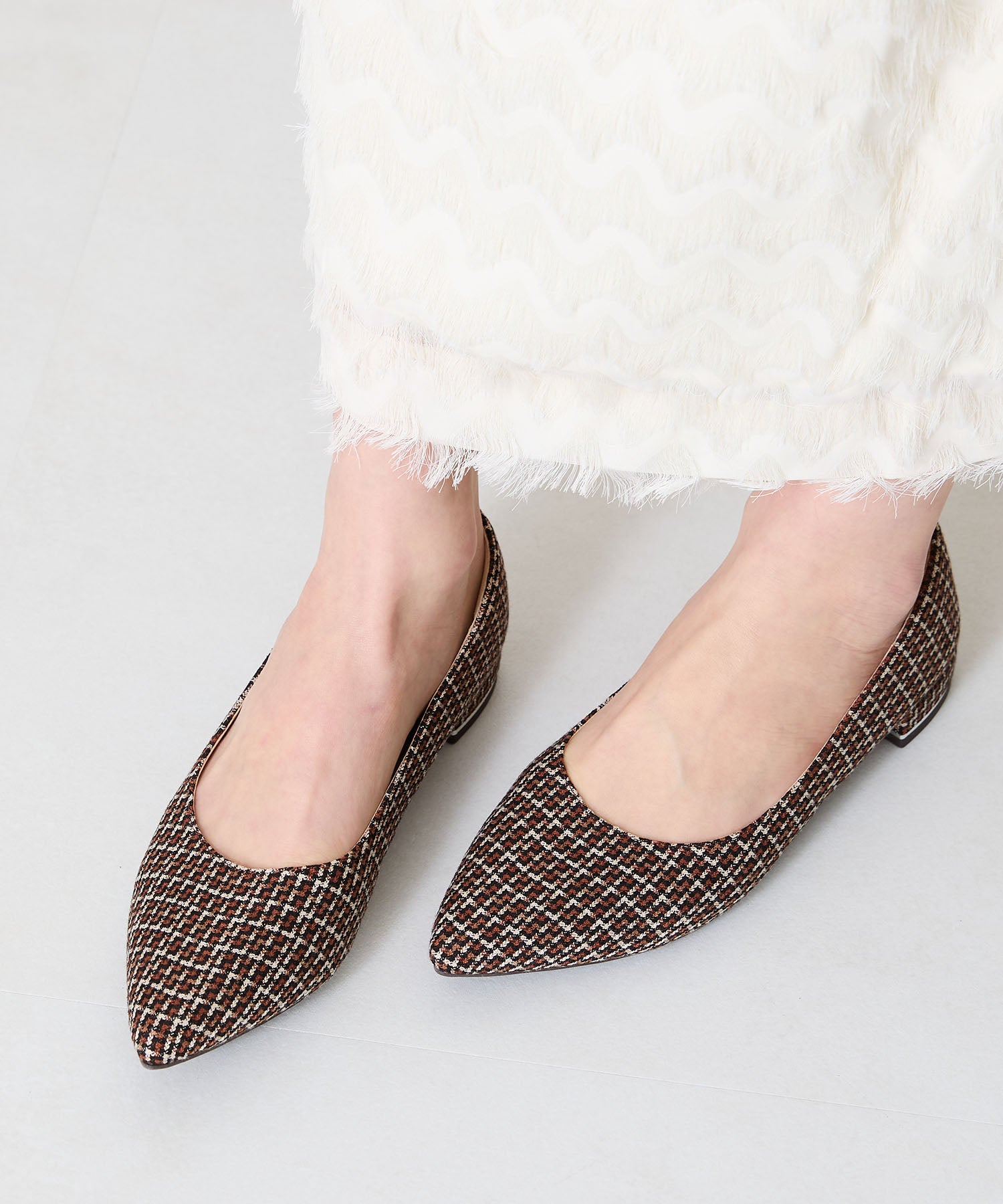 シンプルでデイリー使いしやすいフラットパンプスはシャープなトゥで足元を綺麗に見せてくれる。フラットでも足裏が痛くなりにくい厚手クッションや返りの良いソールなど機能性も抜群。無駄のないデザインながらヒールにはメタリックラインを付けてさりげないワンポイントをプラス。オンオフ使える豊富なカラー展開で色違いで揃えるのもおすすめ。