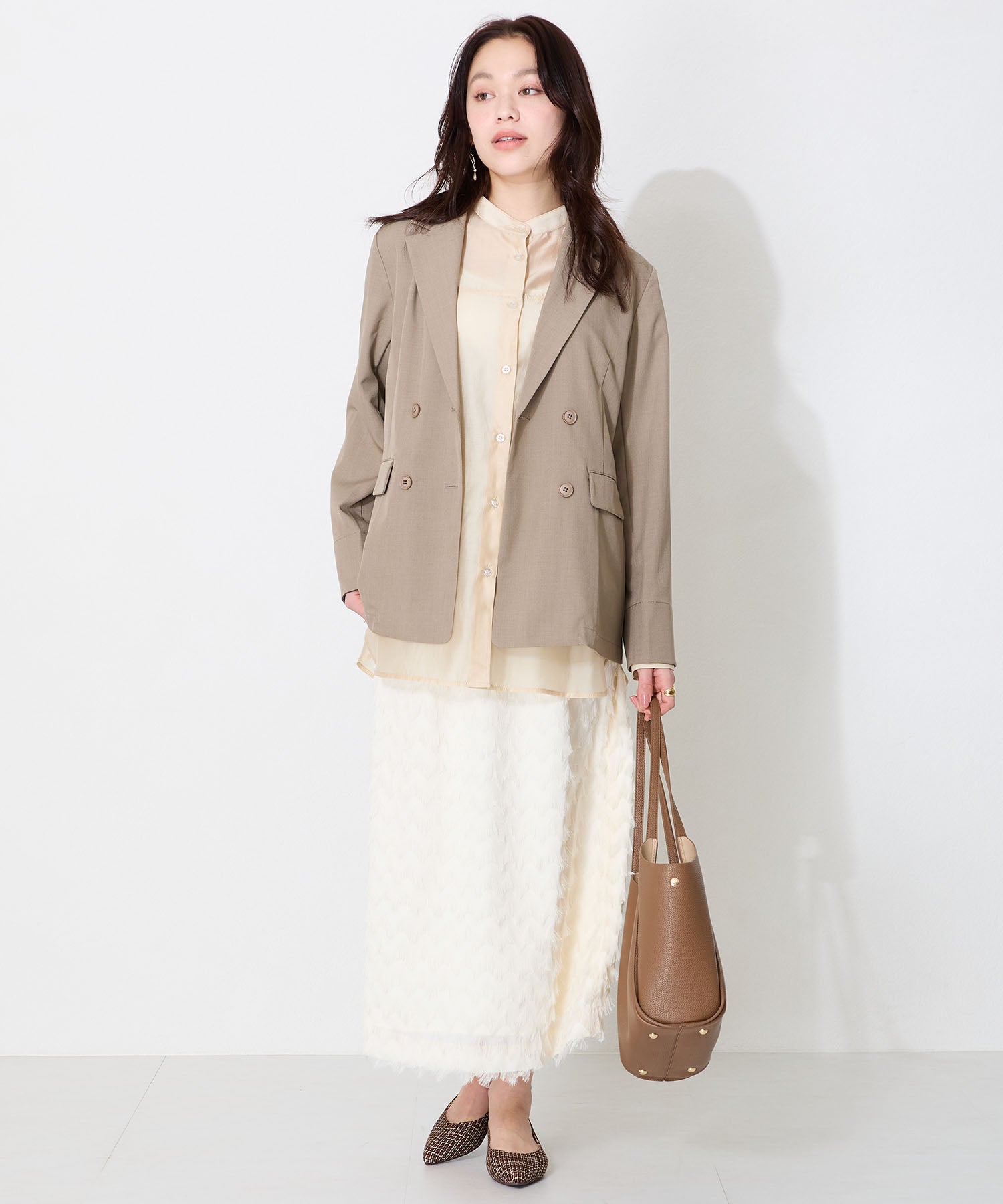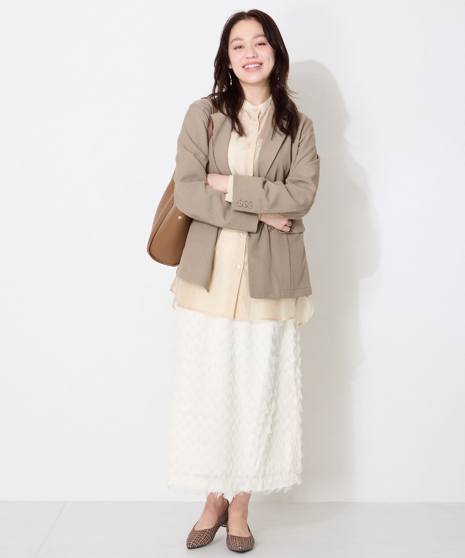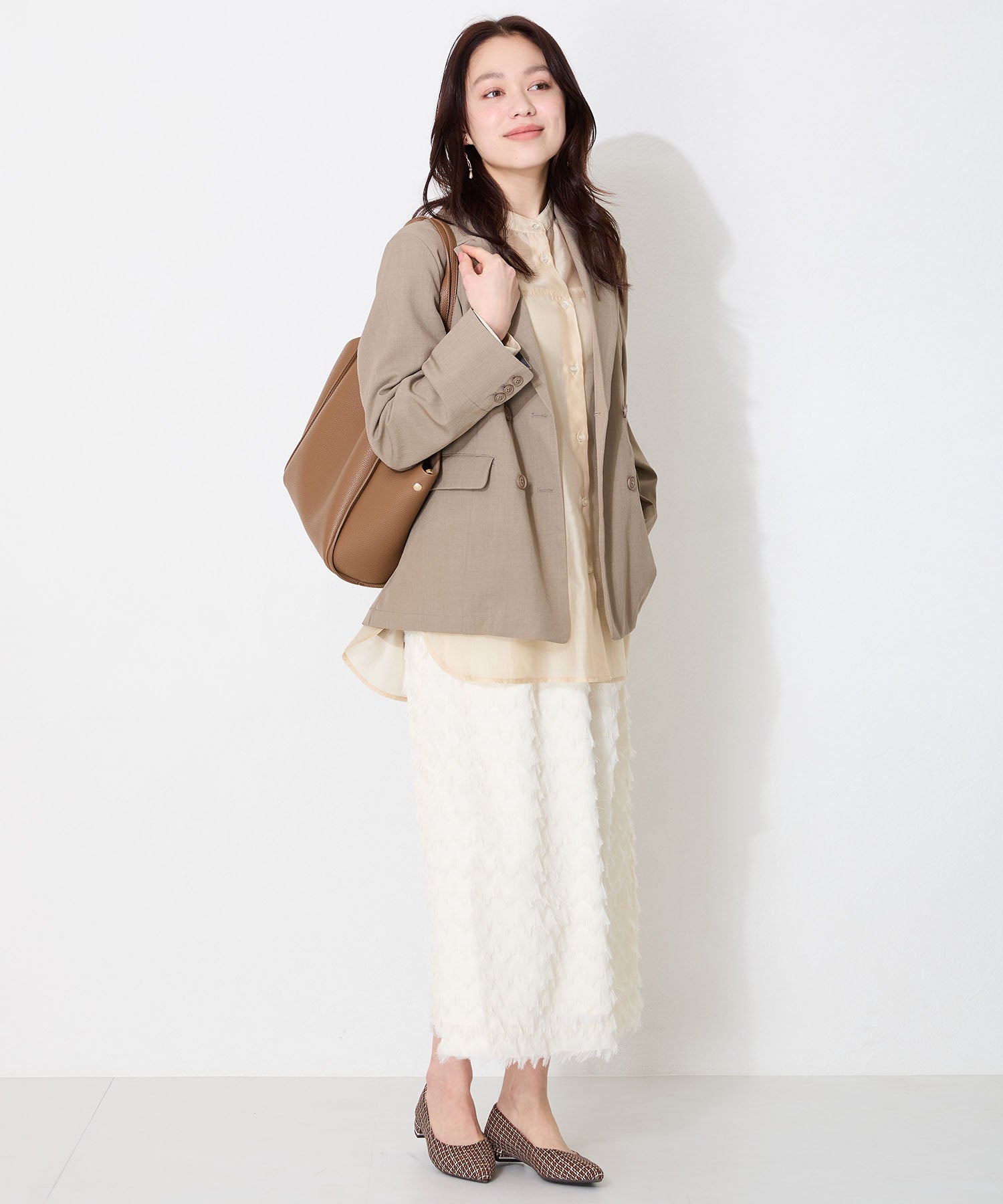 素材の種類:スエード生地(ポリエステル)、ブラウン→ツイード生地(ポリエステル、レーヨン、毛)