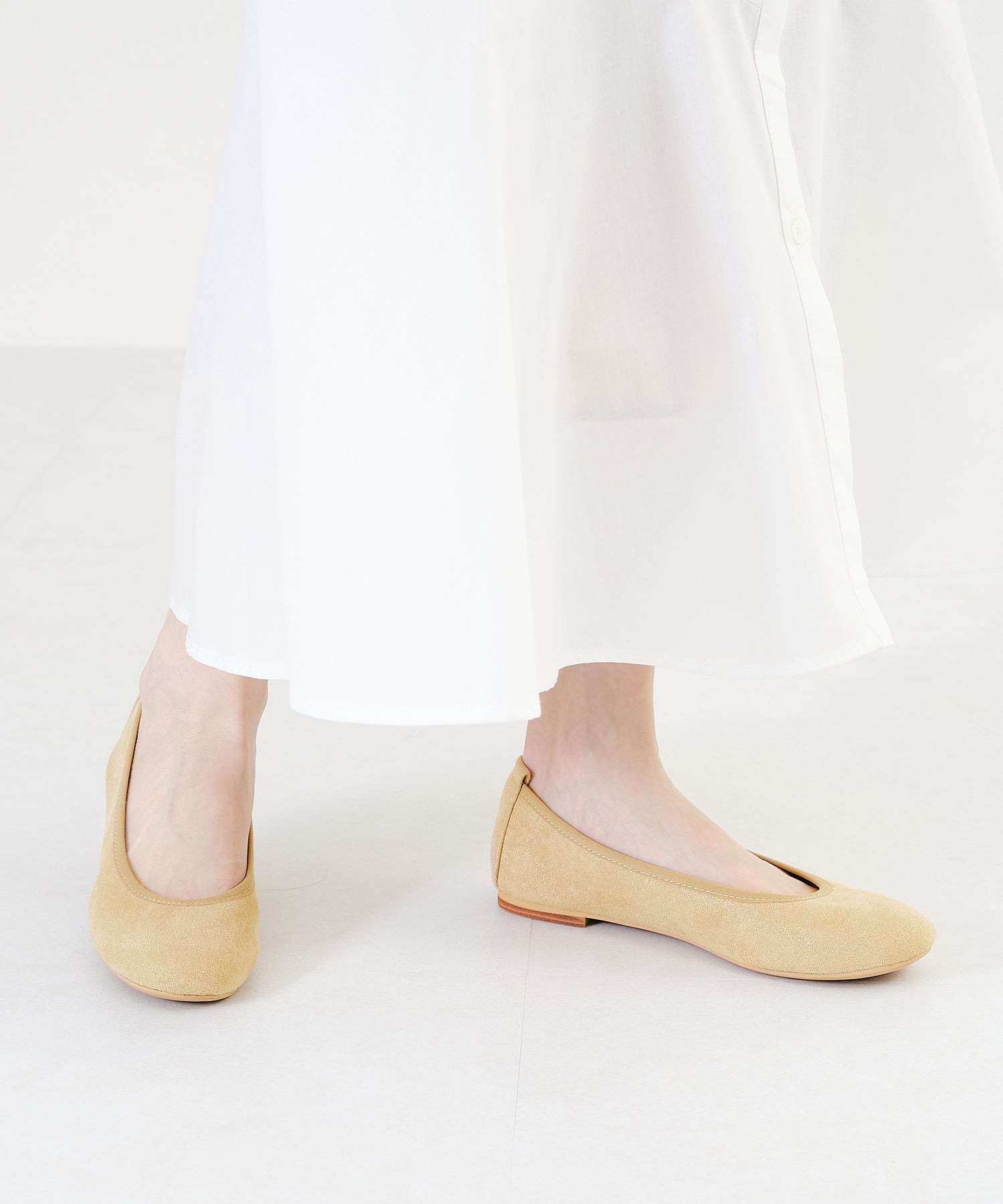 コンパクトに持ち運び可能なポケッタブルパンプスは、柔らかい素材とこだわりのクッションで包み込まれるような履き心地を実現。持ち運びに便利な袋が付属しているので、外で履くのはもちろん室内イベントや移動時の履き替え用シューズとしてもおすすめ。足先がゆったりとしたラウンドトゥはオケージョンでも使いやすい